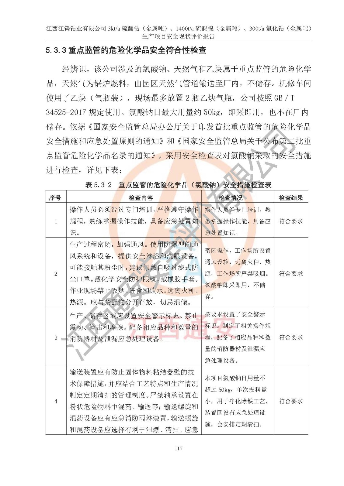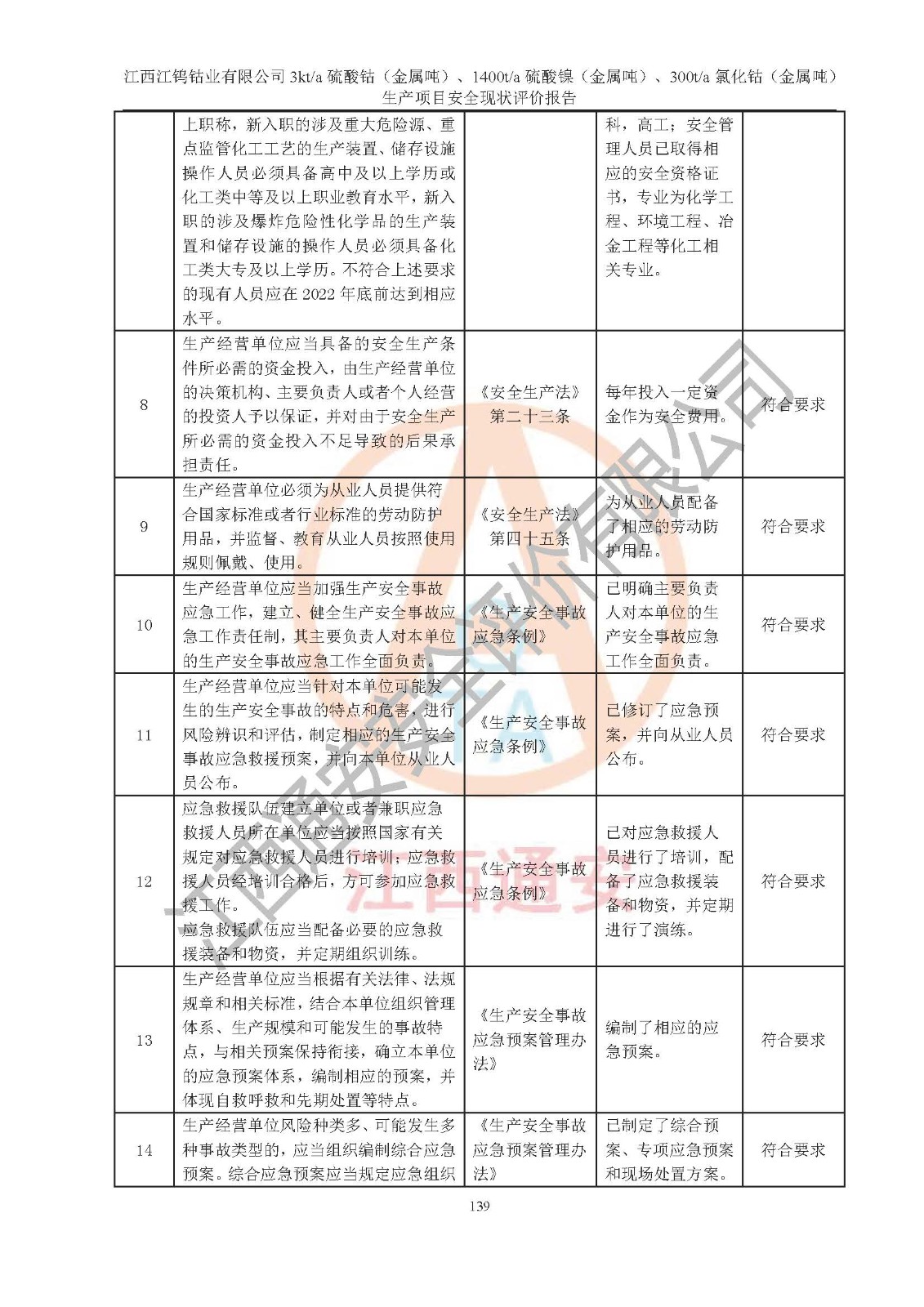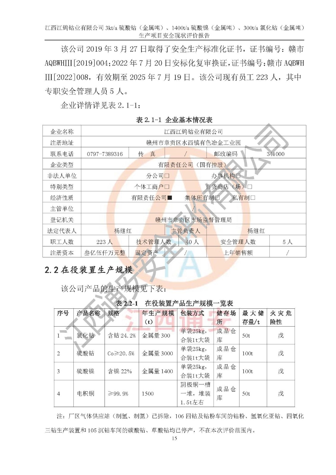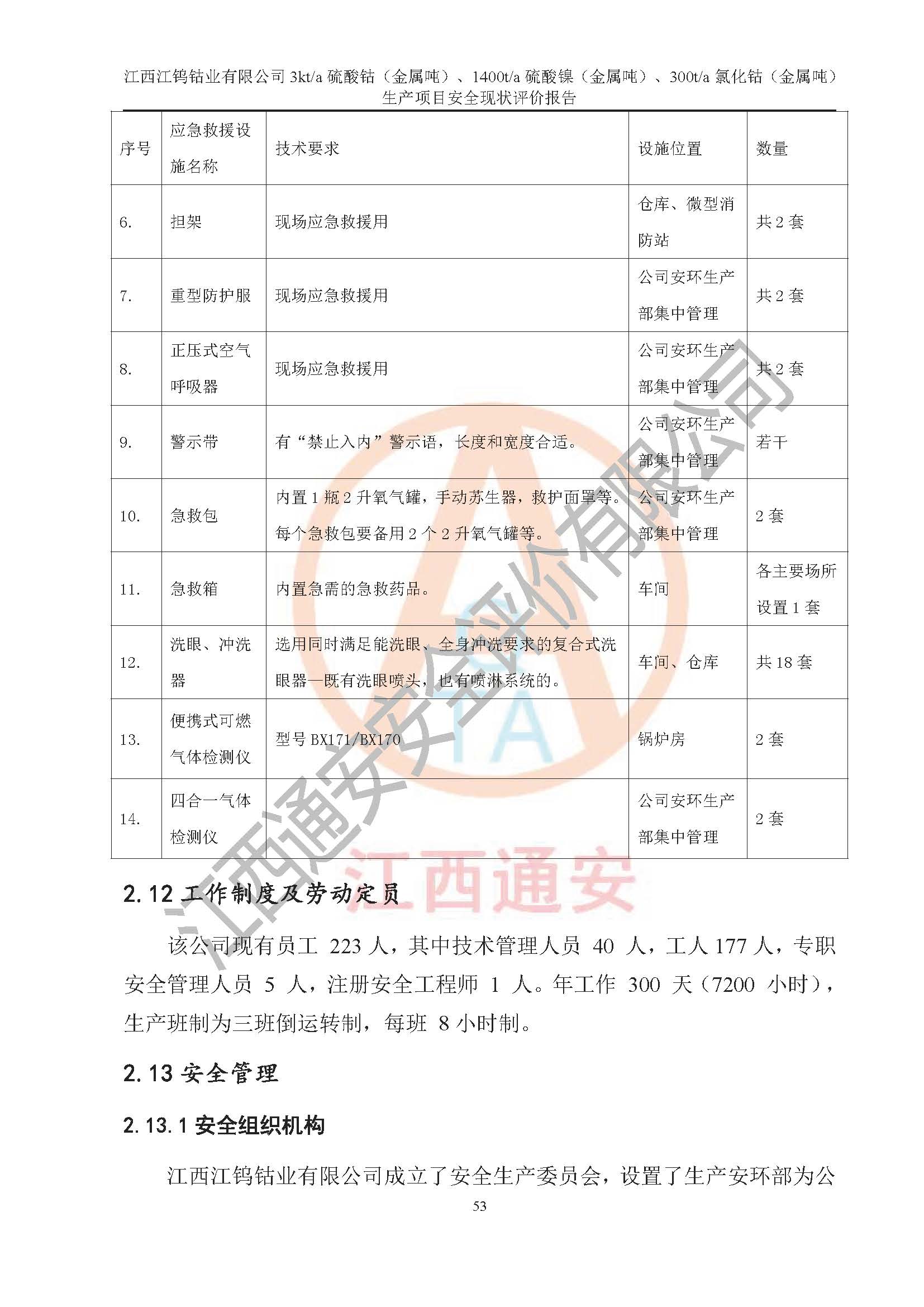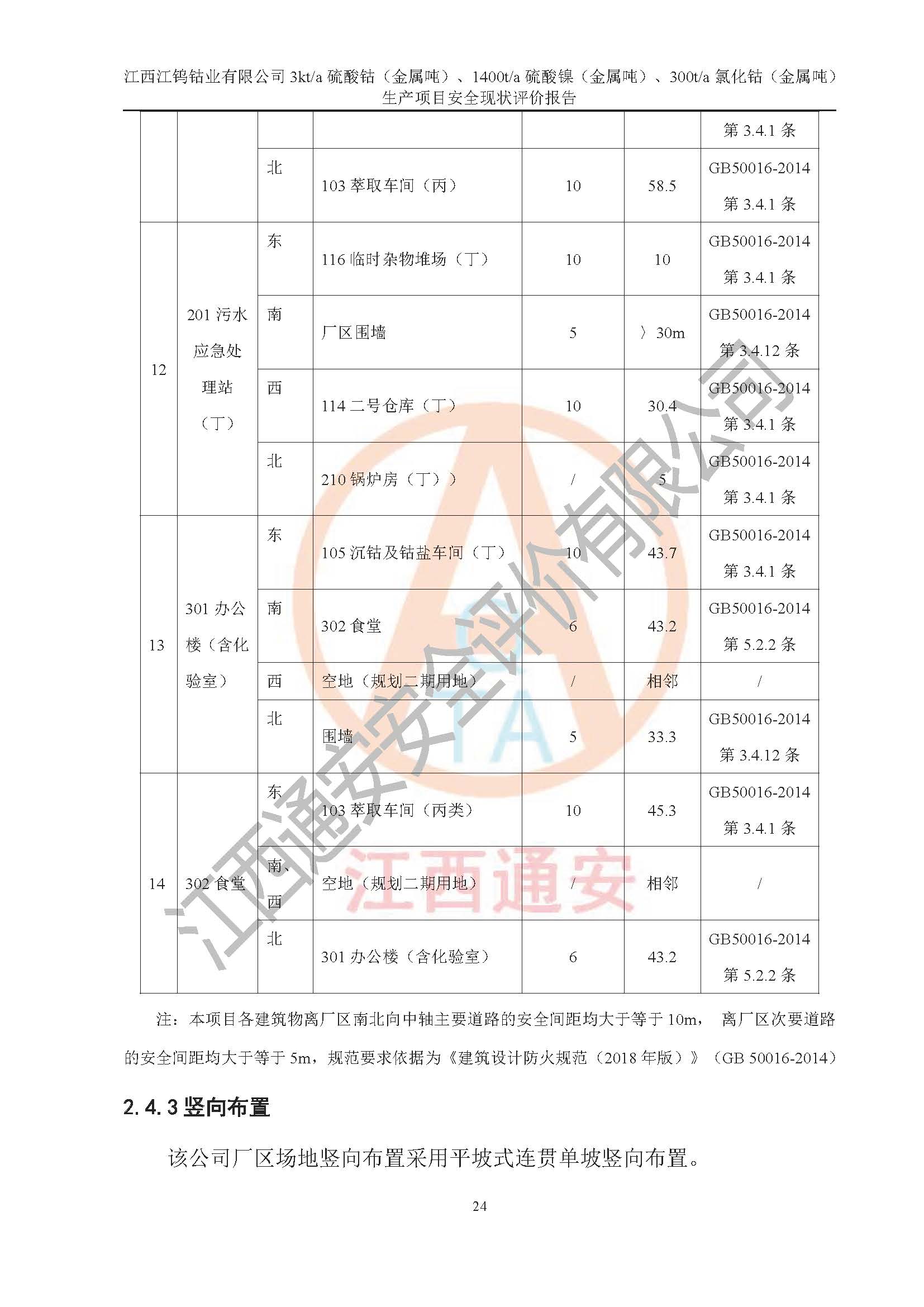 一、定量評價(jià)結(jié)果 1、作業(yè)條件危險(xiǎn)性分析評價(jià)結(jié)果:在選定的13個(gè)評價(jià)單元中,作業(yè)危險(xiǎn)等級為“可能危險(xiǎn),需要注意”,作業(yè)條件相對安全。 2、危險(xiǎn)程評價(jià)法分析結(jié)果:化工材料倉庫及罐區(qū)危險(xiǎn)程度為**危險(xiǎn),本項(xiàng)目在硫酸和鹽酸儲罐區(qū)設(shè)有圍堰、洗眼噴淋設(shè)施,儲罐均為常壓設(shè)備,設(shè)有就地液位和遠(yuǎn)傳的高低液位報(bào)警裝置,卸料、物料輸送、投料采用密閉化和機(jī)械化操作,公司制定了酸罐區(qū)的安全操作規(guī)程,作業(yè)人員穿戴個(gè)體防護(hù)用品,并配備了應(yīng)急救援裝備,通過采取**的安全設(shè)施和安全管理措施可以使風(fēng)險(xiǎn)降低到可接受范圍內(nèi);萃取車間危險(xiǎn)程度為低度危險(xiǎn)。風(fēng)險(xiǎn)在可接受范圍內(nèi)。。 4、定量風(fēng)險(xiǎn)評價(jià)分析結(jié)果:根據(jù)個(gè)人風(fēng)險(xiǎn)分析效果圖,該項(xiàng)目的個(gè)人風(fēng)險(xiǎn)符合要求;根據(jù)社會風(fēng)險(xiǎn)分析效果圖可知,該項(xiàng)目無社會風(fēng)險(xiǎn)。鍋爐發(fā)生物理爆炸的多米諾半徑局限在廠界內(nèi),企業(yè)會定期對鍋爐、空氣儲罐及安全附件進(jìn)行檢測,鍋爐操作工持證上崗,并加強(qiáng)日常的安全管理,可**降低發(fā)生物理爆炸的風(fēng)險(xiǎn)。 二、定性評價(jià)結(jié)果 1、依據(jù)相關(guān)法律、法規(guī)、標(biāo)準(zhǔn)等的規(guī)定,該項(xiàng)目外部安全條件、總平面布置、工藝及設(shè)備、防火防爆安全設(shè)施等符合**相關(guān)標(biāo)準(zhǔn)規(guī)范的要求,能滿足安全生產(chǎn)的要求。根據(jù)《江西江鎢鈷業(yè)有限公司全流程自動(dòng)化控制評估報(bào)告》(含《隱患清單》)評估報(bào)告,在役裝置的自動(dòng)化系統(tǒng)不需要提升。 2、該項(xiàng)目公用輔助設(shè)施能夠滿足安全生產(chǎn)的要求。 3、該項(xiàng)目按要求設(shè)置了安全生產(chǎn)管理機(jī)構(gòu),配備了專職安全生產(chǎn)管理人員,建立了全員安全生產(chǎn)責(zé)任制,制定了安全管理制度和崗位安全操作規(guī)程等。該公司修訂了生產(chǎn)安全事故應(yīng)急預(yù)案,配備了應(yīng)急救援器材,按要求定期進(jìn)行相關(guān)培訓(xùn)及演練。 4、公司主要負(fù)責(zé)人、安全管理人員經(jīng)培訓(xùn)考核取得了相應(yīng)的安全資格證書。主要負(fù)責(zé)人、分管安全負(fù)責(zé)人、分管生產(chǎn)、設(shè)備、技術(shù)負(fù)責(zé)人和安全管理人員的專業(yè)和學(xué)歷符合要求。特種作業(yè)人員均經(jīng)過培訓(xùn)考核合格后持證上崗,其他從業(yè)人員均進(jìn)行了安全教育培訓(xùn),具備安全知識與操作技能;公司配備了應(yīng)急救援物資,為從業(yè)人員配備了相應(yīng)的勞動(dòng)防護(hù)用品。 5、該項(xiàng)目的安全生產(chǎn)條件符合《安全生產(chǎn)許可證條例》、《危險(xiǎn)化學(xué)品生產(chǎn)企業(yè)安全生產(chǎn)許可證實(shí)施辦法》的要求,該項(xiàng)目不涉及重大生產(chǎn)安全事故隱患。 6、該項(xiàng)目不涉及重大生產(chǎn)安全事故隱患,采取的安全設(shè)施符合要求。 三、評價(jià)結(jié)論 江西江鎢鈷業(yè)有限公司符合城鄉(xiāng)規(guī)劃和布局,總平面布置符合《建筑設(shè)計(jì)防火規(guī)范(2018年版)》GB50016-2014等標(biāo)準(zhǔn)、規(guī)范的要求,采用成熟的生產(chǎn)工藝和設(shè)備,本質(zhì)安全程度較高;生產(chǎn)項(xiàng)目對現(xiàn)場存在事故危險(xiǎn)的設(shè)施和場所采取了合理可行的防護(hù)措施和科學(xué)的管理,使生產(chǎn)過程中的危險(xiǎn)有害因素能得到**控制。建設(shè)項(xiàng)目安全設(shè)施符合**現(xiàn)行有關(guān)法律、法規(guī)、標(biāo)準(zhǔn)的要求。企業(yè)對現(xiàn)場存在的安全問題進(jìn)行了整改,主要的安全缺陷消除。 評價(jià)結(jié)論:江西江鎢鈷業(yè)有限公司3kt/a硫酸鈷(金屬噸)、1400t/a硫酸鎳(金屬噸)、300t/a氯化鈷(金屬噸)生產(chǎn)項(xiàng)目的現(xiàn)場情況與設(shè)計(jì)變更圖紙一致,PLC控制系統(tǒng)設(shè)計(jì)符合要求、運(yùn)行正常,有關(guān)從業(yè)人員資質(zhì)符合《江西省危險(xiǎn)化學(xué)品安全專項(xiàng)整治三年行動(dòng)實(shí)施方案》要求,安全設(shè)施及安全管理符合法律、法規(guī)、標(biāo)準(zhǔn)的要求,安全風(fēng)險(xiǎn)是受控制的,其風(fēng)險(xiǎn)程度是可以接受的,安全設(shè)施符合安全生產(chǎn)條件,能夠滿足安全生產(chǎn)的要求。 |