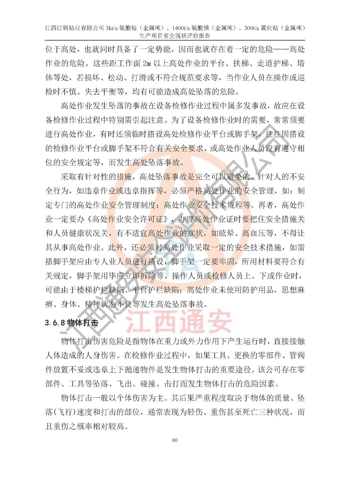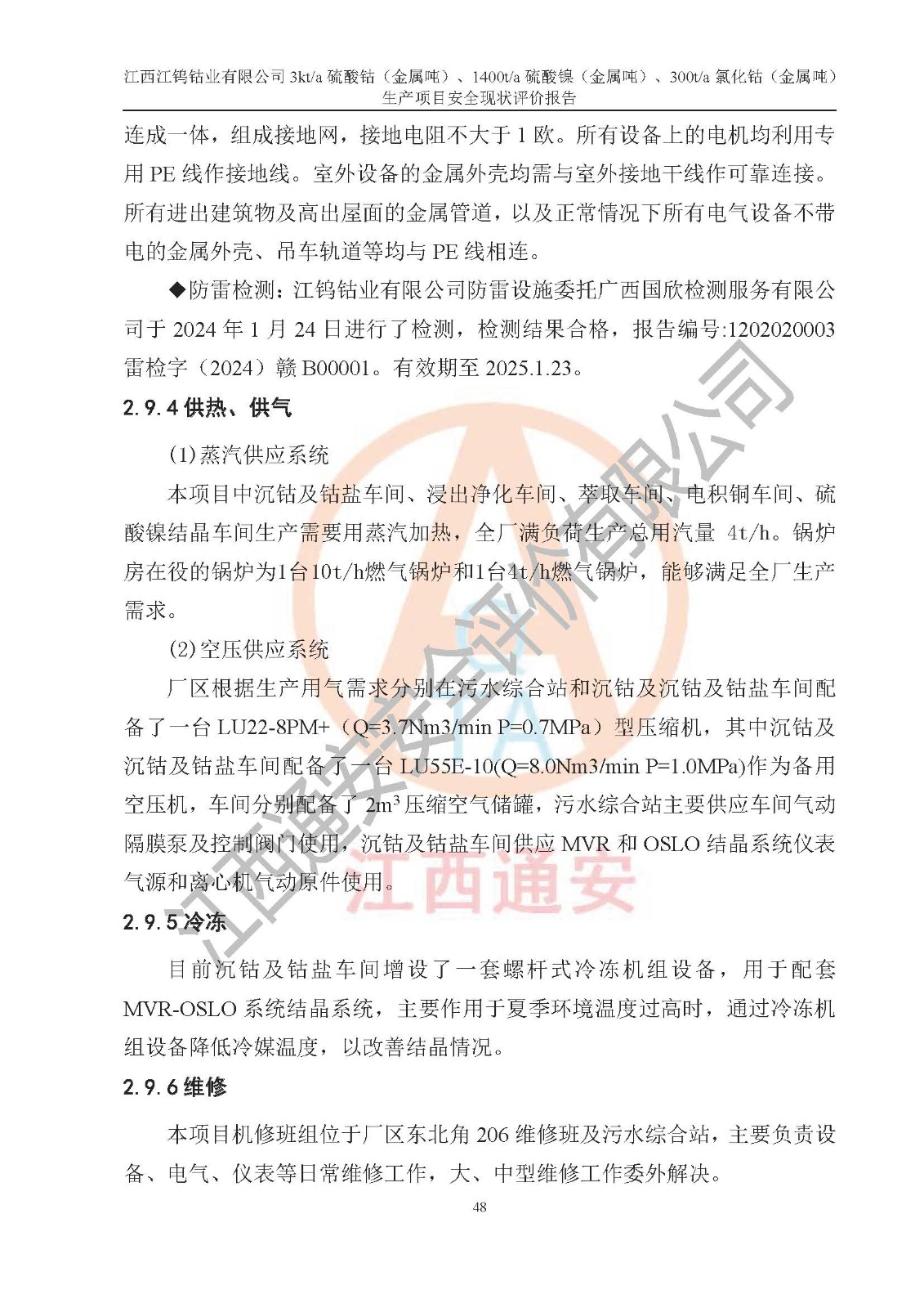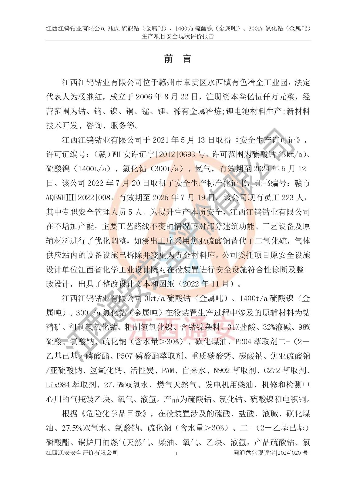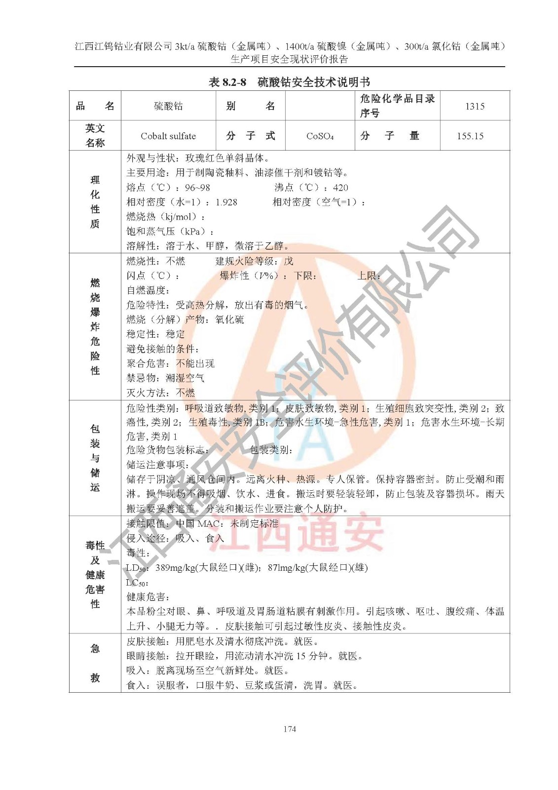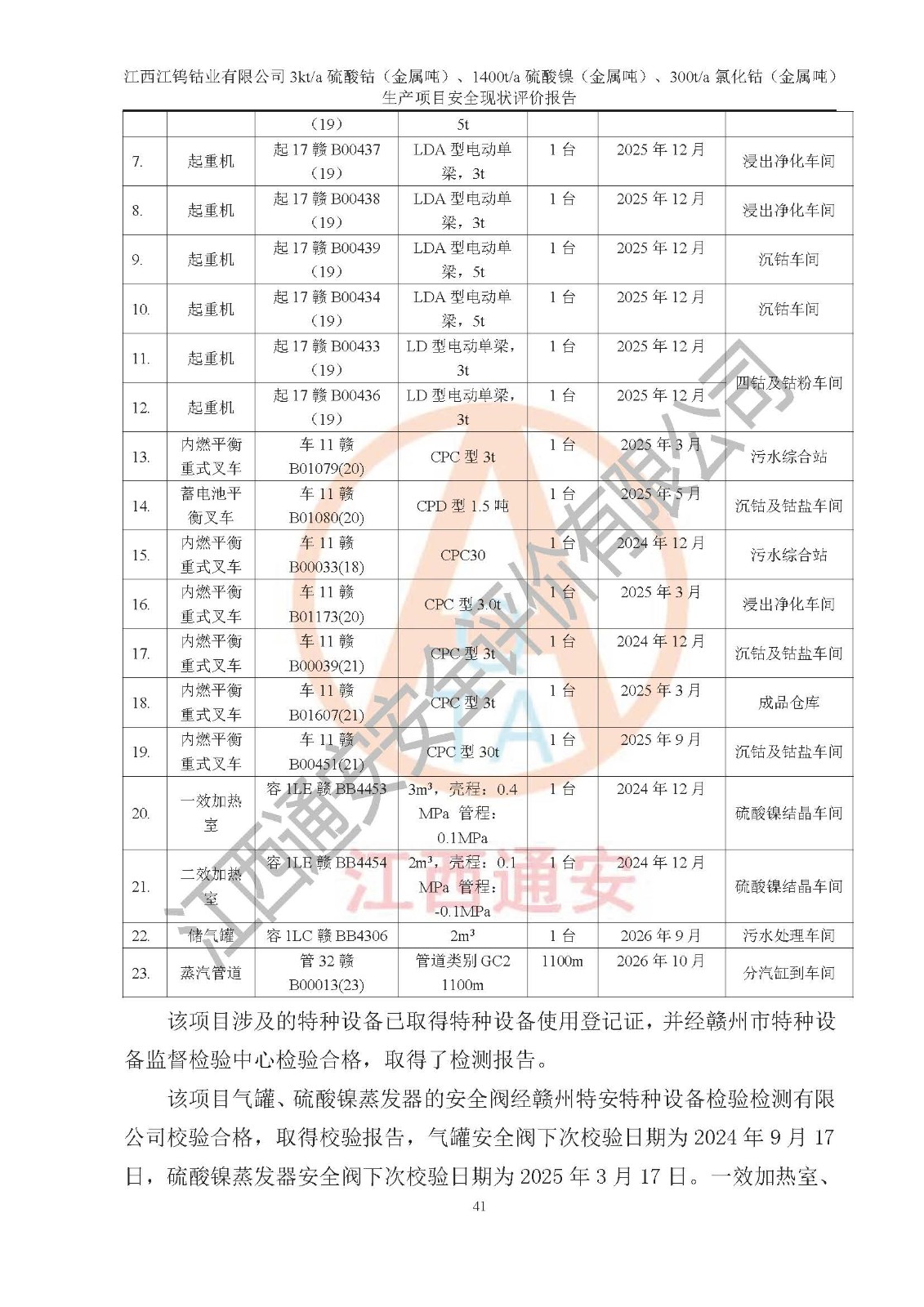 一、定量評價(jià)結(jié)果 1、作業(yè)條件危險(xiǎn)性分析評價(jià)結(jié)果:在選定的13個(gè)評價(jià)單元中,作業(yè)危險(xiǎn)等級為“可能危險(xiǎn),需要注意”,作業(yè)條件相對安全。 2、危險(xiǎn)程評價(jià)法分析結(jié)果:化工材料倉庫及罐區(qū)危險(xiǎn)程度為**危險(xiǎn),本項(xiàng)目在硫酸和鹽酸儲罐區(qū)設(shè)有圍堰、洗眼噴淋設(shè)施,儲罐均為常壓設(shè)備,設(shè)有就地液位和遠(yuǎn)傳的高低液位報(bào)警裝置,卸料、物料輸送、投料采用密閉化和機(jī)械化操作,公司制定了酸罐區(qū)的安全操作規(guī)程,作業(yè)人員穿戴個(gè)體防護(hù)用品,并配備了應(yīng)急救援裝備,通過采取**的安全設(shè)施和安全管理措施可以使風(fēng)險(xiǎn)降低到可接受范圍內(nèi);萃取車間危險(xiǎn)程度為低度危險(xiǎn)。風(fēng)險(xiǎn)在可接受范圍內(nèi)。。 4、定量風(fēng)險(xiǎn)評價(jià)分析結(jié)果:根據(jù)個(gè)人風(fēng)險(xiǎn)分析效果圖,該項(xiàng)目的個(gè)人風(fēng)險(xiǎn)符合要求;根據(jù)社會風(fēng)險(xiǎn)分析效果圖可知,該項(xiàng)目無社會風(fēng)險(xiǎn)。鍋爐發(fā)生物理爆炸的多米諾半徑局限在廠界內(nèi),企業(yè)會定期對鍋爐、空氣儲罐及安全附件進(jìn)行檢測,鍋爐操作工持證上崗,并加強(qiáng)日常的安全管理,可**降低發(fā)生物理爆炸的風(fēng)險(xiǎn)。 二、定性評價(jià)結(jié)果 1、依據(jù)相關(guān)法律、法規(guī)、標(biāo)準(zhǔn)等的規(guī)定,該項(xiàng)目外部安全條件、總平面布置、工藝及設(shè)備、防火防爆安全設(shè)施等符合**相關(guān)標(biāo)準(zhǔn)規(guī)范的要求,能滿足安全生產(chǎn)的要求。根據(jù)《江西江鎢鈷業(yè)有限公司全流程自動(dòng)化控制評估報(bào)告》(含《隱患清單》)評估報(bào)告,在役裝置的自動(dòng)化系統(tǒng)不需要提升。 2、該項(xiàng)目公用輔助設(shè)施能夠滿足安全生產(chǎn)的要求。 3、該項(xiàng)目按要求設(shè)置了安全生產(chǎn)管理機(jī)構(gòu),配備了專職安全生產(chǎn)管理人員,建立了全員安全生產(chǎn)責(zé)任制,制定了安全管理制度和崗位安全操作規(guī)程等。該公司修訂了生產(chǎn)安全事故應(yīng)急預(yù)案,配備了應(yīng)急救援器材,按要求定期進(jìn)行相關(guān)培訓(xùn)及演練。 4、公司主要負(fù)責(zé)人、安全管理人員經(jīng)培訓(xùn)考核取得了相應(yīng)的安全資格證書。主要負(fù)責(zé)人、分管安全負(fù)責(zé)人、分管生產(chǎn)、設(shè)備、技術(shù)負(fù)責(zé)人和安全管理人員的專業(yè)和學(xué)歷符合要求。特種作業(yè)人員均經(jīng)過培訓(xùn)考核合格后持證上崗,其他從業(yè)人員均進(jìn)行了安全教育培訓(xùn),具備安全知識與操作技能;公司配備了應(yīng)急救援物資,為從業(yè)人員配備了相應(yīng)的勞動(dòng)防護(hù)用品。 5、該項(xiàng)目的安全生產(chǎn)條件符合《安全生產(chǎn)許可證條例》、《危險(xiǎn)化學(xué)品生產(chǎn)企業(yè)安全生產(chǎn)許可證實(shí)施辦法》的要求,該項(xiàng)目不涉及重大生產(chǎn)安全事故隱患。 6、該項(xiàng)目不涉及重大生產(chǎn)安全事故隱患,采取的安全設(shè)施符合要求。 三、評價(jià)結(jié)論 江西江鎢鈷業(yè)有限公司符合城鄉(xiāng)規(guī)劃和布局,總平面布置符合《建筑設(shè)計(jì)防火規(guī)范(2018年版)》GB50016-2014等標(biāo)準(zhǔn)、規(guī)范的要求,采用成熟的生產(chǎn)工藝和設(shè)備,本質(zhì)安全程度較高;生產(chǎn)項(xiàng)目對現(xiàn)場存在事故危險(xiǎn)的設(shè)施和場所采取了合理可行的防護(hù)措施和科學(xué)的管理,使生產(chǎn)過程中的危險(xiǎn)有害因素能得到**控制。建設(shè)項(xiàng)目安全設(shè)施符合**現(xiàn)行有關(guān)法律、法規(guī)、標(biāo)準(zhǔn)的要求。企業(yè)對現(xiàn)場存在的安全問題進(jìn)行了整改,主要的安全缺陷消除。 評價(jià)結(jié)論:江西江鎢鈷業(yè)有限公司3kt/a硫酸鈷(金屬噸)、1400t/a硫酸鎳(金屬噸)、300t/a氯化鈷(金屬噸)生產(chǎn)項(xiàng)目的現(xiàn)場情況與設(shè)計(jì)變更圖紙一致,PLC控制系統(tǒng)設(shè)計(jì)符合要求、運(yùn)行正常,有關(guān)從業(yè)人員資質(zhì)符合《江西省危險(xiǎn)化學(xué)品安全專項(xiàng)整治三年行動(dòng)實(shí)施方案》要求,安全設(shè)施及安全管理符合法律、法規(guī)、標(biāo)準(zhǔn)的要求,安全風(fēng)險(xiǎn)是受控制的,其風(fēng)險(xiǎn)程度是可以接受的,安全設(shè)施符合安全生產(chǎn)條件,能夠滿足安全生產(chǎn)的要求。 |