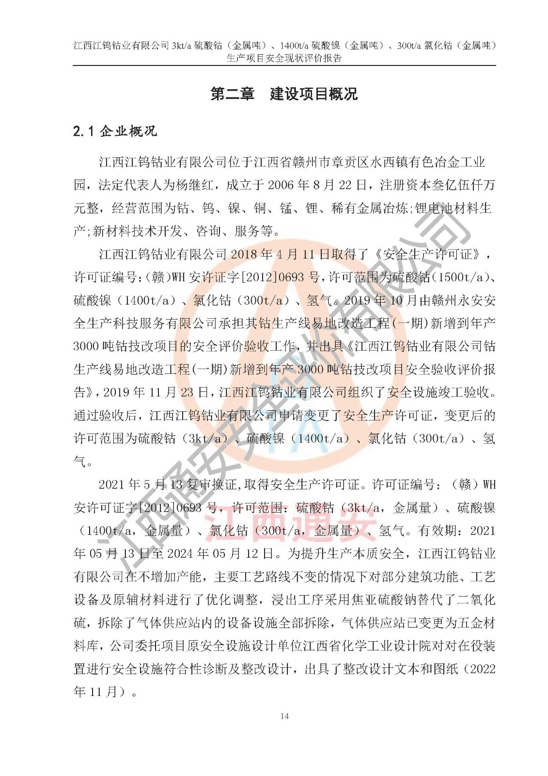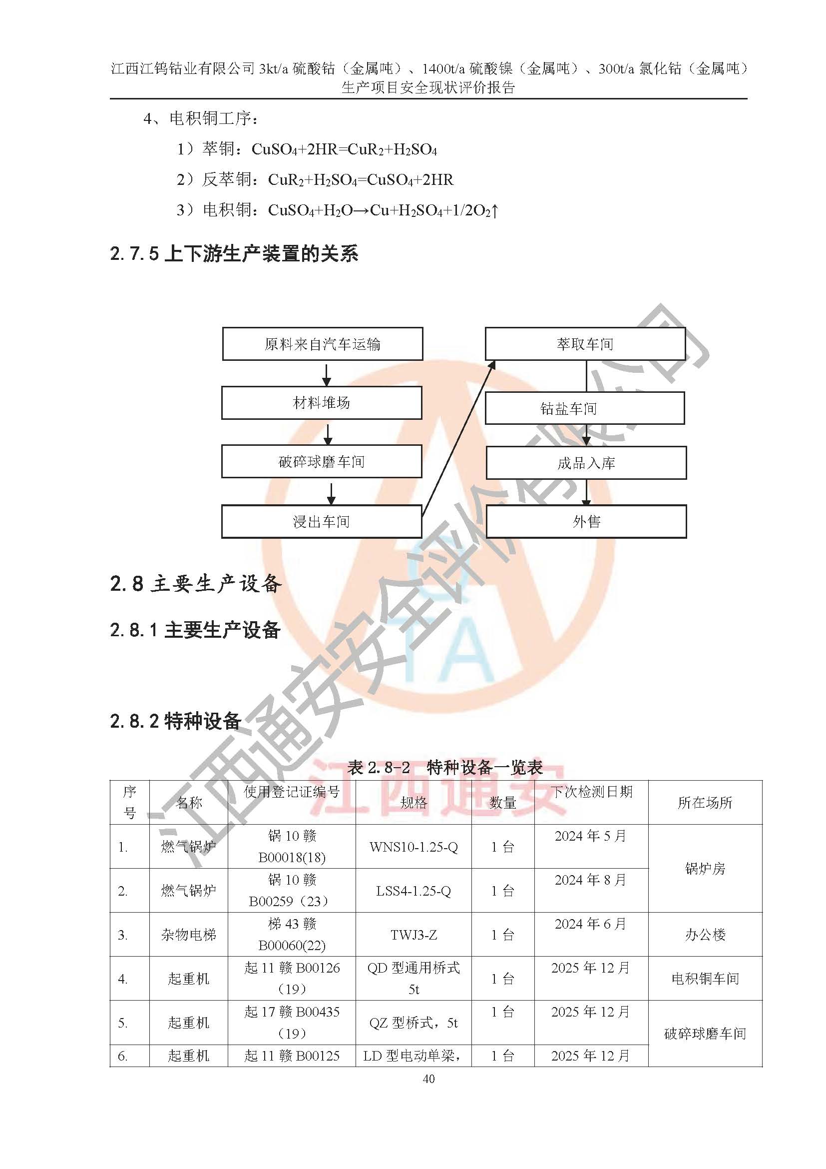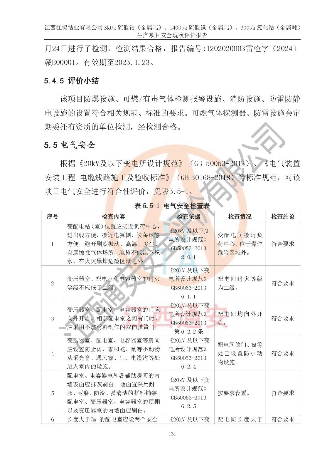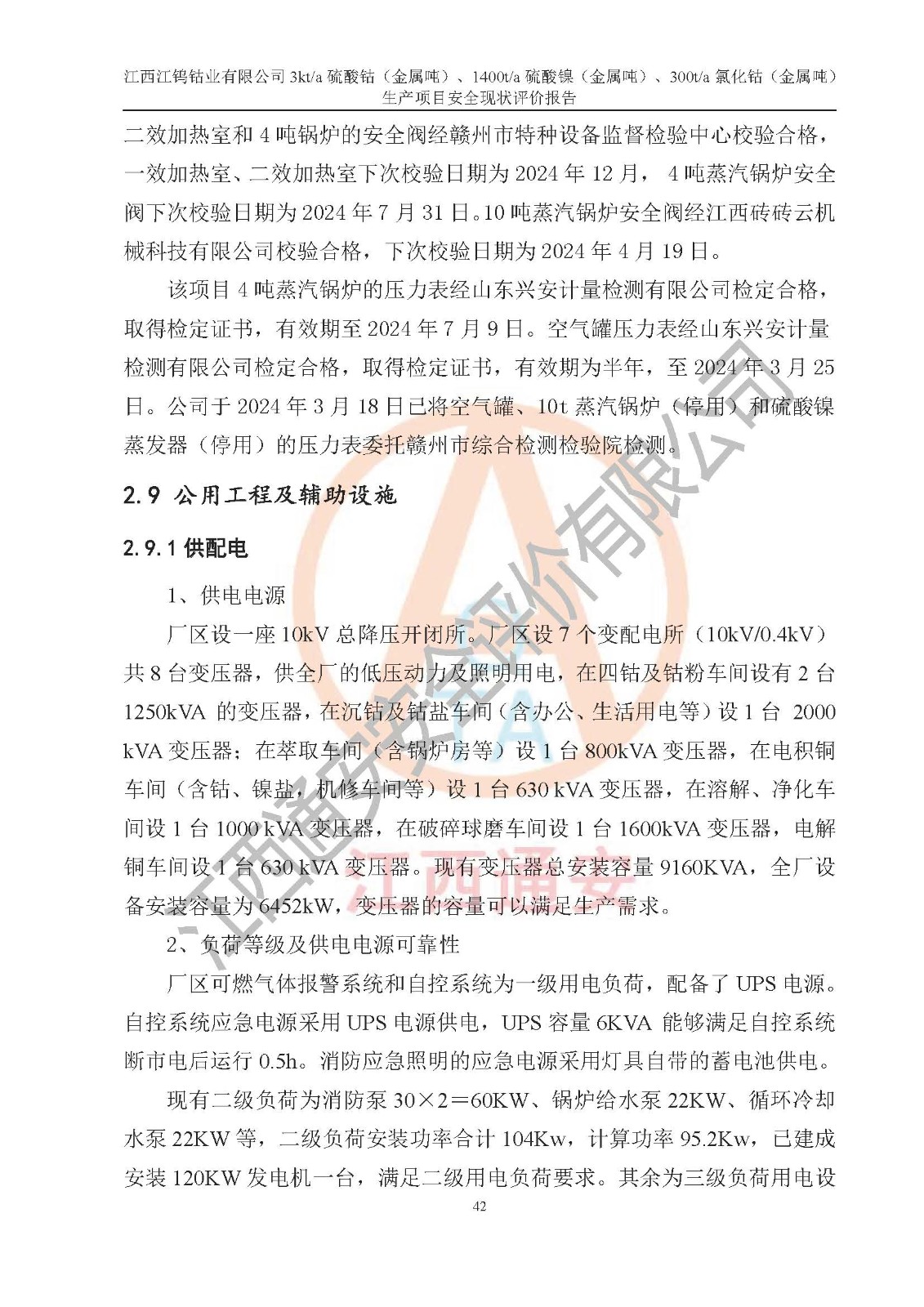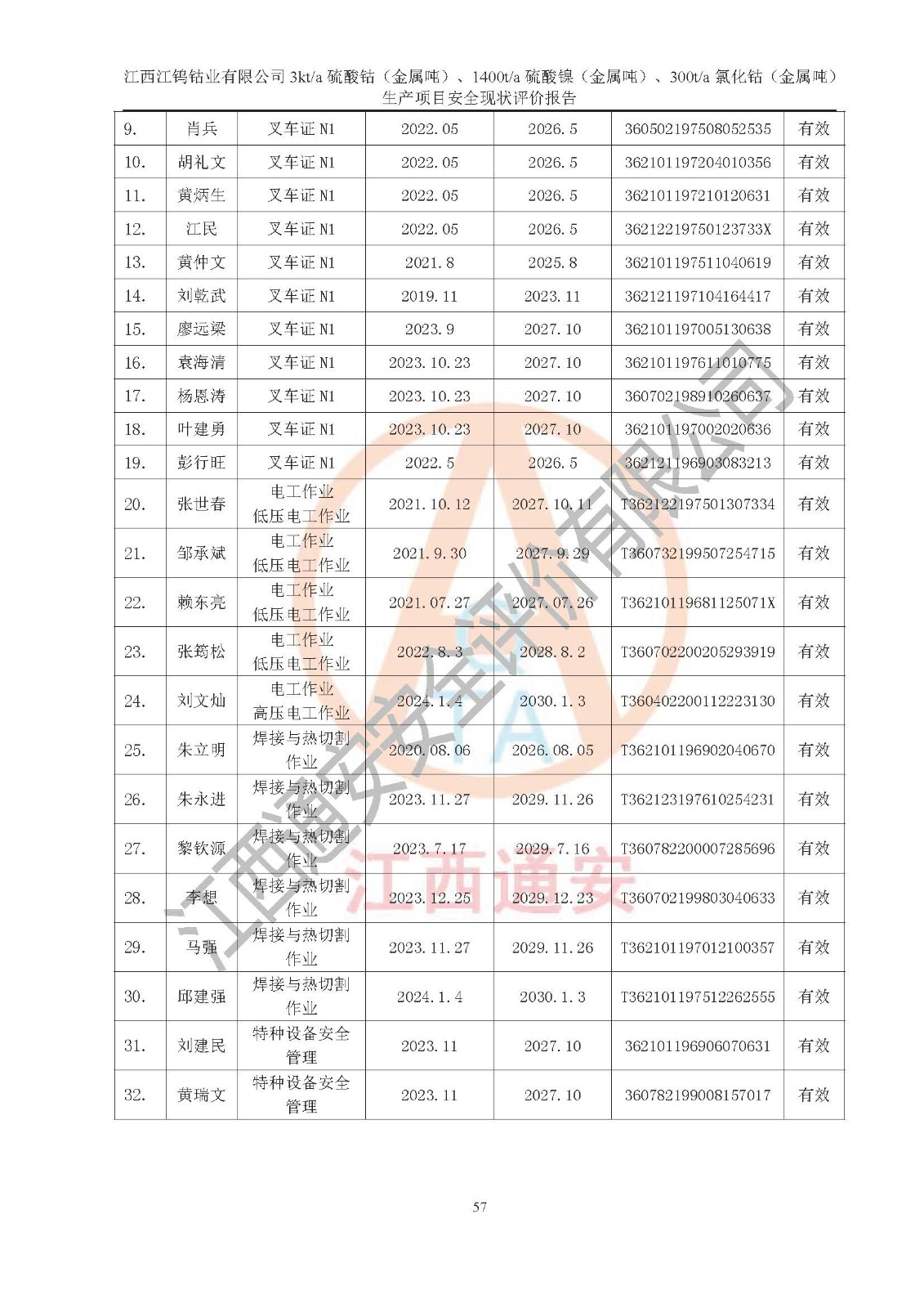 一、定量評價(jià)結(jié)果 1、作業(yè)條件危險(xiǎn)性分析評價(jià)結(jié)果:在選定的13個(gè)評價(jià)單元中,作業(yè)危險(xiǎn)等級為“可能危險(xiǎn),需要注意”,作業(yè)條件相對安全。 2、危險(xiǎn)程評價(jià)法分析結(jié)果:化工材料倉庫及罐區(qū)危險(xiǎn)程度為**危險(xiǎn),本項(xiàng)目在硫酸和鹽酸儲罐區(qū)設(shè)有圍堰、洗眼噴淋設(shè)施,儲罐均為常壓設(shè)備,設(shè)有就地液位和遠(yuǎn)傳的高低液位報(bào)警裝置,卸料、物料輸送、投料采用密閉化和機(jī)械化操作,公司制定了酸罐區(qū)的安全操作規(guī)程,作業(yè)人員穿戴個(gè)體防護(hù)用品,并配備了應(yīng)急救援裝備,通過采取**的安全設(shè)施和安全管理措施可以使風(fēng)險(xiǎn)降低到可接受范圍內(nèi);萃取車間危險(xiǎn)程度為低度危險(xiǎn)。風(fēng)險(xiǎn)在可接受范圍內(nèi)。。 4、定量風(fēng)險(xiǎn)評價(jià)分析結(jié)果:根據(jù)個(gè)人風(fēng)險(xiǎn)分析效果圖,該項(xiàng)目的個(gè)人風(fēng)險(xiǎn)符合要求;根據(jù)社會風(fēng)險(xiǎn)分析效果圖可知,該項(xiàng)目無社會風(fēng)險(xiǎn)。鍋爐發(fā)生物理爆炸的多米諾半徑局限在廠界內(nèi),企業(yè)會定期對鍋爐、空氣儲罐及安全附件進(jìn)行檢測,鍋爐操作工持證上崗,并加強(qiáng)日常的安全管理,可**降低發(fā)生物理爆炸的風(fēng)險(xiǎn)。 二、定性評價(jià)結(jié)果 1、依據(jù)相關(guān)法律、法規(guī)、標(biāo)準(zhǔn)等的規(guī)定,該項(xiàng)目外部安全條件、總平面布置、工藝及設(shè)備、防火防爆安全設(shè)施等符合**相關(guān)標(biāo)準(zhǔn)規(guī)范的要求,能滿足安全生產(chǎn)的要求。根據(jù)《江西江鎢鈷業(yè)有限公司全流程自動(dòng)化控制評估報(bào)告》(含《隱患清單》)評估報(bào)告,在役裝置的自動(dòng)化系統(tǒng)不需要提升。 2、該項(xiàng)目公用輔助設(shè)施能夠滿足安全生產(chǎn)的要求。 3、該項(xiàng)目按要求設(shè)置了安全生產(chǎn)管理機(jī)構(gòu),配備了專職安全生產(chǎn)管理人員,建立了全員安全生產(chǎn)責(zé)任制,制定了安全管理制度和崗位安全操作規(guī)程等。該公司修訂了生產(chǎn)安全事故應(yīng)急預(yù)案,配備了應(yīng)急救援器材,按要求定期進(jìn)行相關(guān)培訓(xùn)及演練。 4、公司主要負(fù)責(zé)人、安全管理人員經(jīng)培訓(xùn)考核取得了相應(yīng)的安全資格證書。主要負(fù)責(zé)人、分管安全負(fù)責(zé)人、分管生產(chǎn)、設(shè)備、技術(shù)負(fù)責(zé)人和安全管理人員的專業(yè)和學(xué)歷符合要求。特種作業(yè)人員均經(jīng)過培訓(xùn)考核合格后持證上崗,其他從業(yè)人員均進(jìn)行了安全教育培訓(xùn),具備安全知識與操作技能;公司配備了應(yīng)急救援物資,為從業(yè)人員配備了相應(yīng)的勞動(dòng)防護(hù)用品。 5、該項(xiàng)目的安全生產(chǎn)條件符合《安全生產(chǎn)許可證條例》、《危險(xiǎn)化學(xué)品生產(chǎn)企業(yè)安全生產(chǎn)許可證實(shí)施辦法》的要求,該項(xiàng)目不涉及重大生產(chǎn)安全事故隱患。 6、該項(xiàng)目不涉及重大生產(chǎn)安全事故隱患,采取的安全設(shè)施符合要求。 三、評價(jià)結(jié)論 江西江鎢鈷業(yè)有限公司符合城鄉(xiāng)規(guī)劃和布局,總平面布置符合《建筑設(shè)計(jì)防火規(guī)范(2018年版)》GB50016-2014等標(biāo)準(zhǔn)、規(guī)范的要求,采用成熟的生產(chǎn)工藝和設(shè)備,本質(zhì)安全程度較高;生產(chǎn)項(xiàng)目對現(xiàn)場存在事故危險(xiǎn)的設(shè)施和場所采取了合理可行的防護(hù)措施和科學(xué)的管理,使生產(chǎn)過程中的危險(xiǎn)有害因素能得到**控制。建設(shè)項(xiàng)目安全設(shè)施符合**現(xiàn)行有關(guān)法律、法規(guī)、標(biāo)準(zhǔn)的要求。企業(yè)對現(xiàn)場存在的安全問題進(jìn)行了整改,主要的安全缺陷消除。 評價(jià)結(jié)論:江西江鎢鈷業(yè)有限公司3kt/a硫酸鈷(金屬噸)、1400t/a硫酸鎳(金屬噸)、300t/a氯化鈷(金屬噸)生產(chǎn)項(xiàng)目的現(xiàn)場情況與設(shè)計(jì)變更圖紙一致,PLC控制系統(tǒng)設(shè)計(jì)符合要求、運(yùn)行正常,有關(guān)從業(yè)人員資質(zhì)符合《江西省危險(xiǎn)化學(xué)品安全專項(xiàng)整治三年行動(dòng)實(shí)施方案》要求,安全設(shè)施及安全管理符合法律、法規(guī)、標(biāo)準(zhǔn)的要求,安全風(fēng)險(xiǎn)是受控制的,其風(fēng)險(xiǎn)程度是可以接受的,安全設(shè)施符合安全生產(chǎn)條件,能夠滿足安全生產(chǎn)的要求。 |