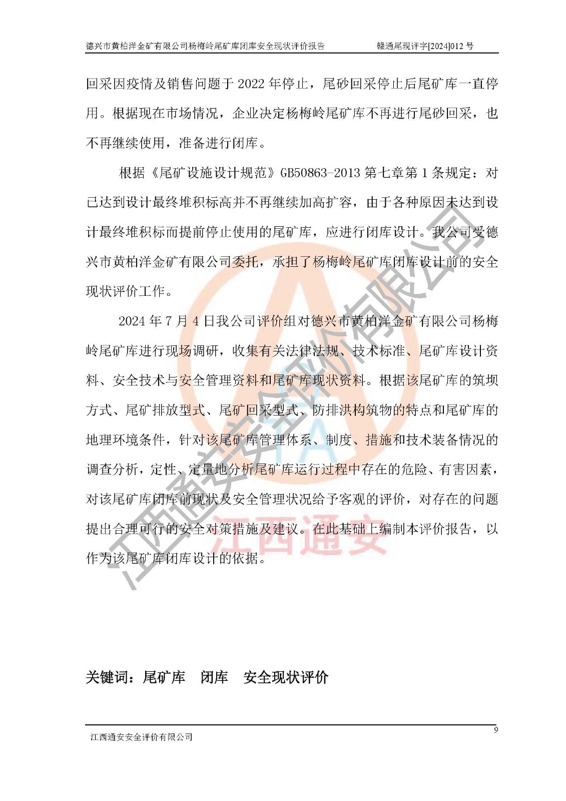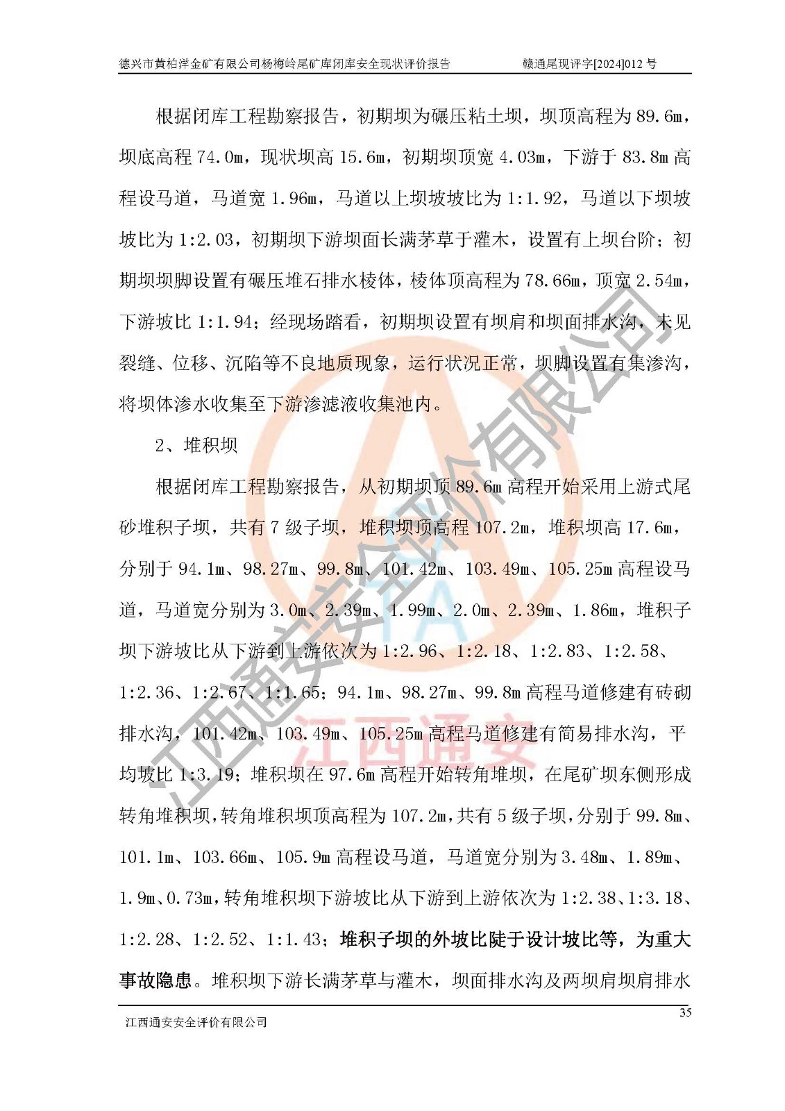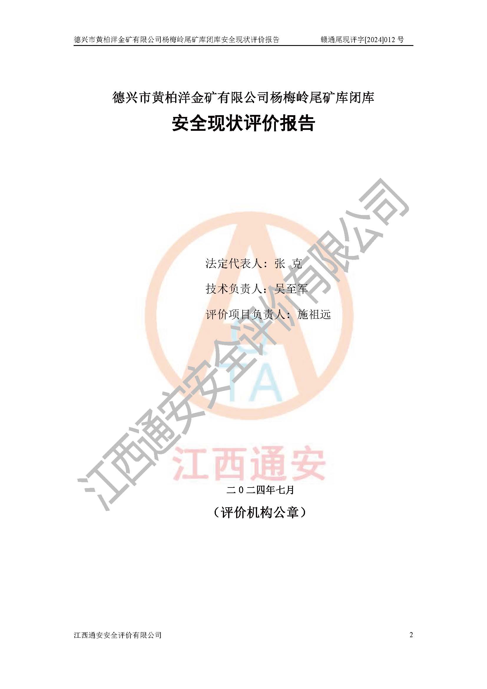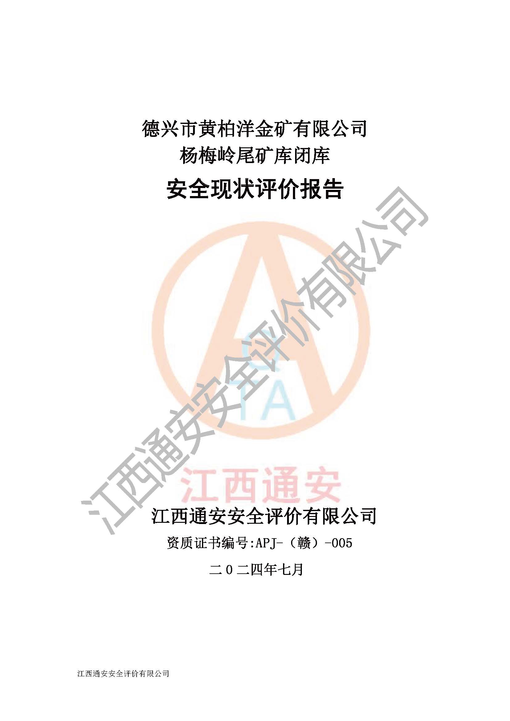 評(píng)價(jià)報(bào)告名稱 | 德興市黃柏洋金礦有限公司楊梅嶺尾礦庫(kù)閉庫(kù)安全現(xiàn)狀評(píng)價(jià)報(bào)告 | |||