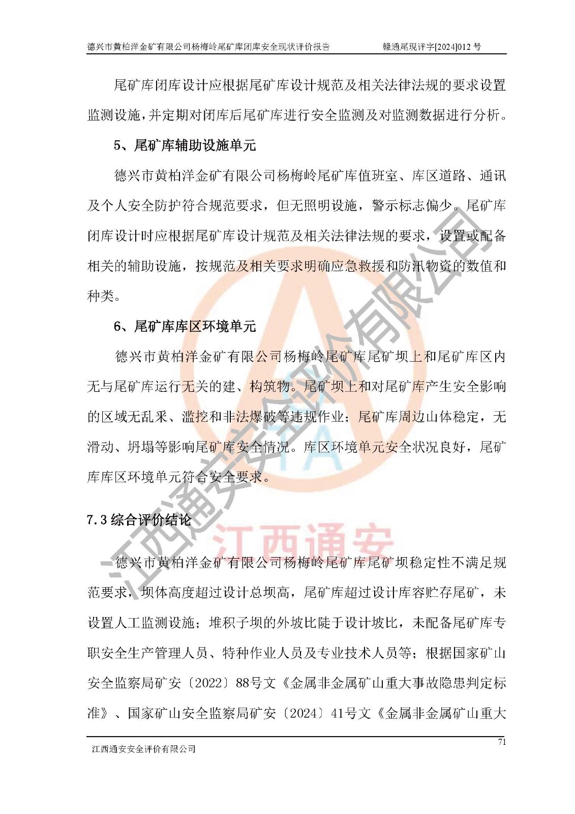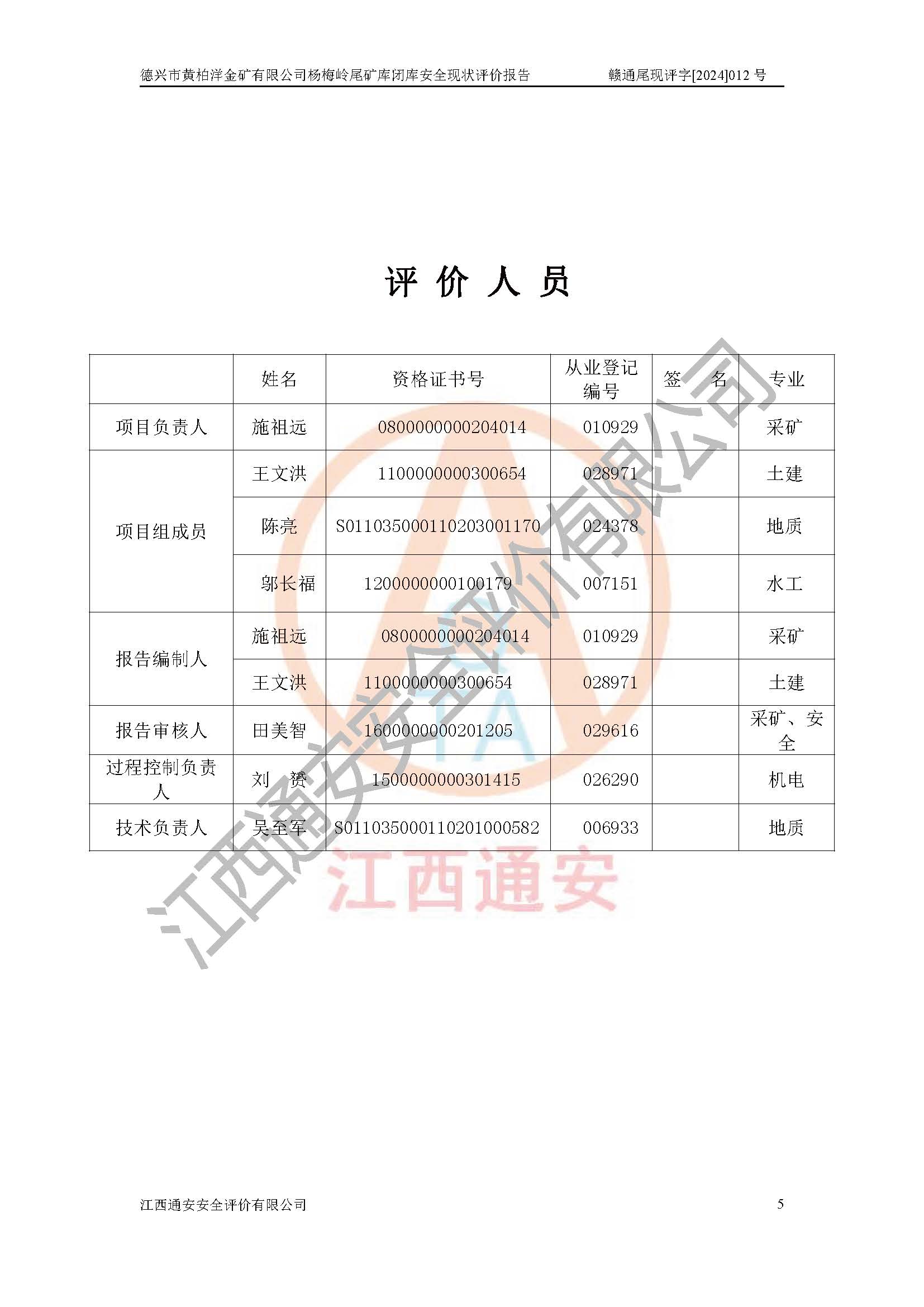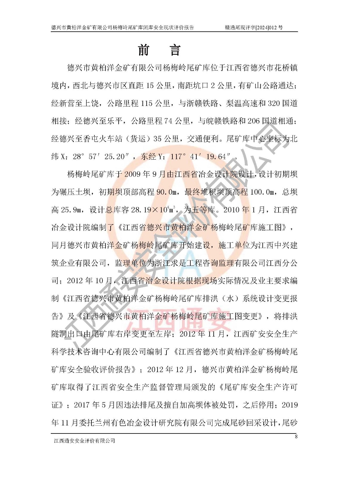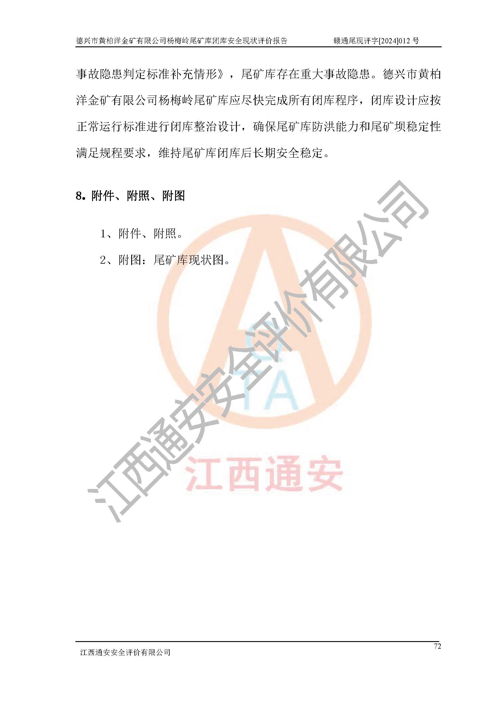 評(píng)價(jià)報(bào)告名稱 | 德興市黃柏洋金礦有限公司楊梅嶺尾礦庫(kù)閉庫(kù)安全現(xiàn)狀評(píng)價(jià)報(bào)告 | |||