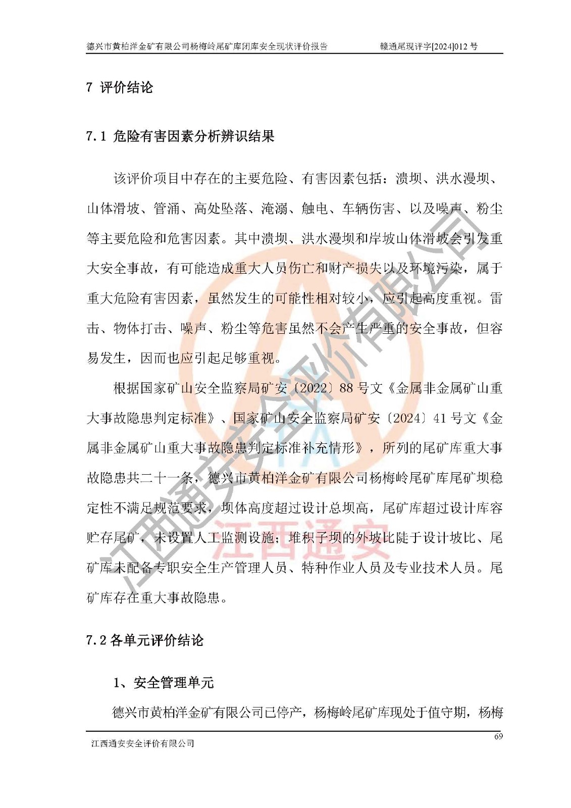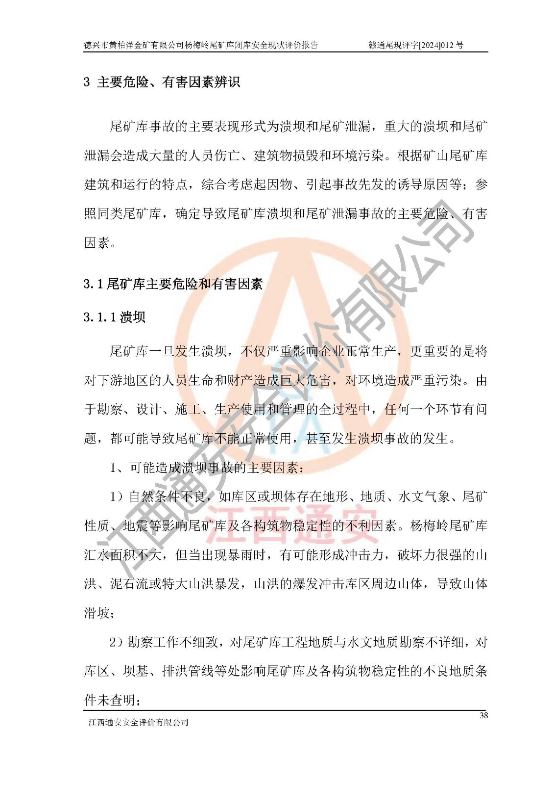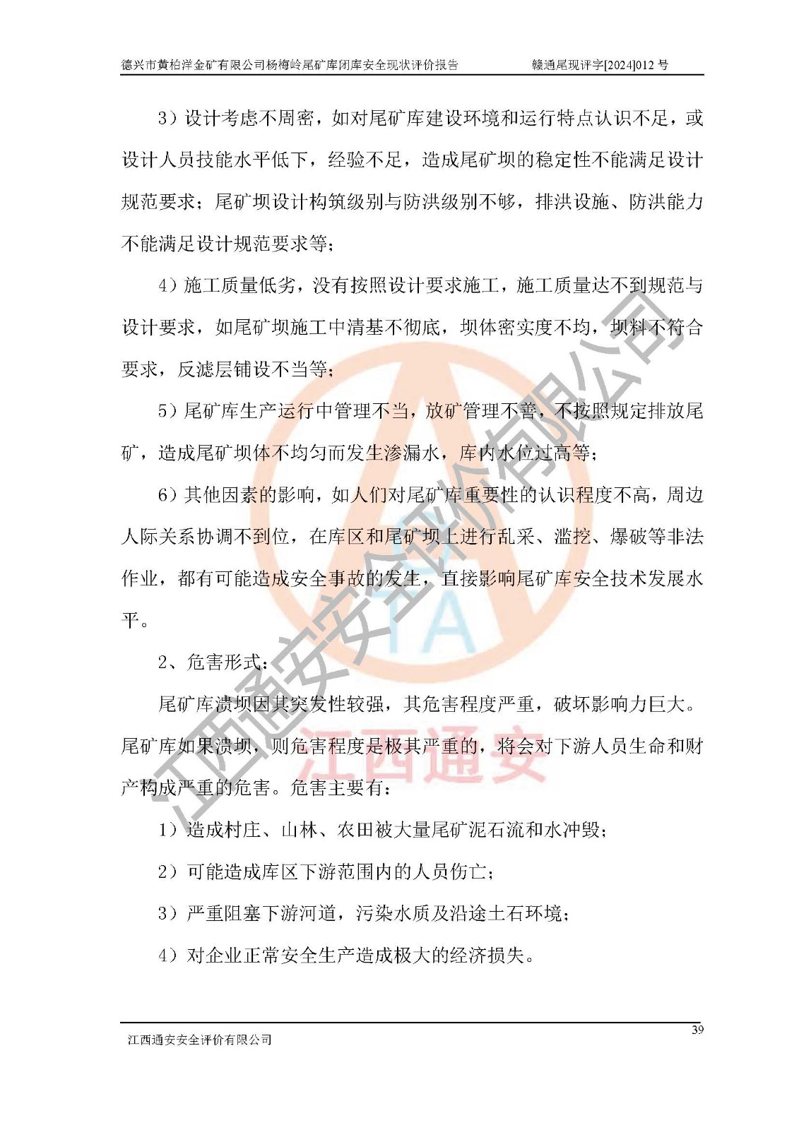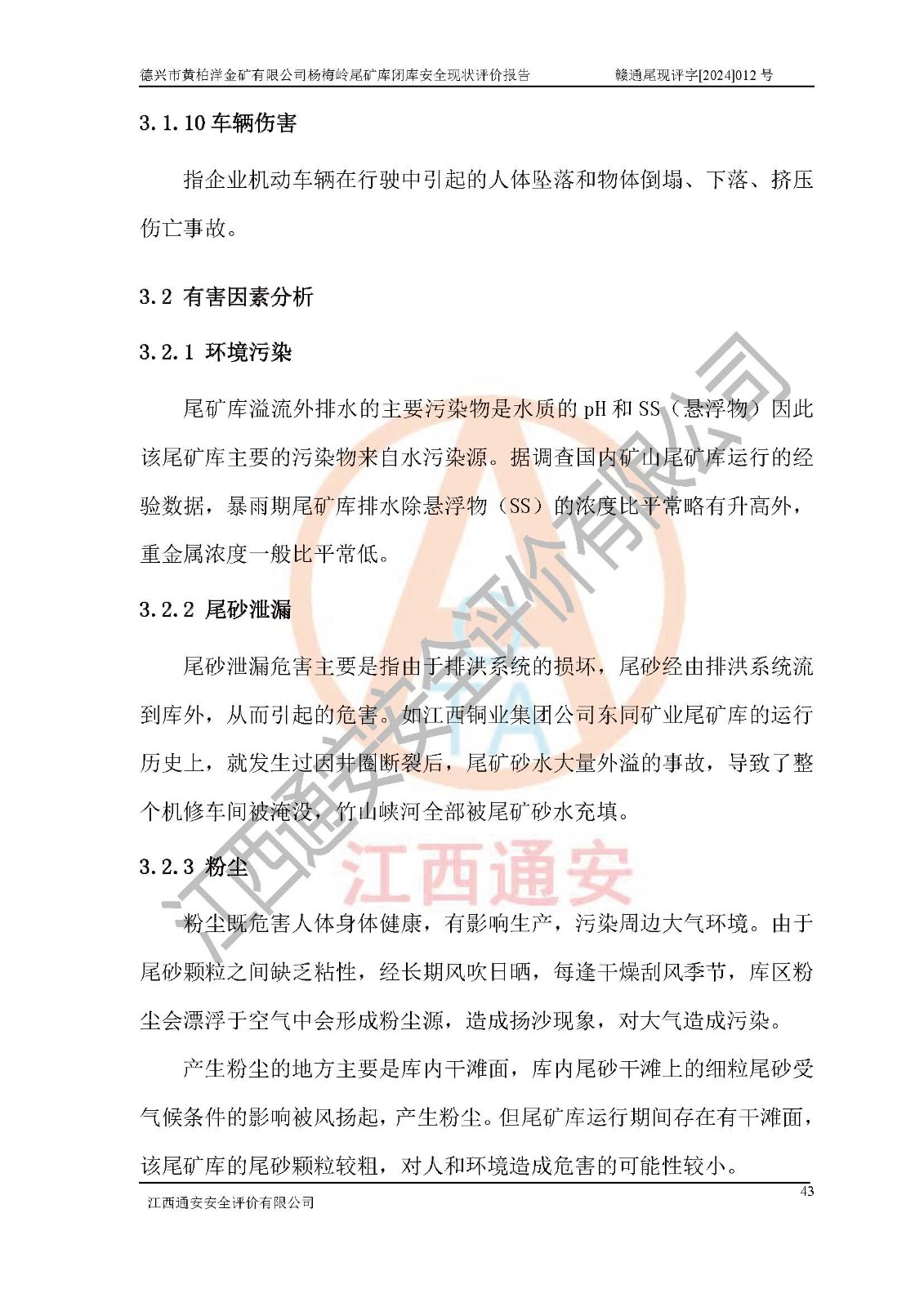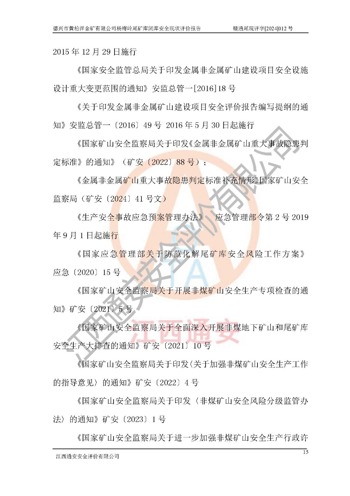 評(píng)價(jià)報(bào)告名稱 | 德興市黃柏洋金礦有限公司楊梅嶺尾礦庫(kù)閉庫(kù)安全現(xiàn)狀評(píng)價(jià)報(bào)告 | |||