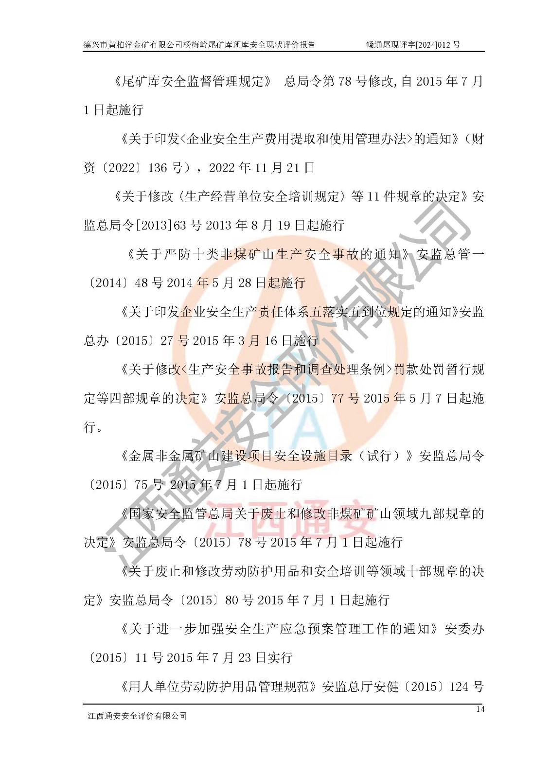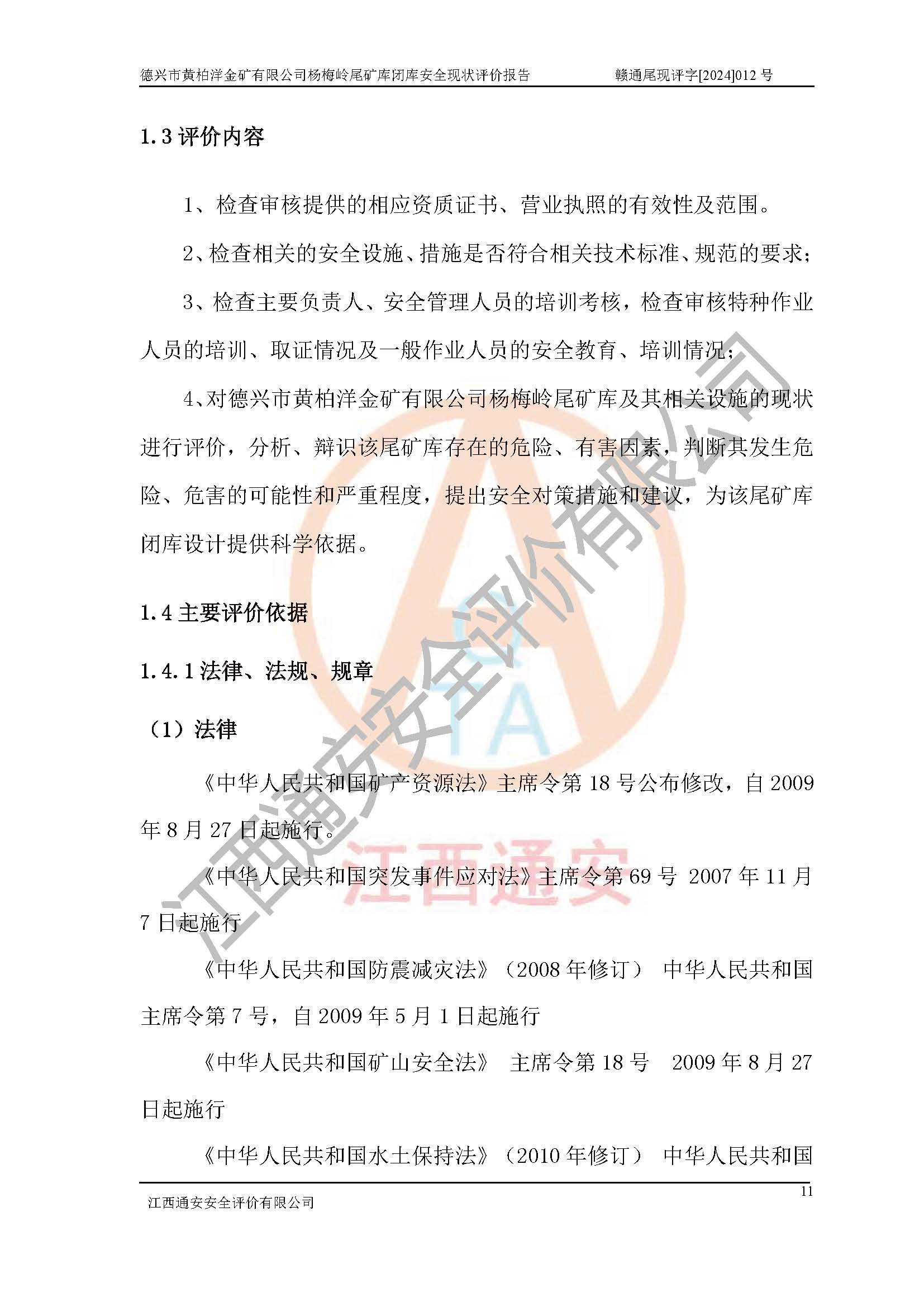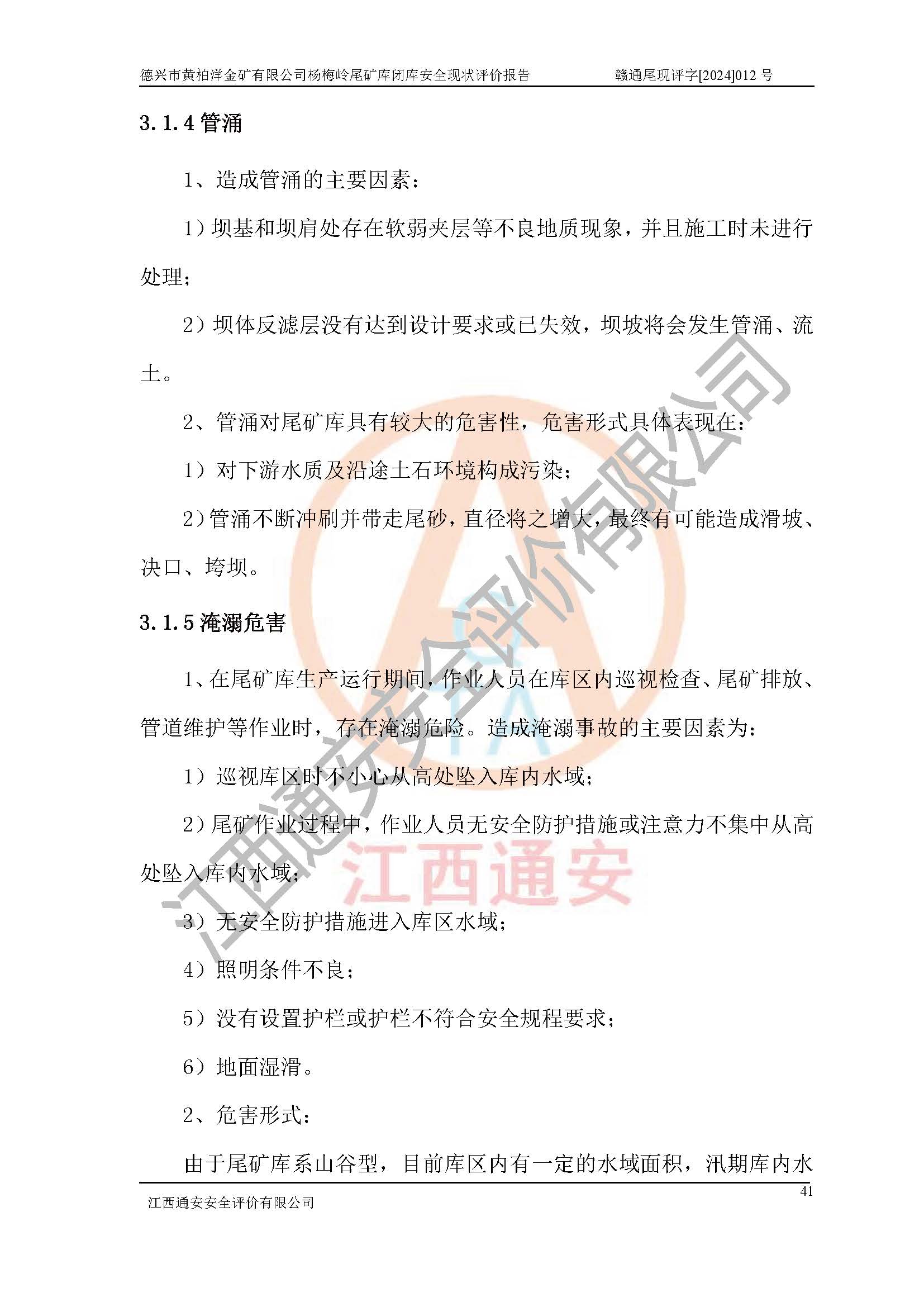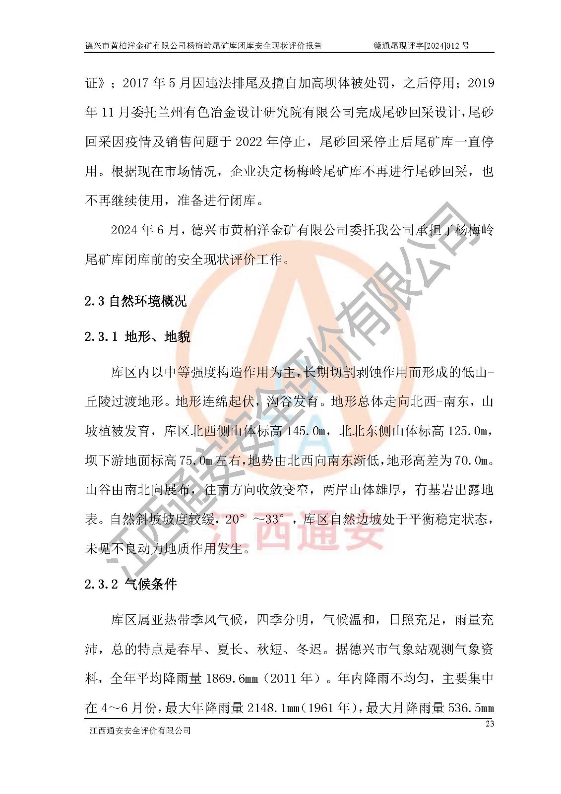 評(píng)價(jià)報(bào)告名稱 | 德興市黃柏洋金礦有限公司楊梅嶺尾礦庫(kù)閉庫(kù)安全現(xiàn)狀評(píng)價(jià)報(bào)告 | |||