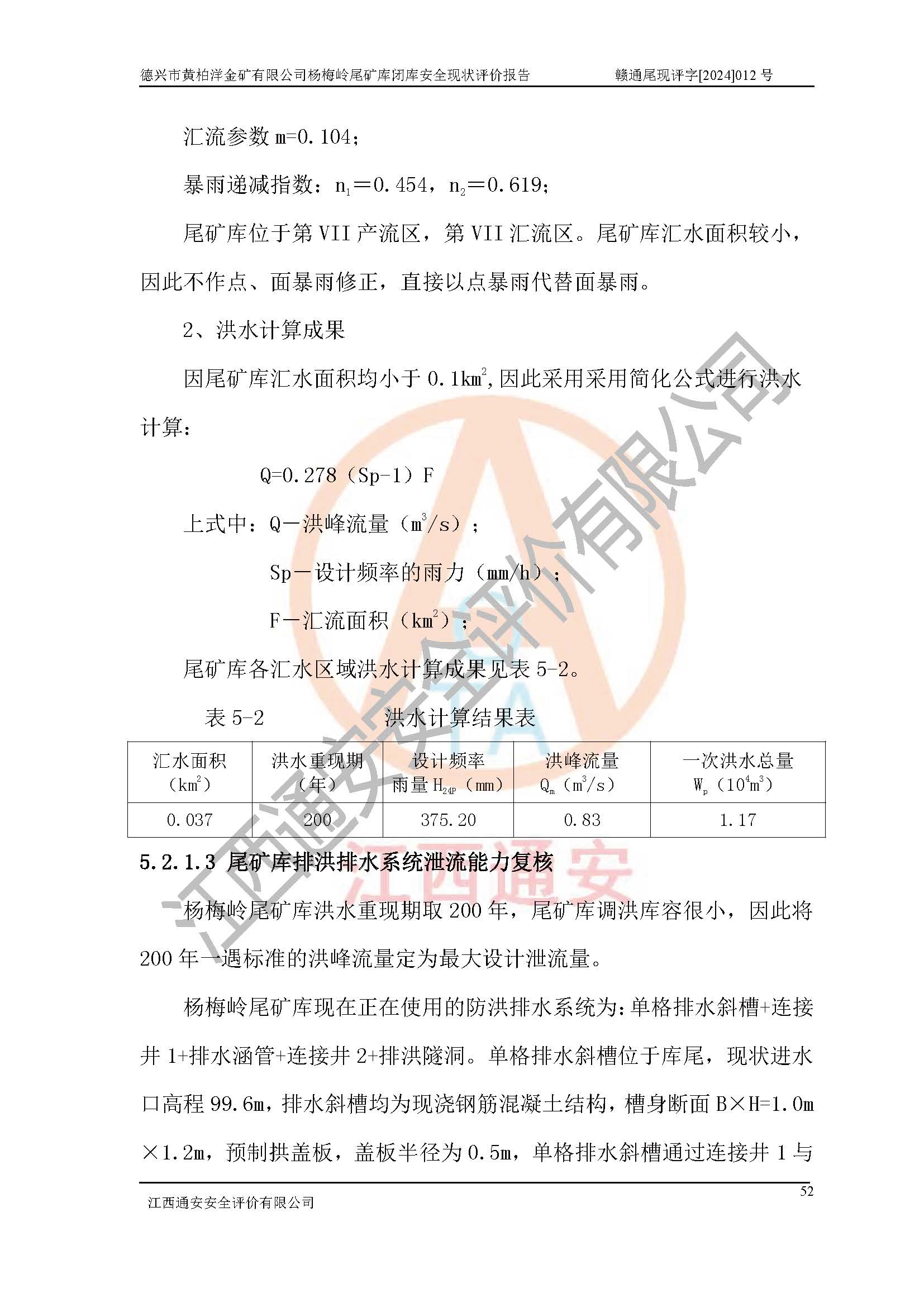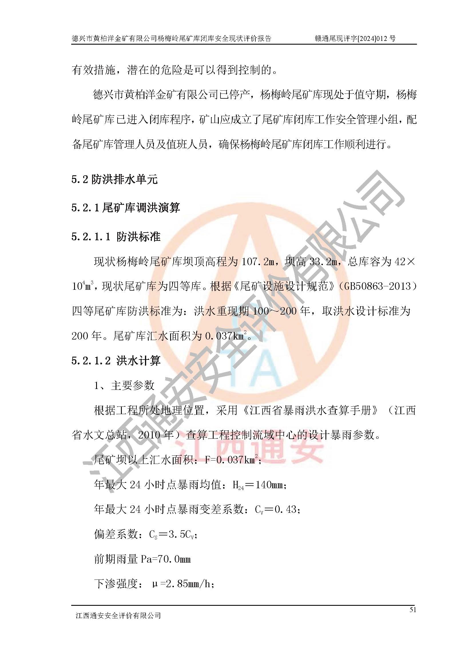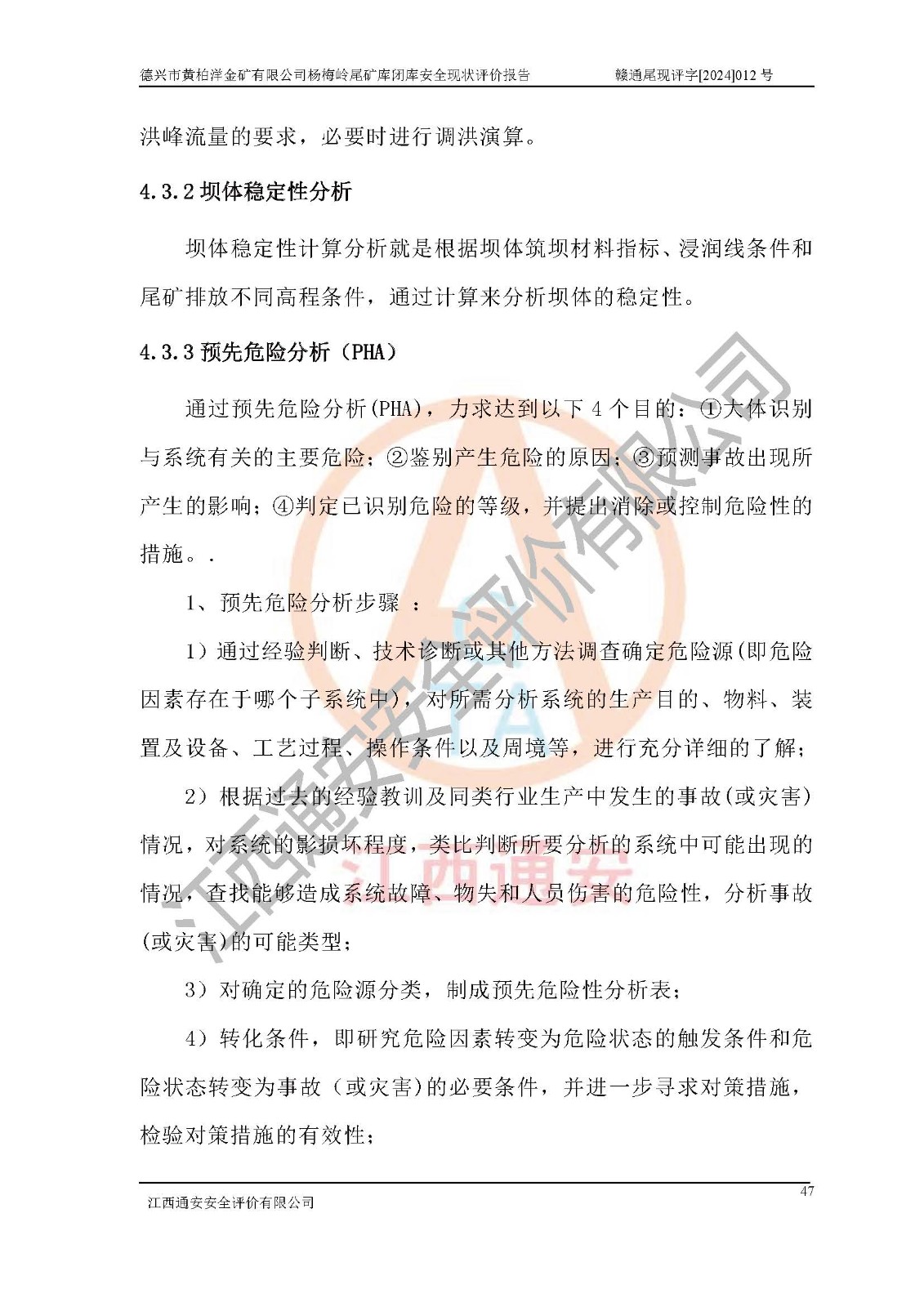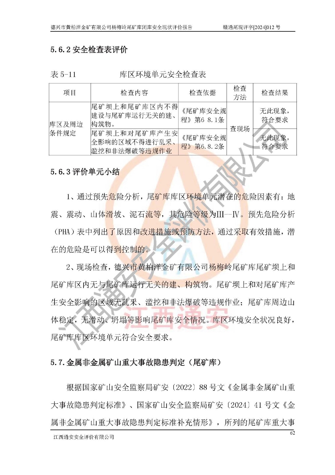 評(píng)價(jià)結(jié)論 | 德興市黃柏洋金礦有限公司楊梅嶺尾礦庫(kù)尾礦壩穩(wěn)定性不滿足規(guī)范要求,壩體***過(guò)設(shè)計(jì)總壩高,尾礦庫(kù)*過(guò)設(shè)計(jì)庫(kù)容貯存尾礦,未設(shè)置人工監(jiān)測(cè)設(shè)施;堆積子壩的外坡比陡于設(shè)計(jì)坡比,未配備尾礦庫(kù)專職安全生產(chǎn)管理人員、特種作業(yè)人員及專業(yè)技術(shù)人員等;根據(jù)**礦山安全監(jiān)察局礦安〔2022〕88號(hào)文《金屬非金屬礦山重大事故隱患判定標(biāo)準(zhǔn)》、**礦山安全監(jiān)察局礦安〔2024〕41號(hào)文《金屬非金屬礦山重大事故隱患判定標(biāo)準(zhǔn)補(bǔ)充情形》,尾礦庫(kù)存在重大事故隱患。德興市黃柏洋金礦有限公司楊梅嶺尾礦庫(kù)應(yīng)盡快完成所有閉庫(kù)程序,閉庫(kù)設(shè)計(jì)應(yīng)按正常運(yùn)行標(biāo)準(zhǔn)進(jìn)行閉庫(kù)整治設(shè)計(jì),**尾礦庫(kù)防洪能力和尾礦壩穩(wěn)定性滿足規(guī)程要求,維持尾礦庫(kù)閉庫(kù)后長(zhǎng)期安全穩(wěn)定。 | |||