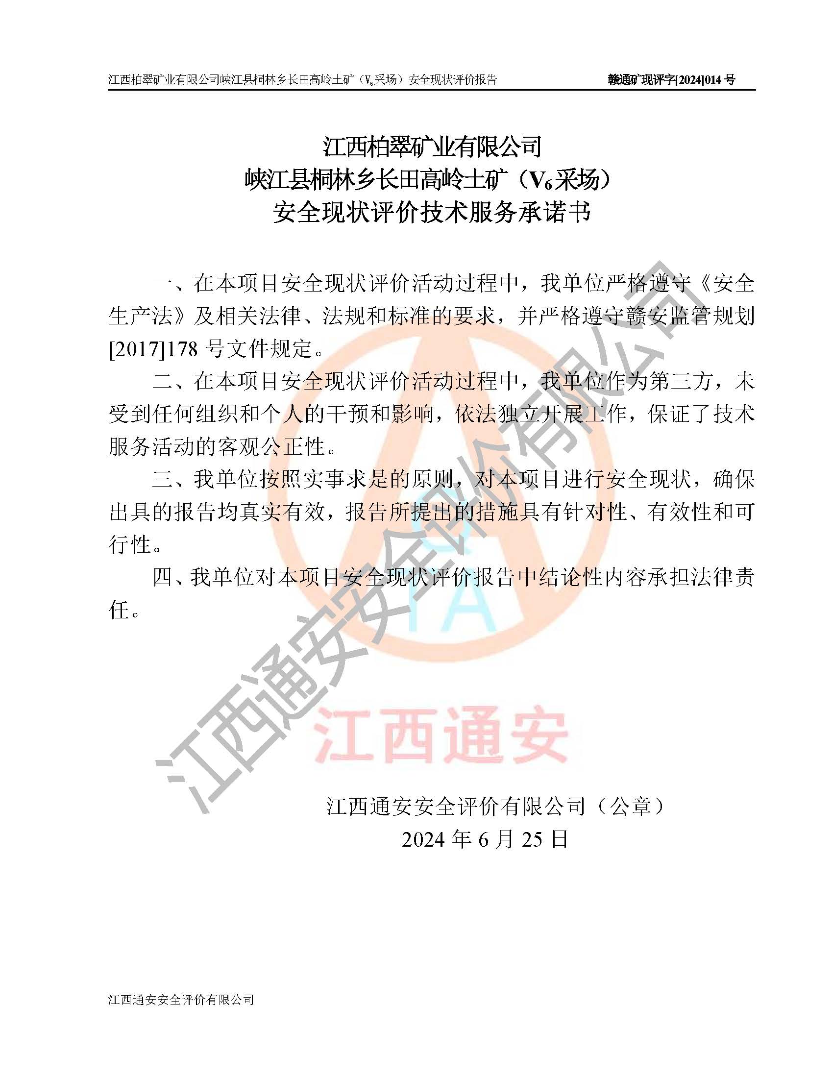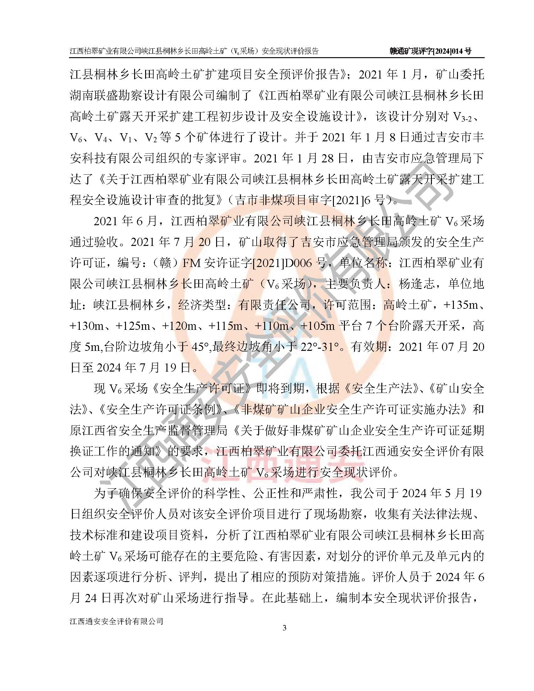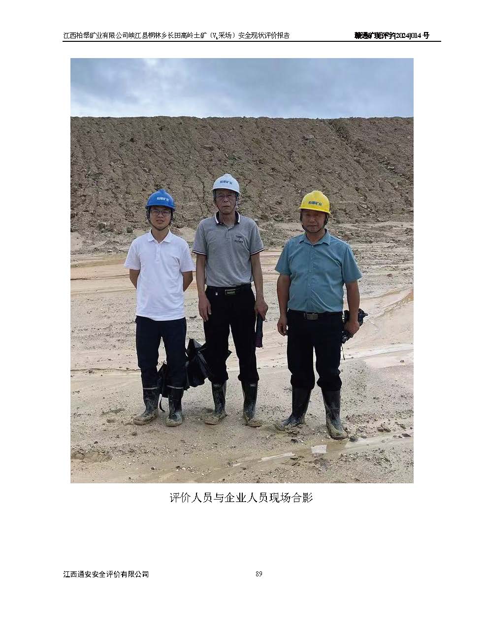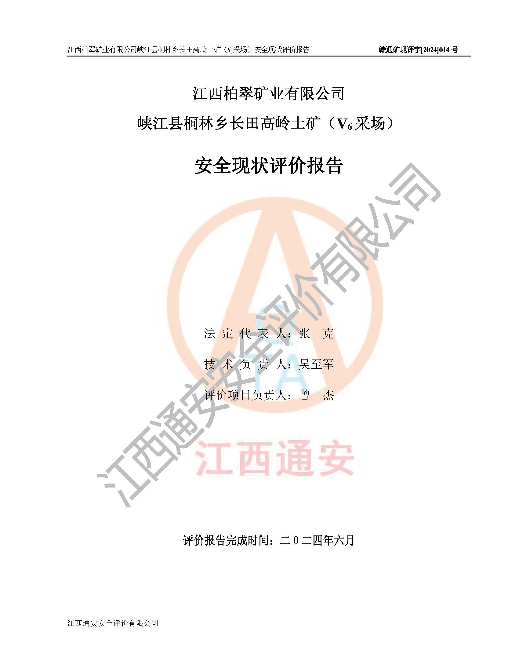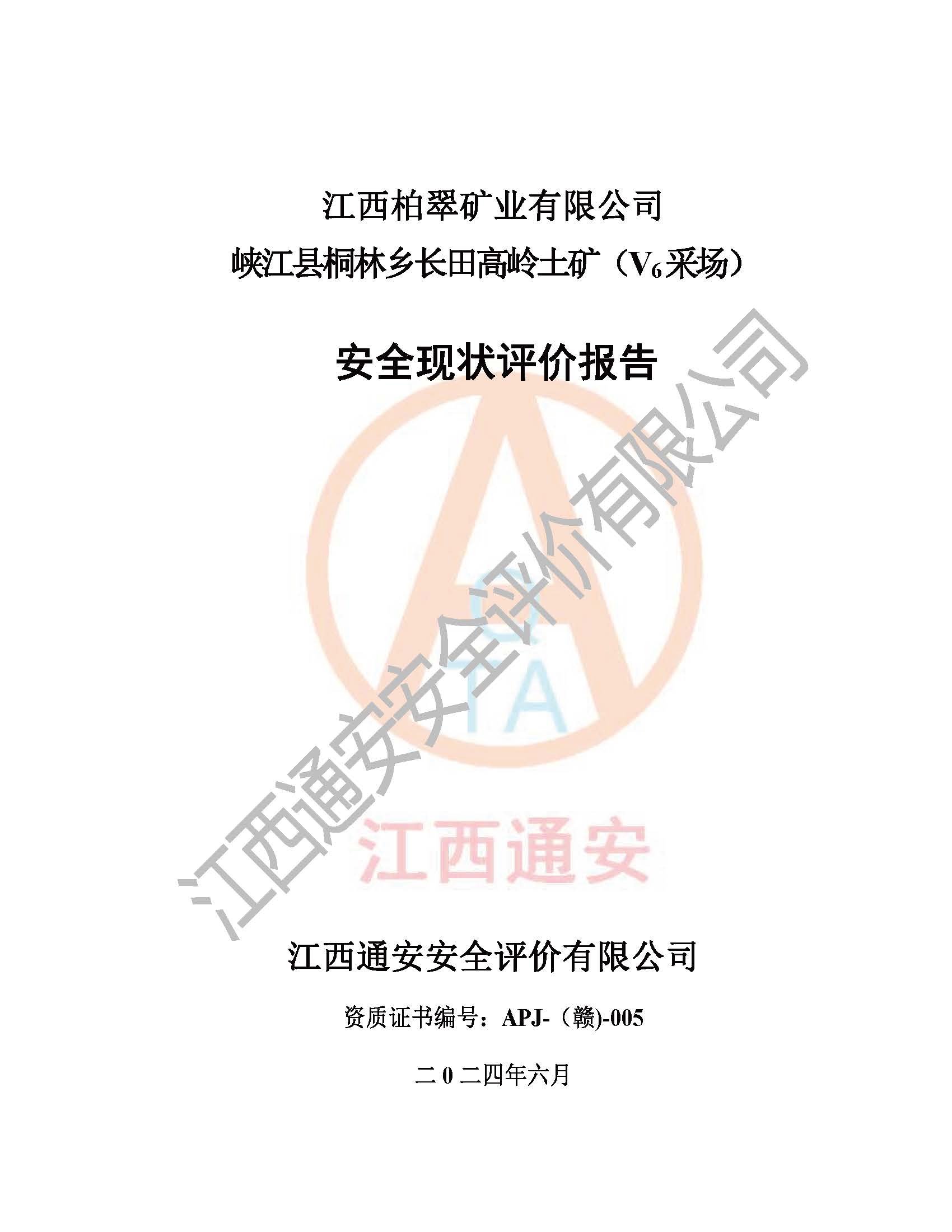 評(píng)價(jià)報(bào)告名稱 | 江西柏翠礦業(yè)有限公司峽江縣桐林鄉(xiāng)長(zhǎng)田高嶺土礦(V6采場(chǎng))安全現(xiàn)狀評(píng)價(jià)報(bào)告 | ||||