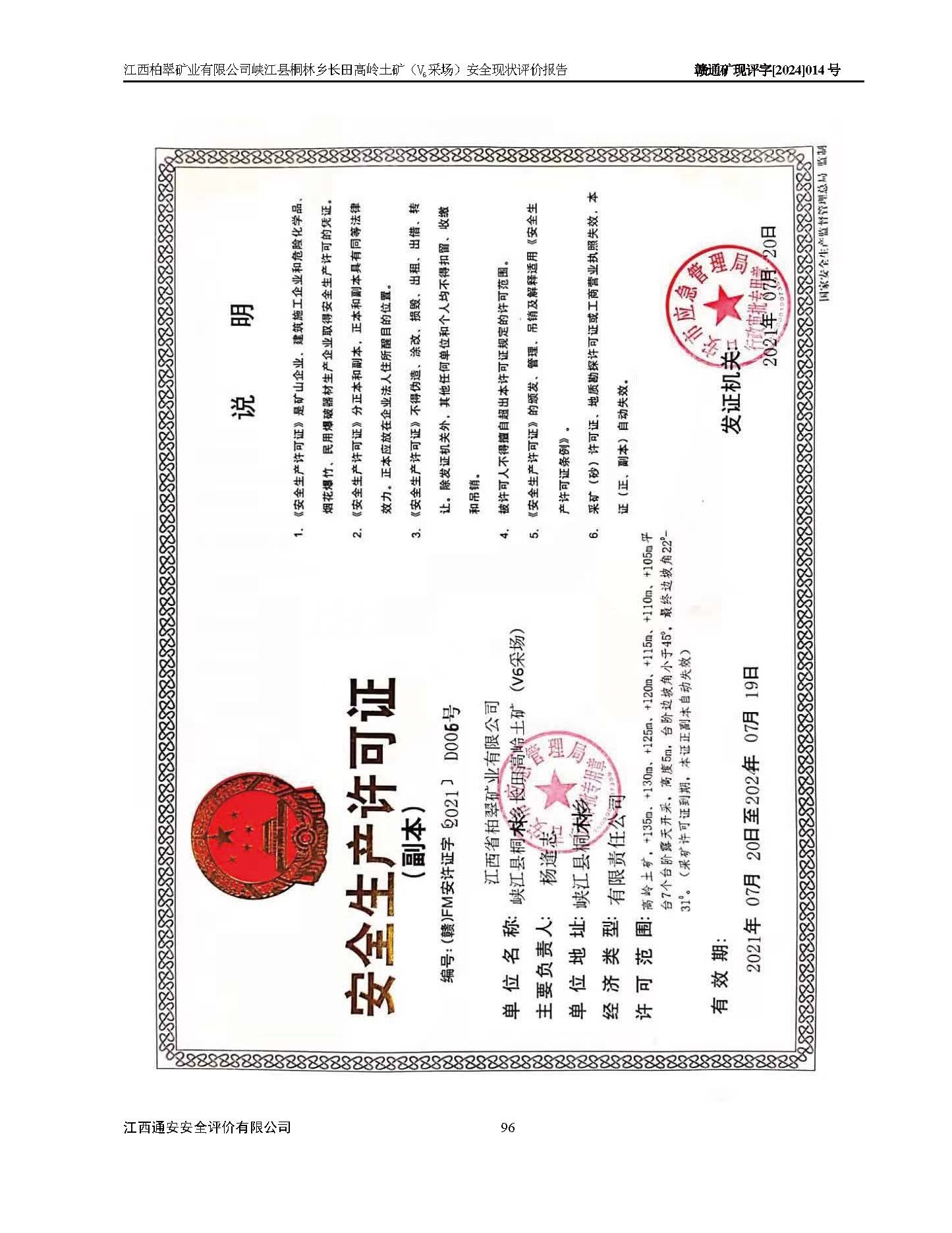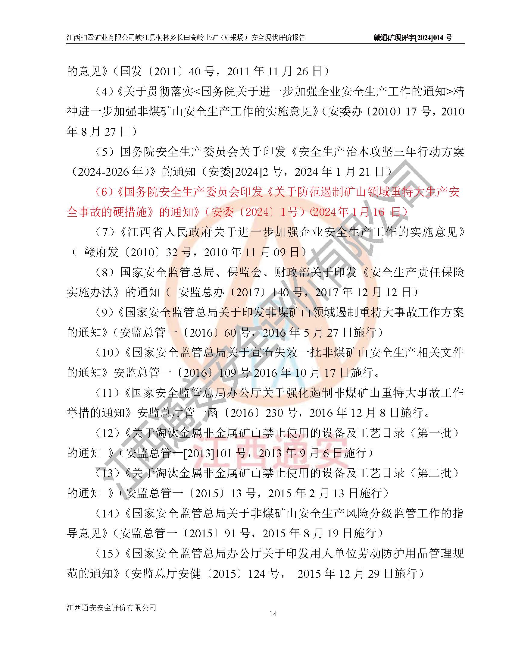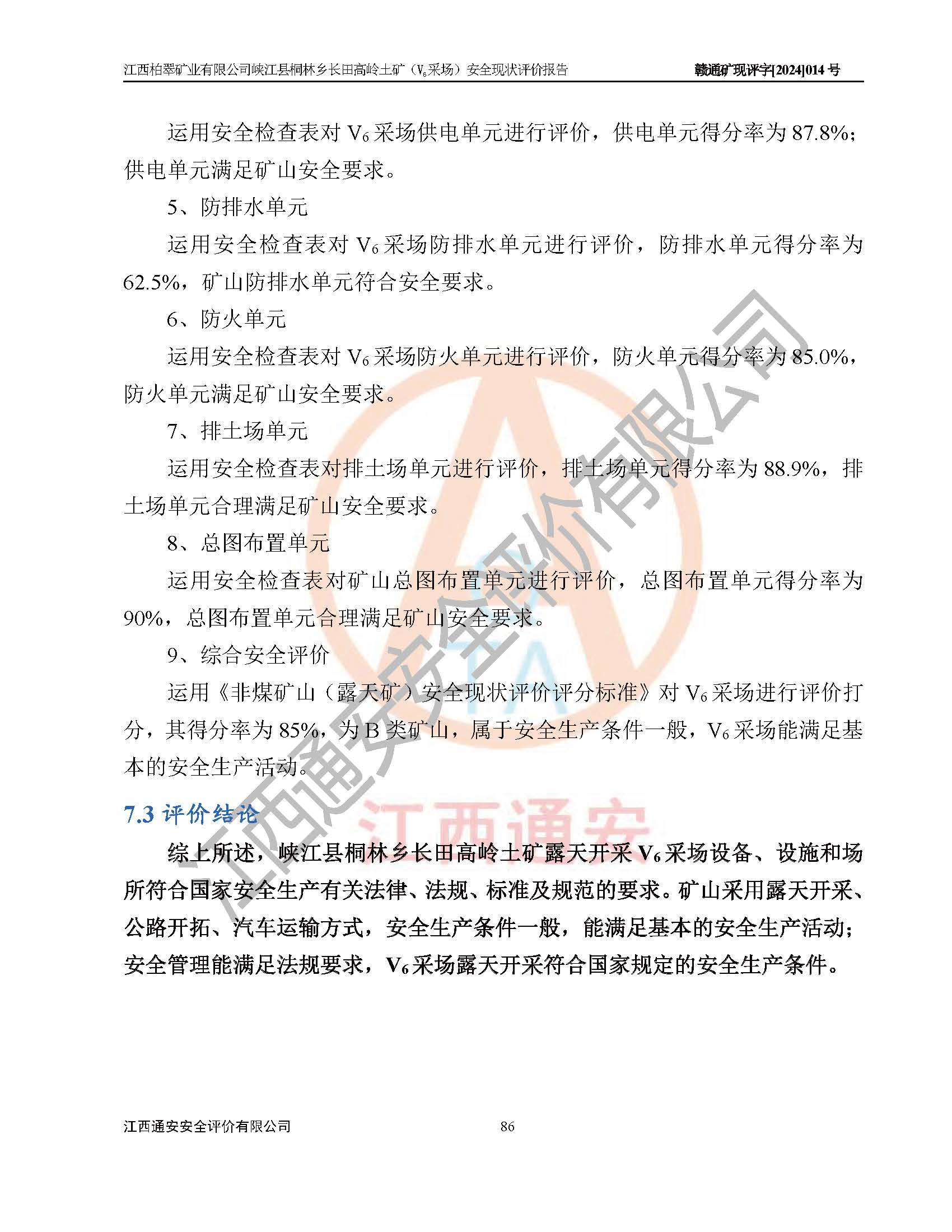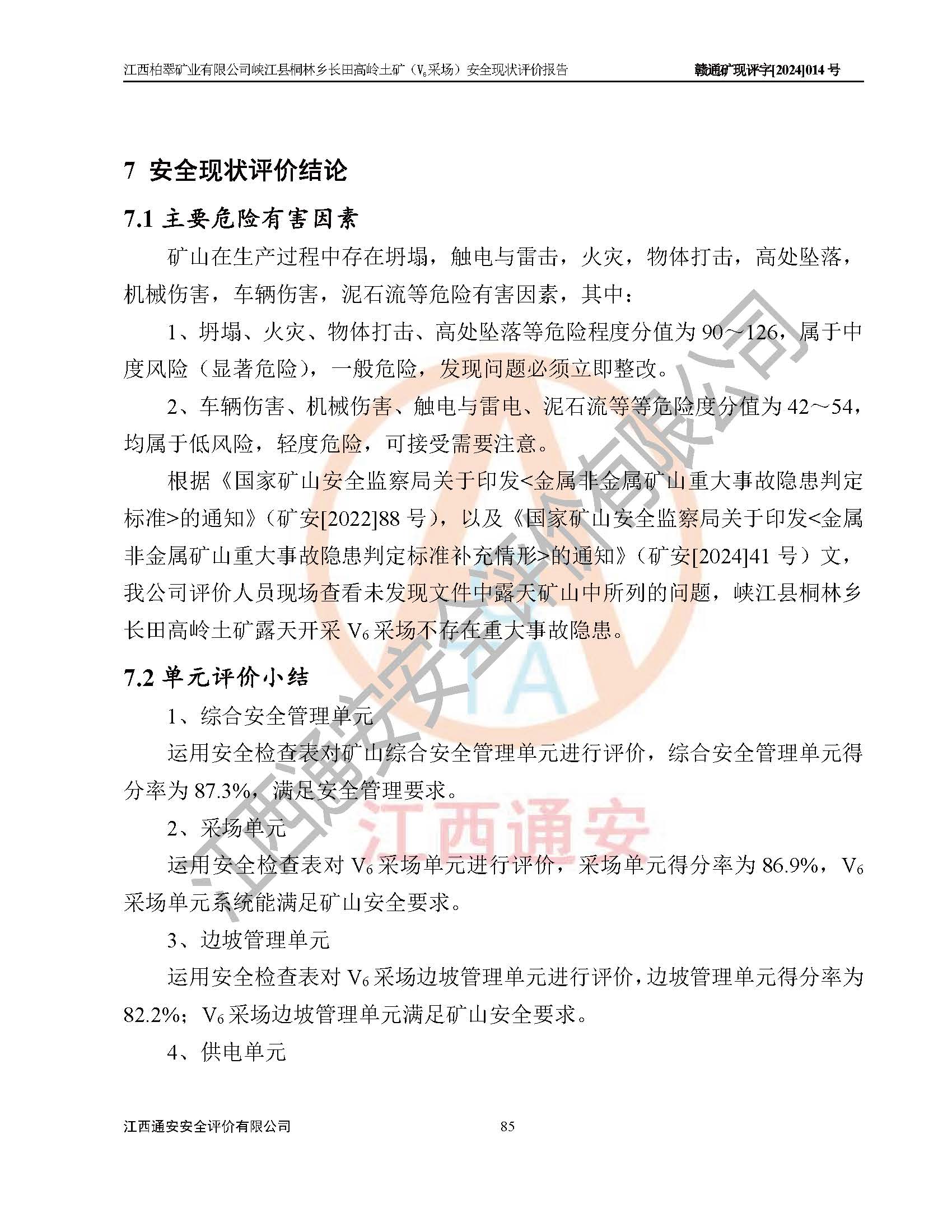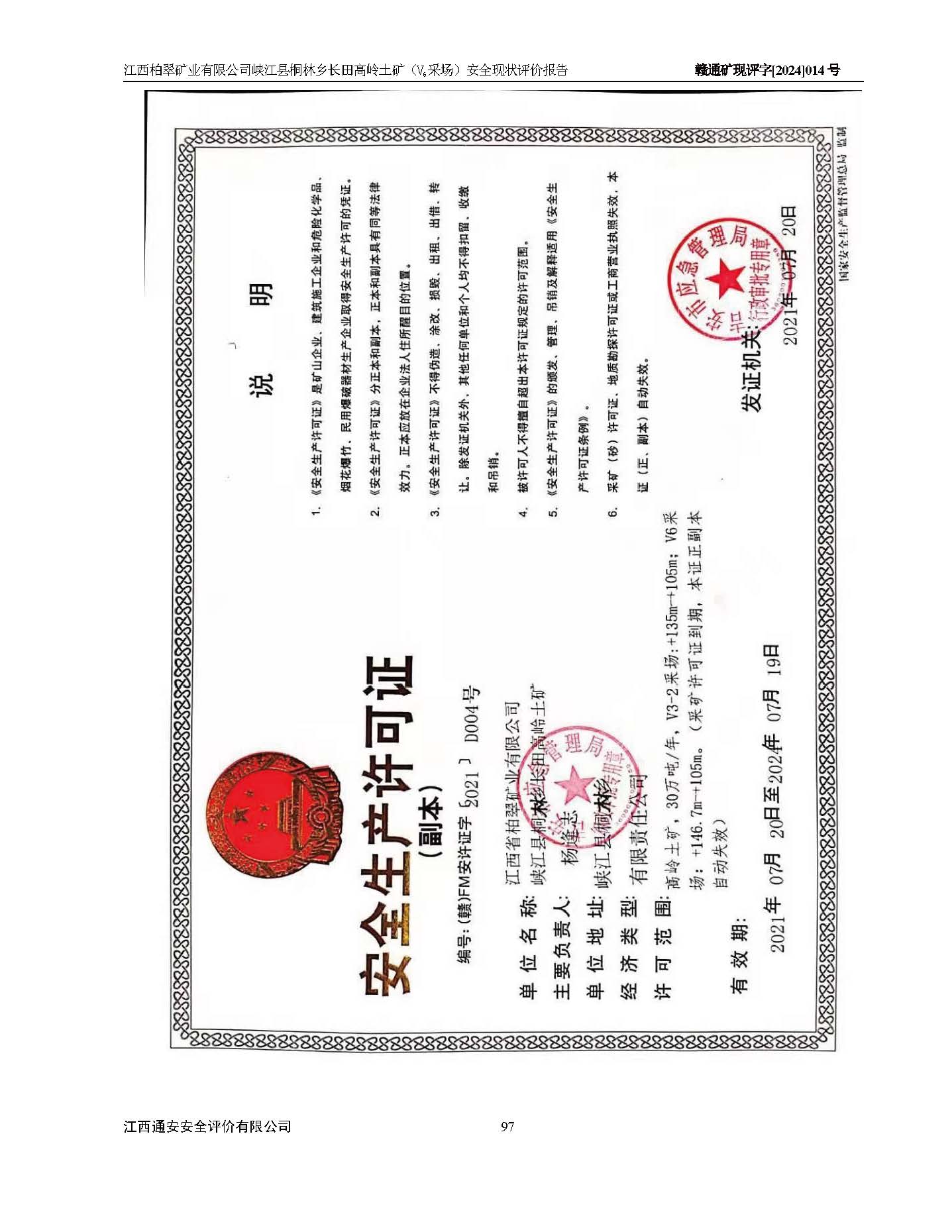 評(píng)價(jià)報(bào)告名稱 | 江西柏翠礦業(yè)有限公司峽江縣桐林鄉(xiāng)長(zhǎng)田高嶺土礦(V6采場(chǎng))安全現(xiàn)狀評(píng)價(jià)報(bào)告 | ||||
