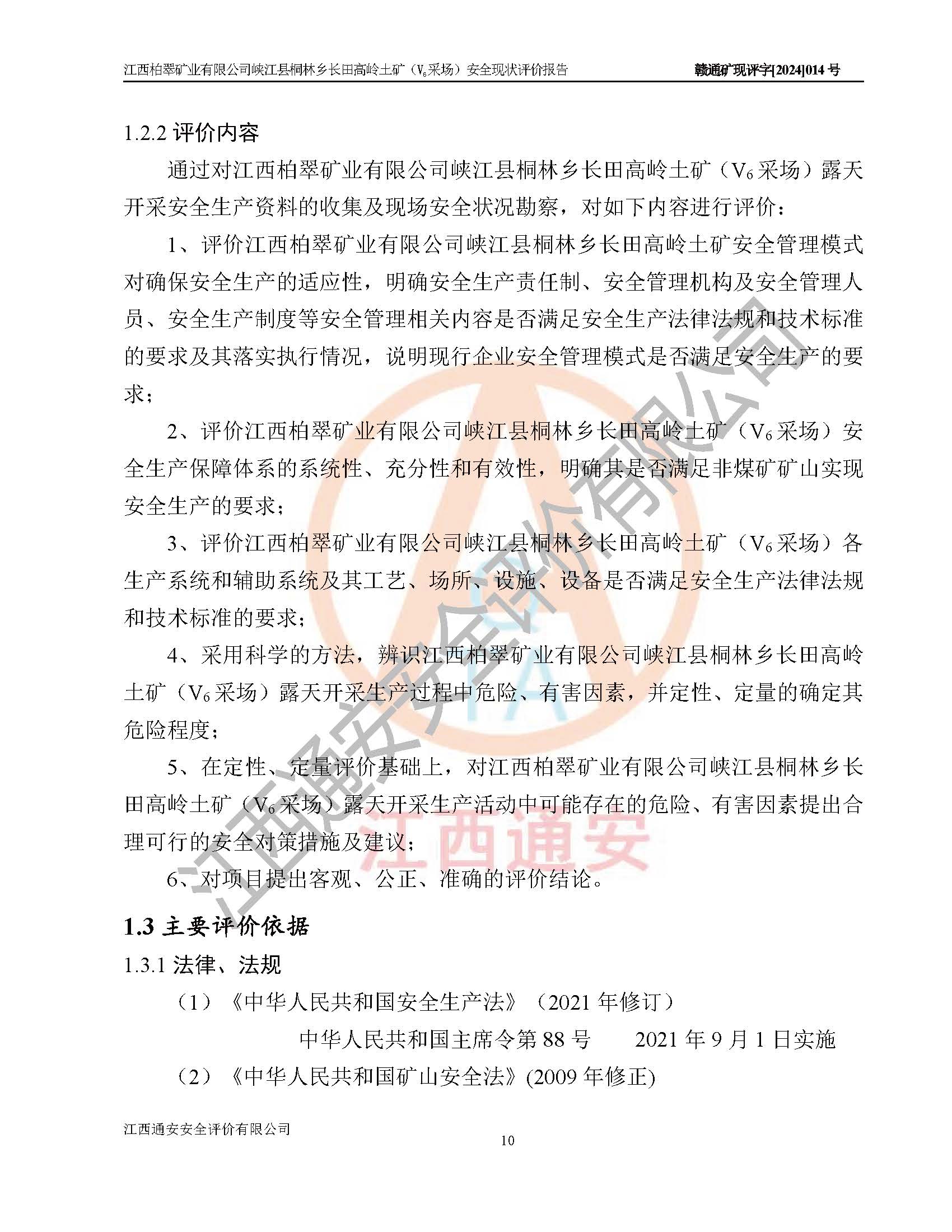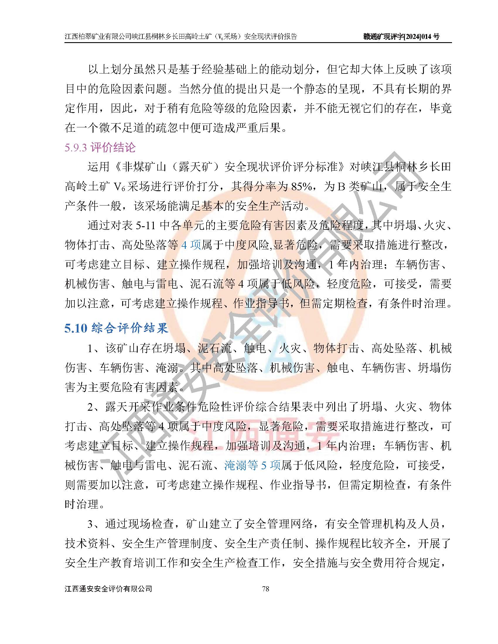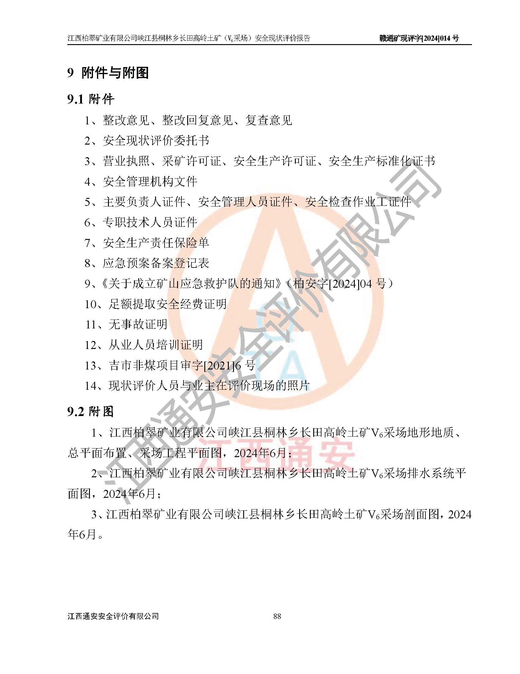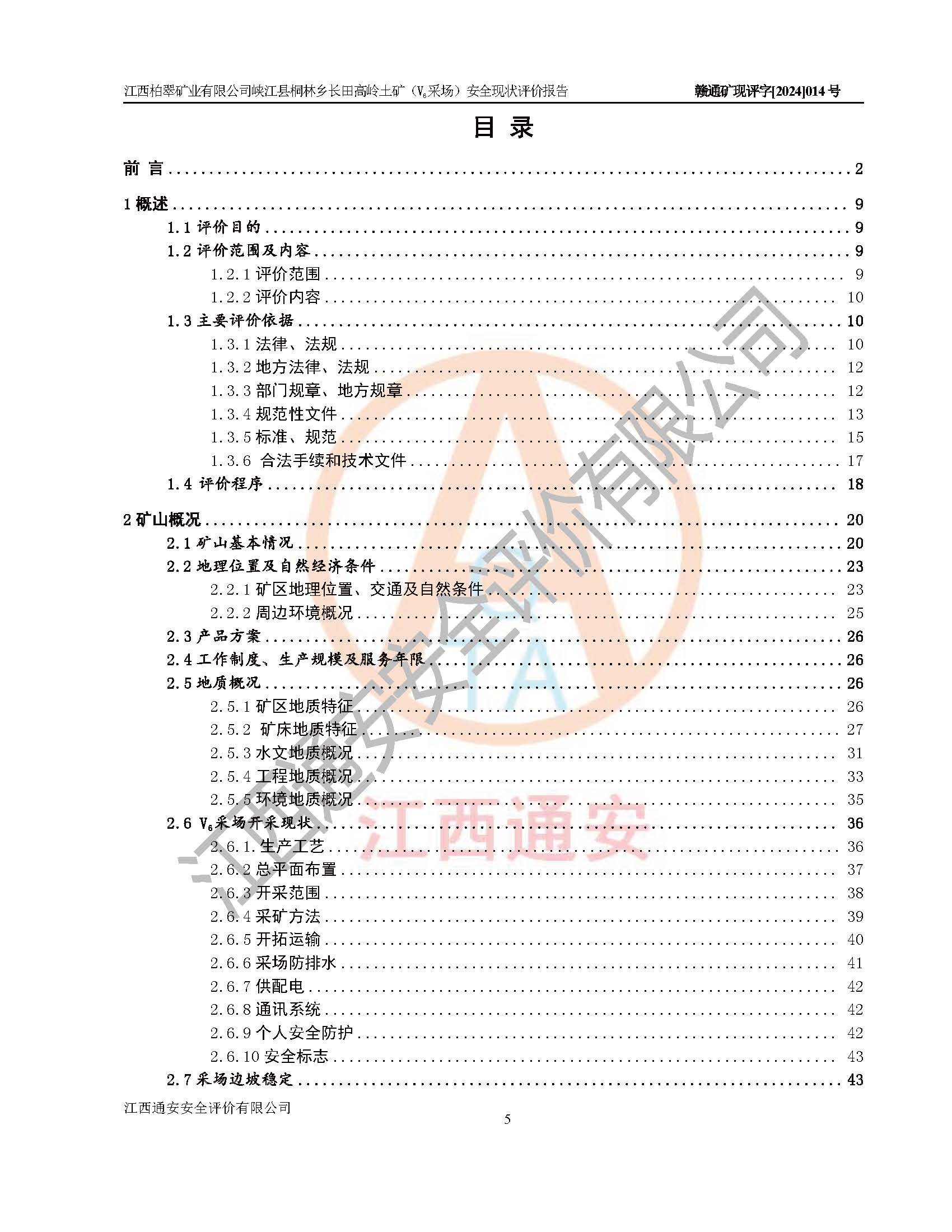 評(píng)價(jià)報(bào)告名稱 | 江西柏翠礦業(yè)有限公司峽江縣桐林鄉(xiāng)長(zhǎng)田高嶺土礦(V6采場(chǎng))安全現(xiàn)狀評(píng)價(jià)報(bào)告 | ||||