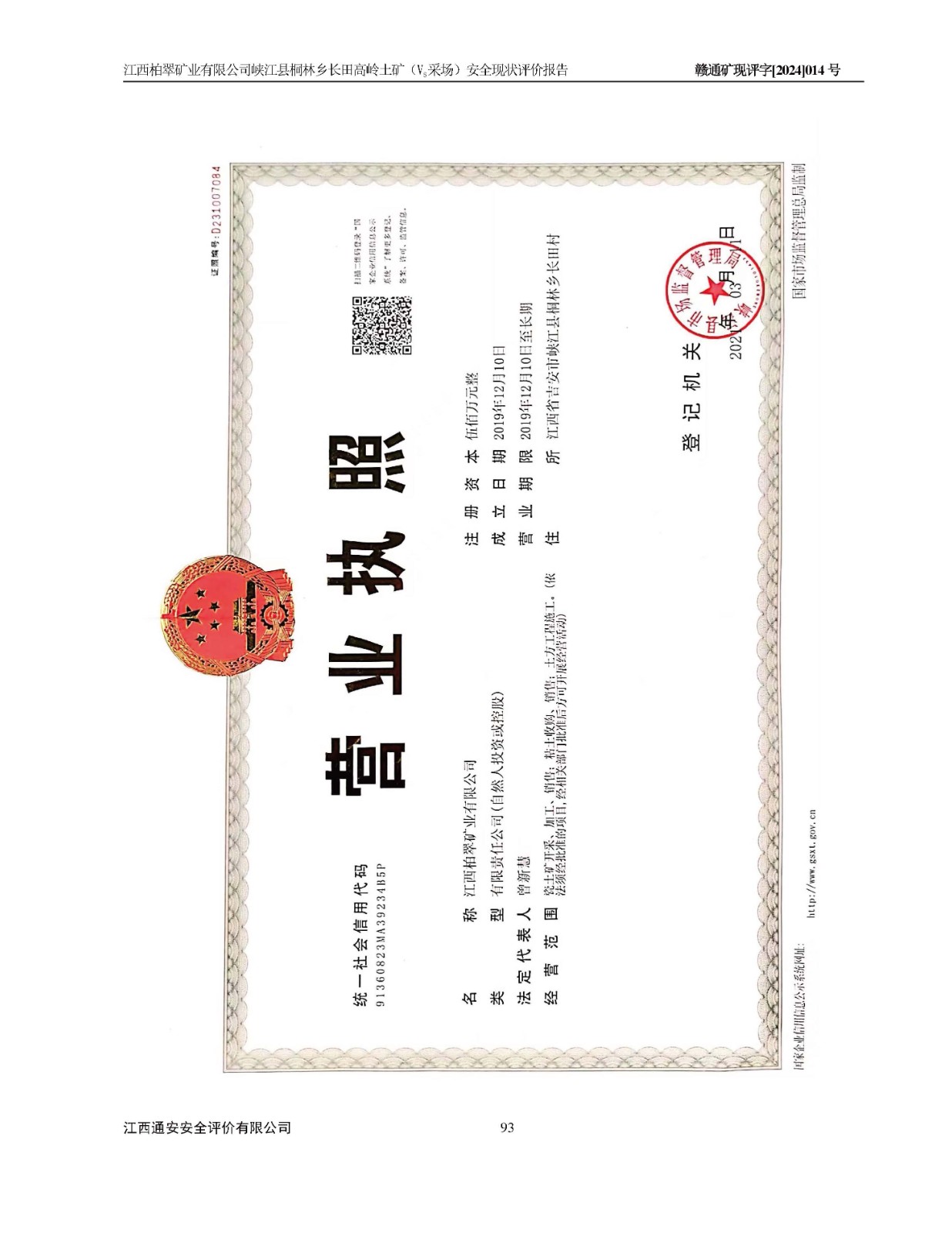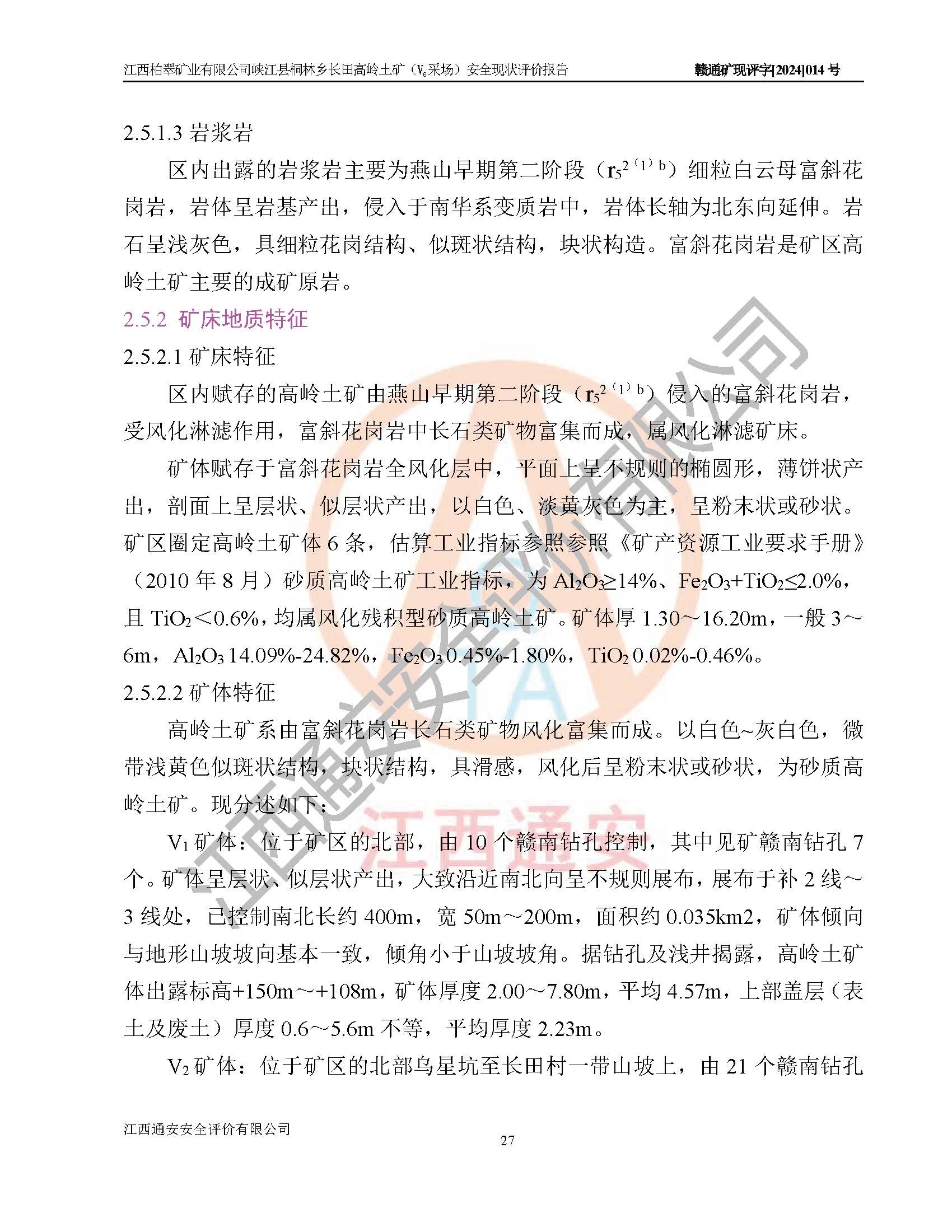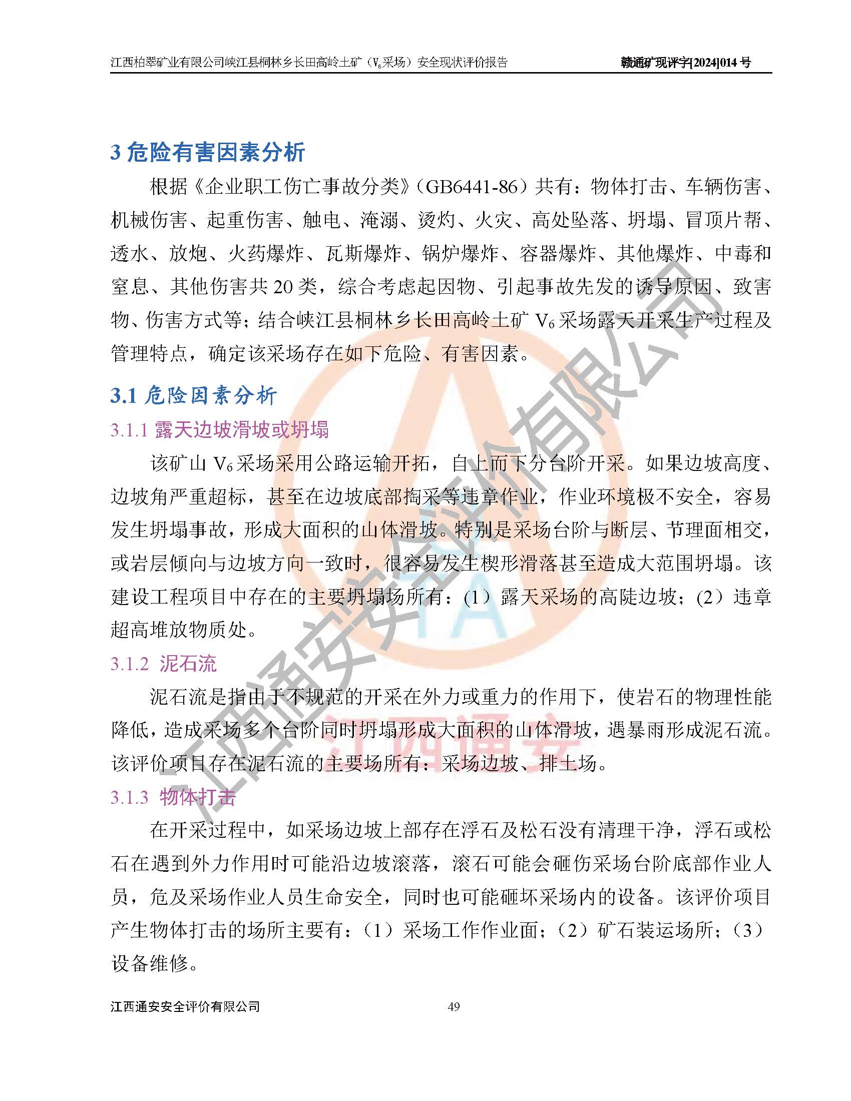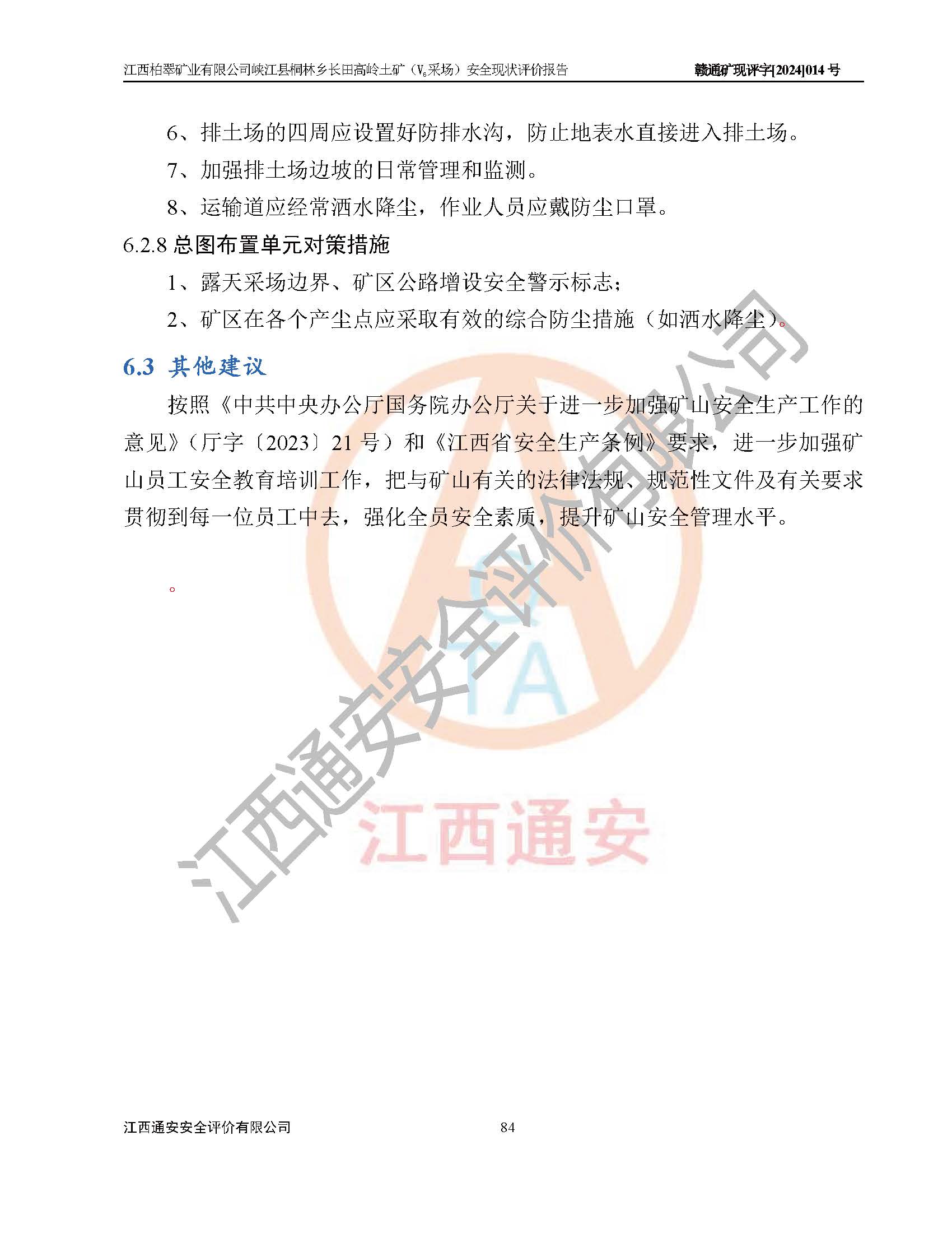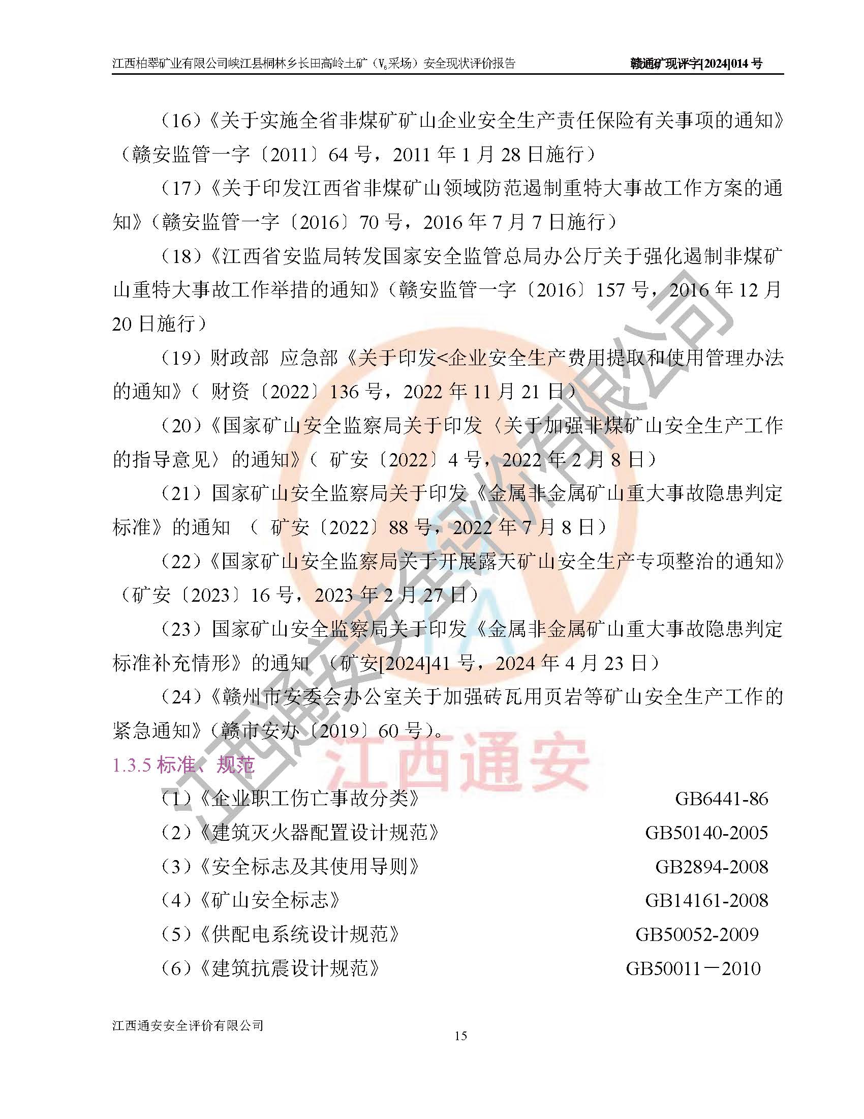評(píng)價(jià)報(bào)告名稱 | 江西柏翠礦業(yè)有限公司峽江縣桐林鄉(xiāng)長(zhǎng)田高嶺土礦(V6采場(chǎng))安全現(xiàn)狀評(píng)價(jià)報(bào)告 | ||||