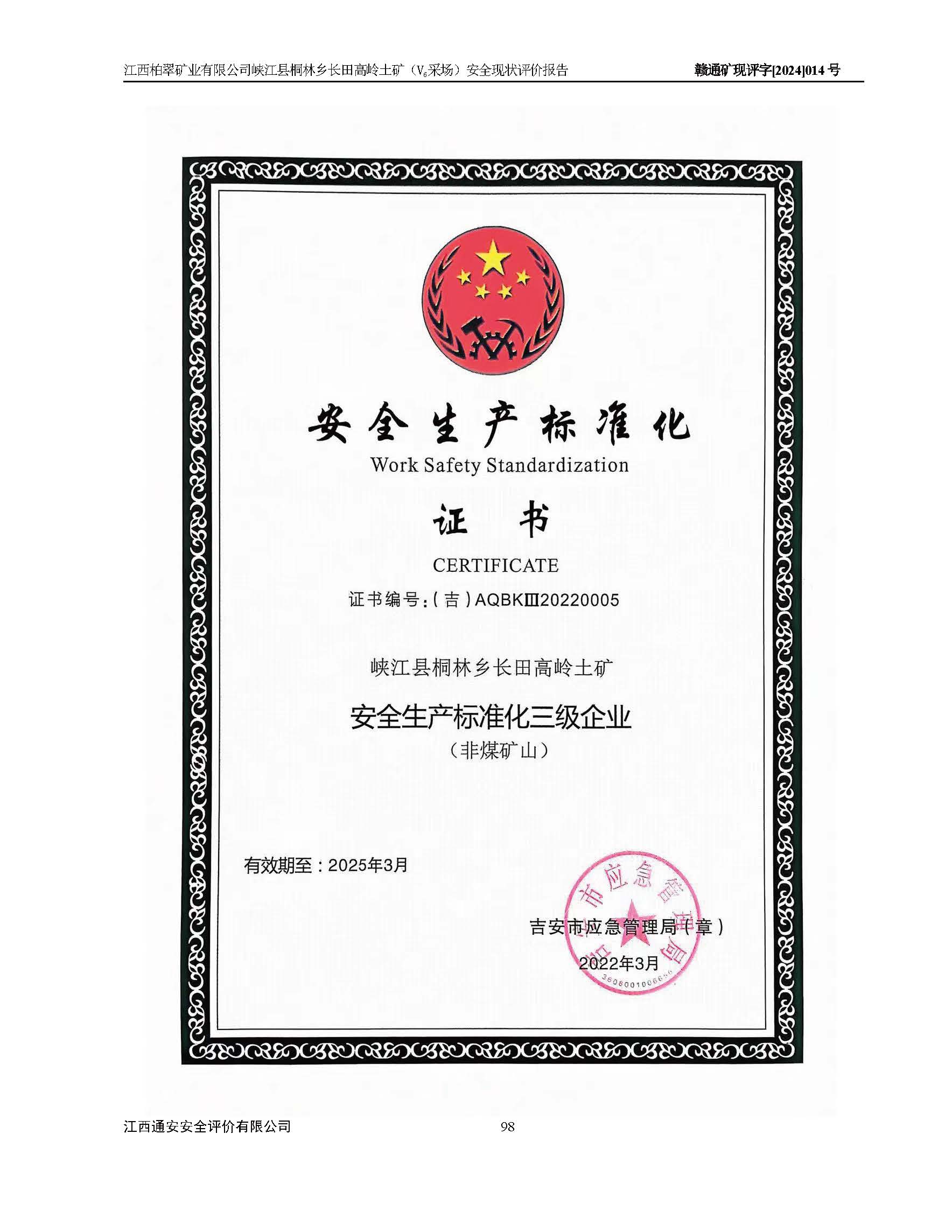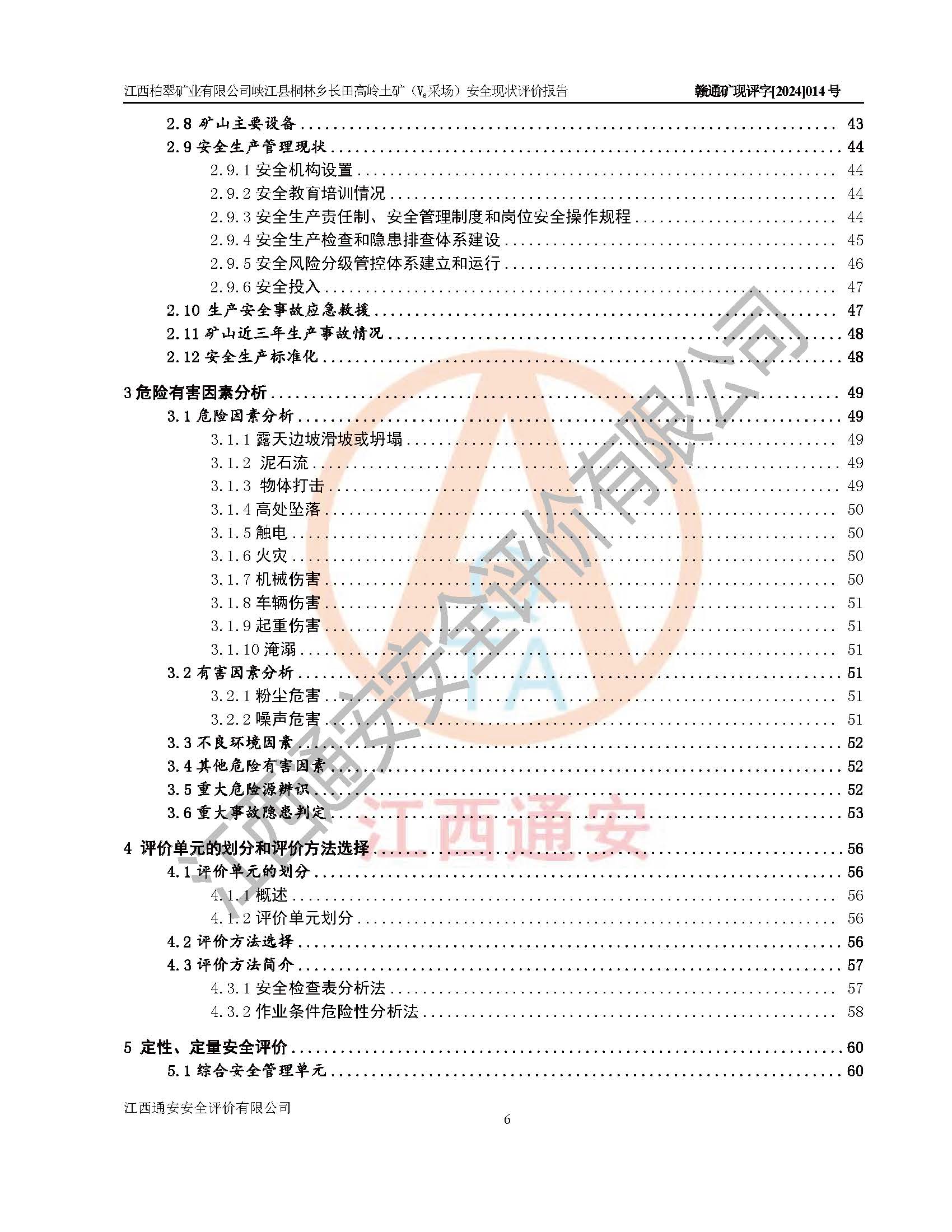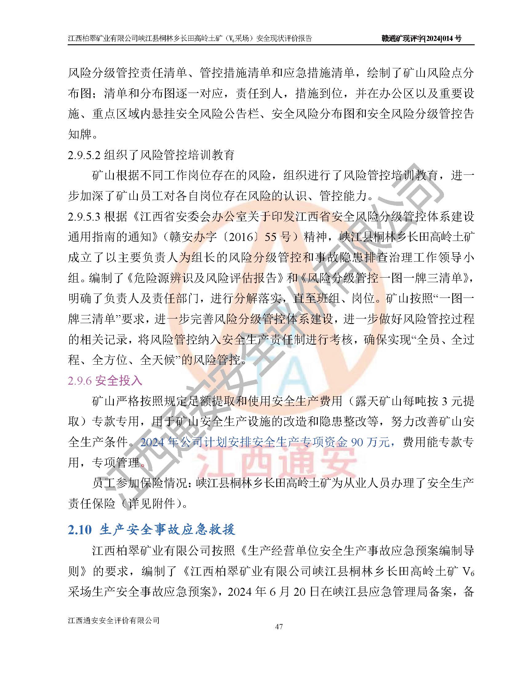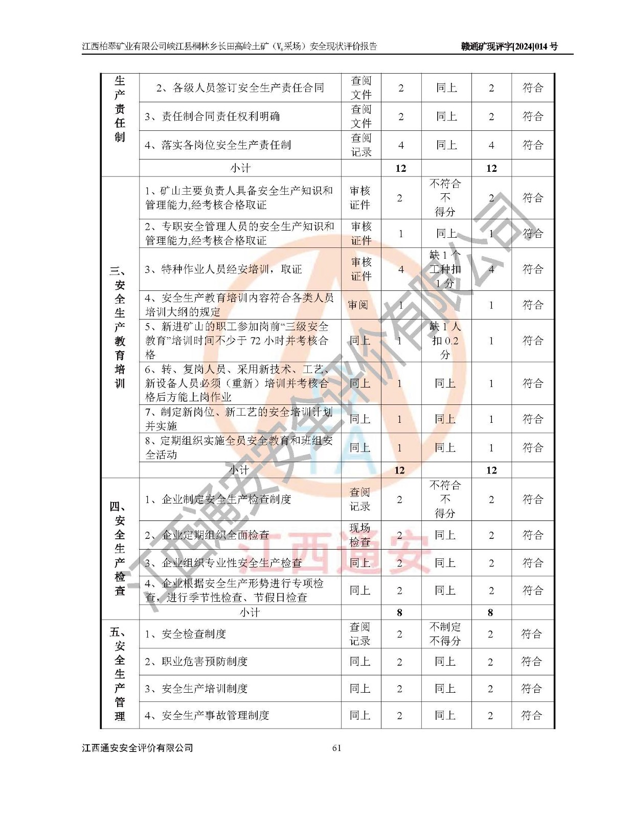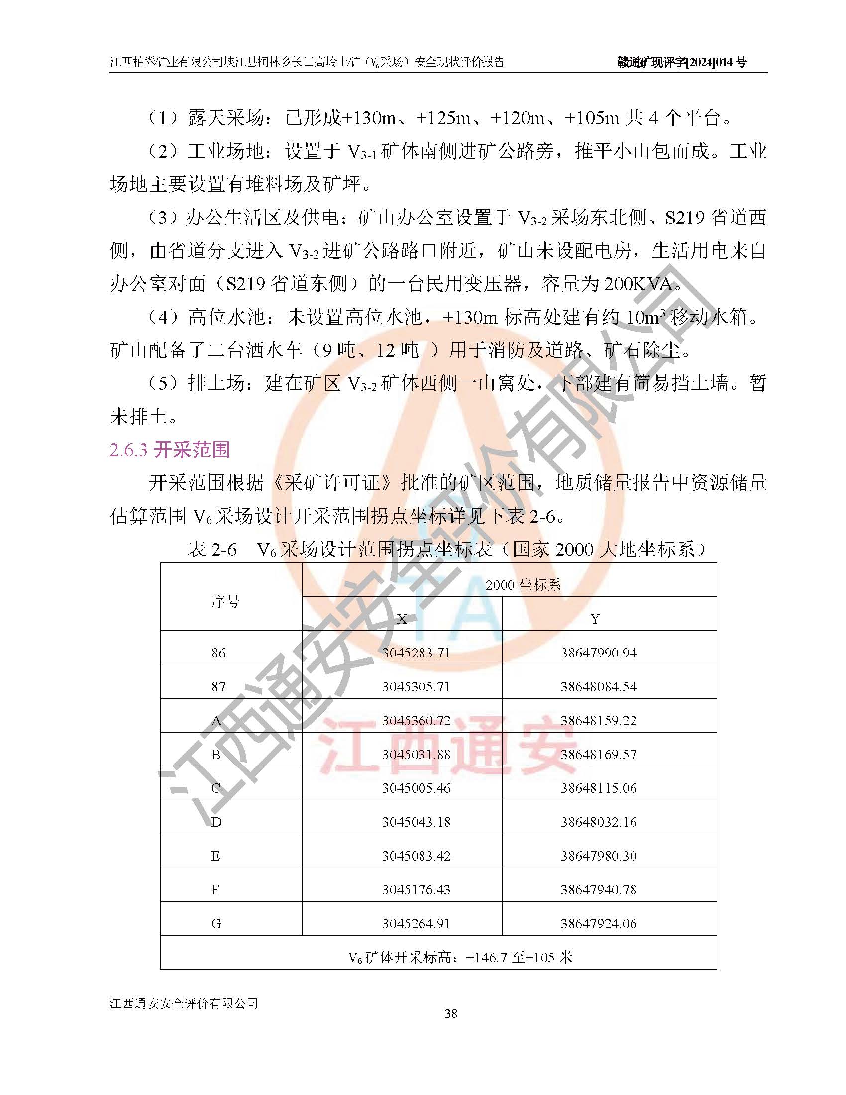 評(píng)價(jià)報(bào)告名稱 | 江西柏翠礦業(yè)有限公司峽江縣桐林鄉(xiāng)長(zhǎng)田高嶺土礦(V6采場(chǎng))安全現(xiàn)狀評(píng)價(jià)報(bào)告 | ||||