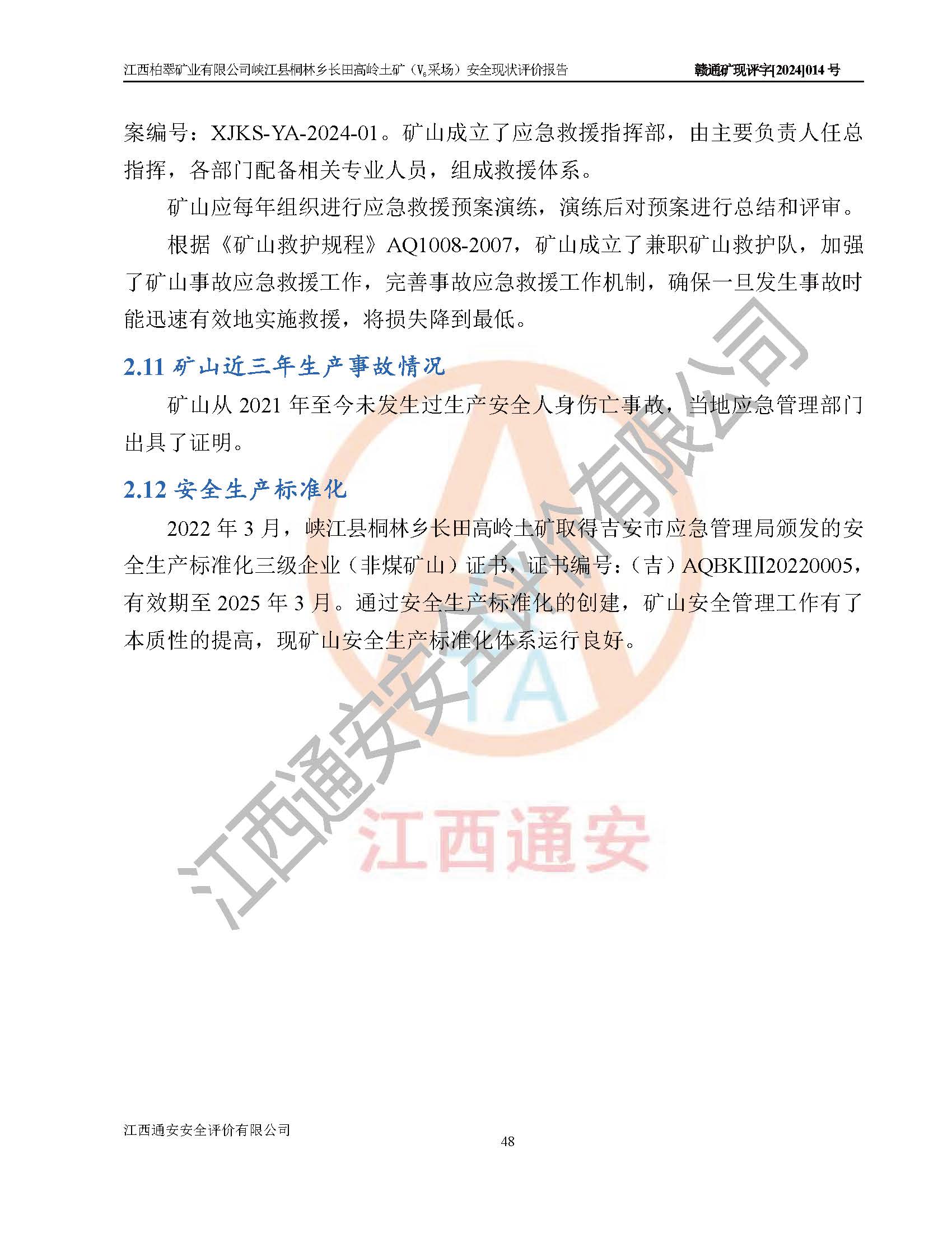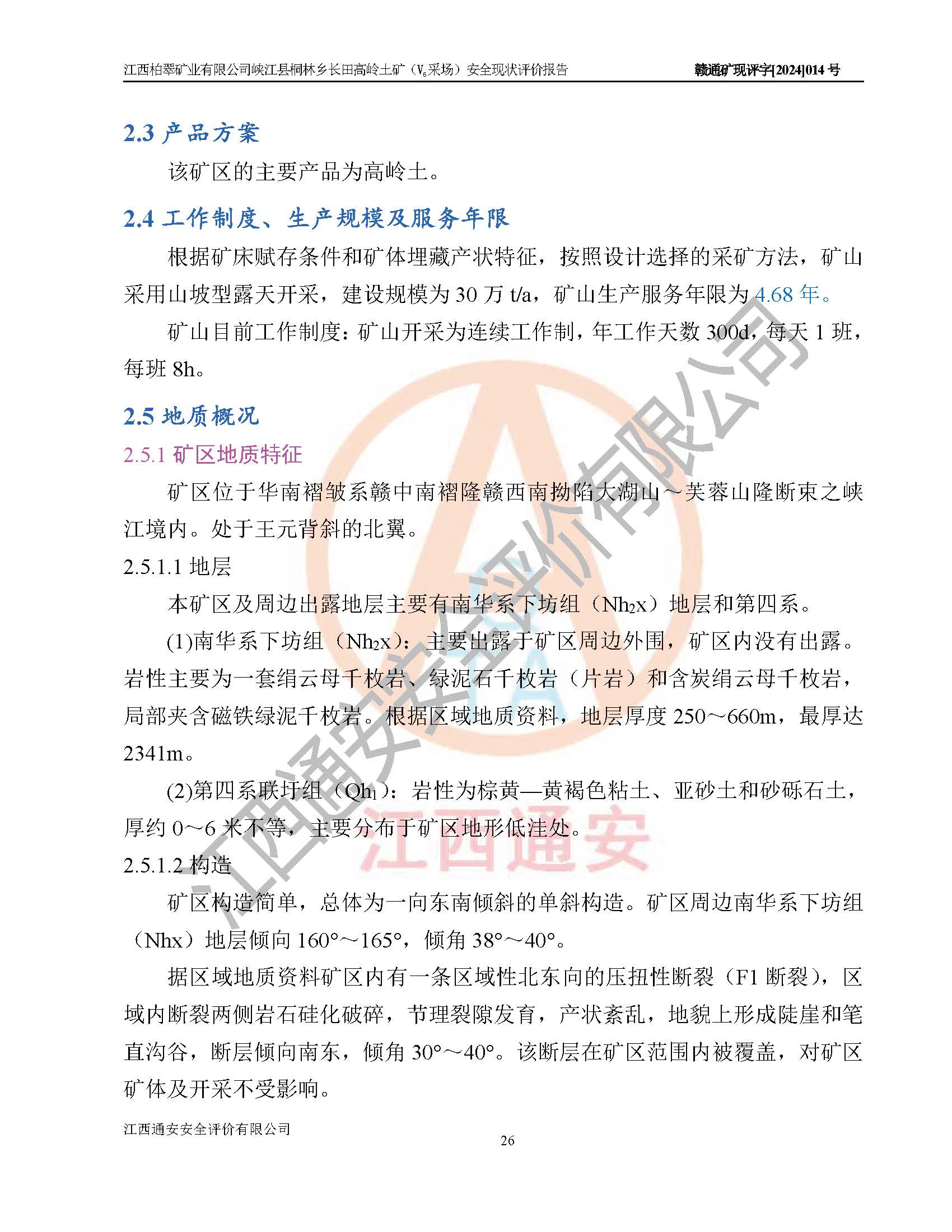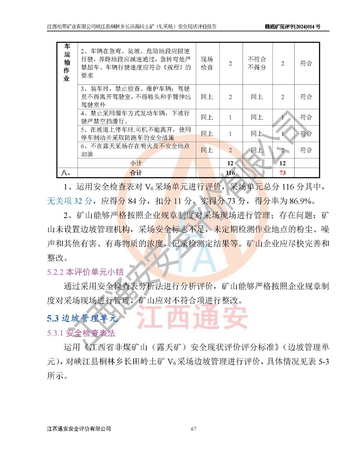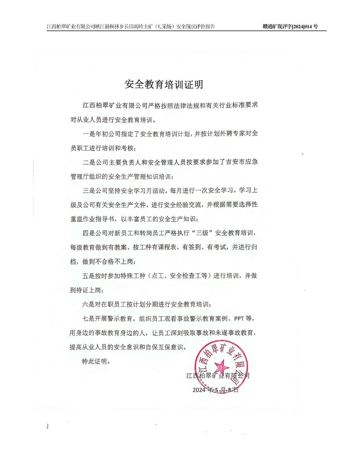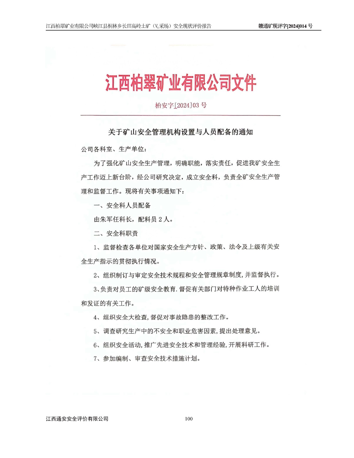 評(píng)價(jià)報(bào)告名稱 | 江西柏翠礦業(yè)有限公司峽江縣桐林鄉(xiāng)長(zhǎng)田高嶺土礦(V6采場(chǎng))安全現(xiàn)狀評(píng)價(jià)報(bào)告 | ||||