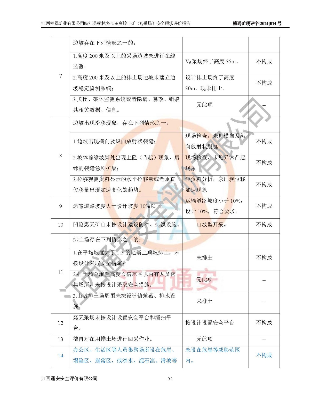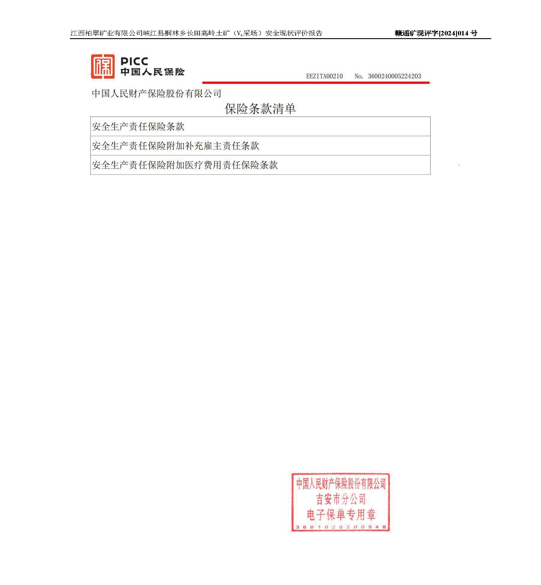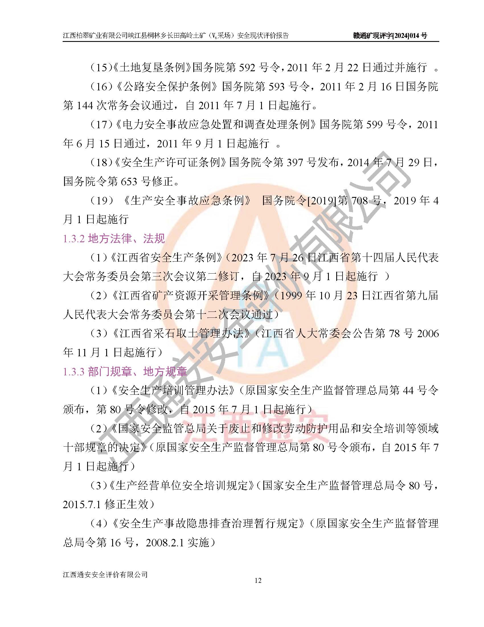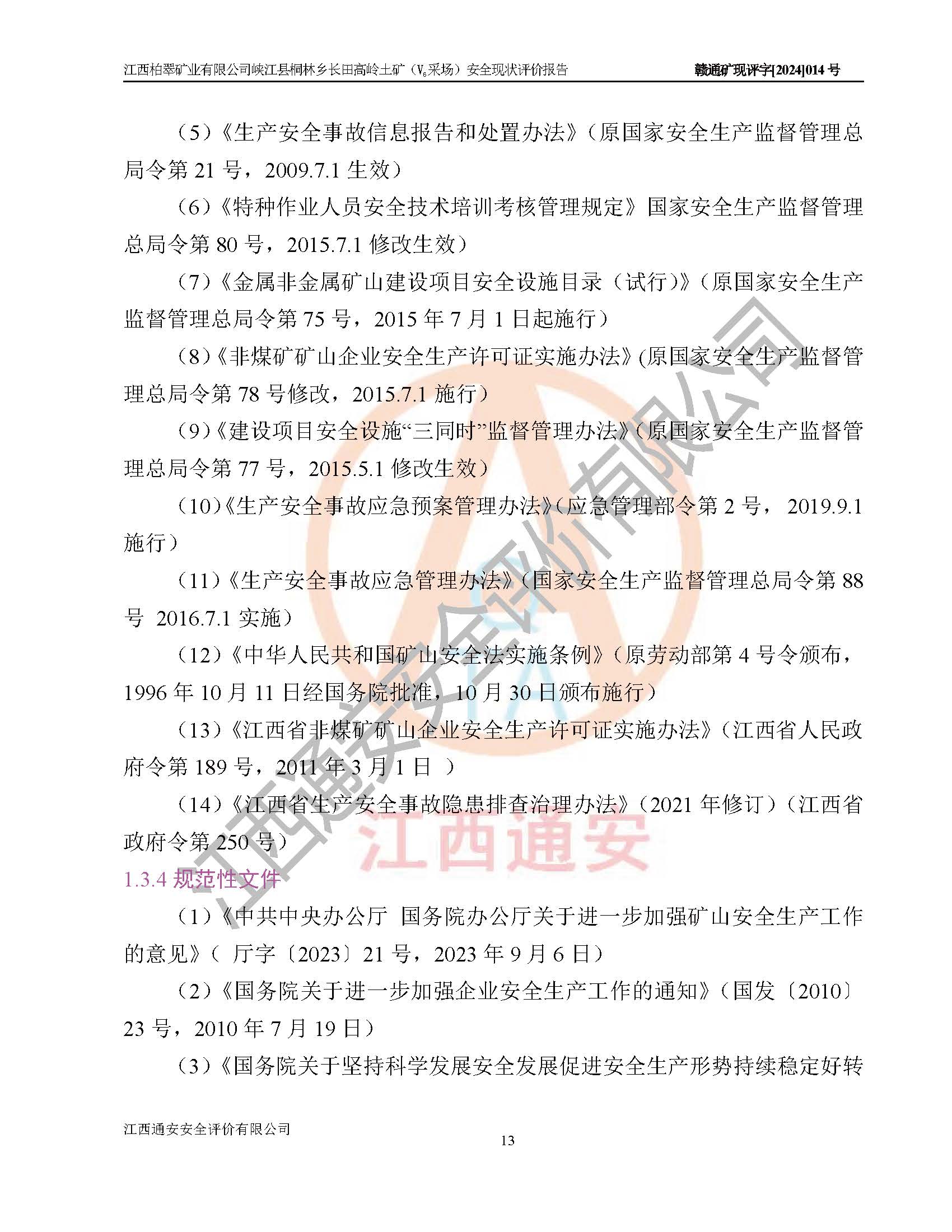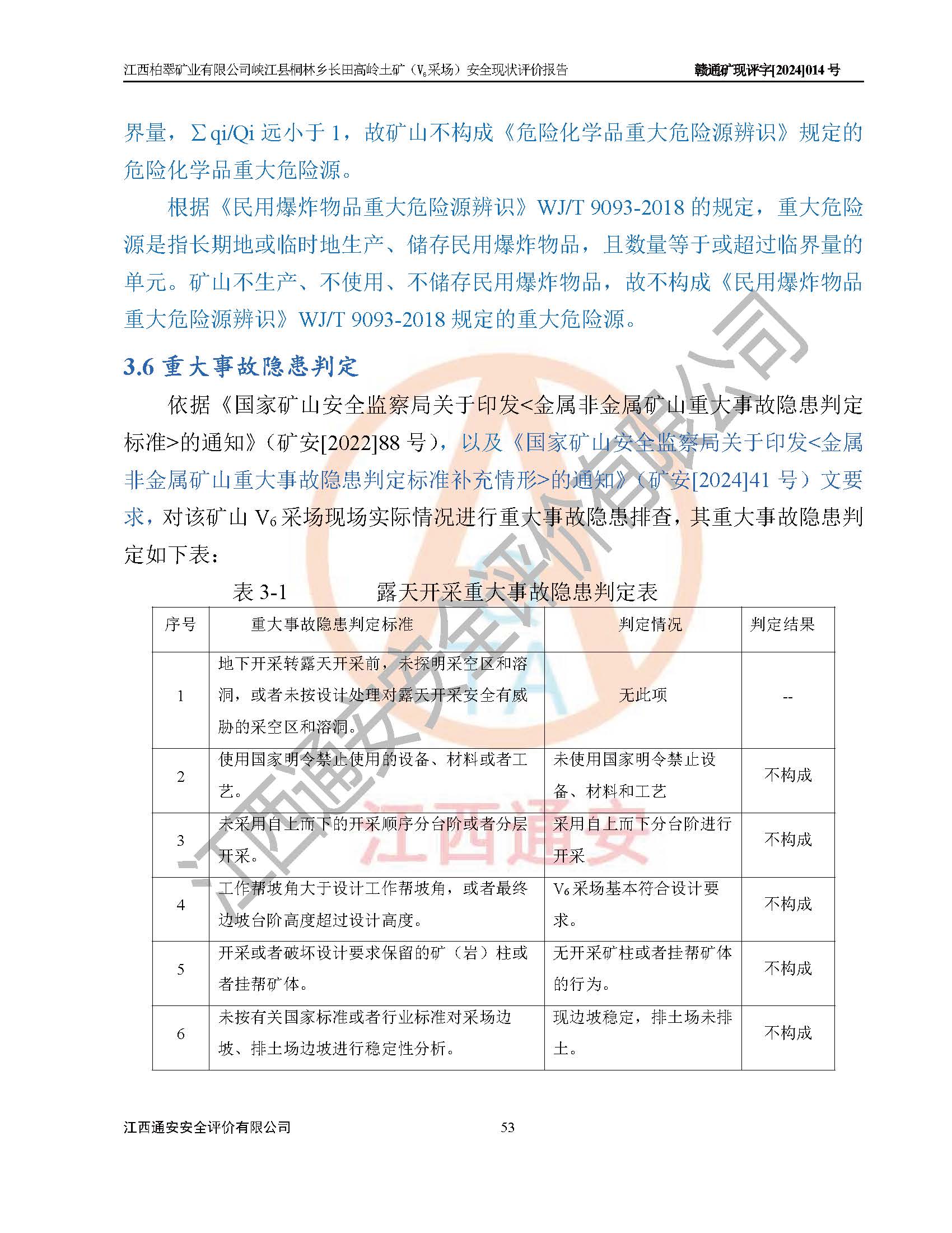 評(píng)價(jià)報(bào)告名稱 | 江西柏翠礦業(yè)有限公司峽江縣桐林鄉(xiāng)長(zhǎng)田高嶺土礦(V6采場(chǎng))安全現(xiàn)狀評(píng)價(jià)報(bào)告 | ||||