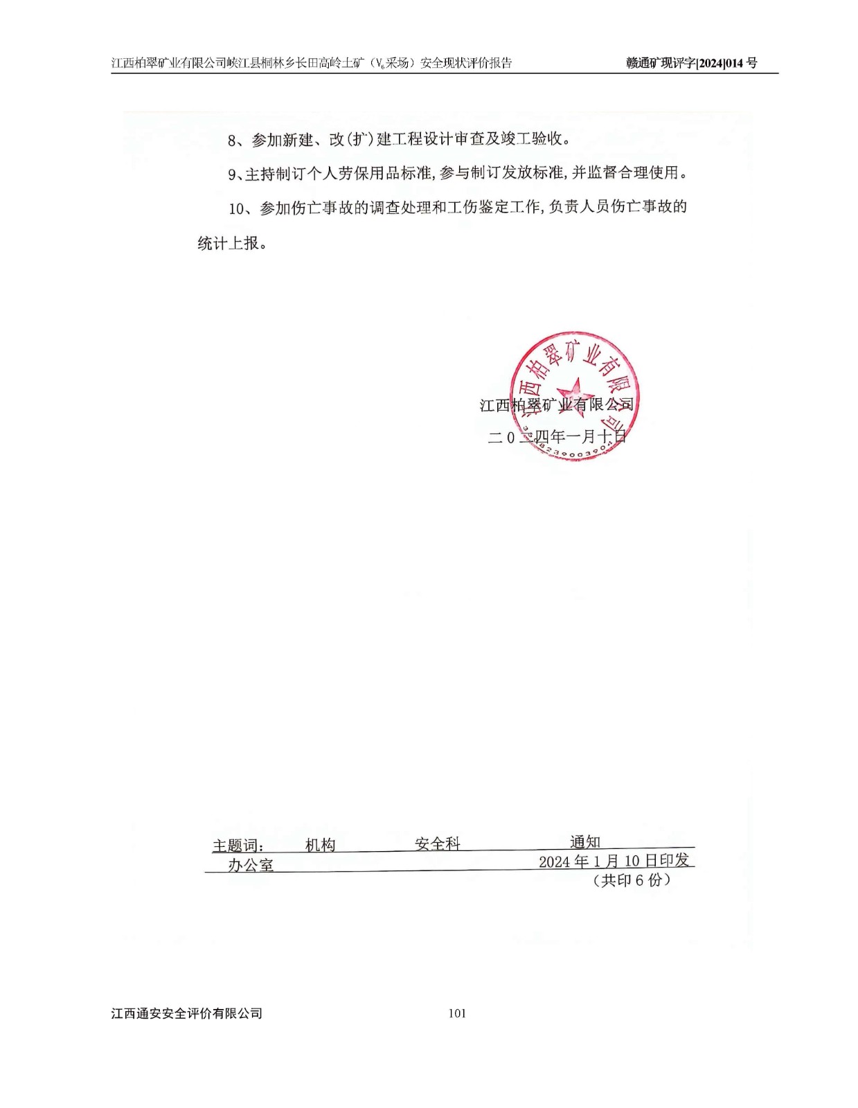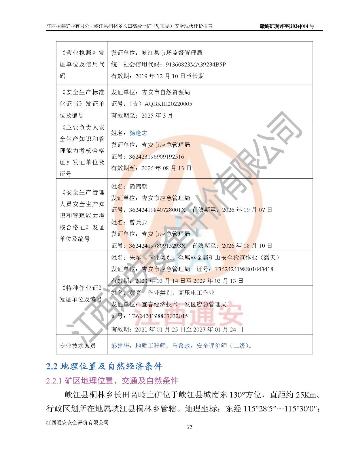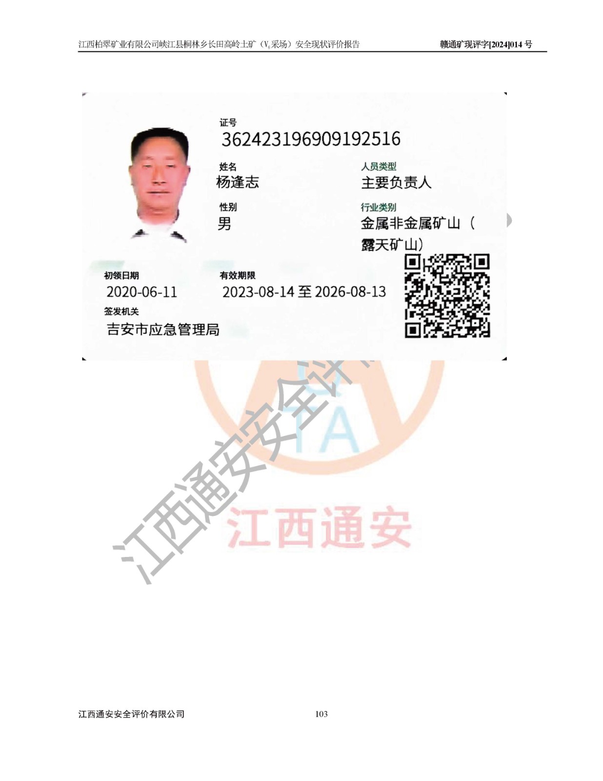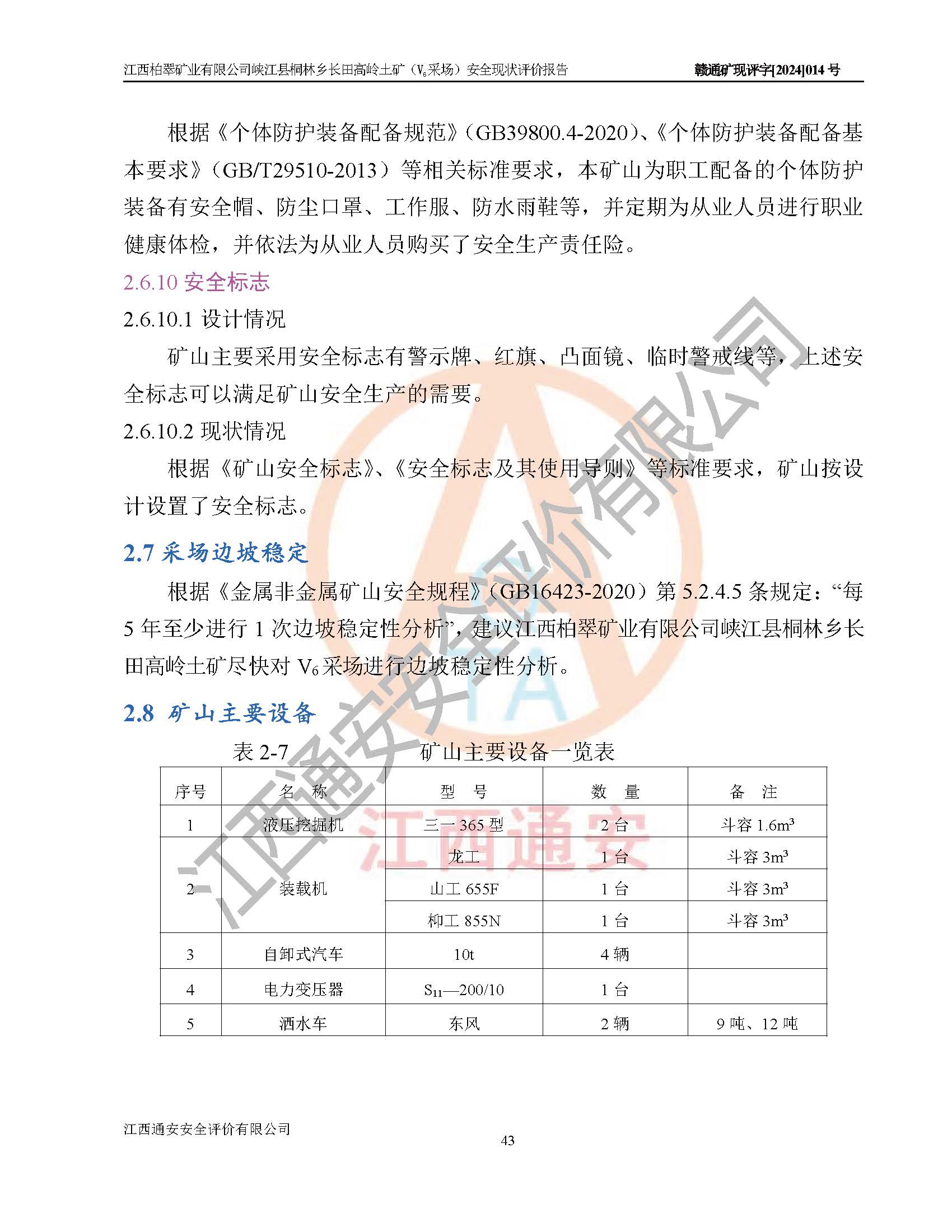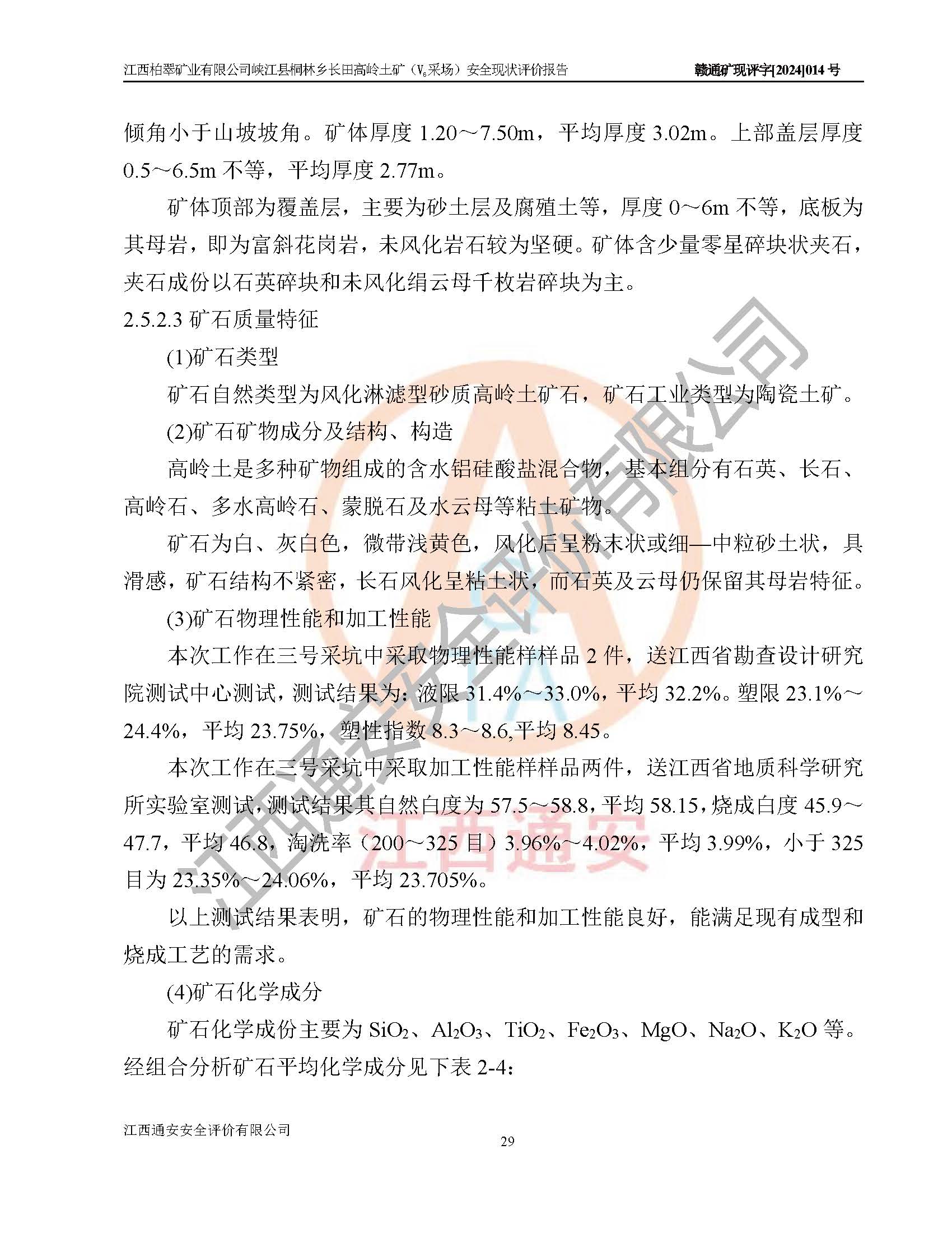 評(píng)價(jià)報(bào)告名稱 | 江西柏翠礦業(yè)有限公司峽江縣桐林鄉(xiāng)長(zhǎng)田高嶺土礦(V6采場(chǎng))安全現(xiàn)狀評(píng)價(jià)報(bào)告 | ||||