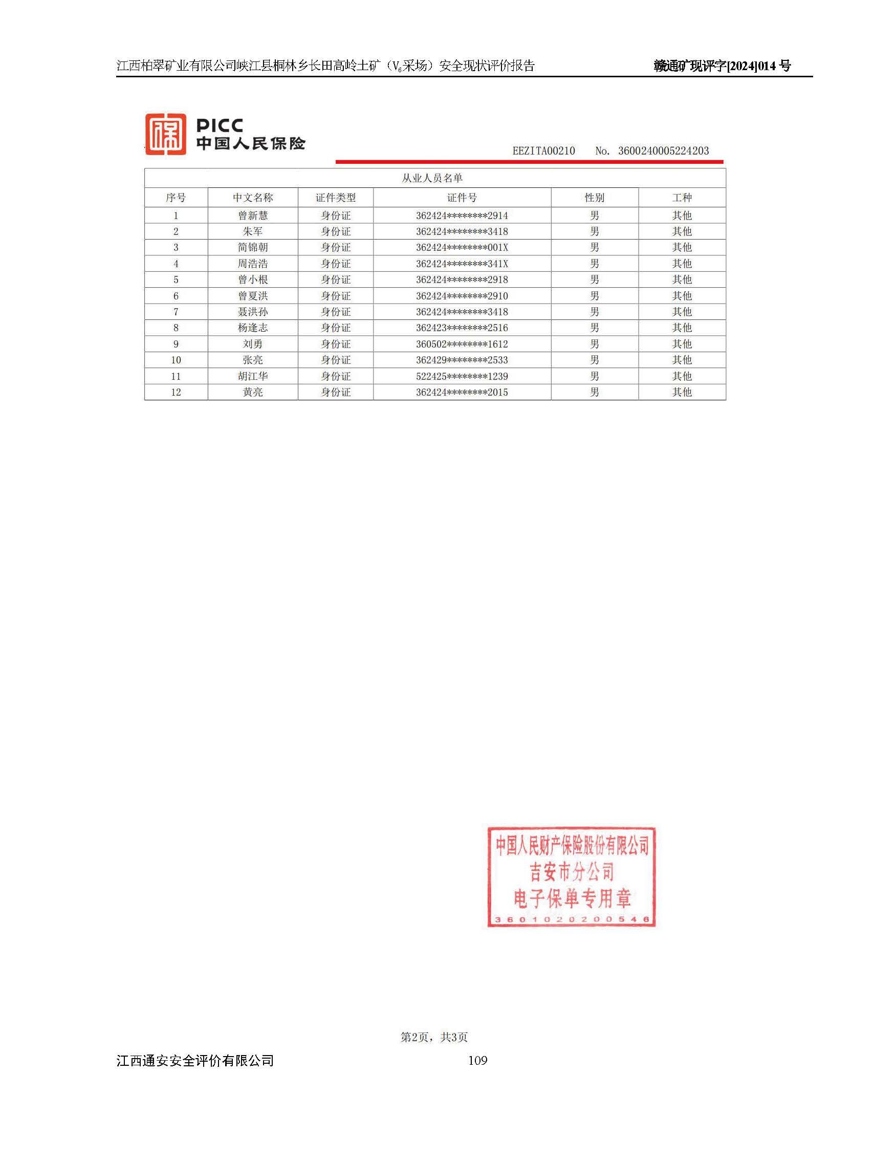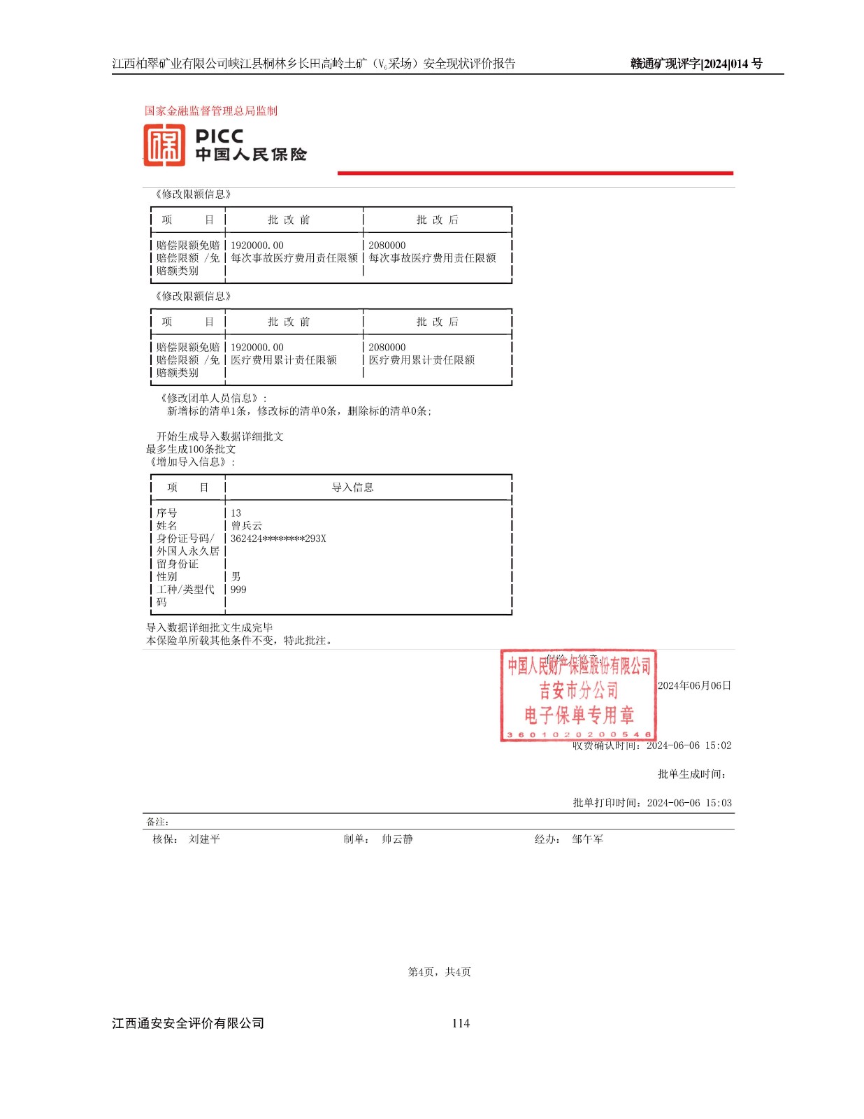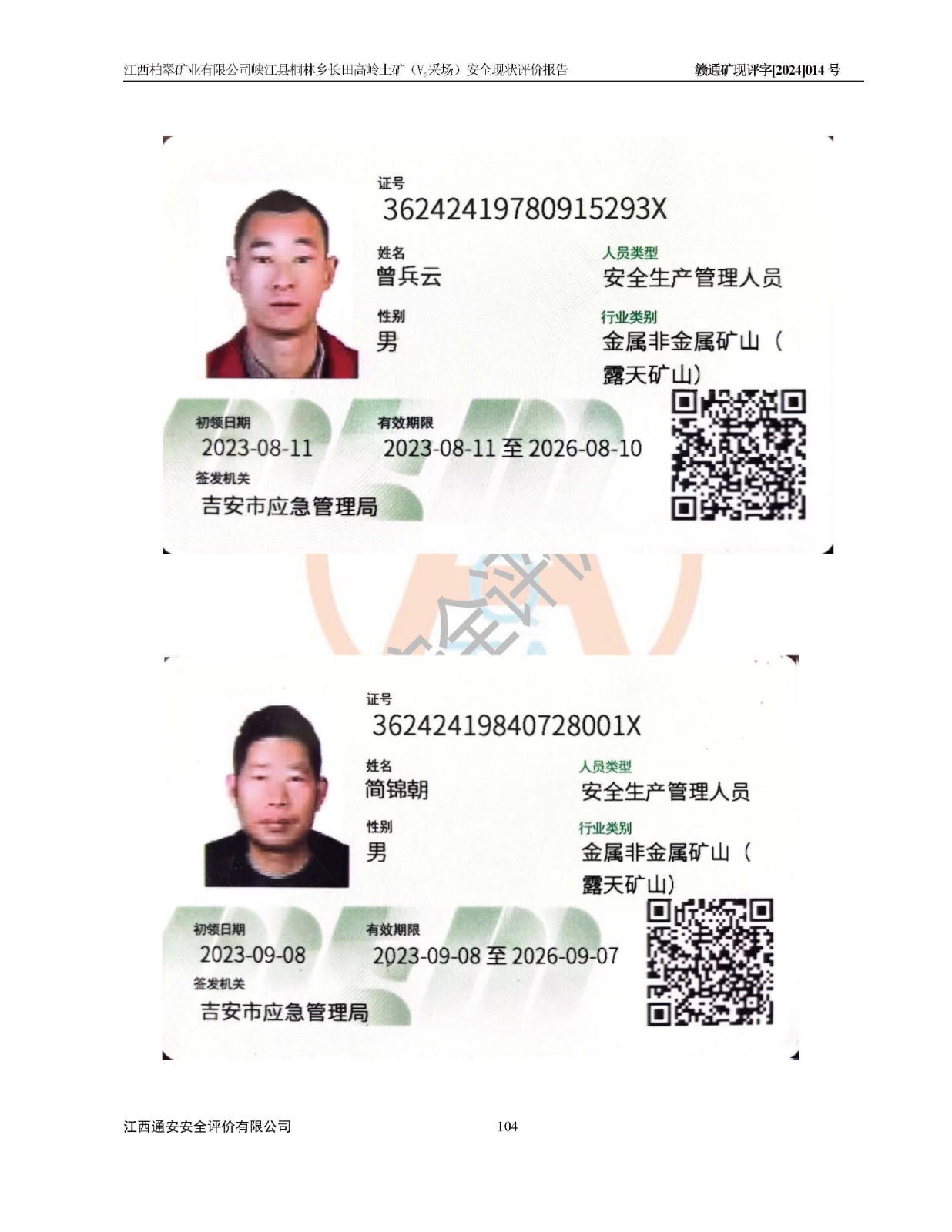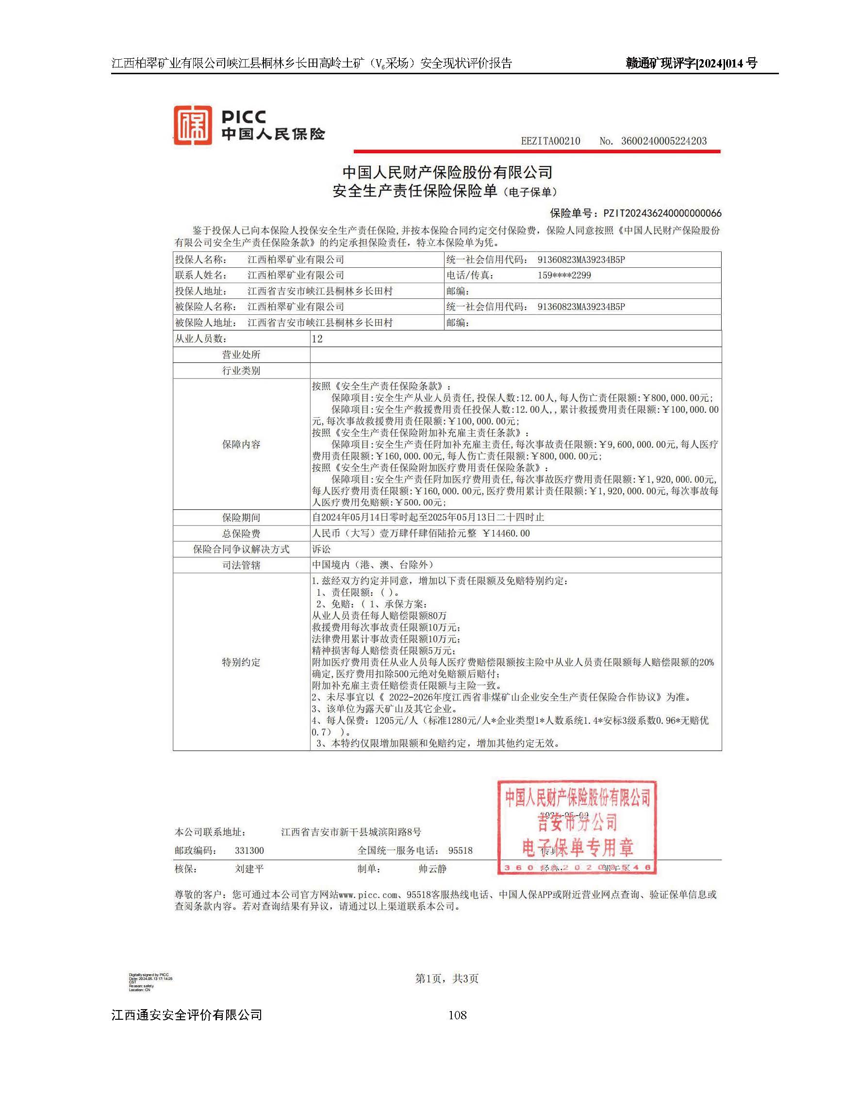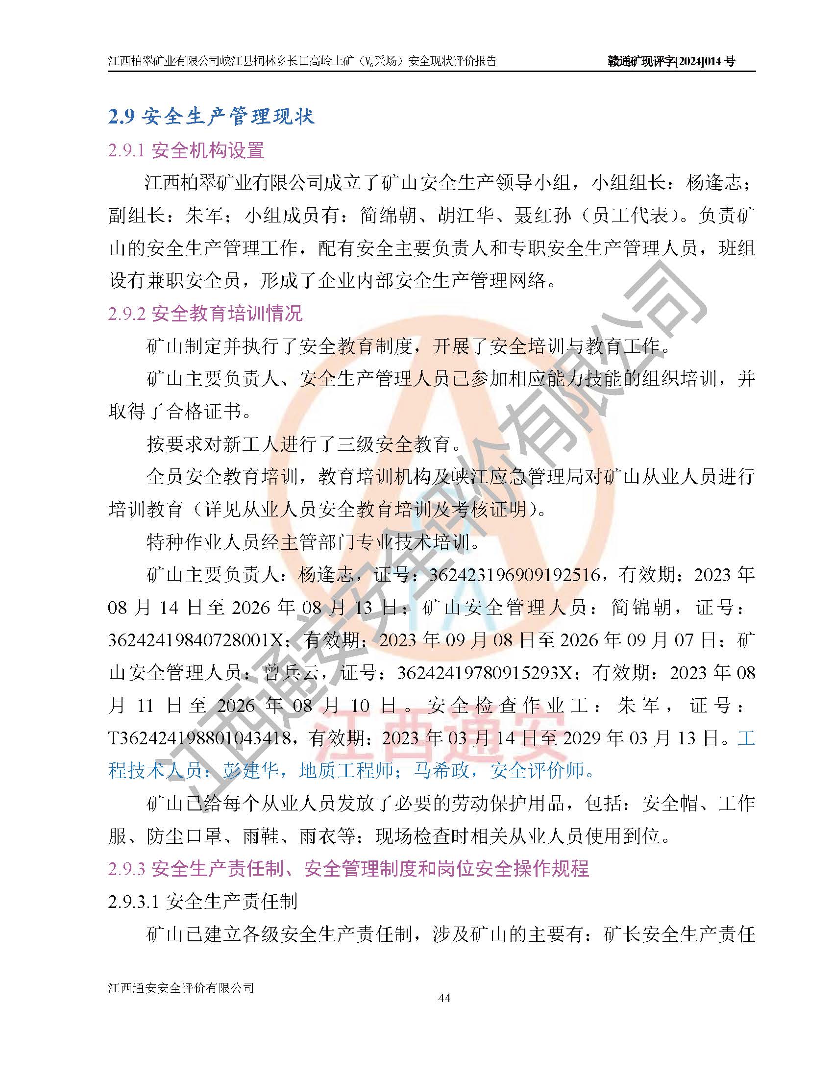 評(píng)價(jià)報(bào)告名稱 | 江西柏翠礦業(yè)有限公司峽江縣桐林鄉(xiāng)長(zhǎng)田高嶺土礦(V6采場(chǎng))安全現(xiàn)狀評(píng)價(jià)報(bào)告 | ||||