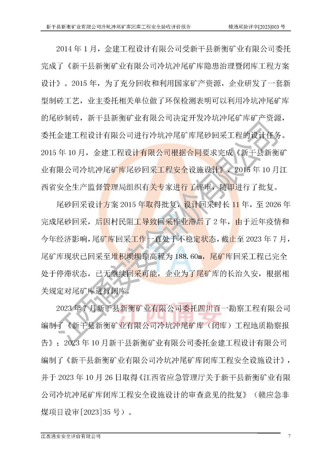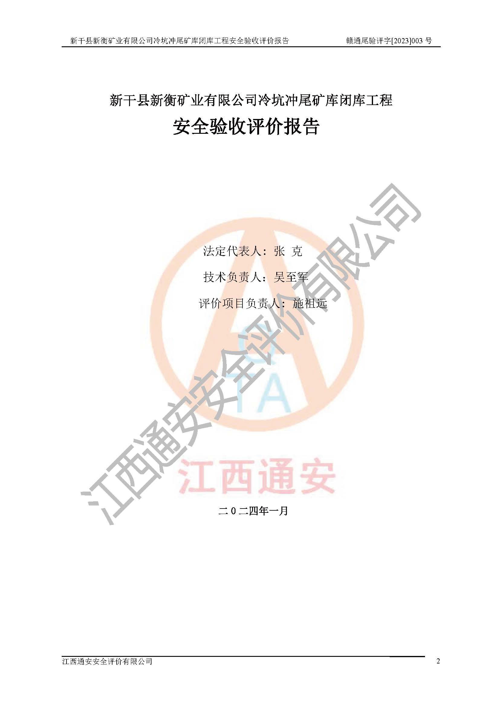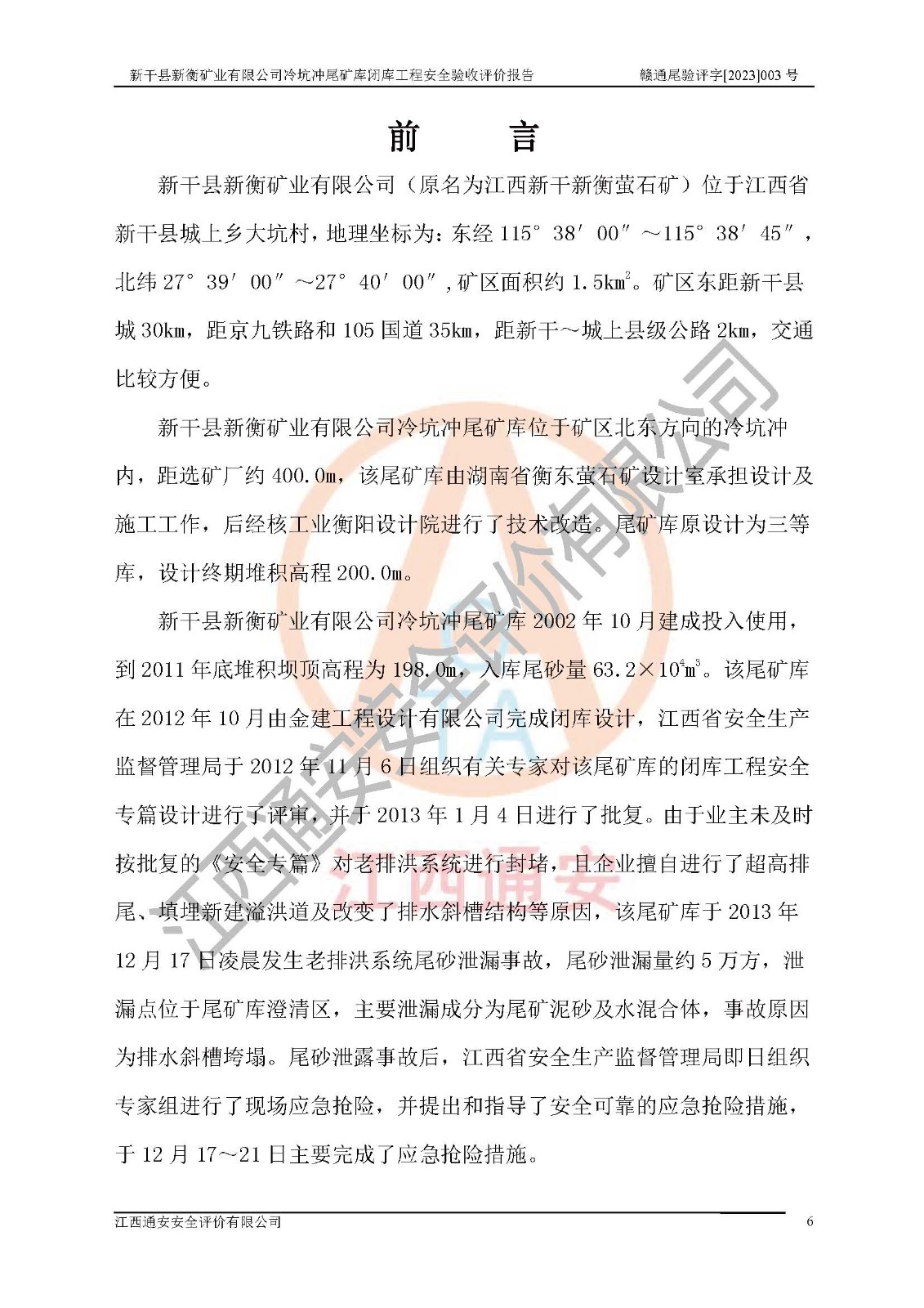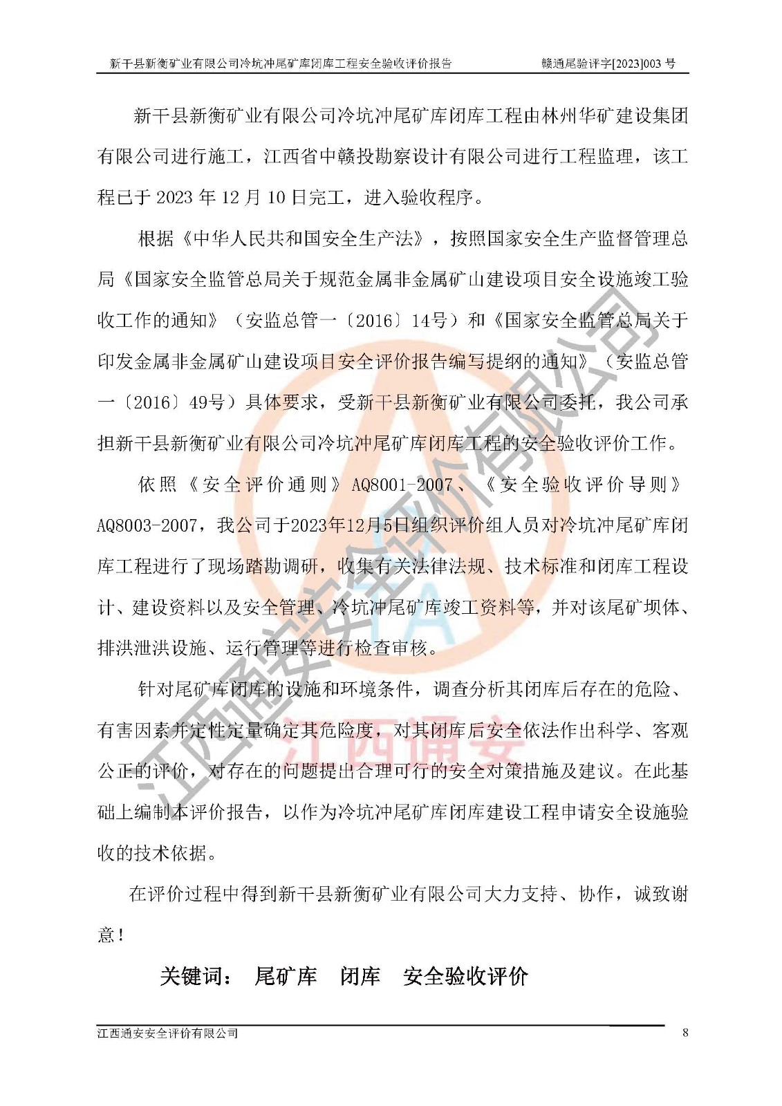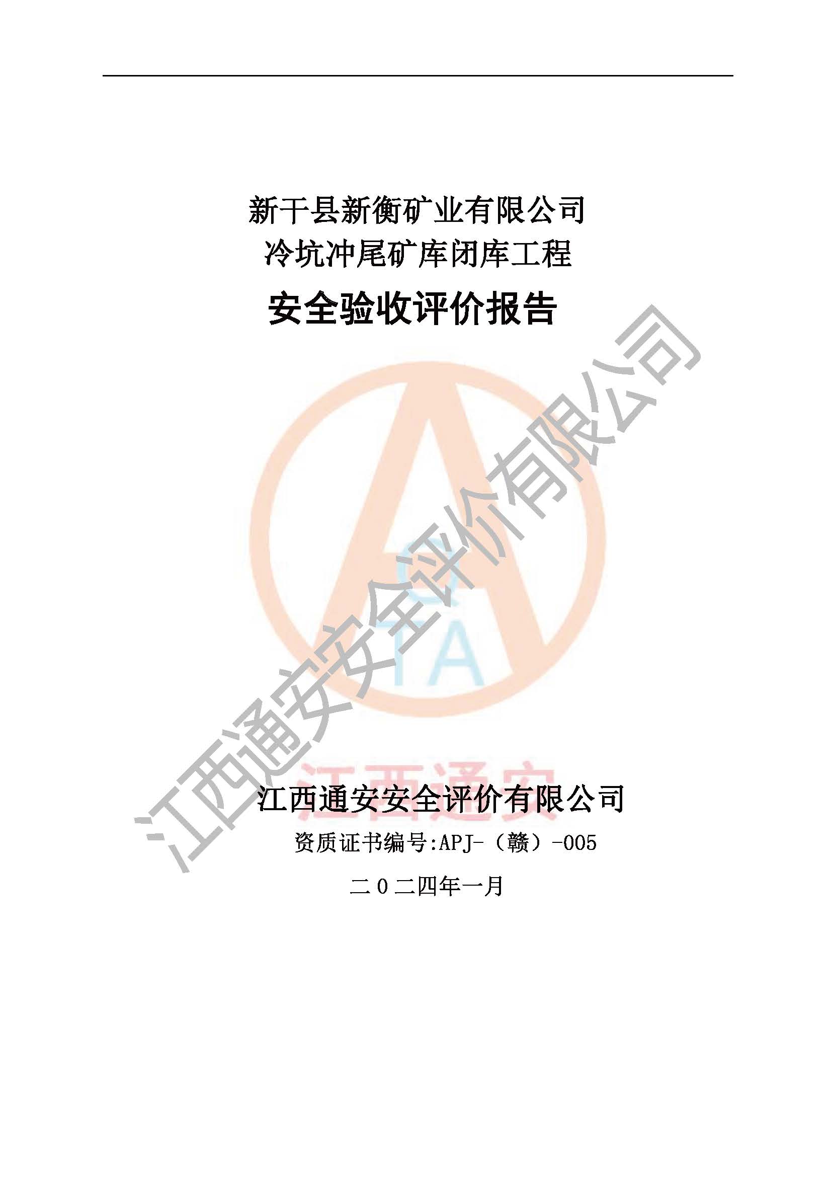 評(píng)價(jià)報(bào)告名稱 | 新干縣新衡礦業(yè)有限公司冷坑沖尾礦庫(kù)閉庫(kù)工程安全驗(yàn)收評(píng)價(jià)報(bào)告 | |||
