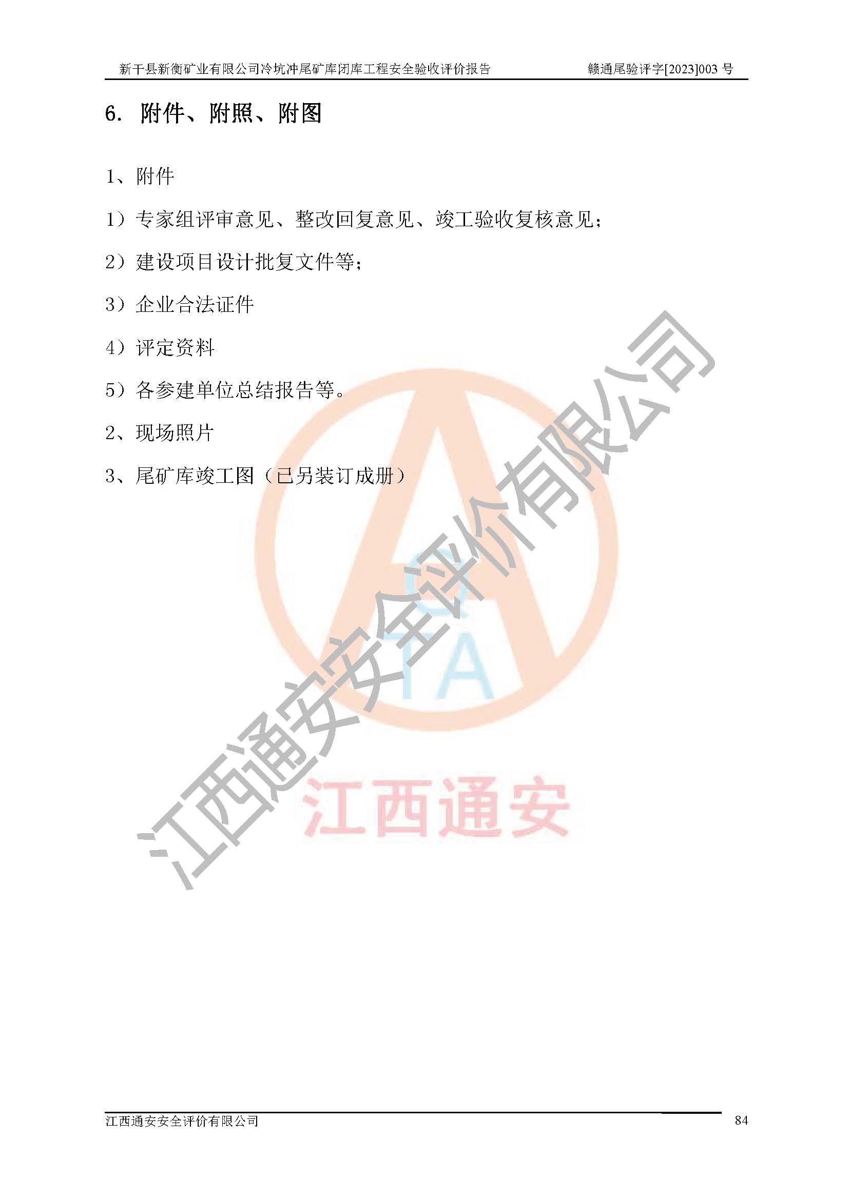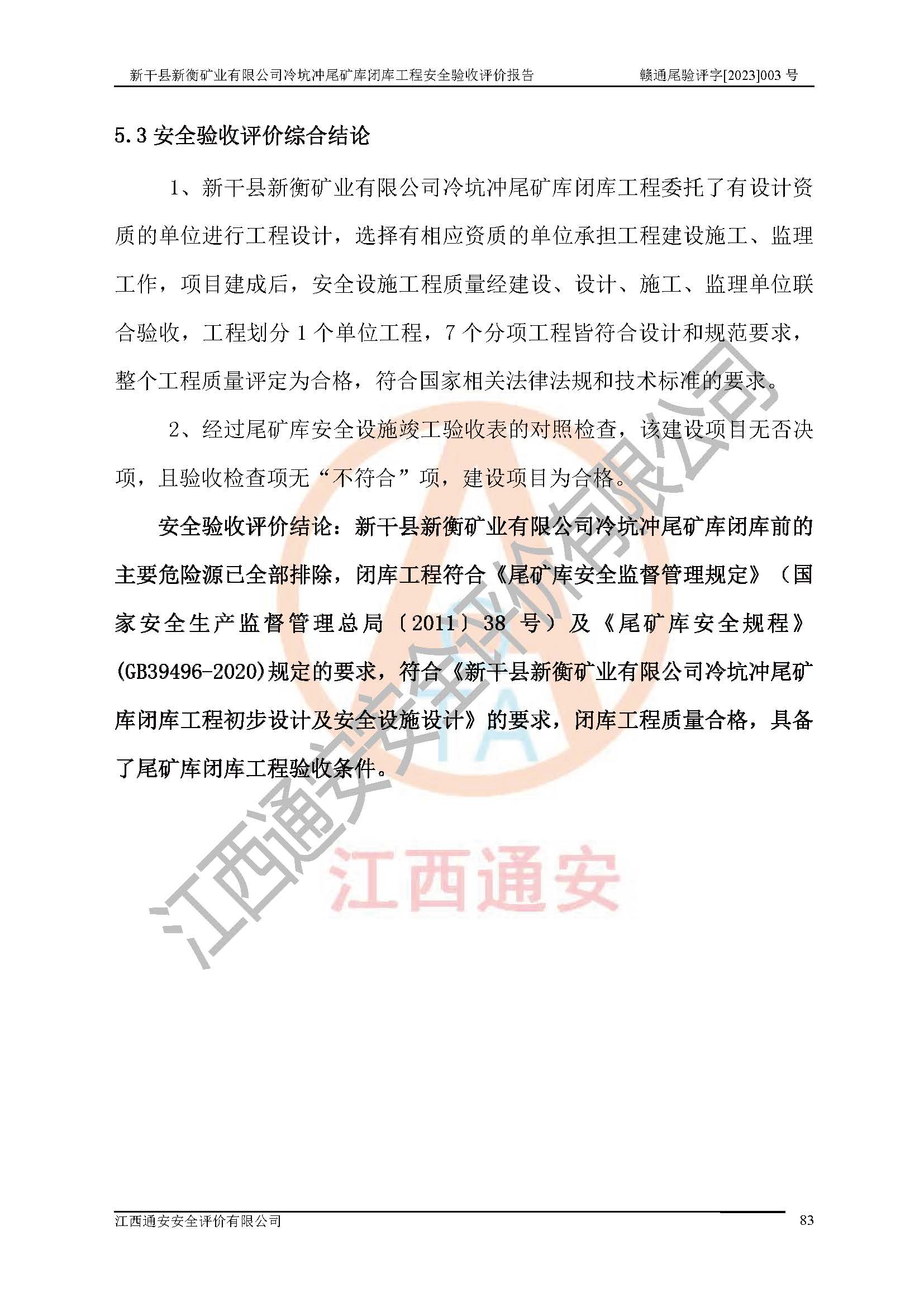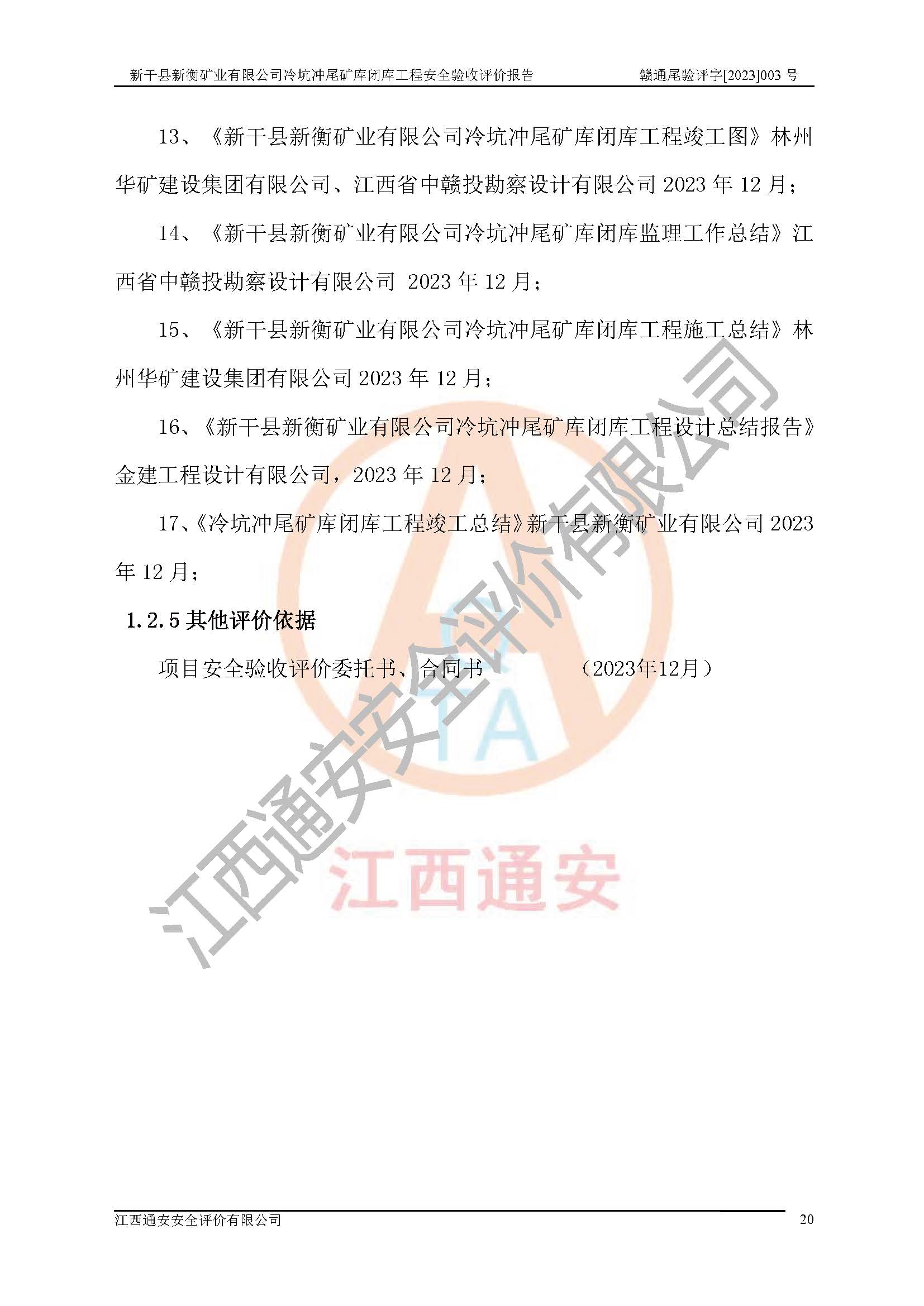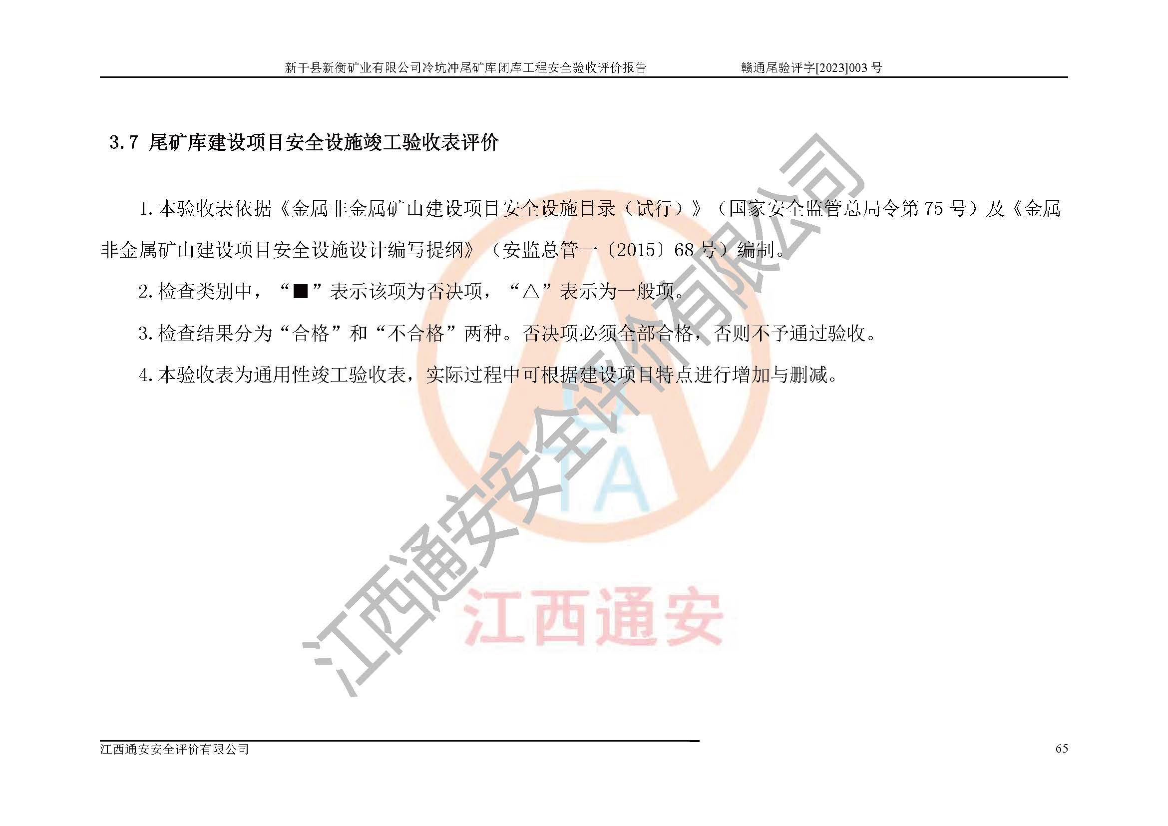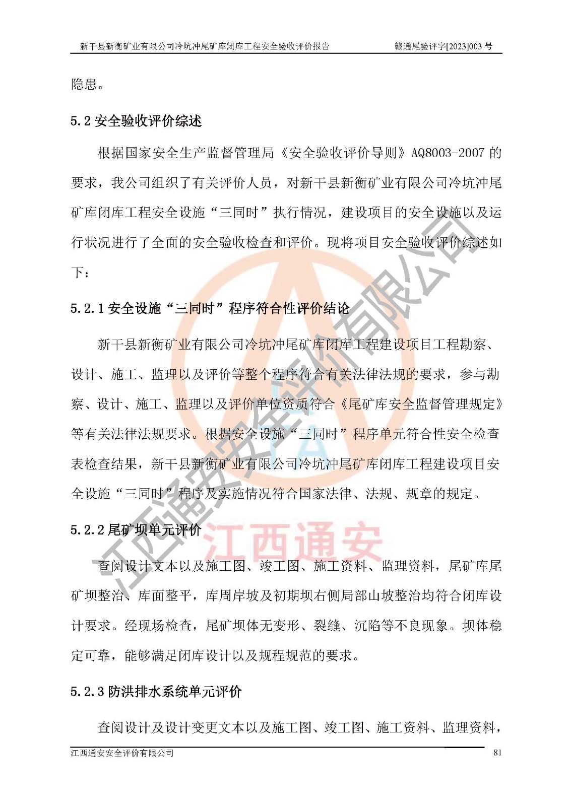 評(píng)價(jià)報(bào)告名稱 | 新干縣新衡礦業(yè)有限公司冷坑沖尾礦庫(kù)閉庫(kù)工程安全驗(yàn)收評(píng)價(jià)報(bào)告 | |||