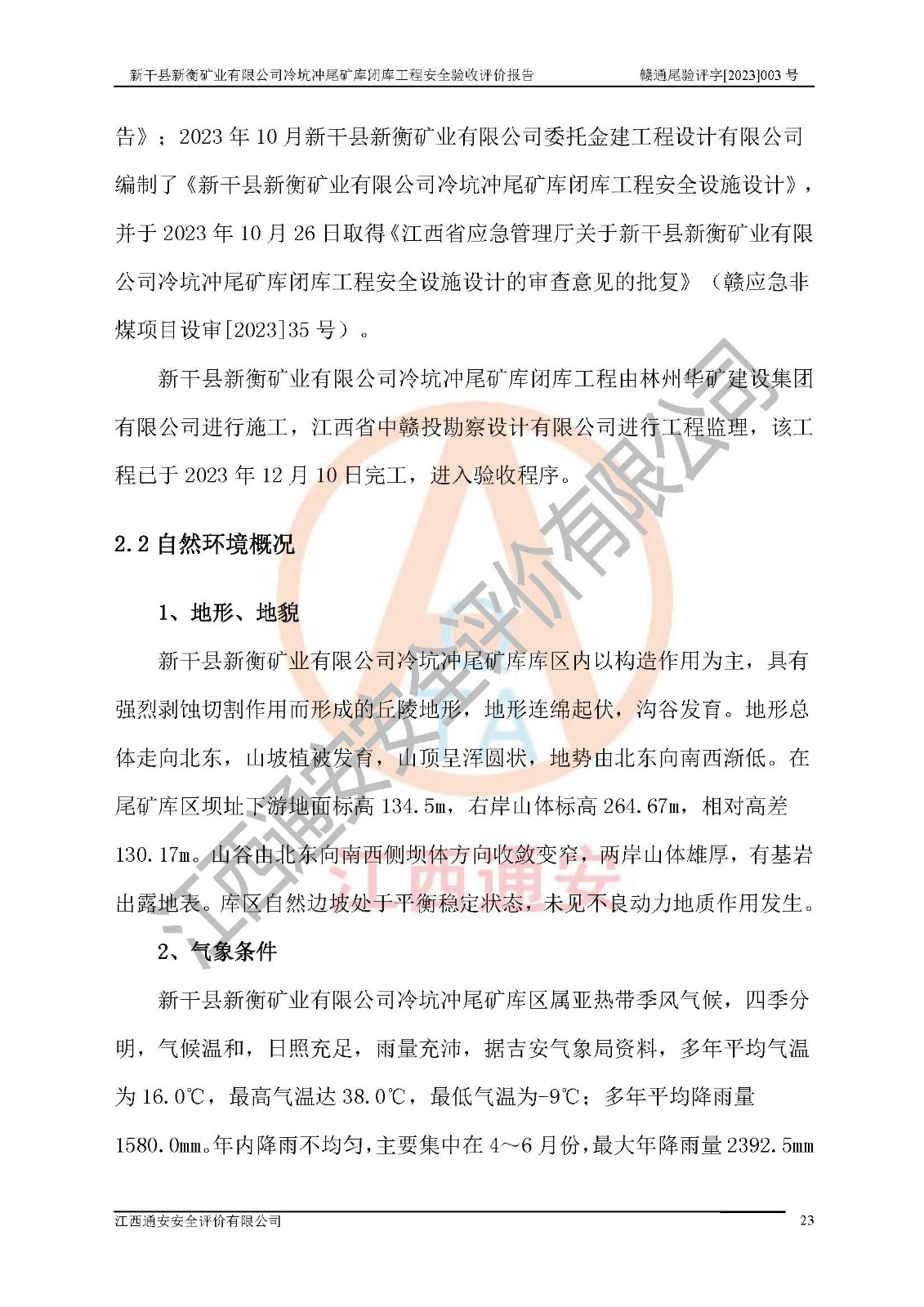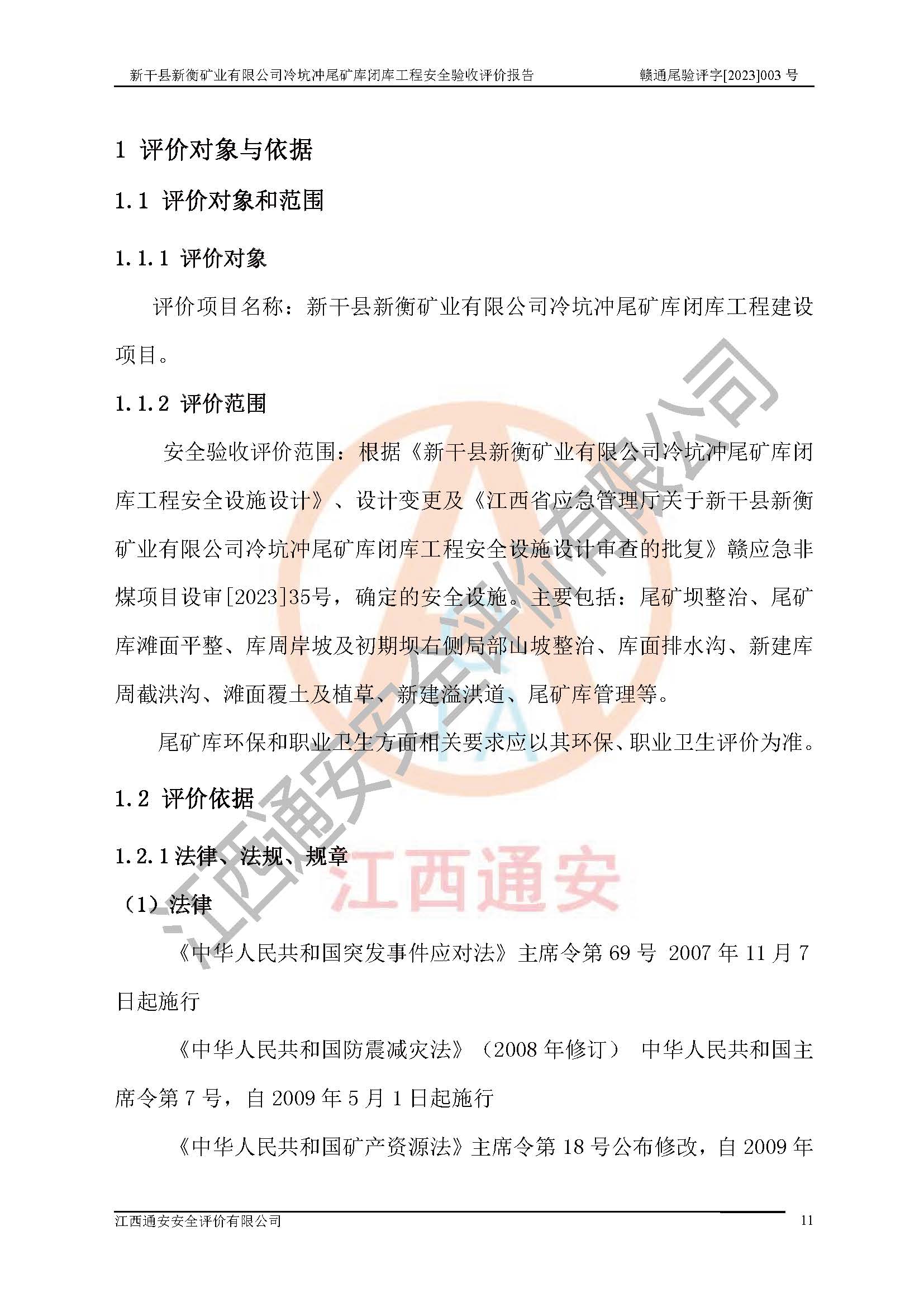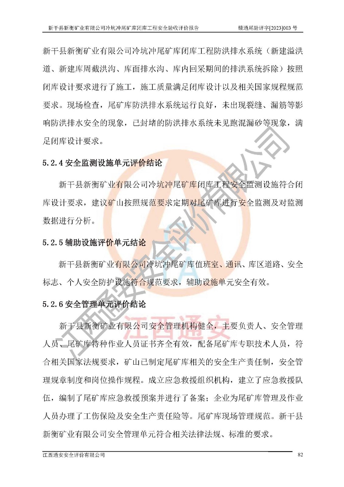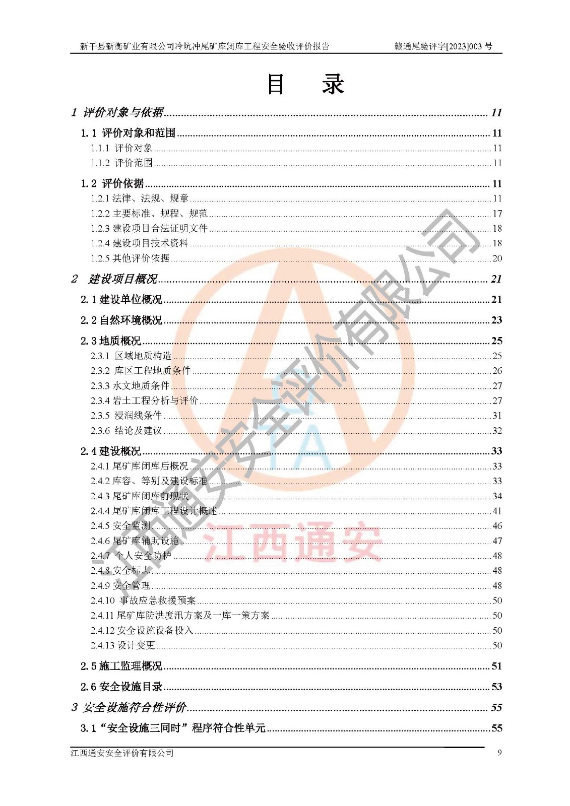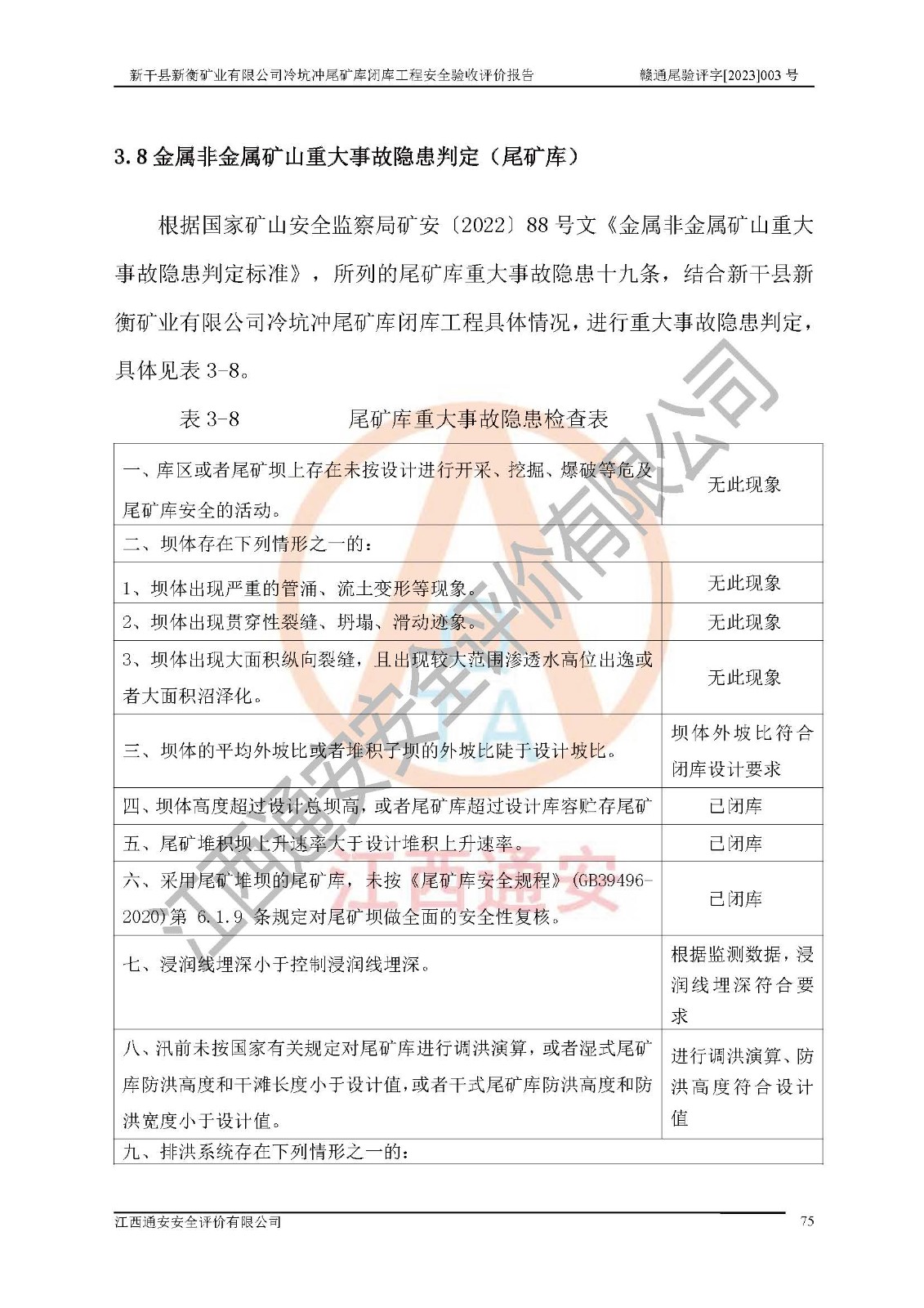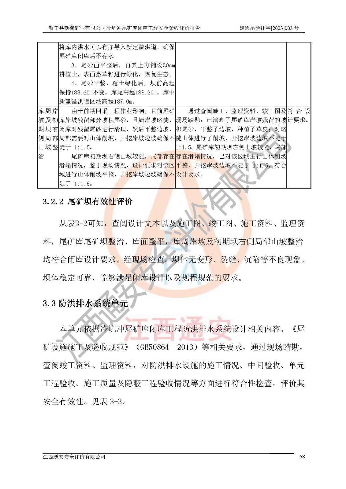 評(píng)價(jià)報(bào)告名稱 | 新干縣新衡礦業(yè)有限公司冷坑沖尾礦庫(kù)閉庫(kù)工程安全驗(yàn)收評(píng)價(jià)報(bào)告 | |||
