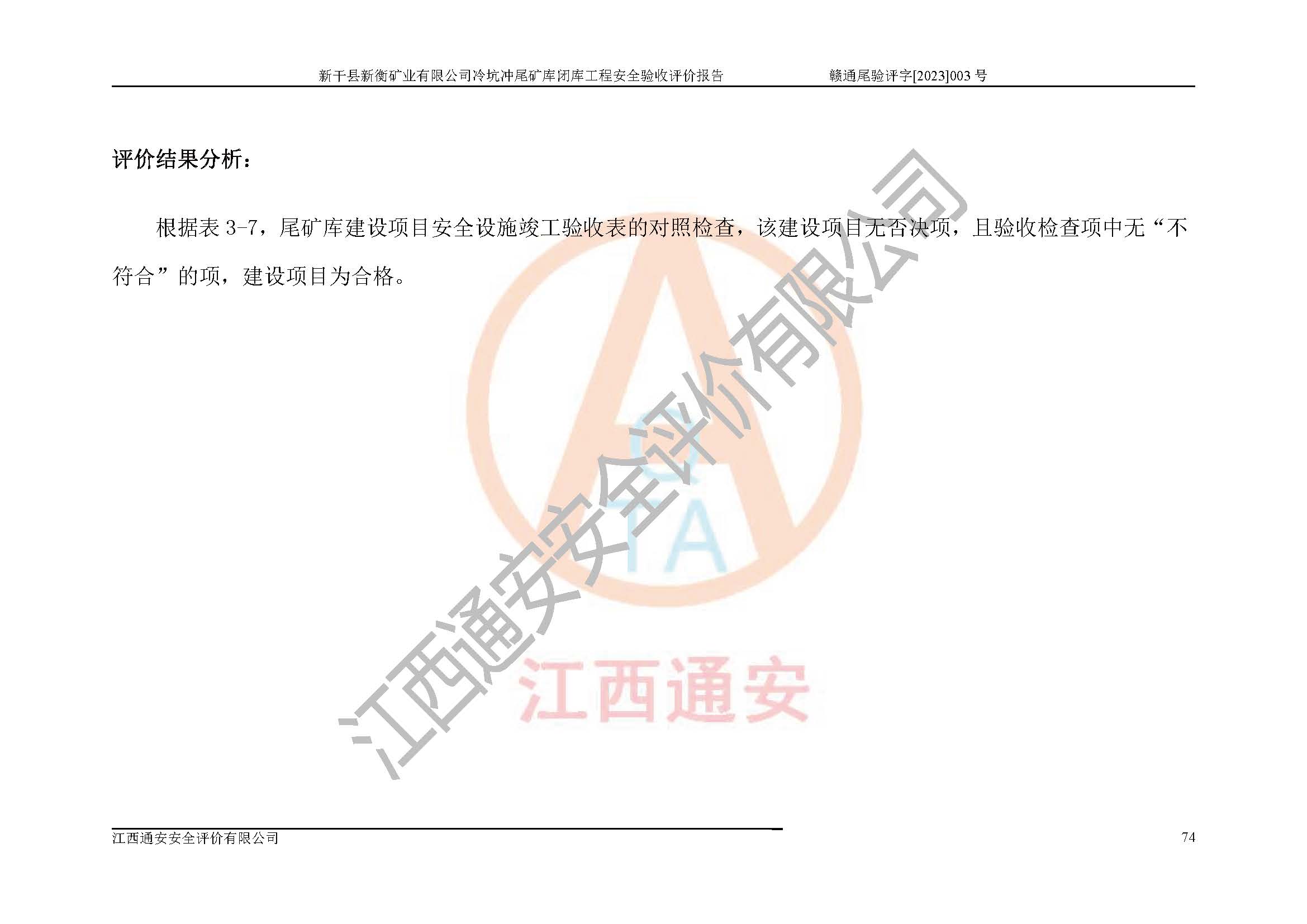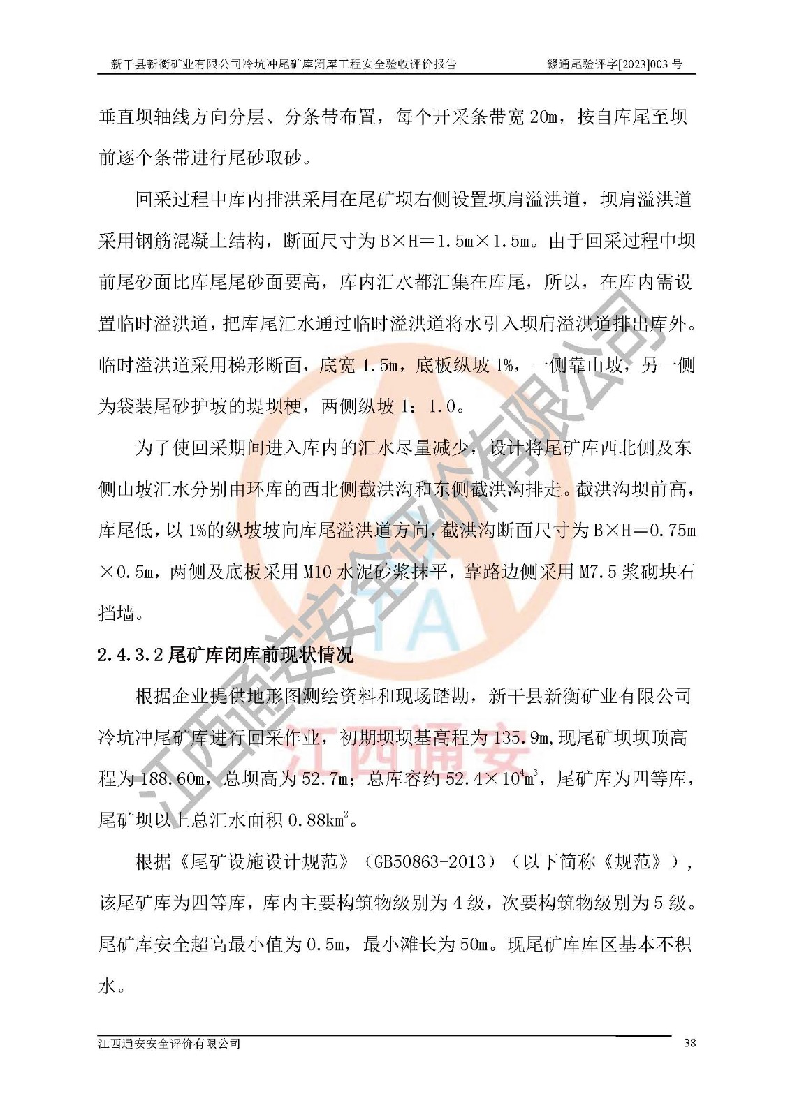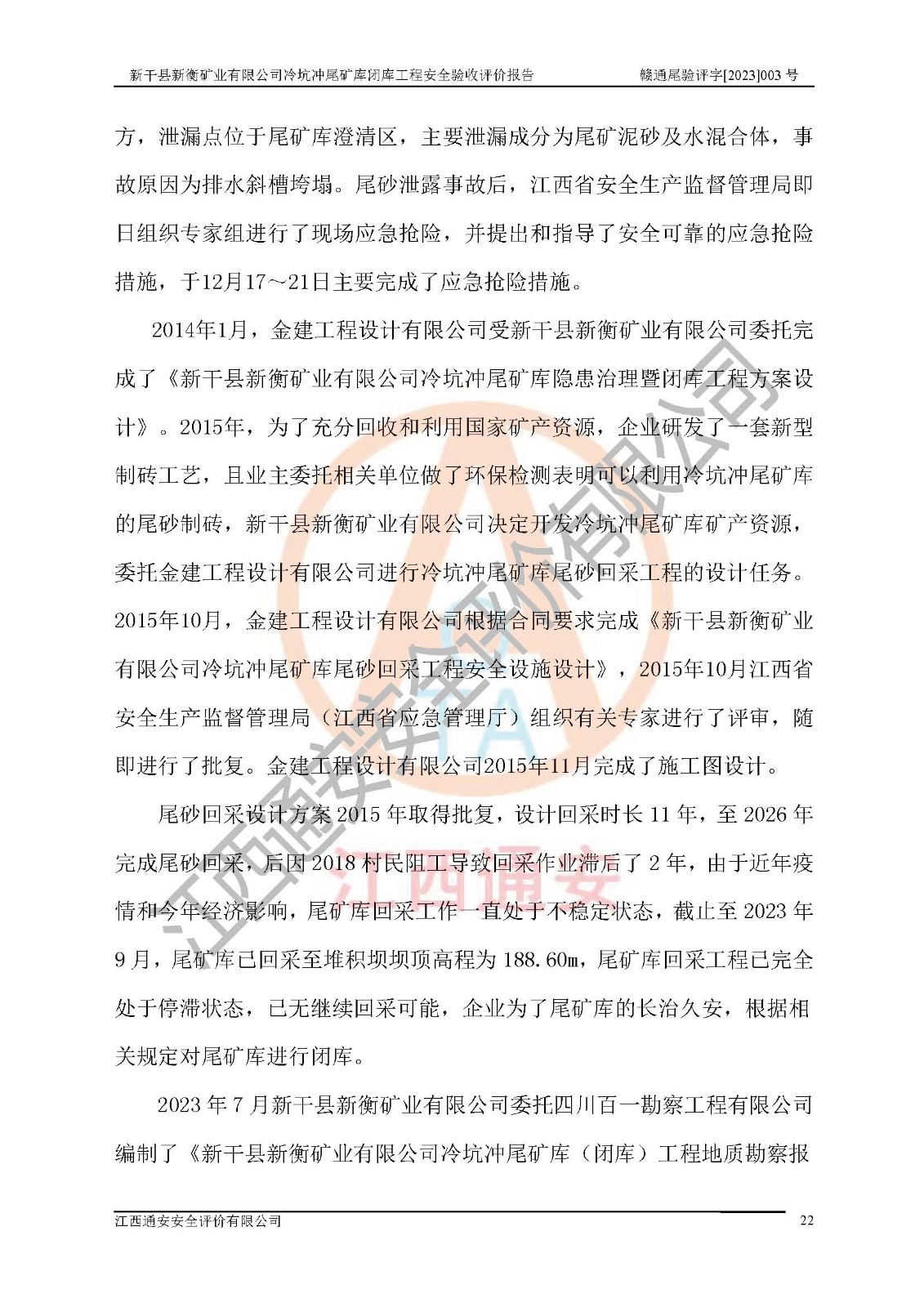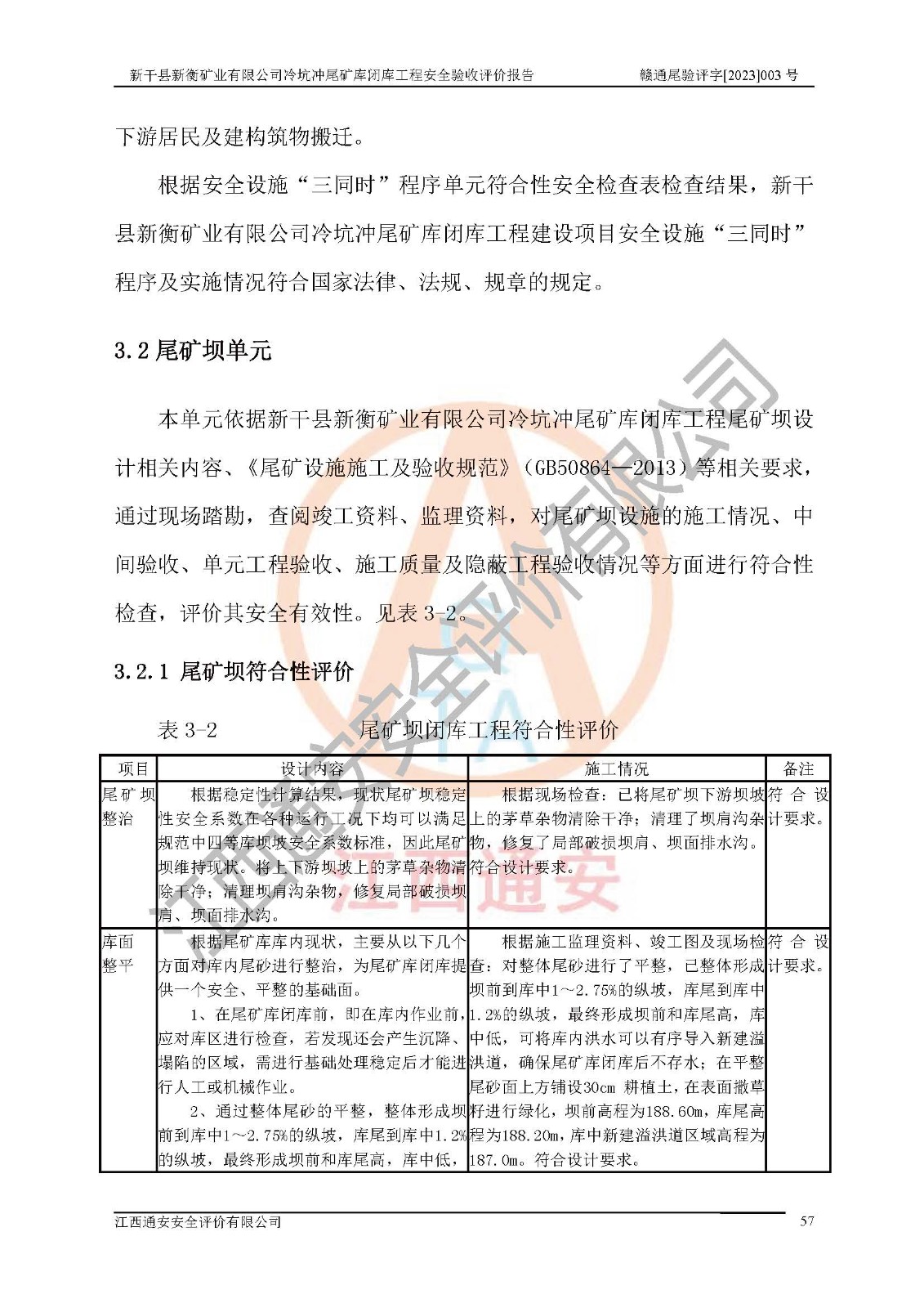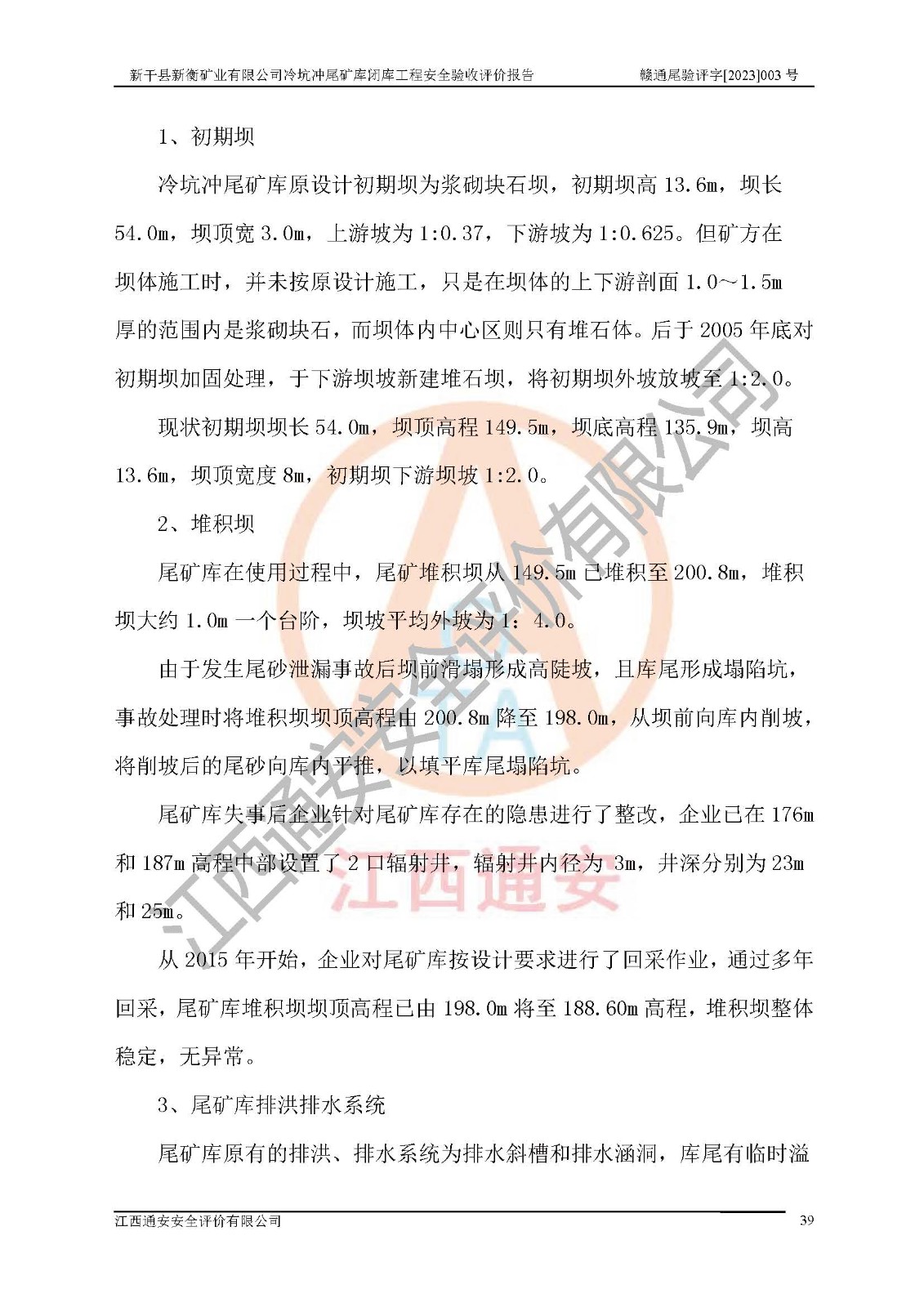 評(píng)價(jià)報(bào)告名稱 | 新干縣新衡礦業(yè)有限公司冷坑沖尾礦庫(kù)閉庫(kù)工程安全驗(yàn)收評(píng)價(jià)報(bào)告 | |||