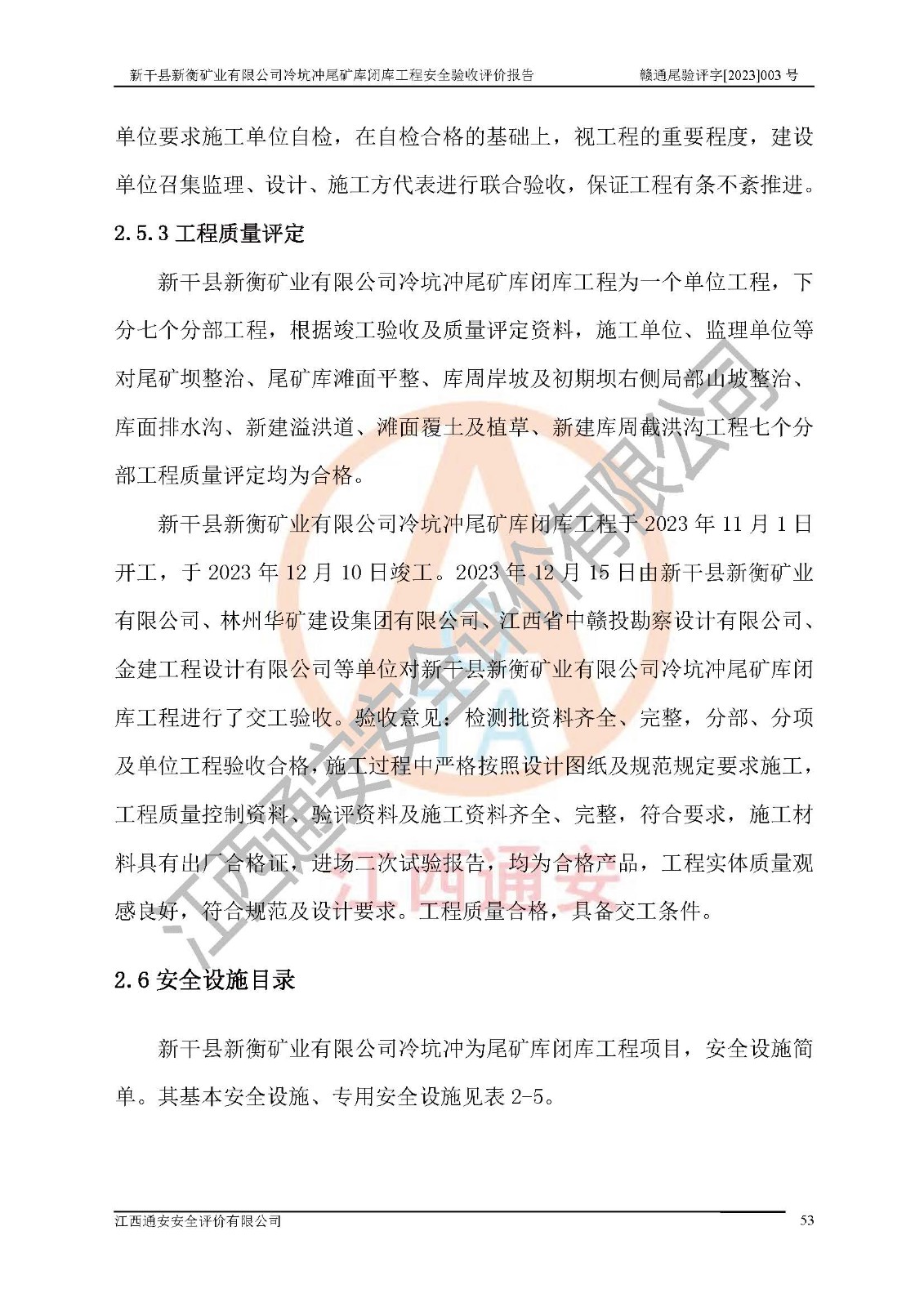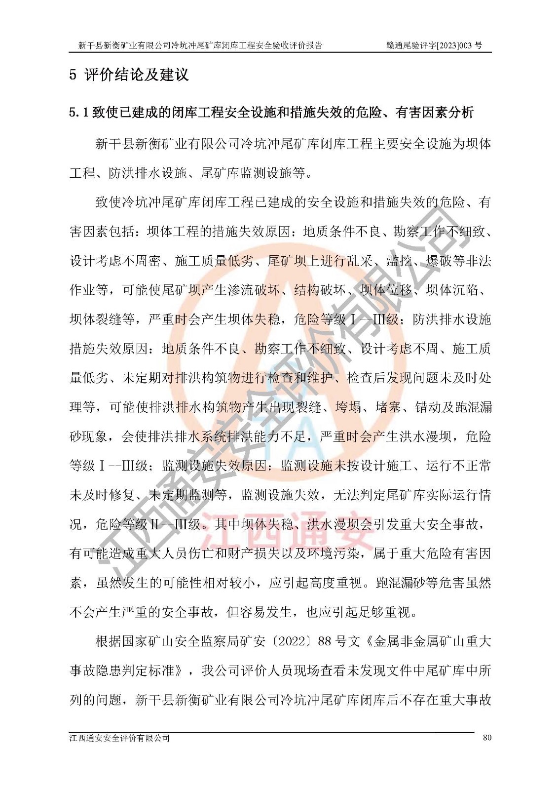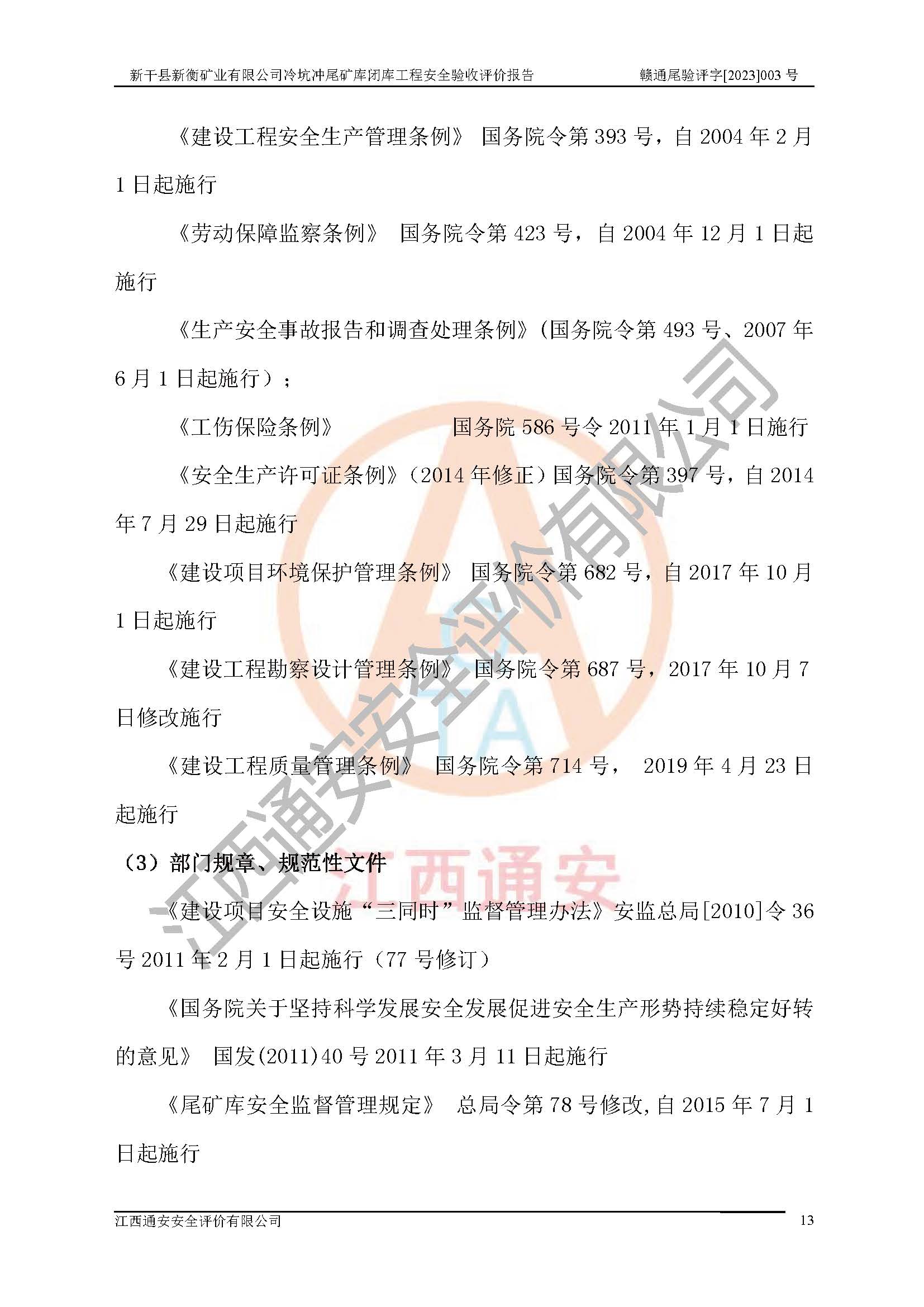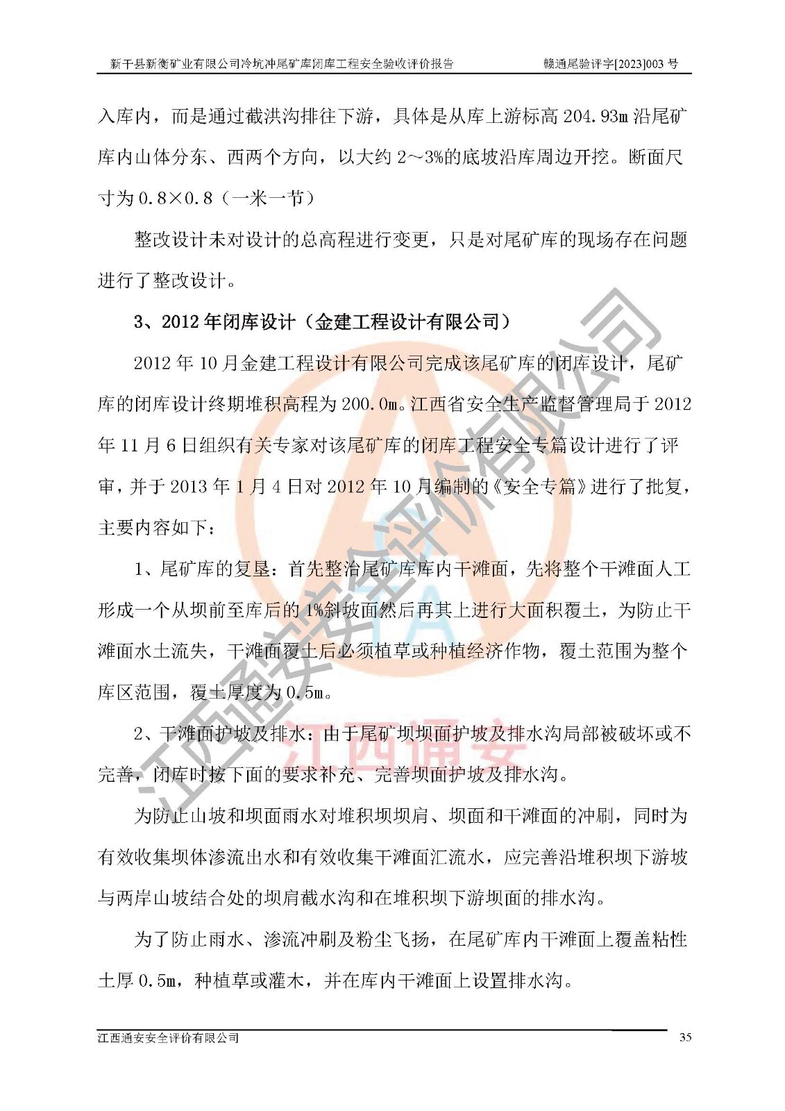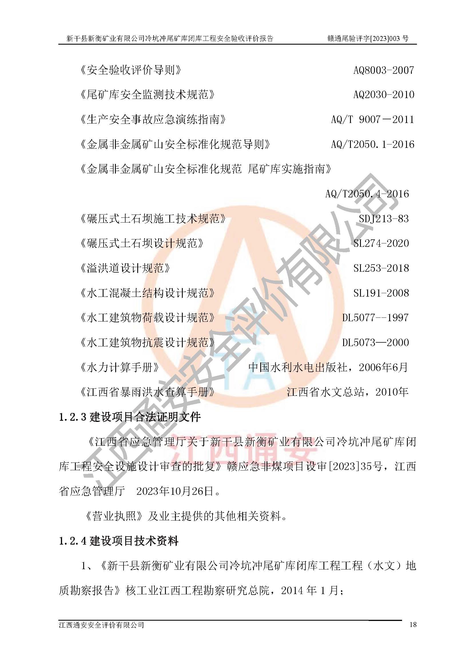 評(píng)價(jià)報(bào)告名稱 | 新干縣新衡礦業(yè)有限公司冷坑沖尾礦庫(kù)閉庫(kù)工程安全驗(yàn)收評(píng)價(jià)報(bào)告 | |||