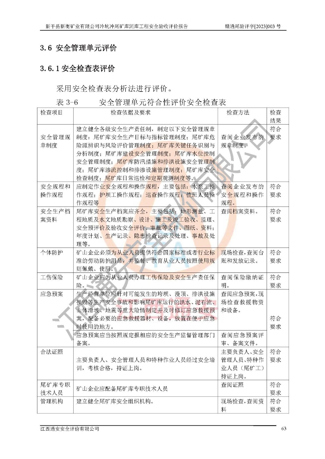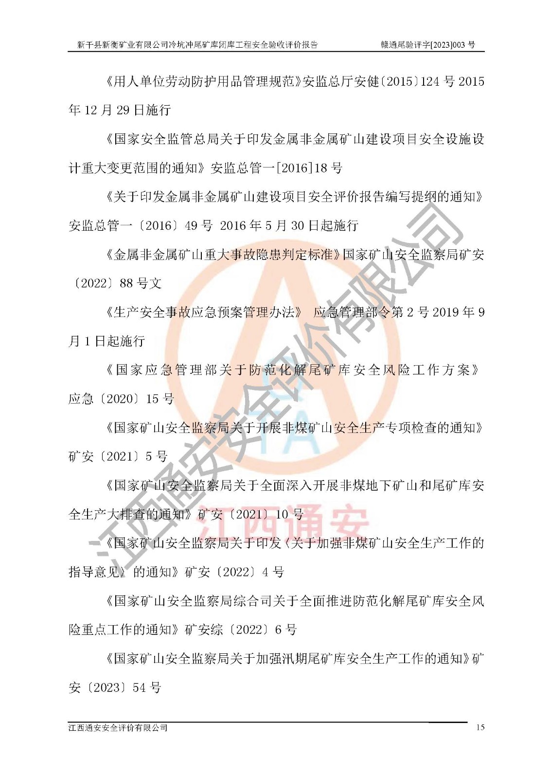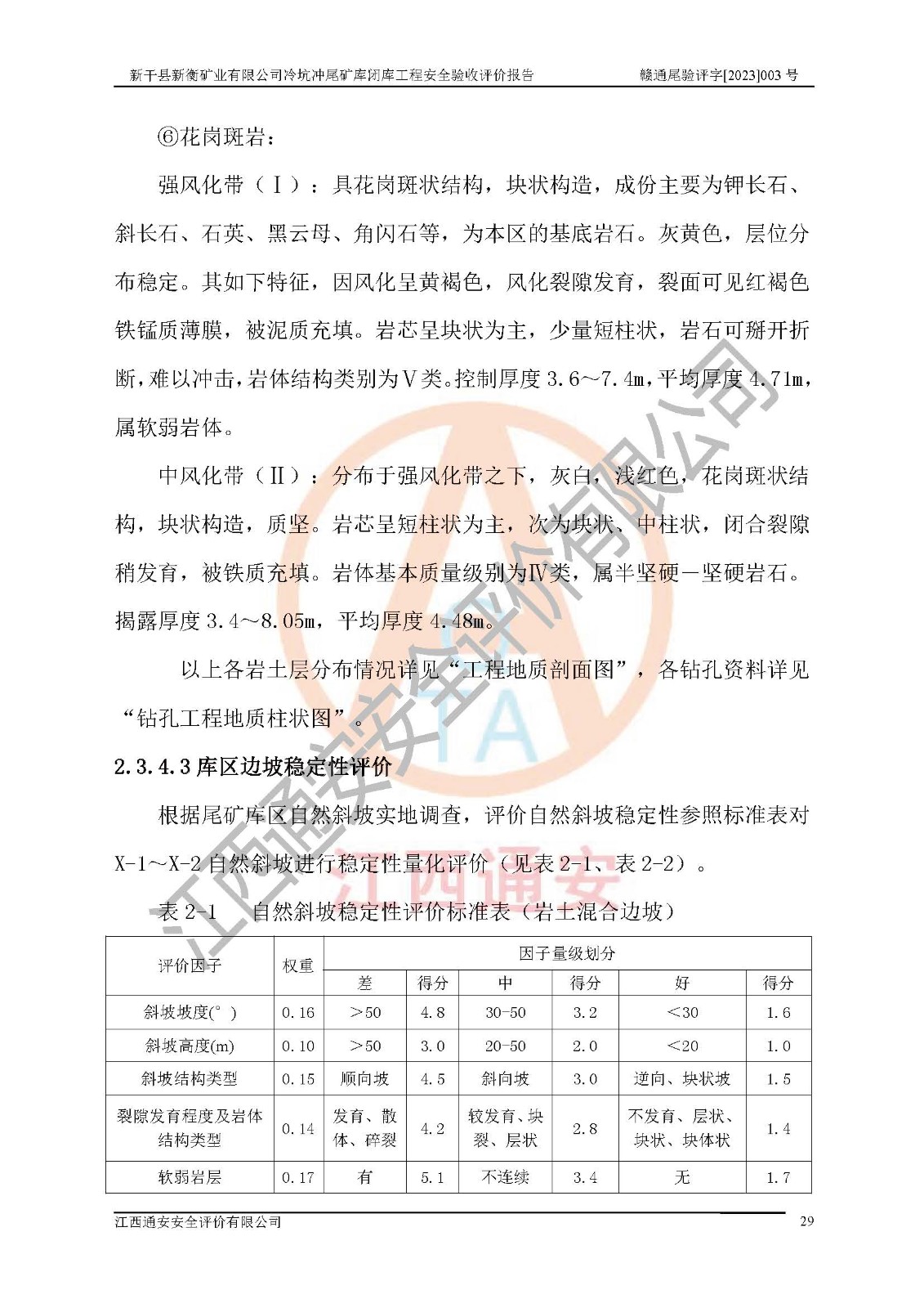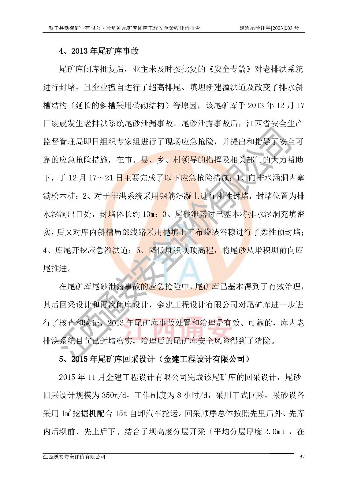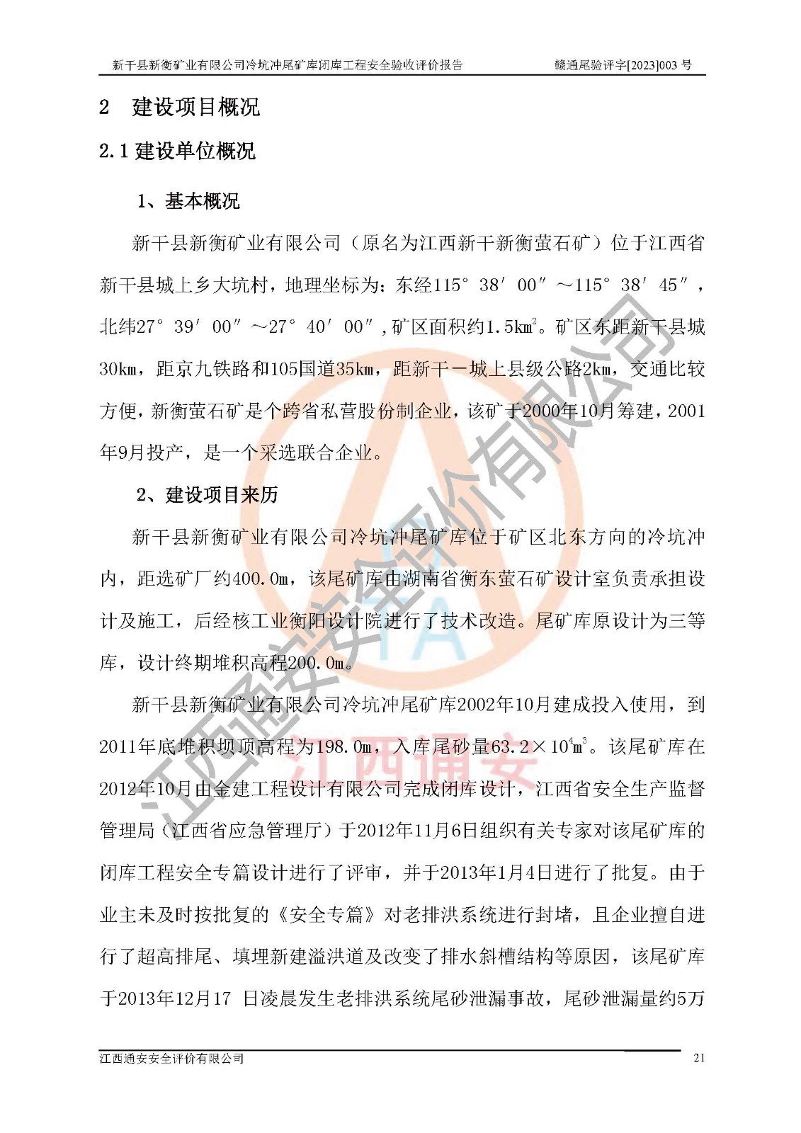評(píng)價(jià)報(bào)告名稱 | 新干縣新衡礦業(yè)有限公司冷坑沖尾礦庫(kù)閉庫(kù)工程安全驗(yàn)收評(píng)價(jià)報(bào)告 | |||