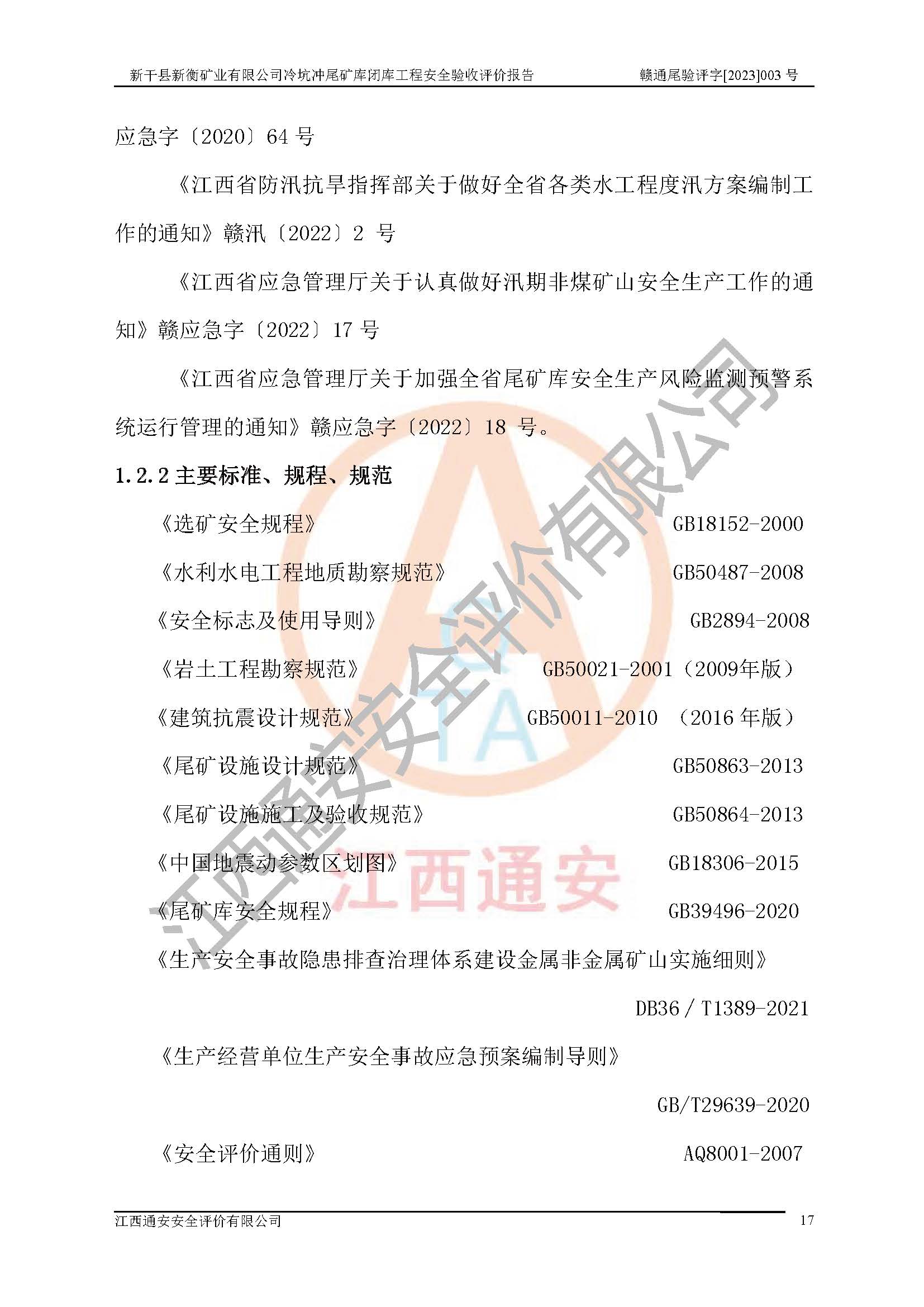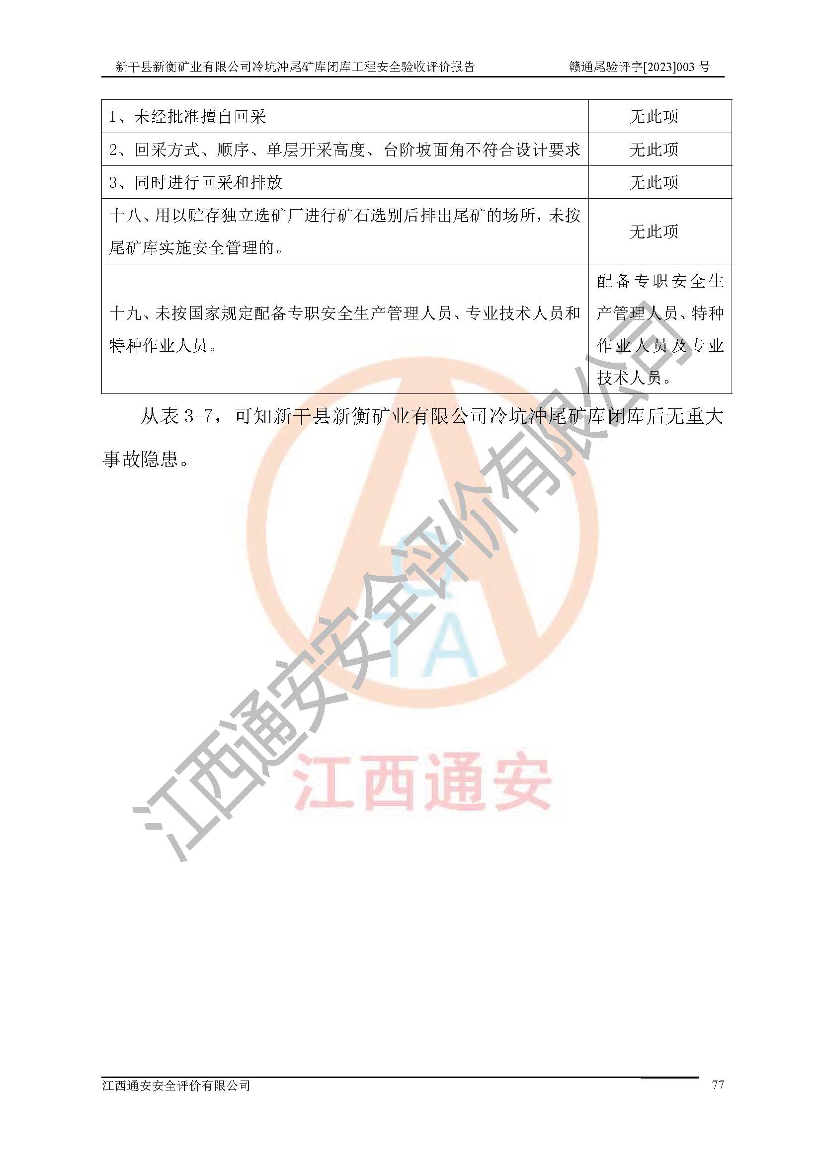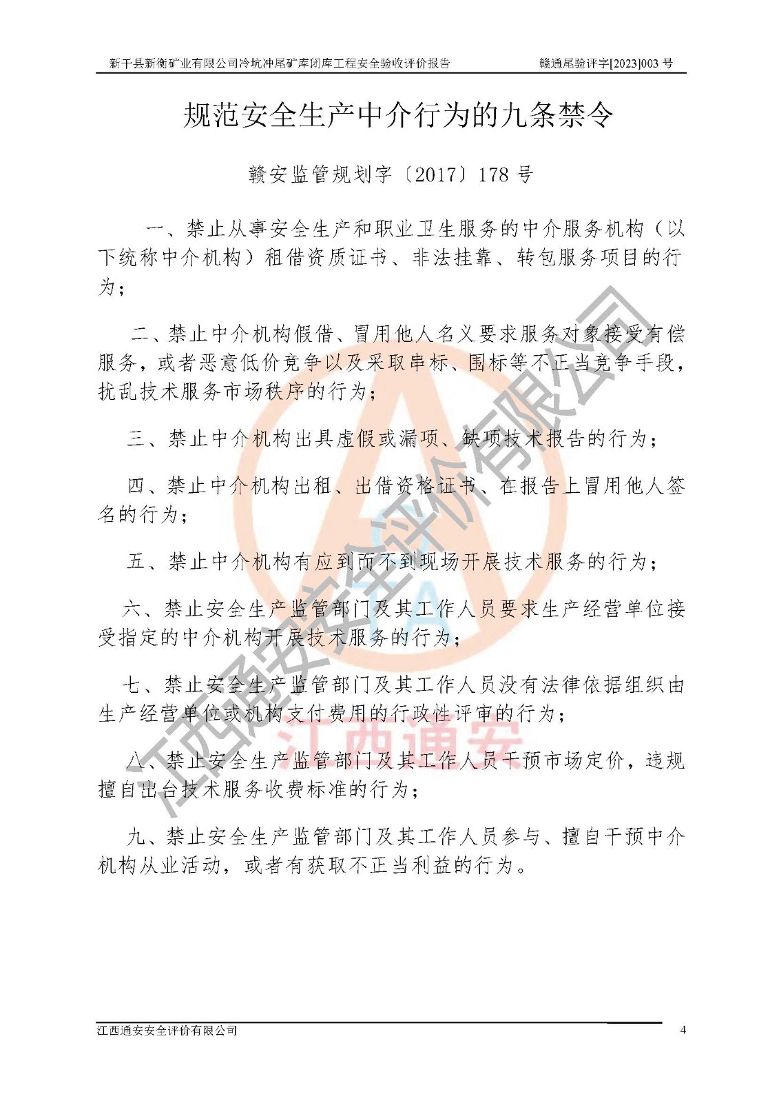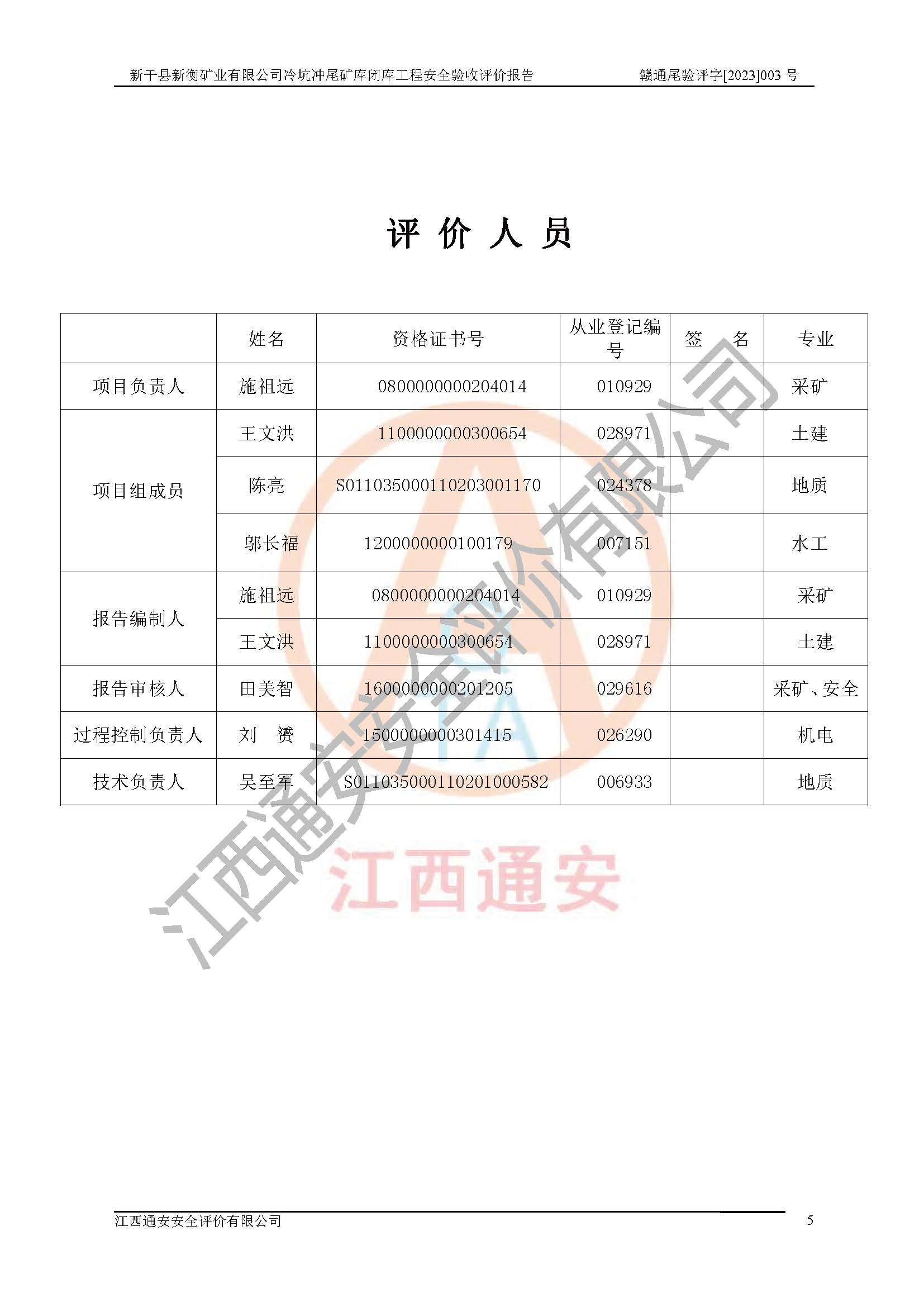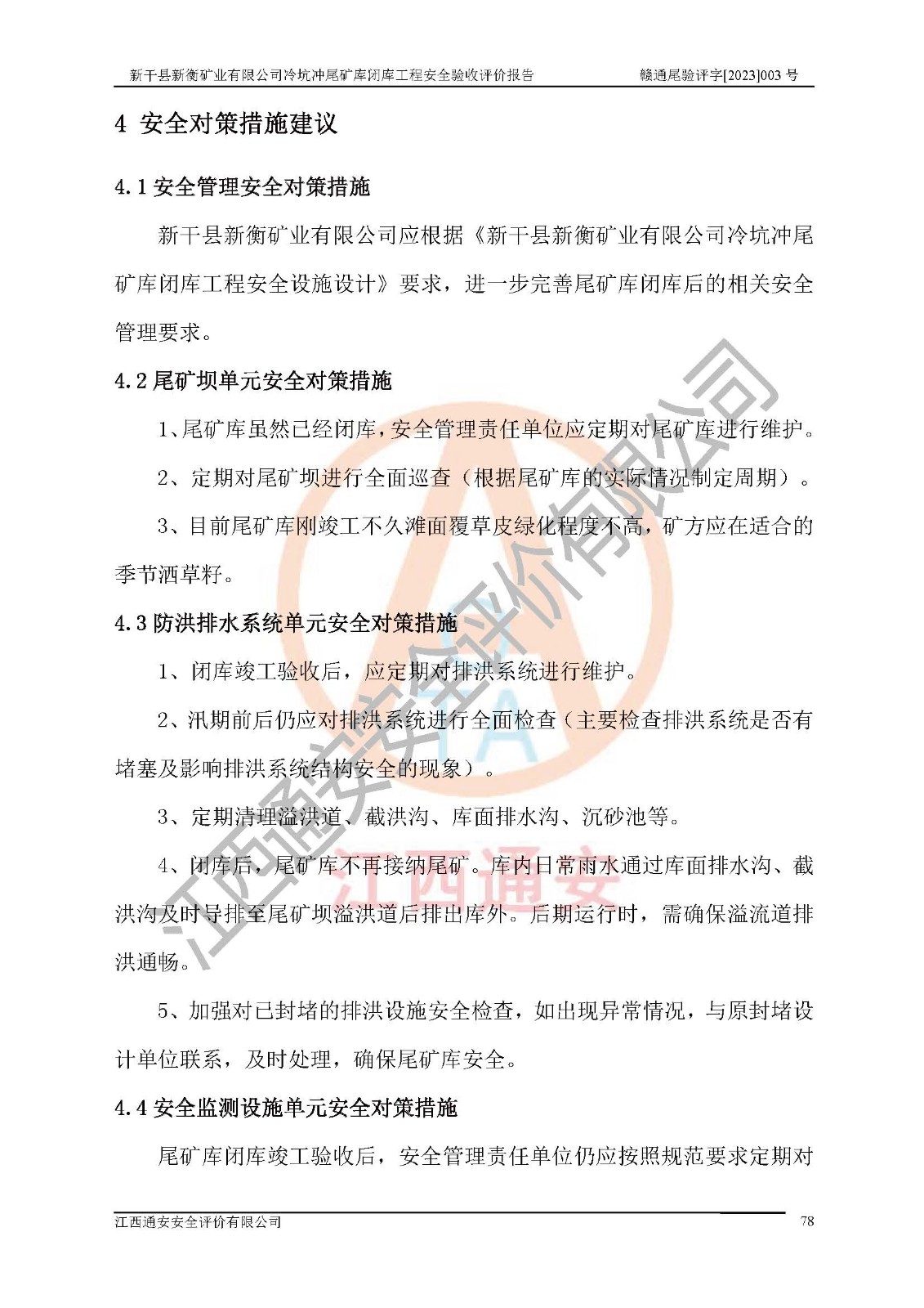 評(píng)價(jià)報(bào)告名稱 | 新干縣新衡礦業(yè)有限公司冷坑沖尾礦庫(kù)閉庫(kù)工程安全驗(yàn)收評(píng)價(jià)報(bào)告 | |||