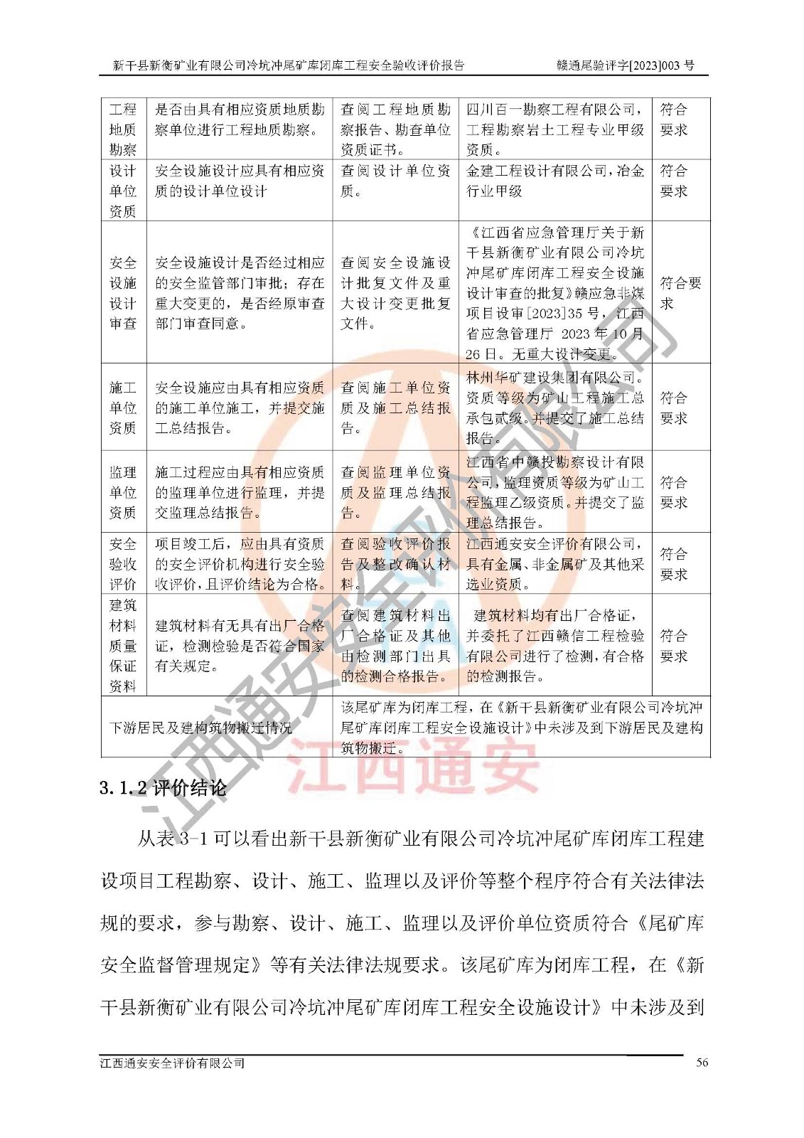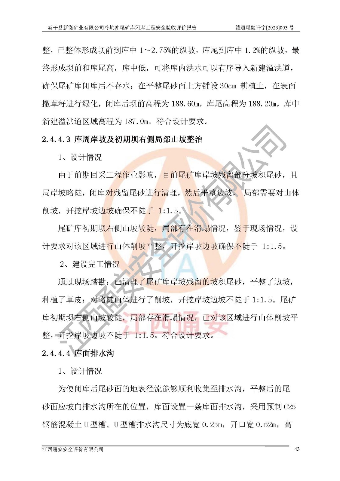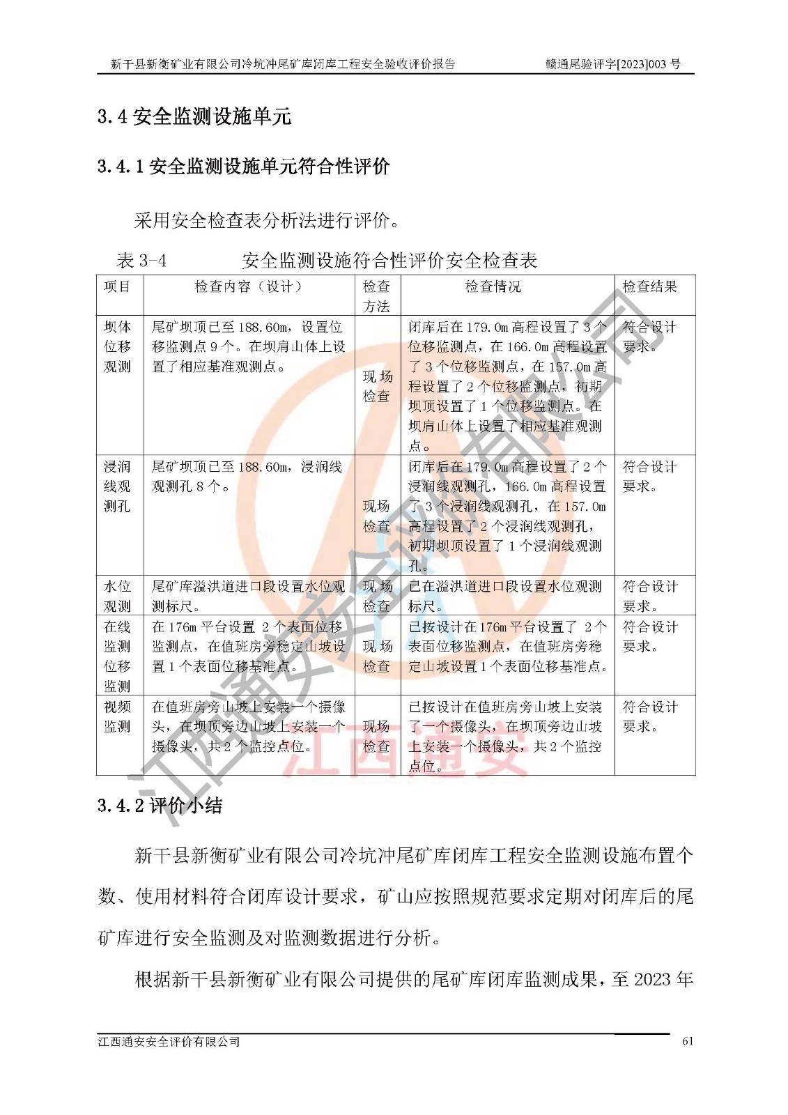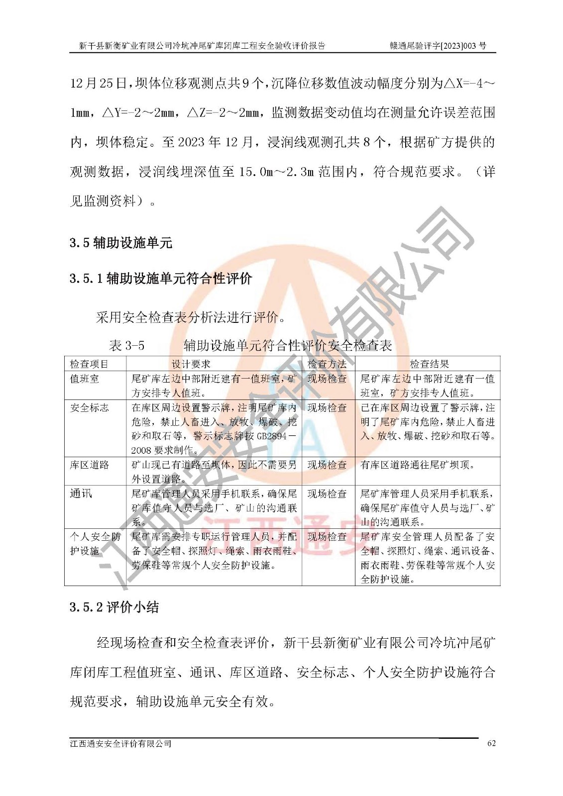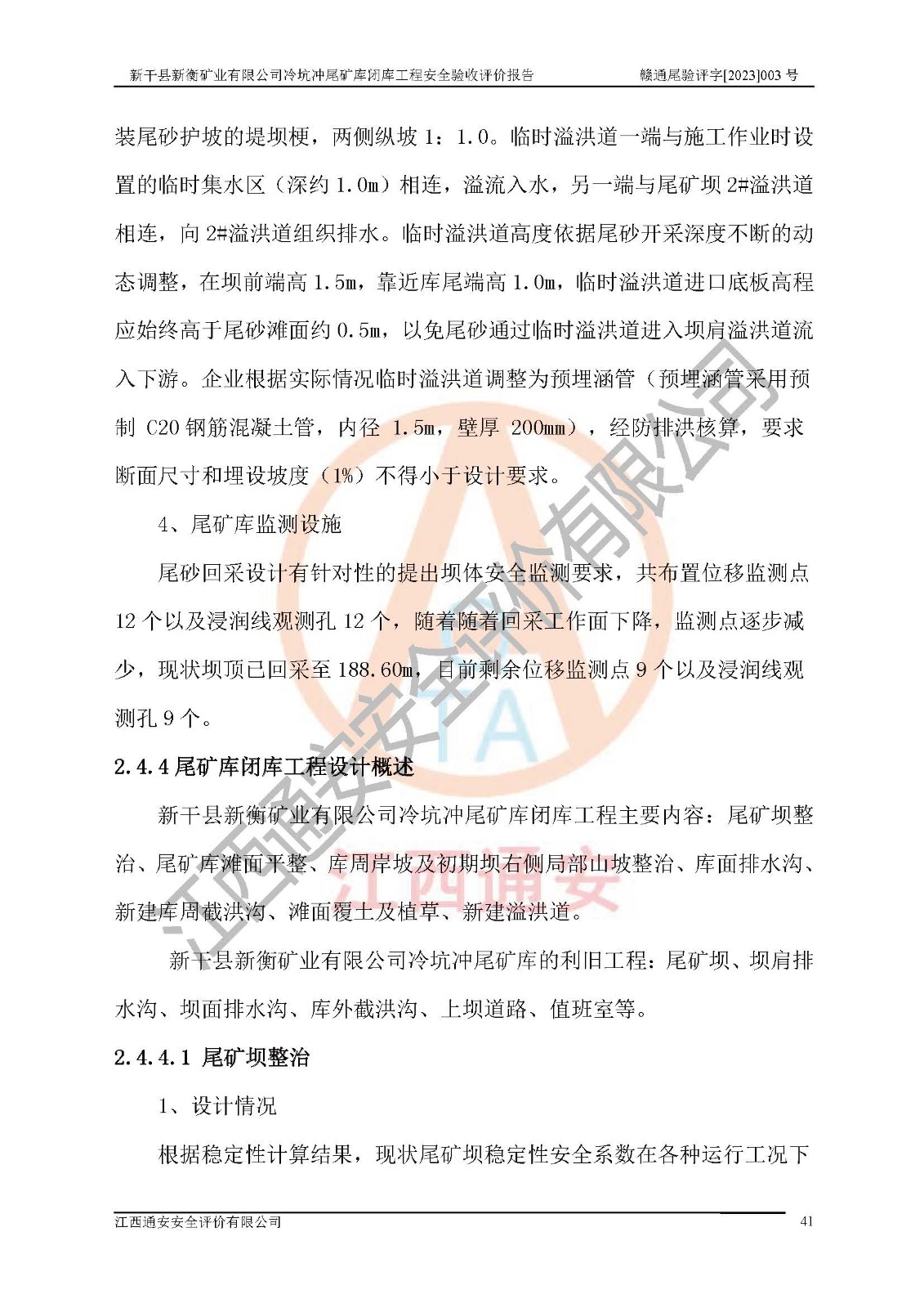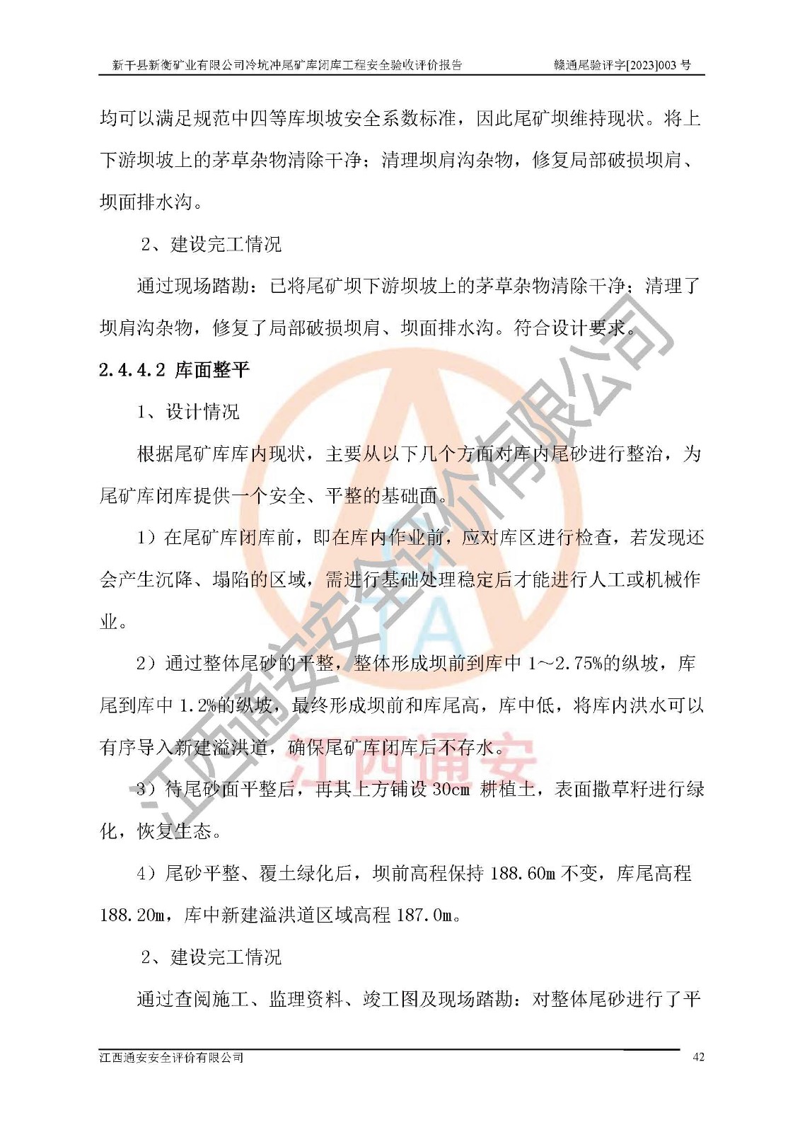 評(píng)價(jià)報(bào)告名稱 | 新干縣新衡礦業(yè)有限公司冷坑沖尾礦庫(kù)閉庫(kù)工程安全驗(yàn)收評(píng)價(jià)報(bào)告 | |||