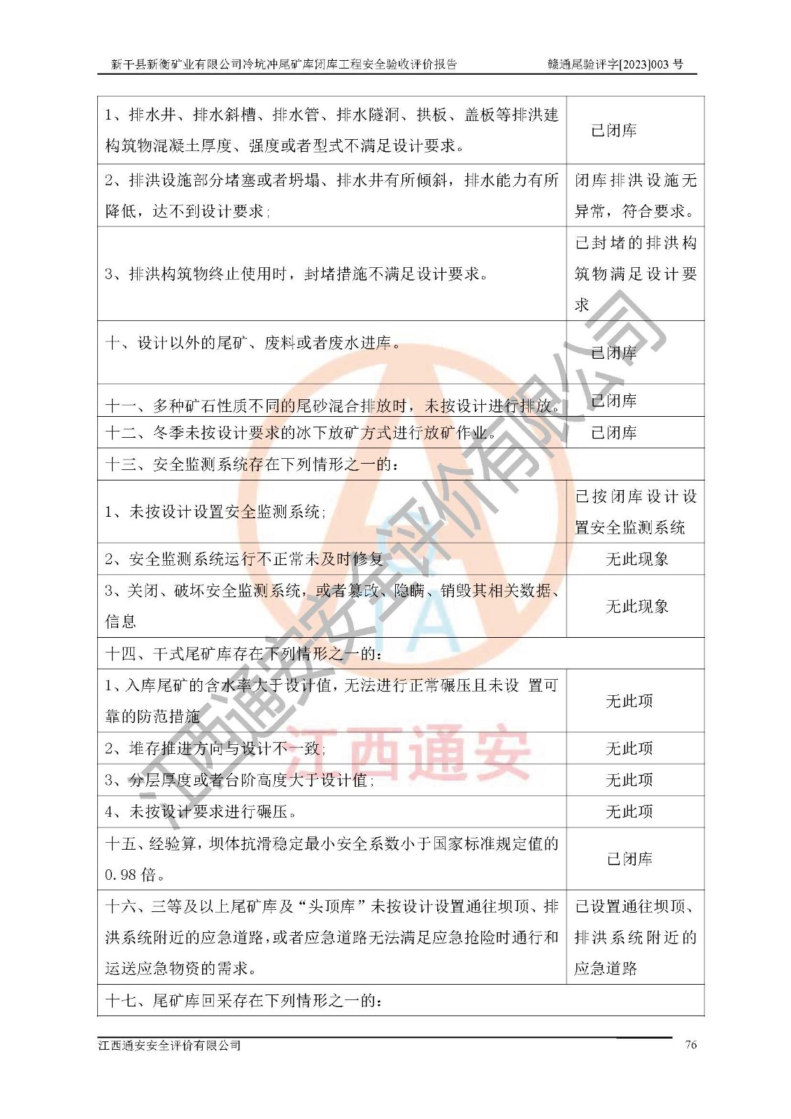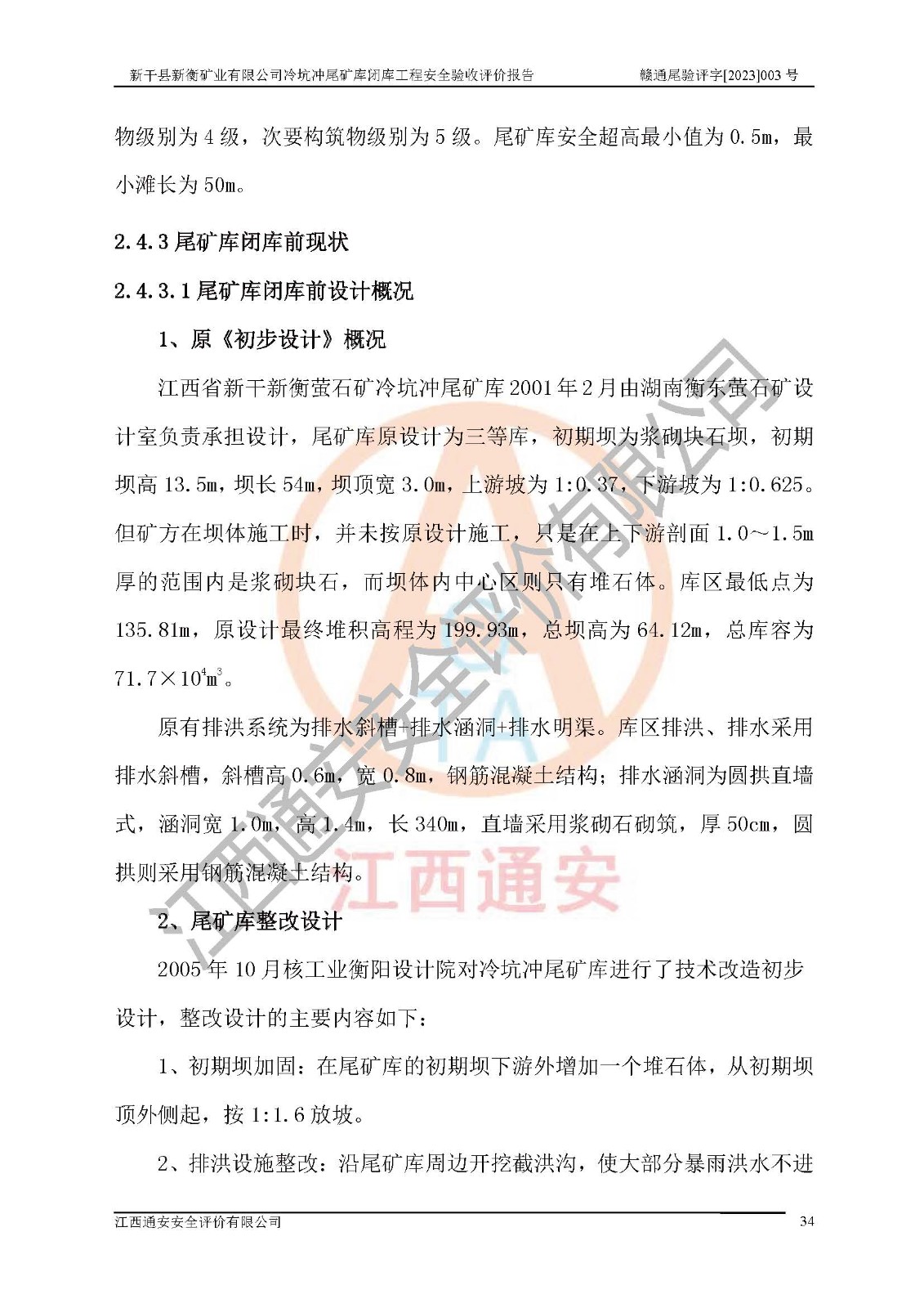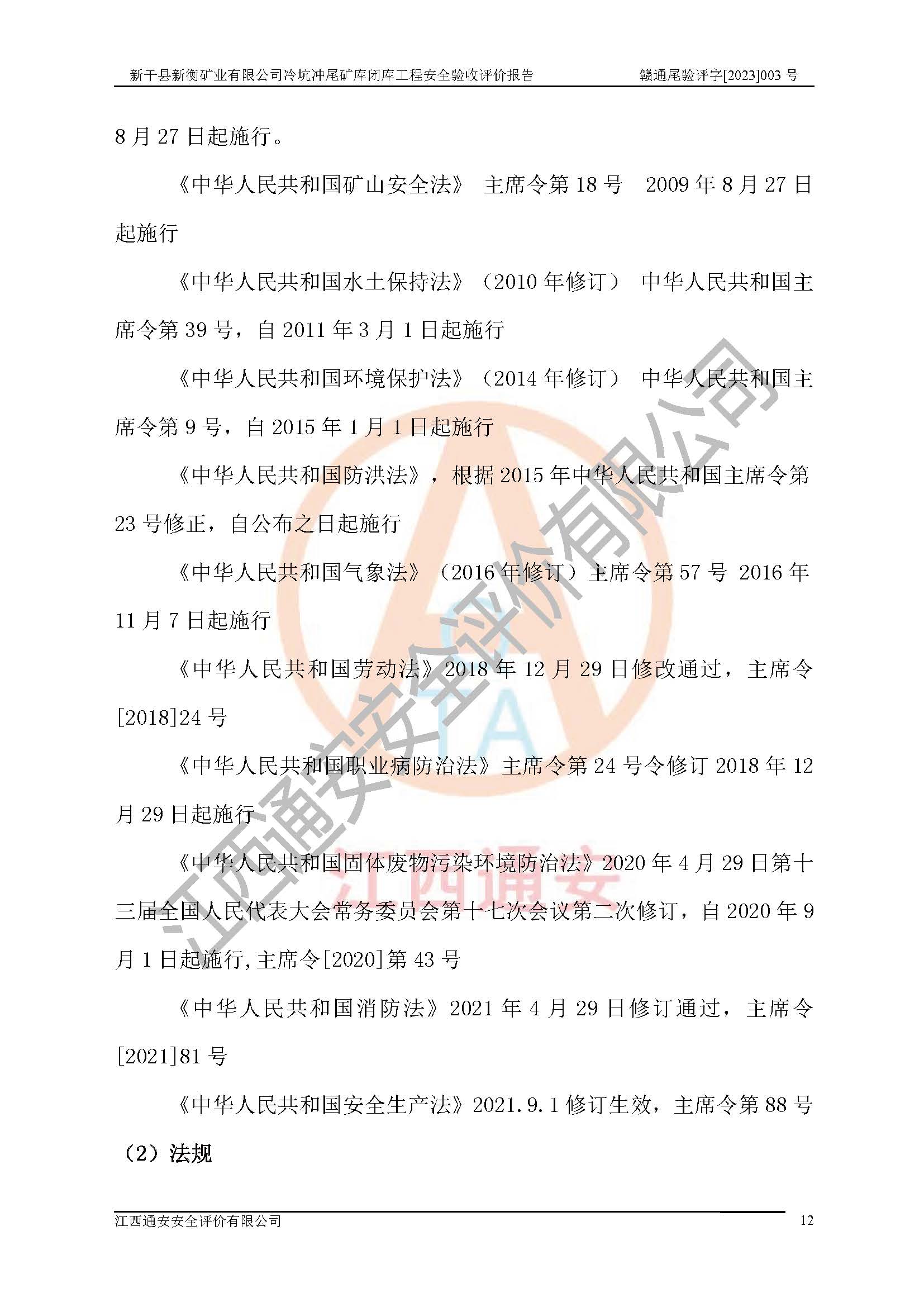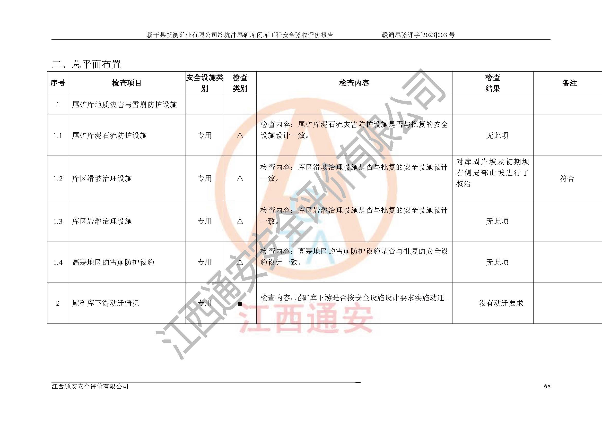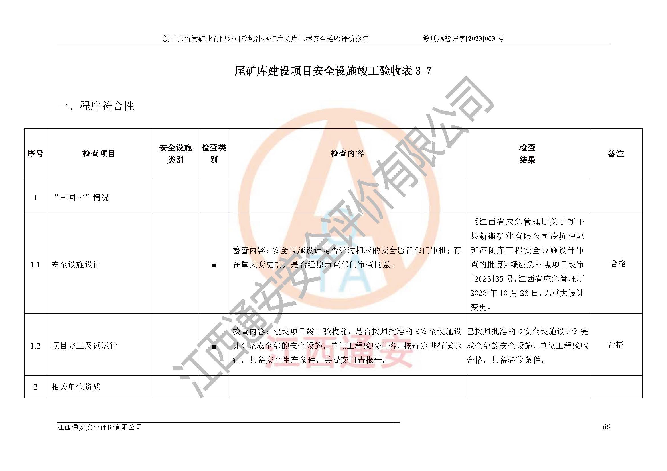評(píng)價(jià)報(bào)告名稱 | 新干縣新衡礦業(yè)有限公司冷坑沖尾礦庫(kù)閉庫(kù)工程安全驗(yàn)收評(píng)價(jià)報(bào)告 | |||