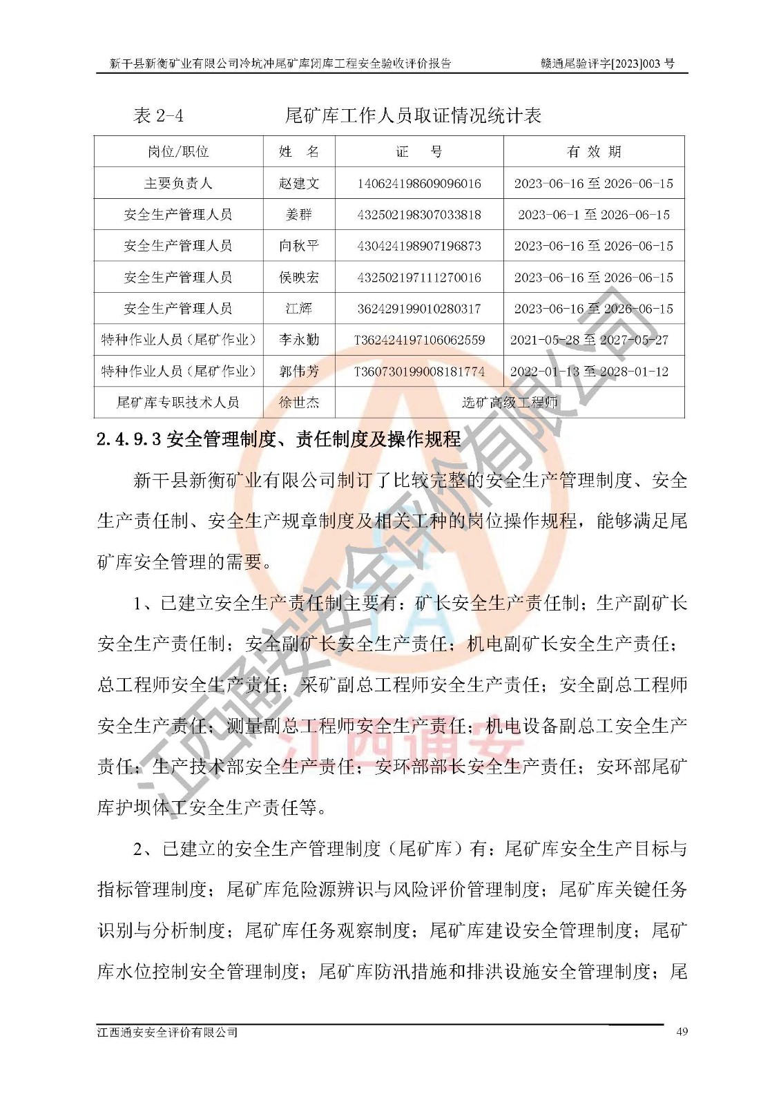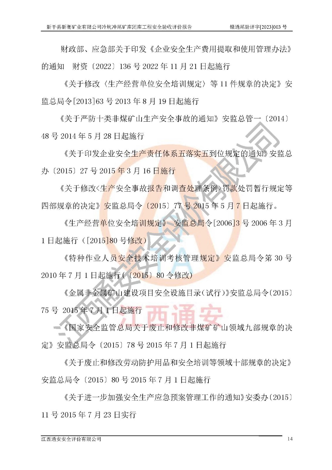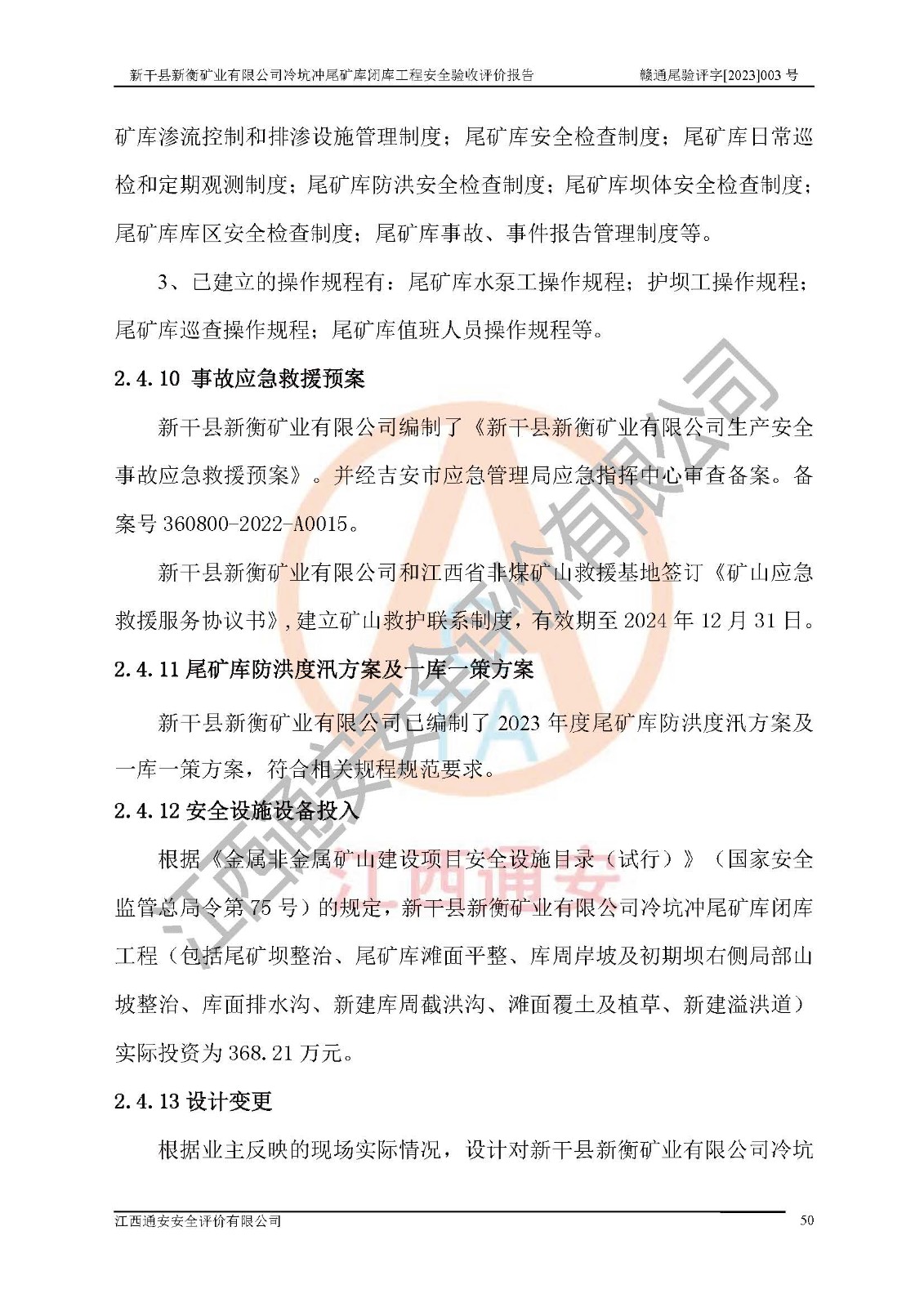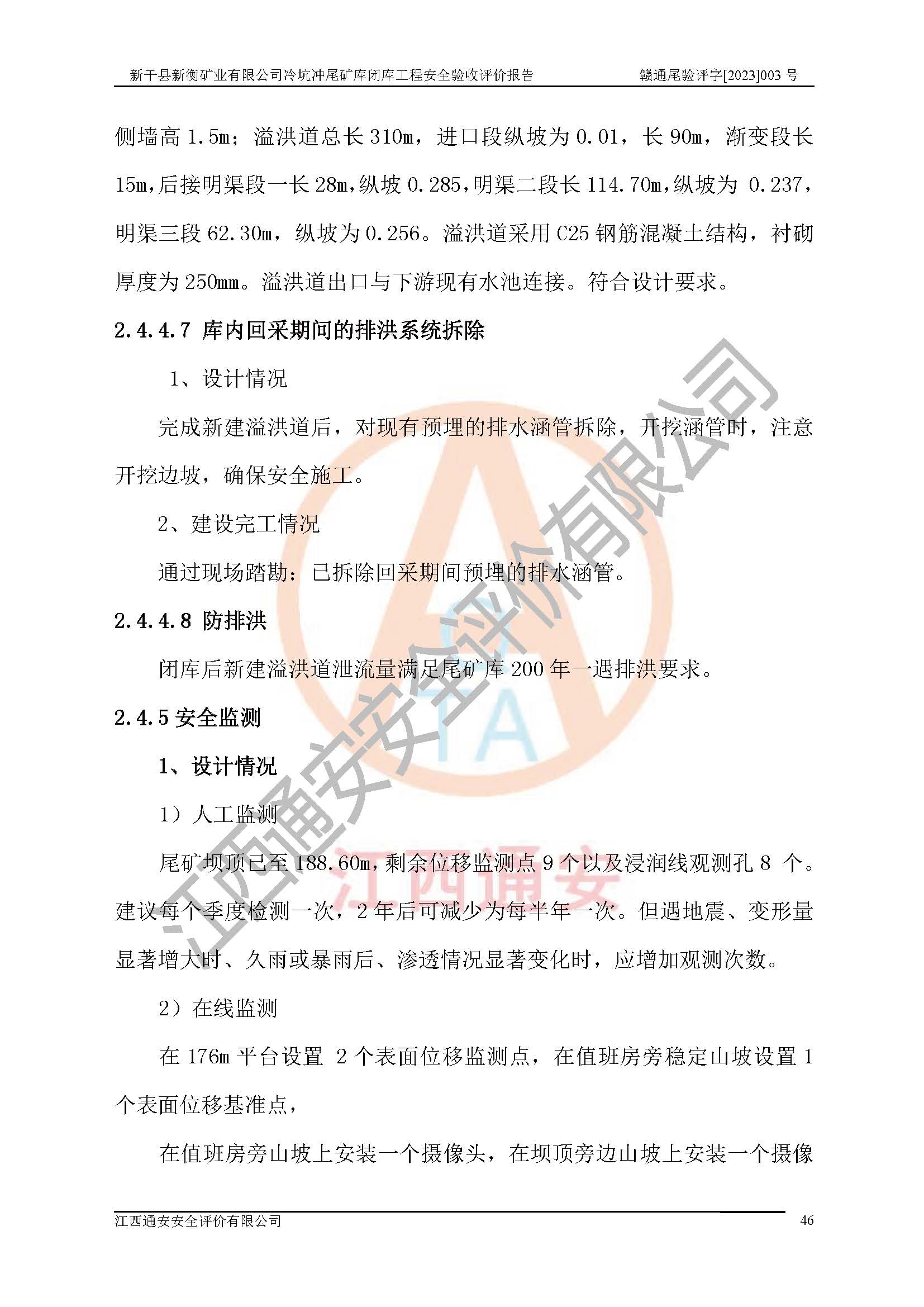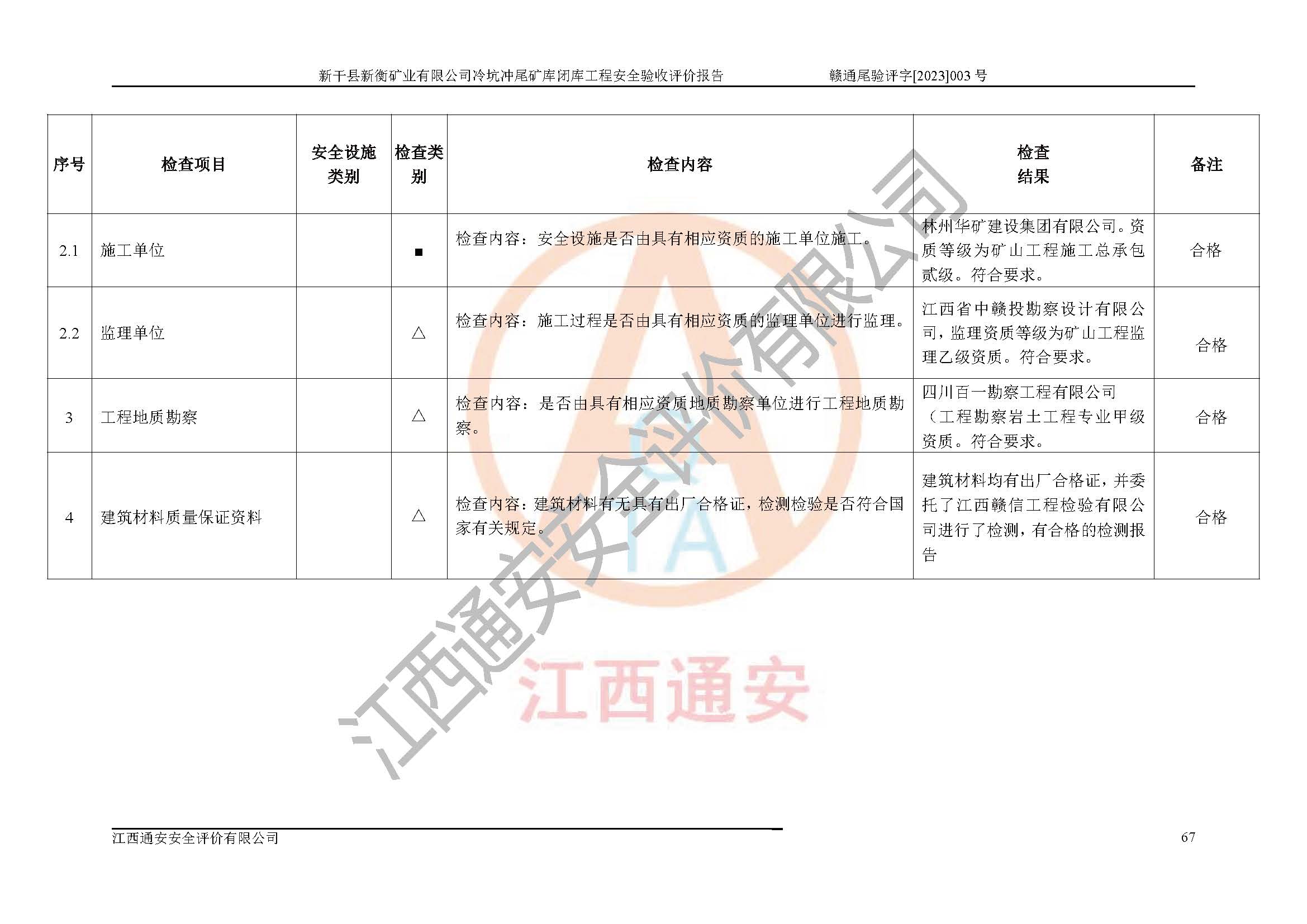 評(píng)價(jià)報(bào)告名稱 | 新干縣新衡礦業(yè)有限公司冷坑沖尾礦庫(kù)閉庫(kù)工程安全驗(yàn)收評(píng)價(jià)報(bào)告 | |||
