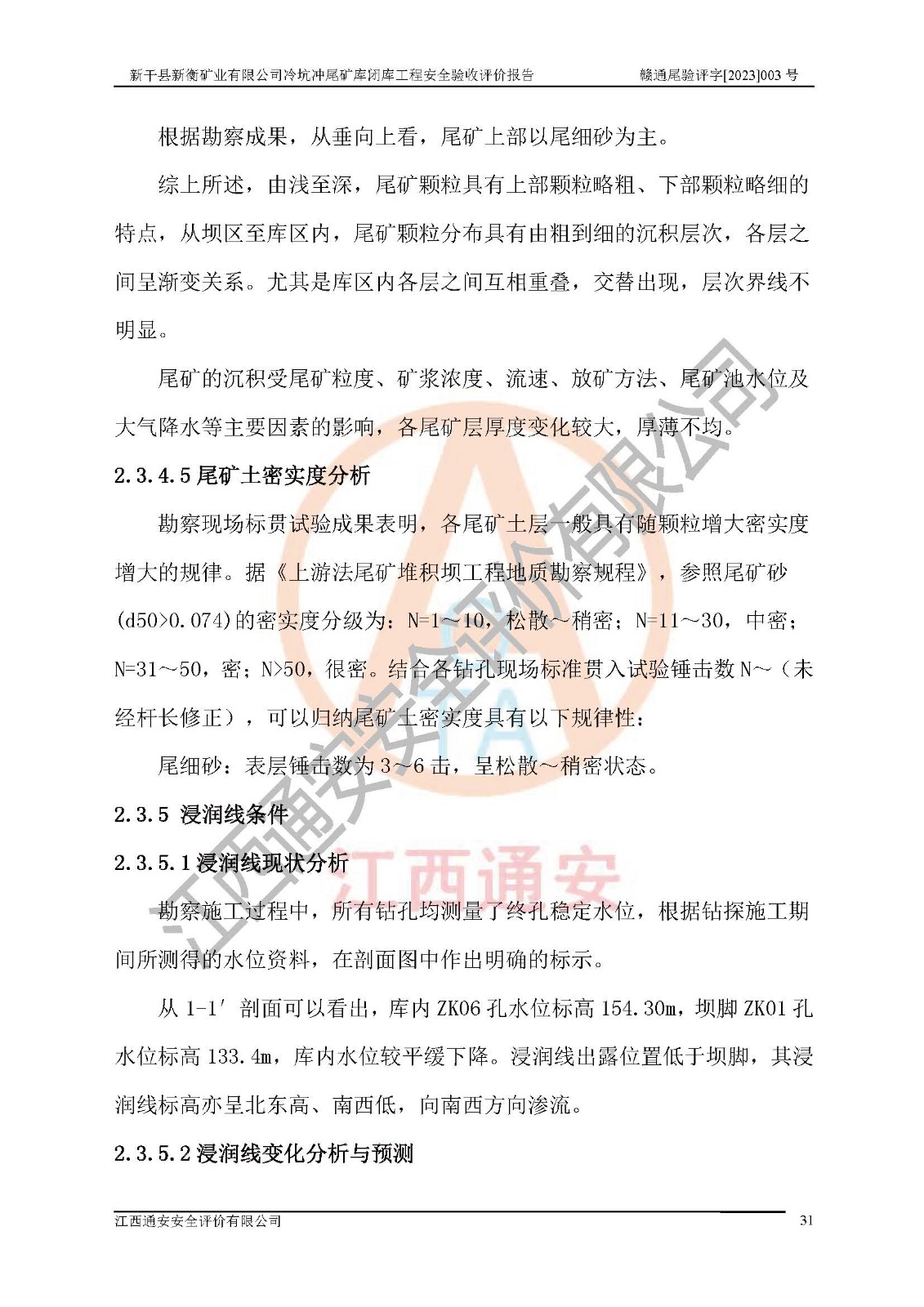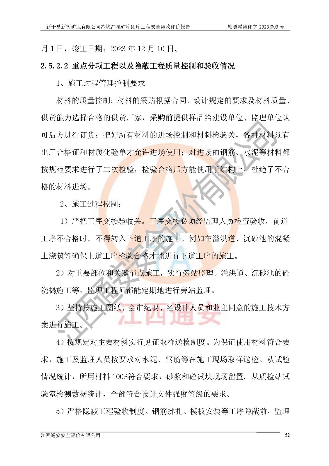 評(píng)價(jià)結(jié)論 | 安全驗(yàn)收評(píng)價(jià)結(jié)論:新干縣新衡礦業(yè)有限公司冷坑沖尾礦庫(kù)閉庫(kù)前的主要危險(xiǎn)源已**排除,閉庫(kù)工程符合《尾礦庫(kù)安全監(jiān)督管理規(guī)定》(**安全生產(chǎn)監(jiān)督管理總局〔2011〕38 號(hào))及《尾礦庫(kù)安全規(guī)程》(GB39496-2020)規(guī)定的要求,符合《新干縣新衡礦業(yè)有限公司冷坑沖尾礦庫(kù)閉庫(kù)工程初步設(shè)計(jì)及安全設(shè)施設(shè)計(jì)》的要求,閉庫(kù)工程質(zhì)量合格,具備了尾礦庫(kù)閉庫(kù)工程驗(yàn)收條件。 | |||