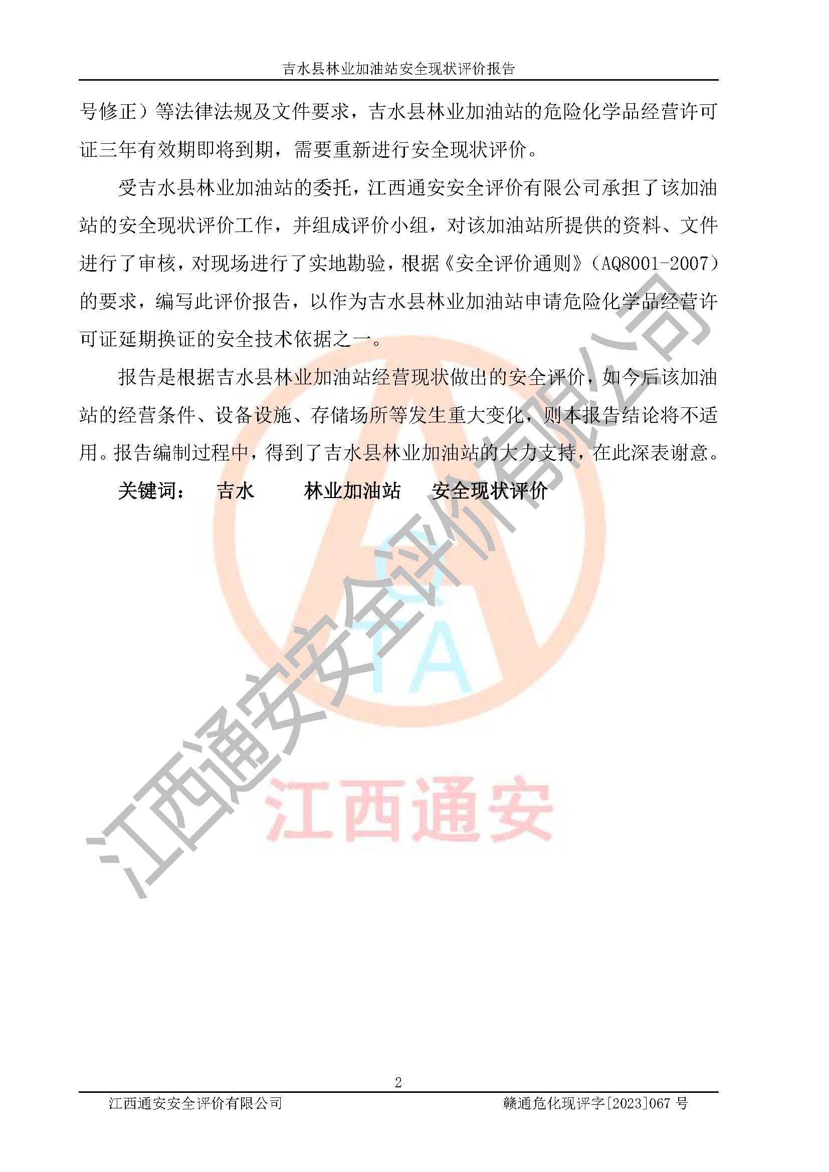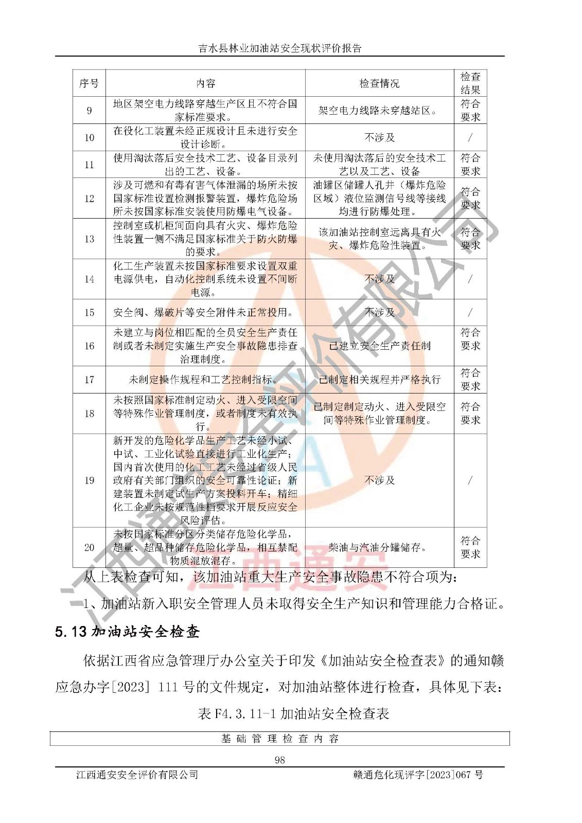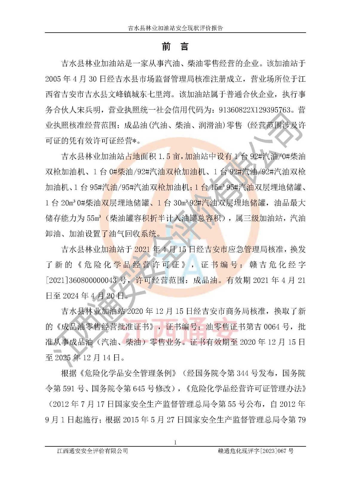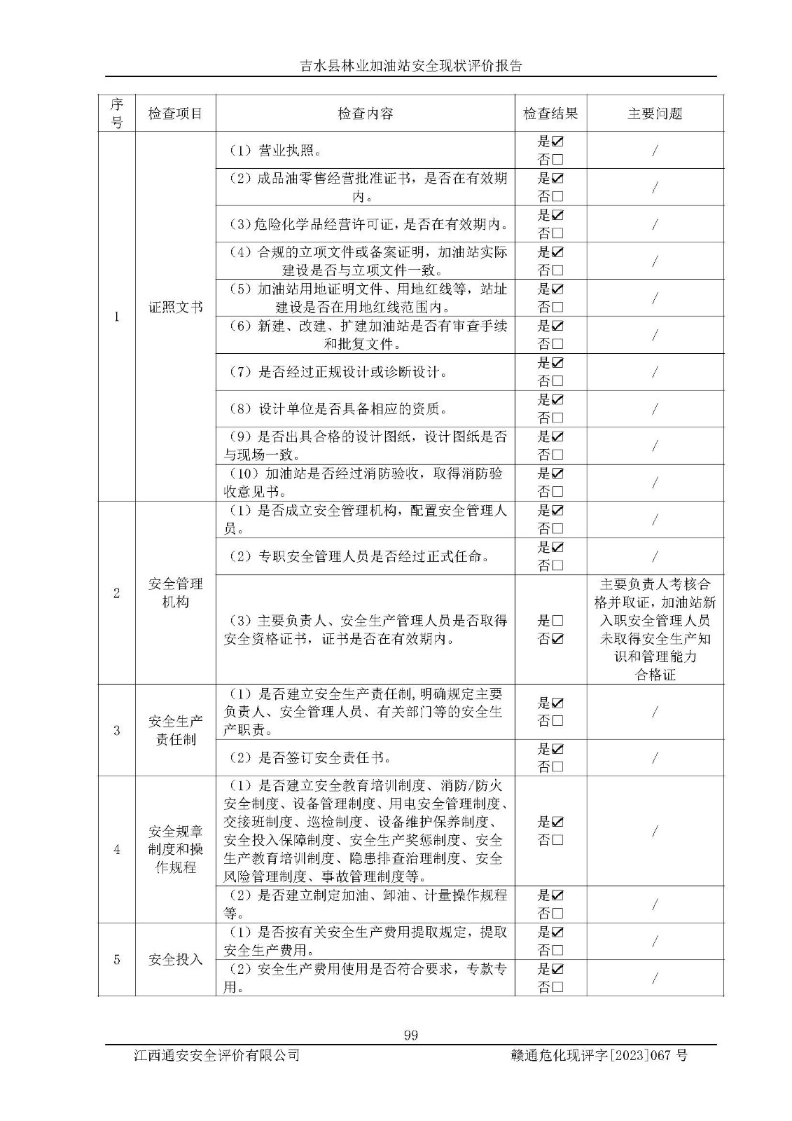 項目名稱 | 吉水縣林業(yè)加油站安全現狀評價報告 | ||||