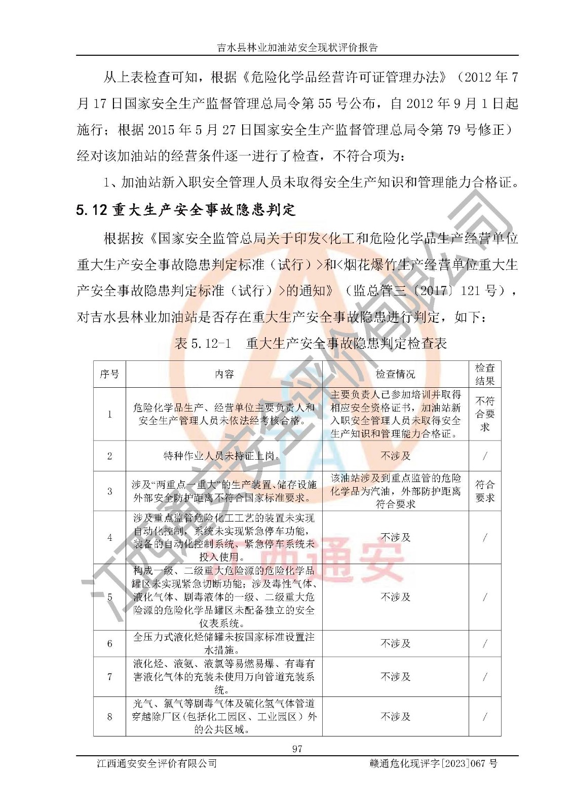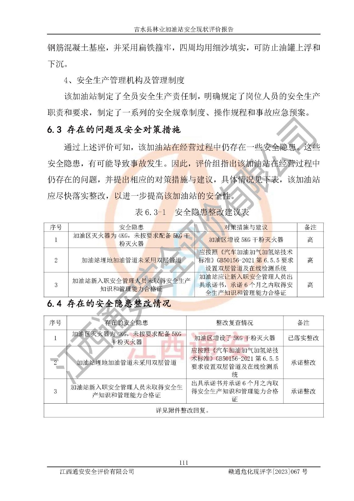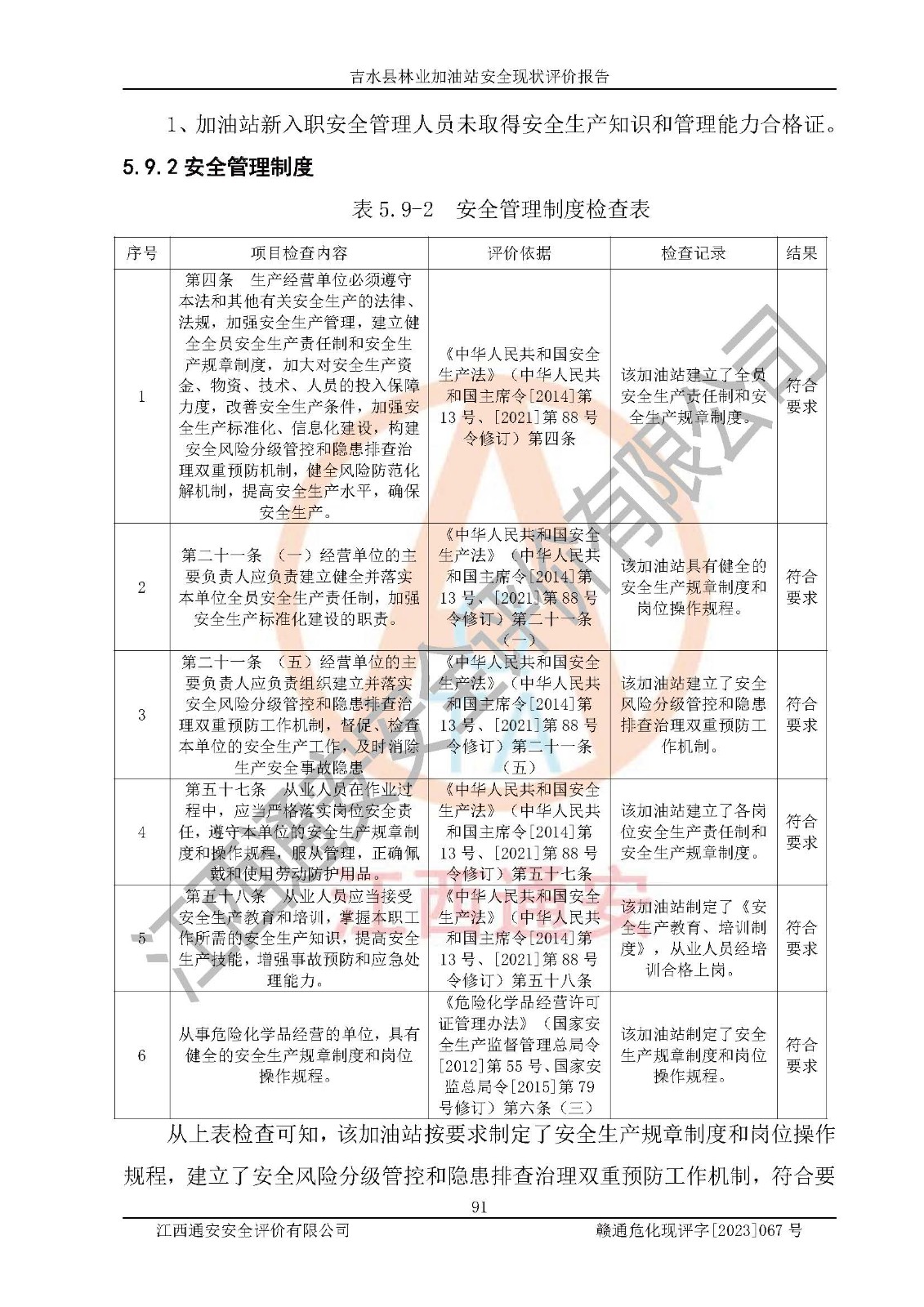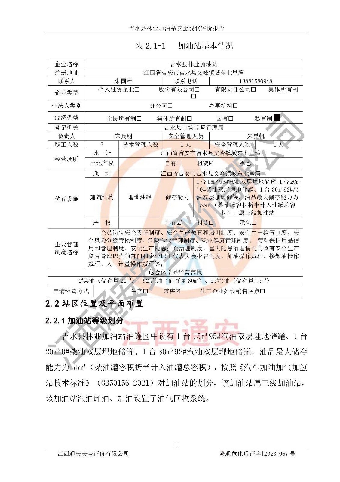 項目名稱 | 吉水縣林業(yè)加油站安全現狀評價報告 | ||||
