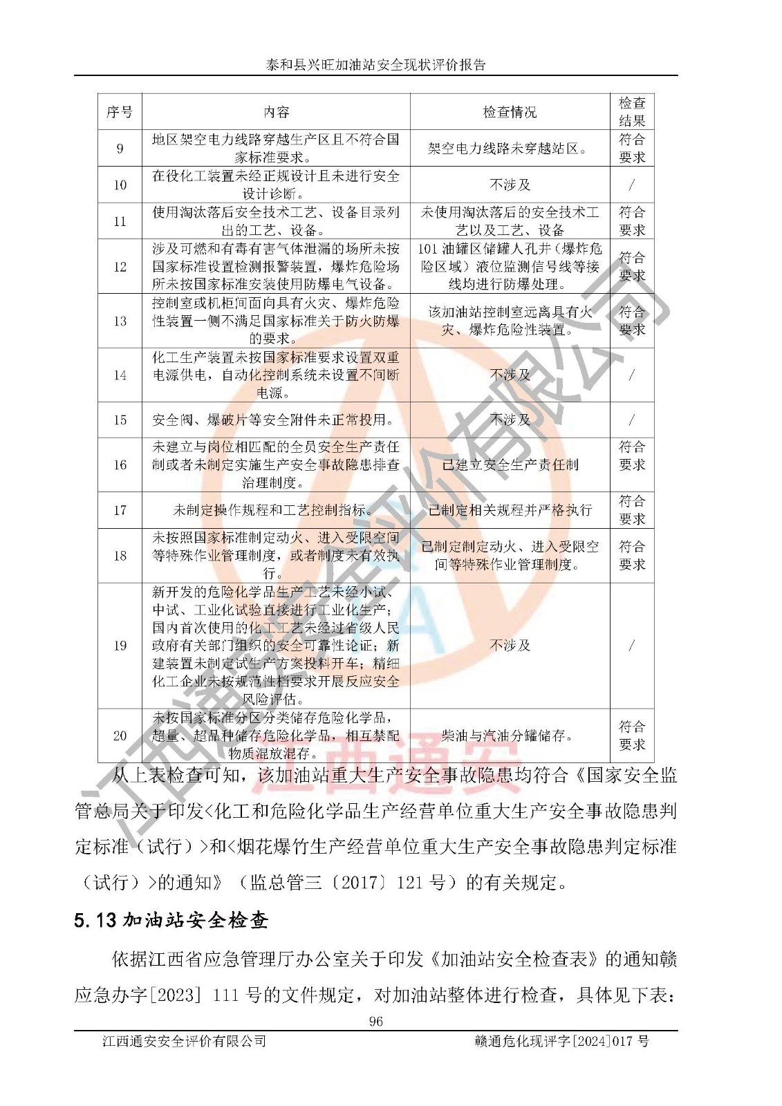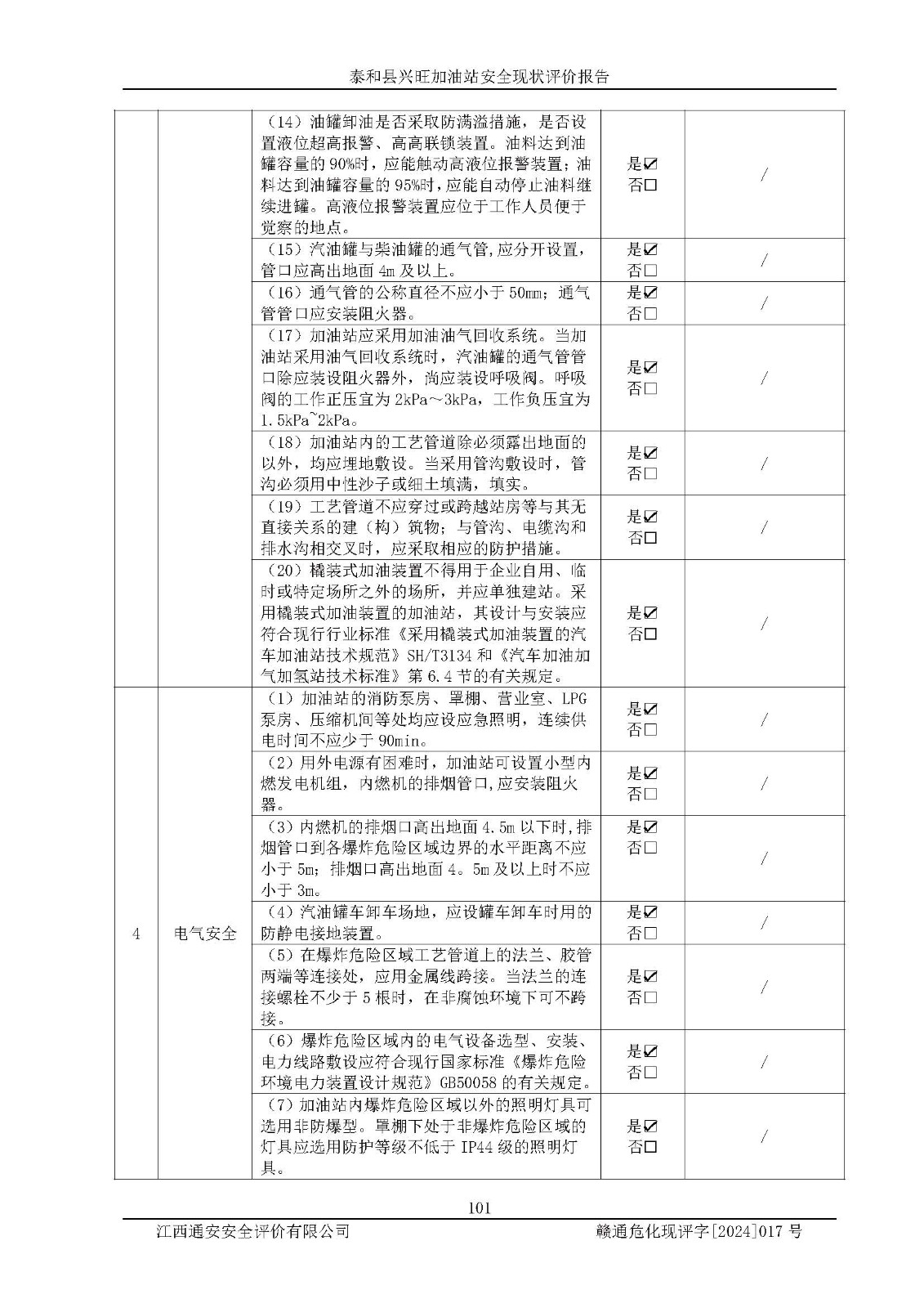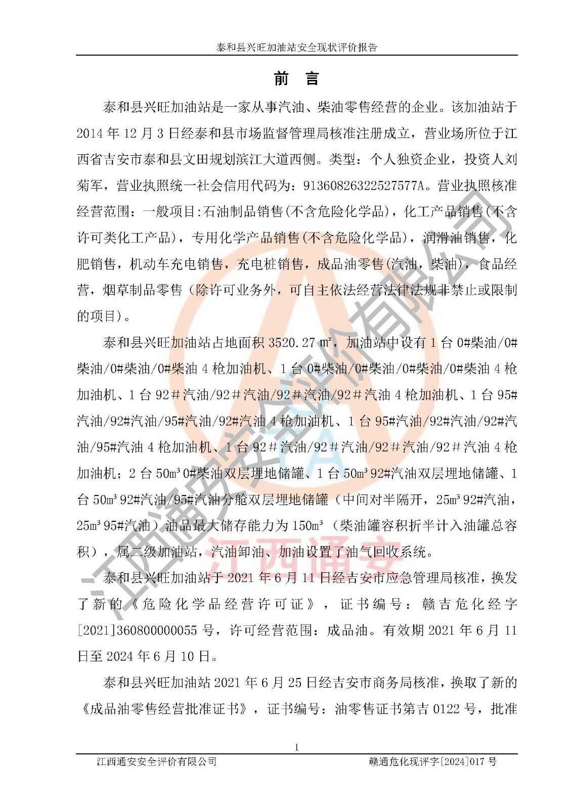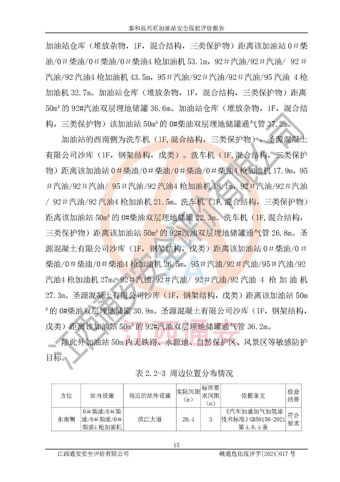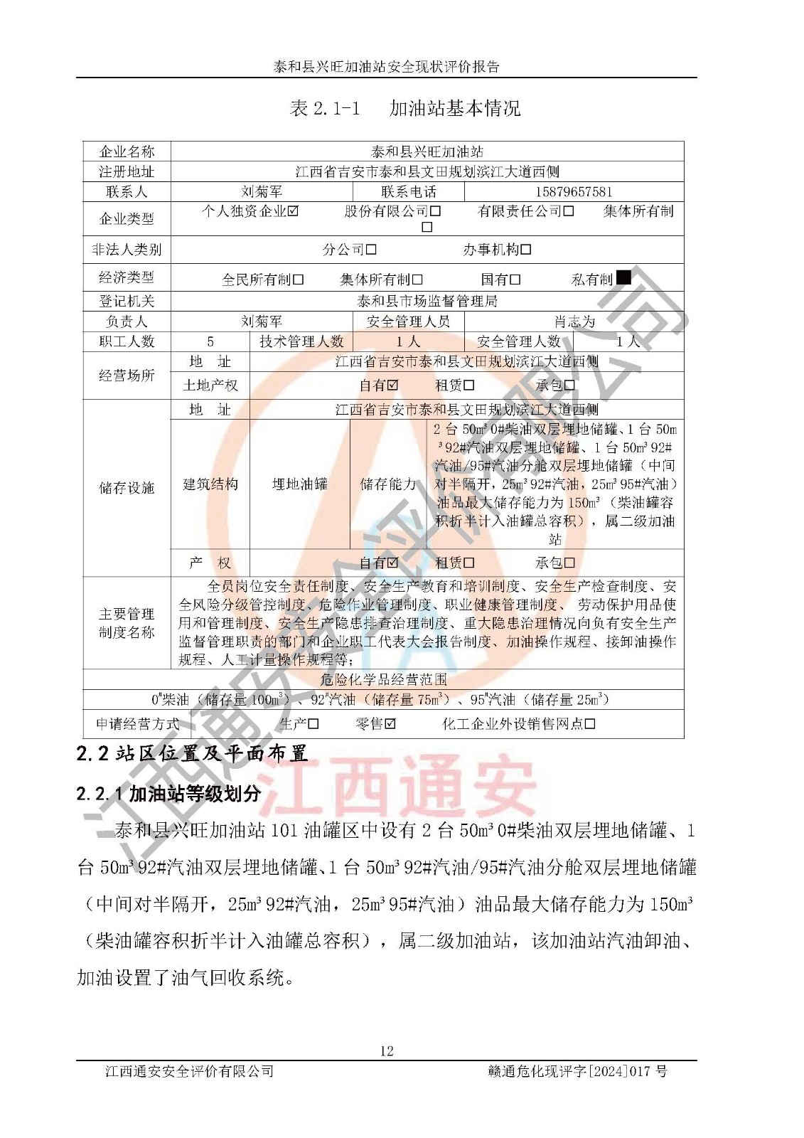 項目名稱 | 泰和縣興旺加油站安全現(xiàn)狀評價報告 | ||||