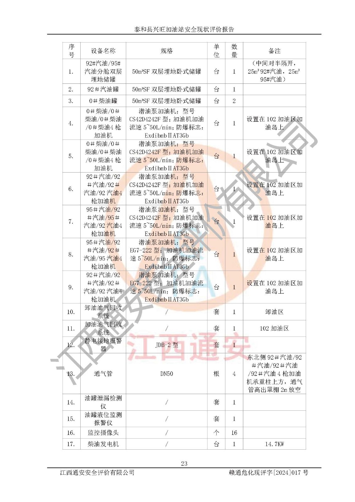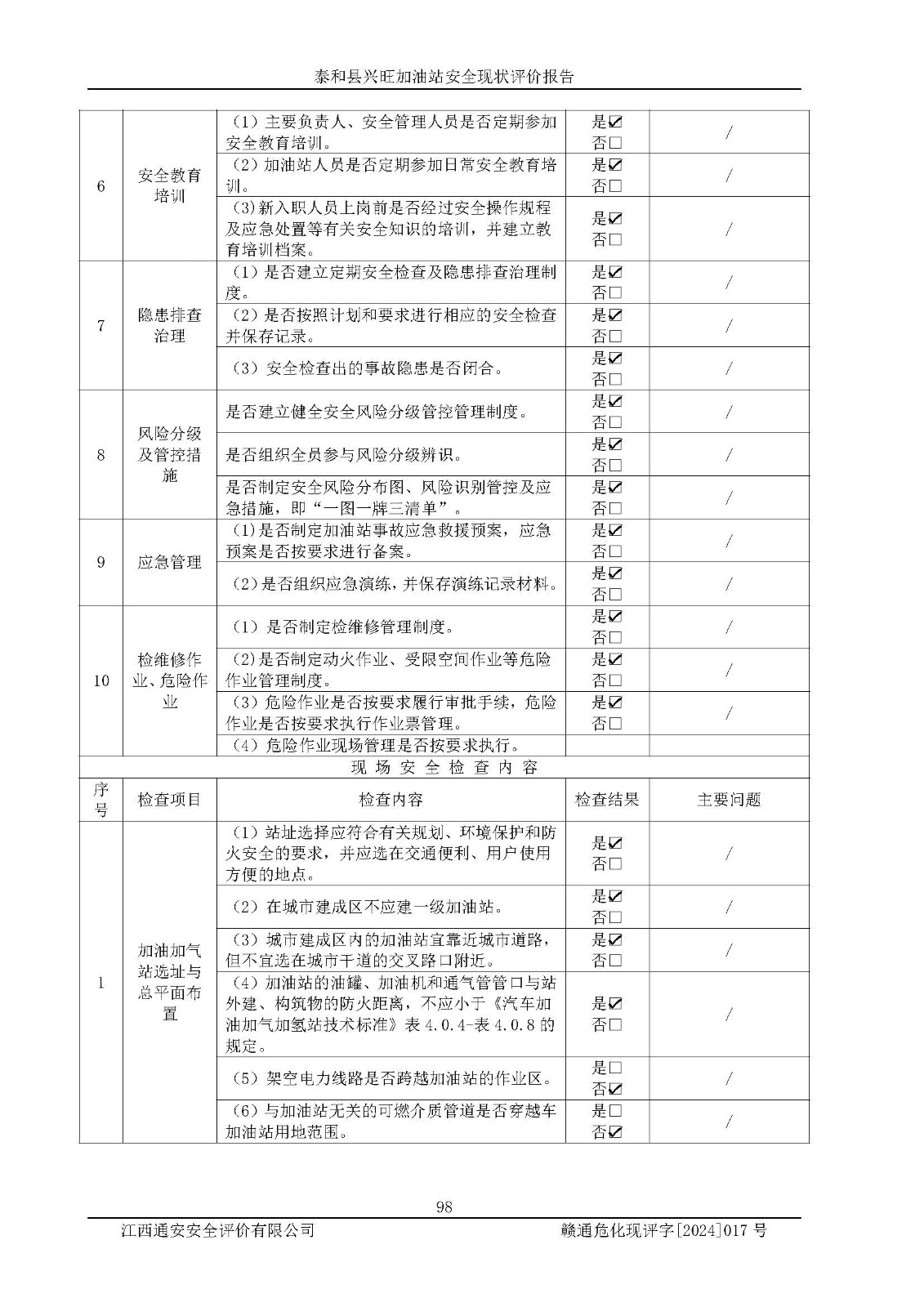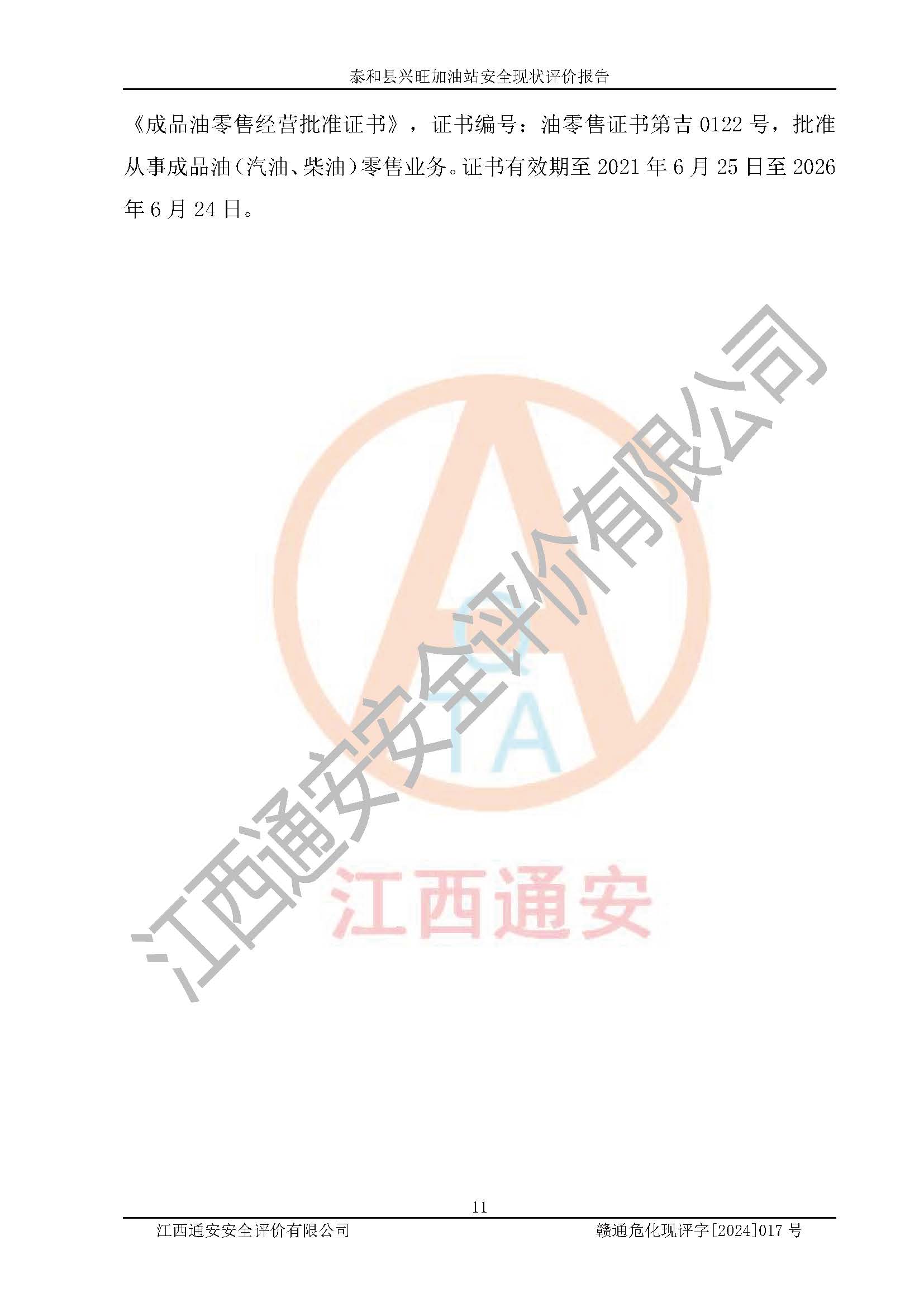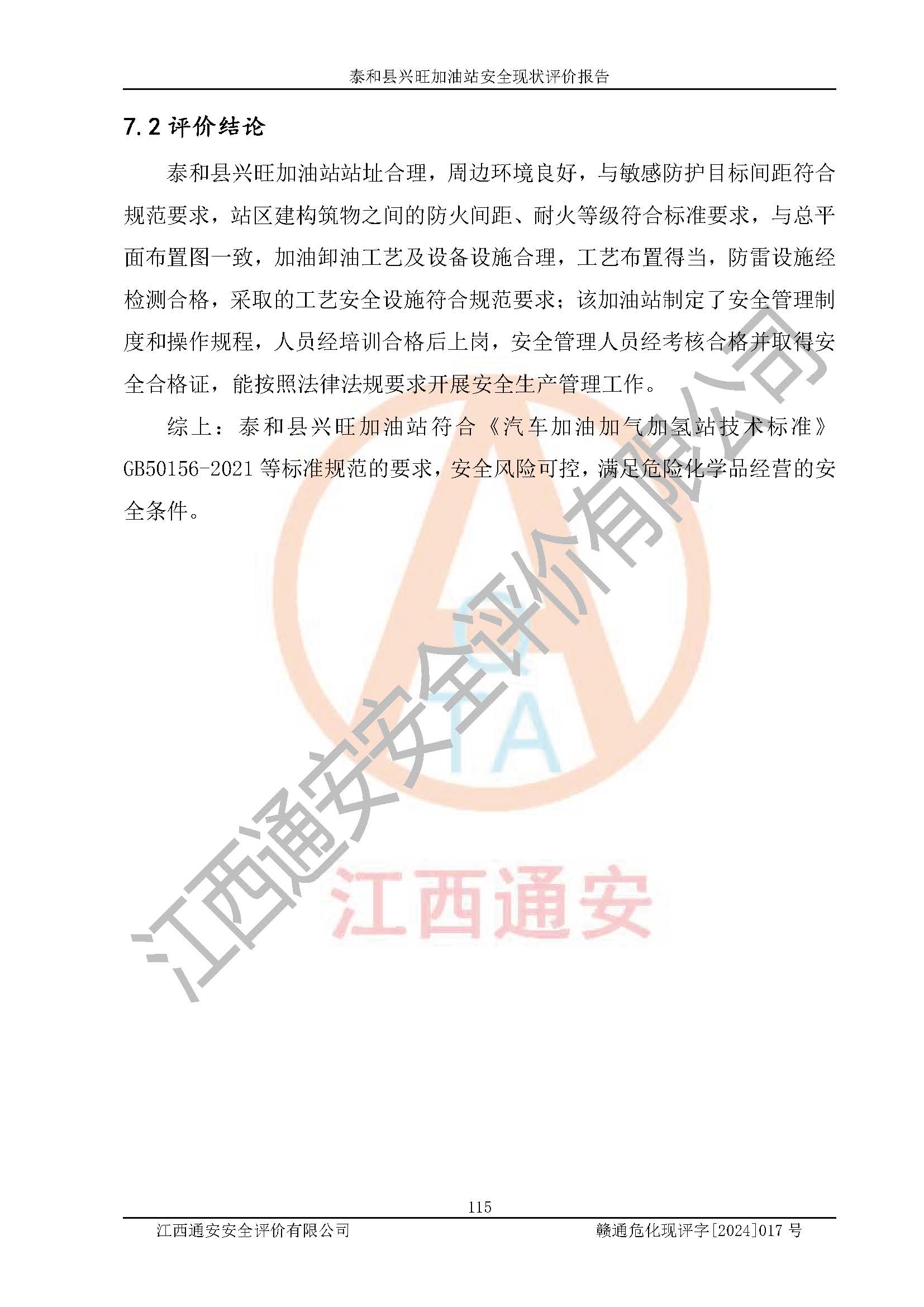 項目名稱 | 泰和縣興旺加油站安全現(xiàn)狀評價報告 | ||||