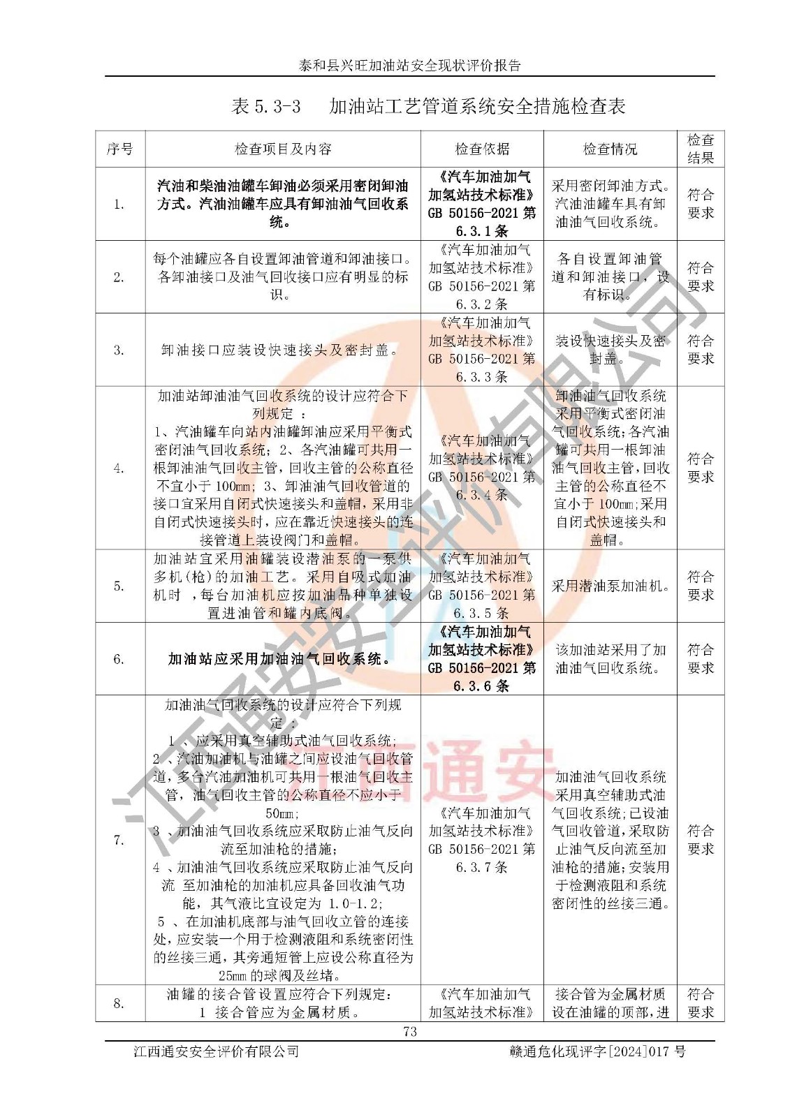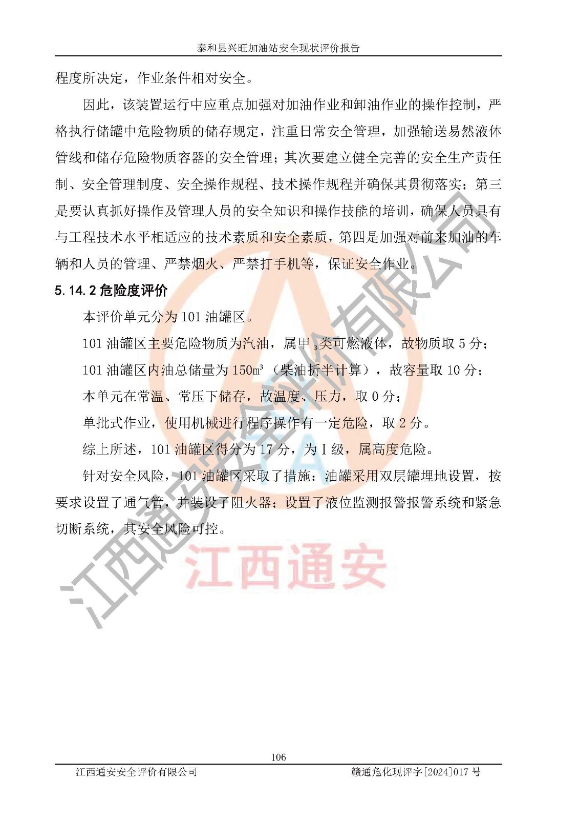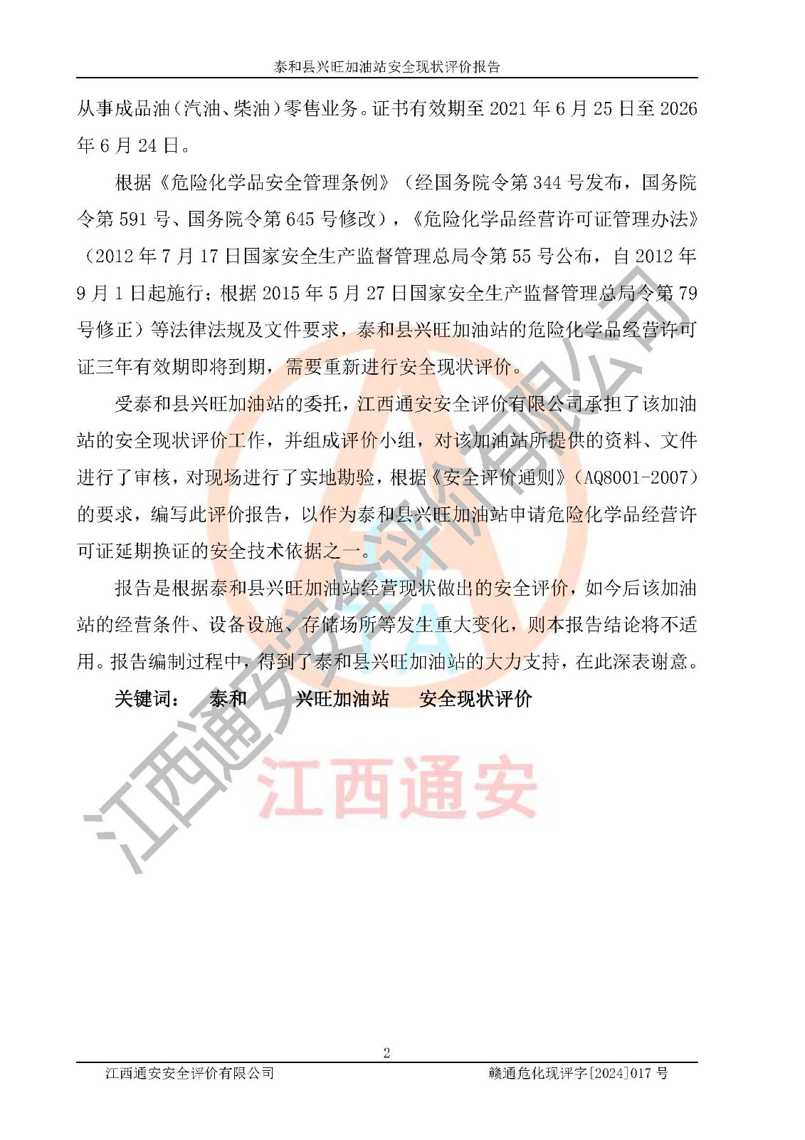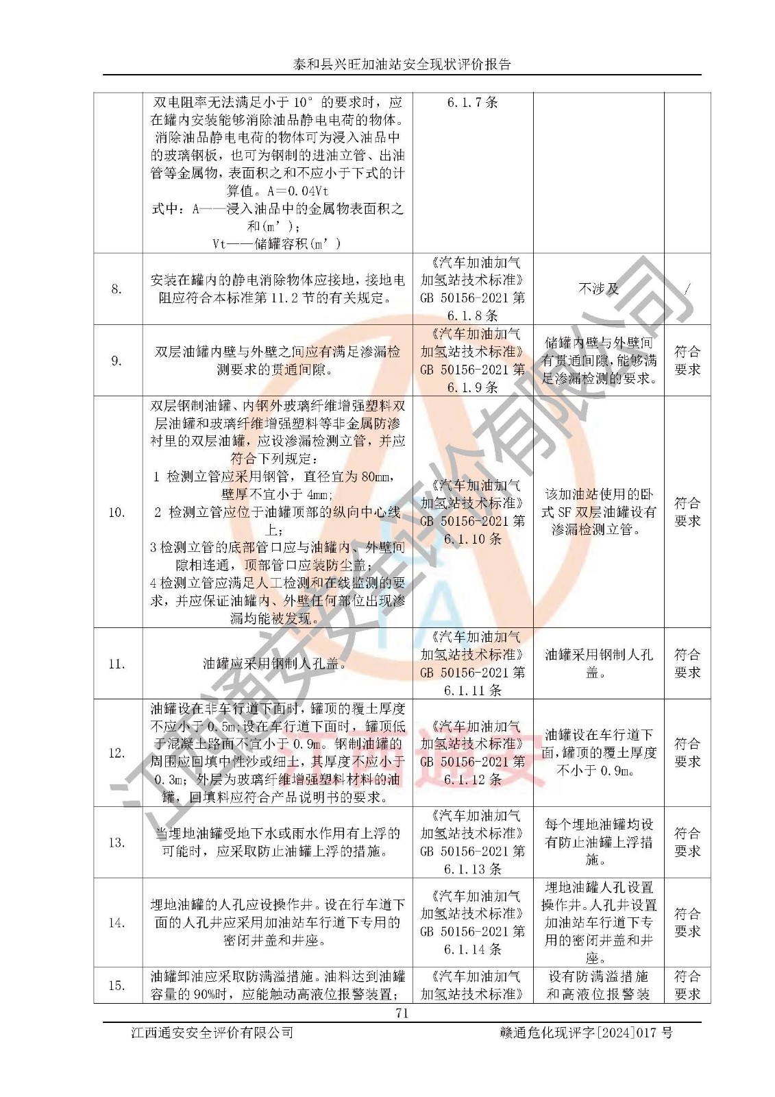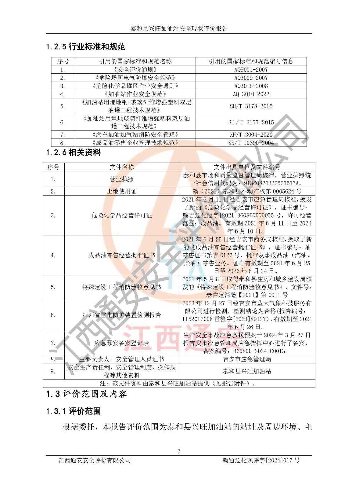 項目名稱 | 泰和縣興旺加油站安全現(xiàn)狀評價報告 | ||||