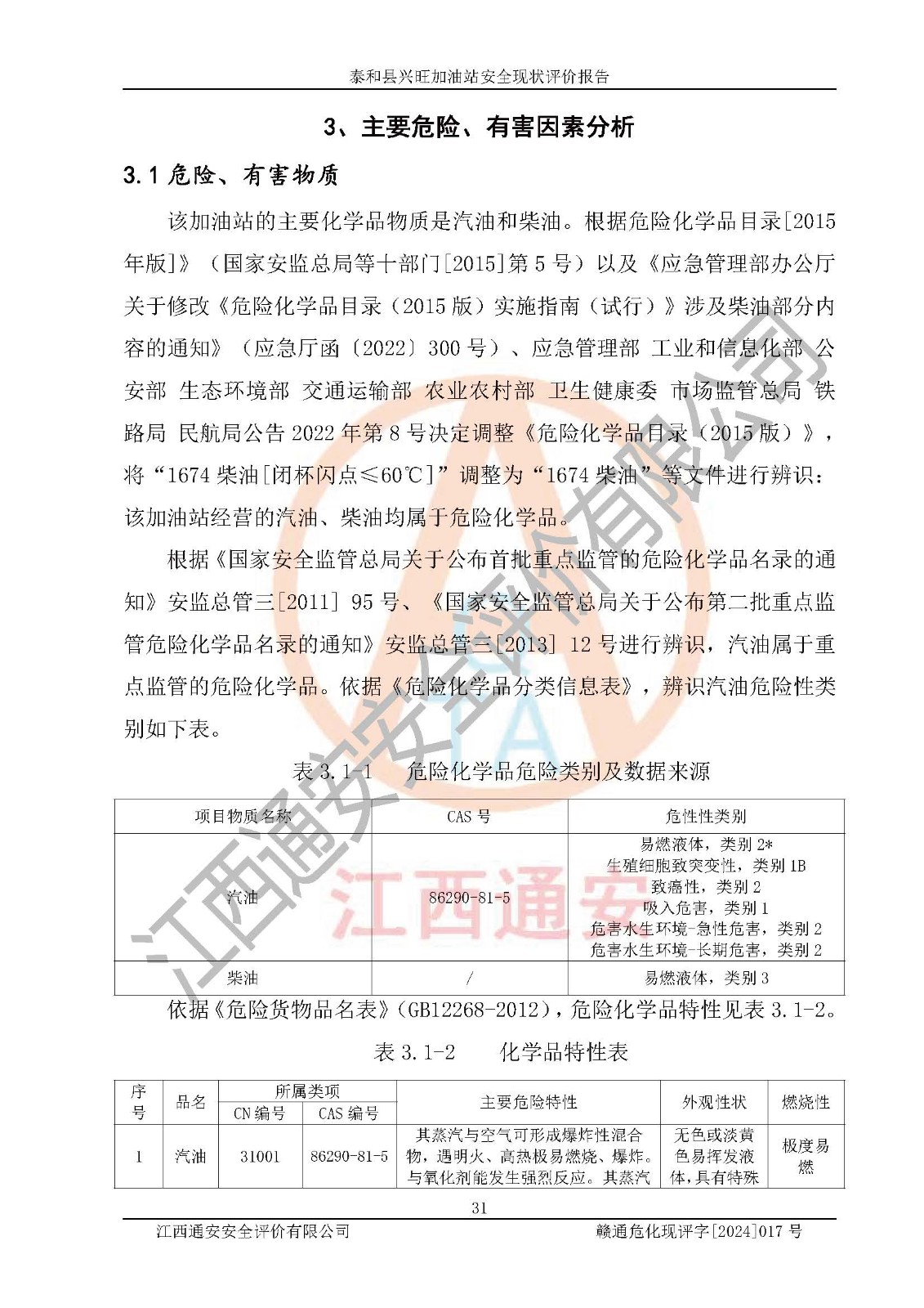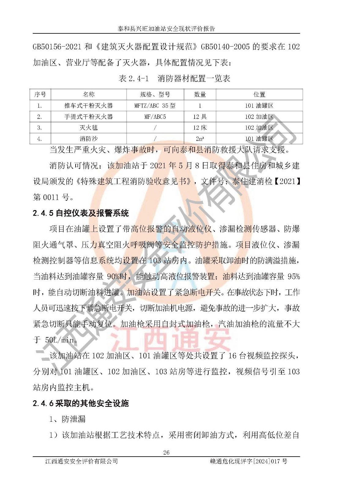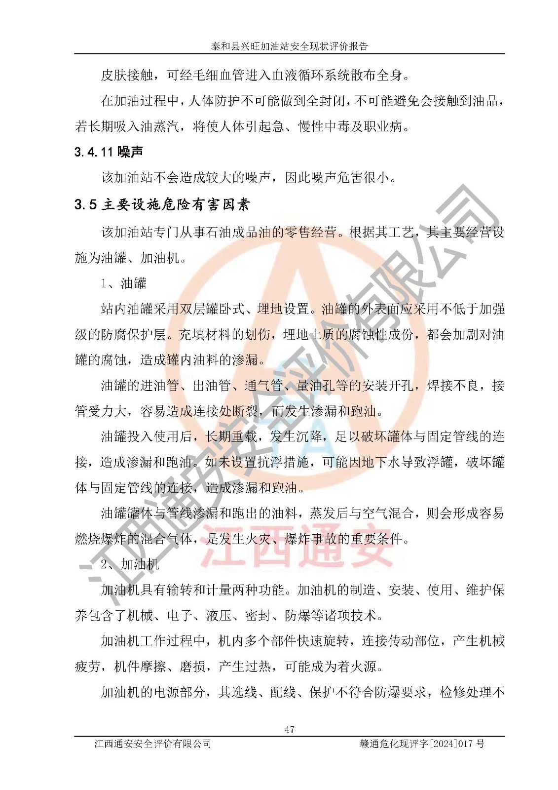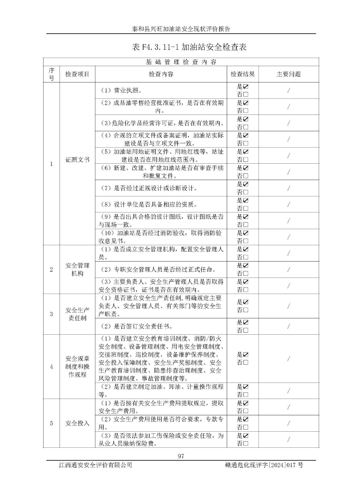 項目名稱 | 泰和縣興旺加油站安全現(xiàn)狀評價報告 | ||||