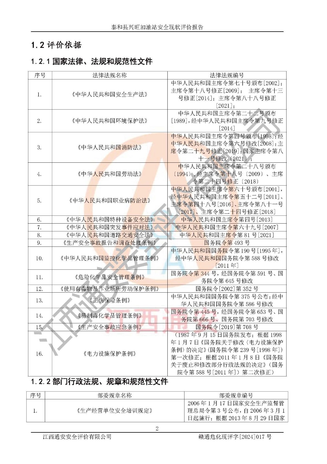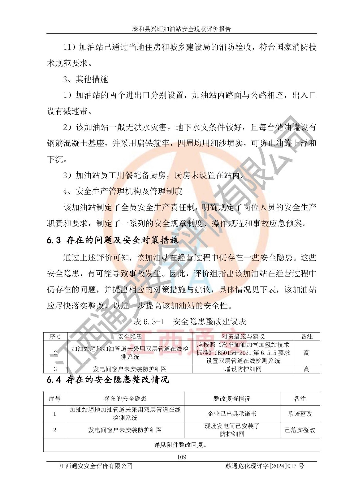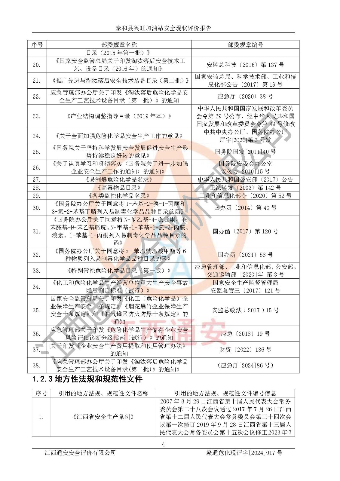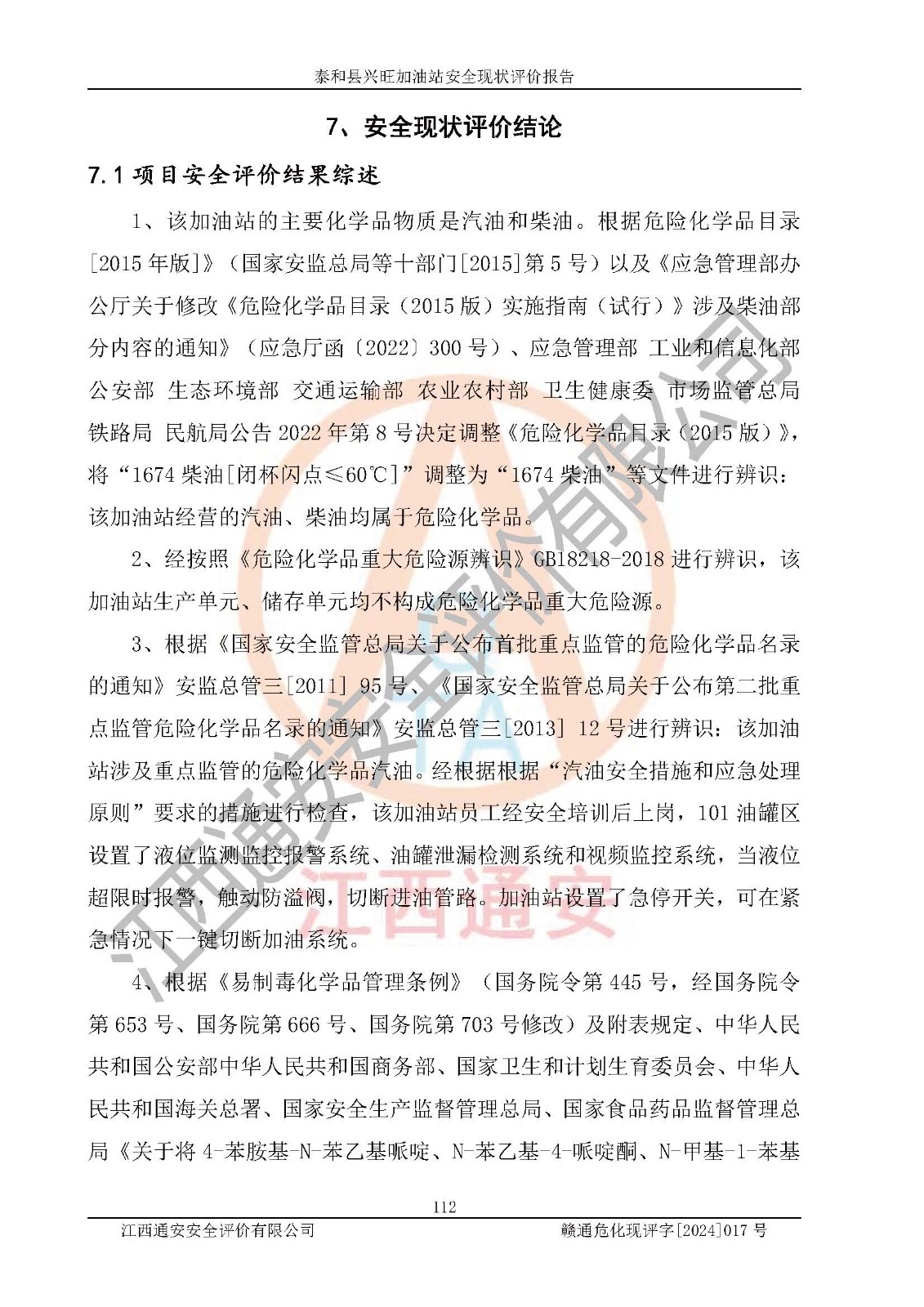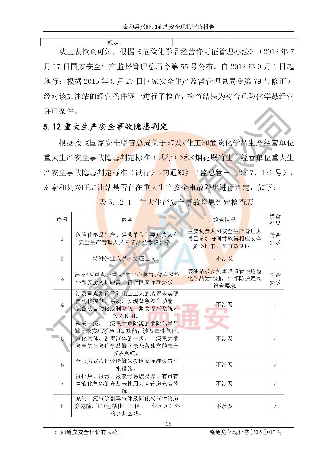項目名稱 | 泰和縣興旺加油站安全現(xiàn)狀評價報告 | ||||