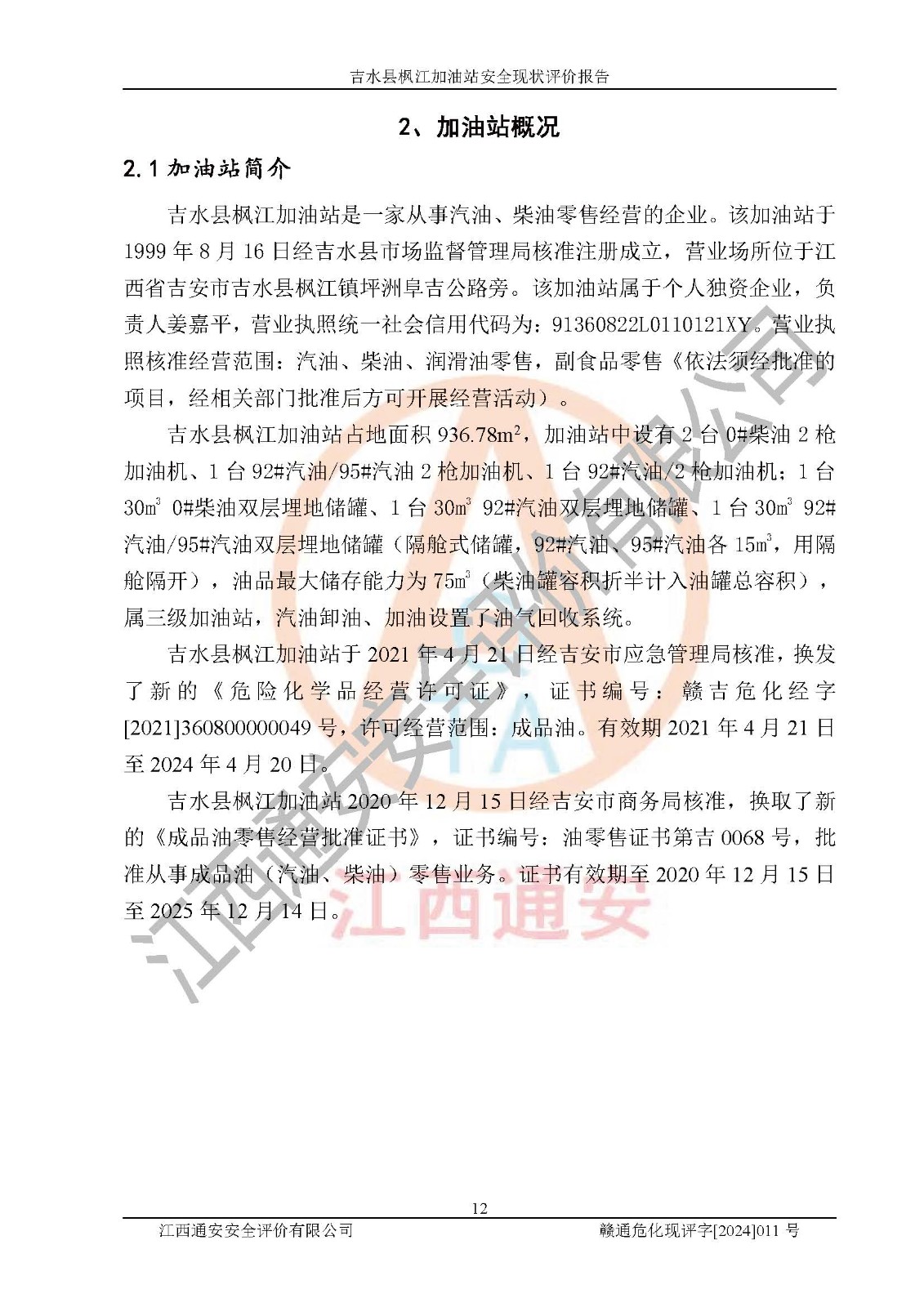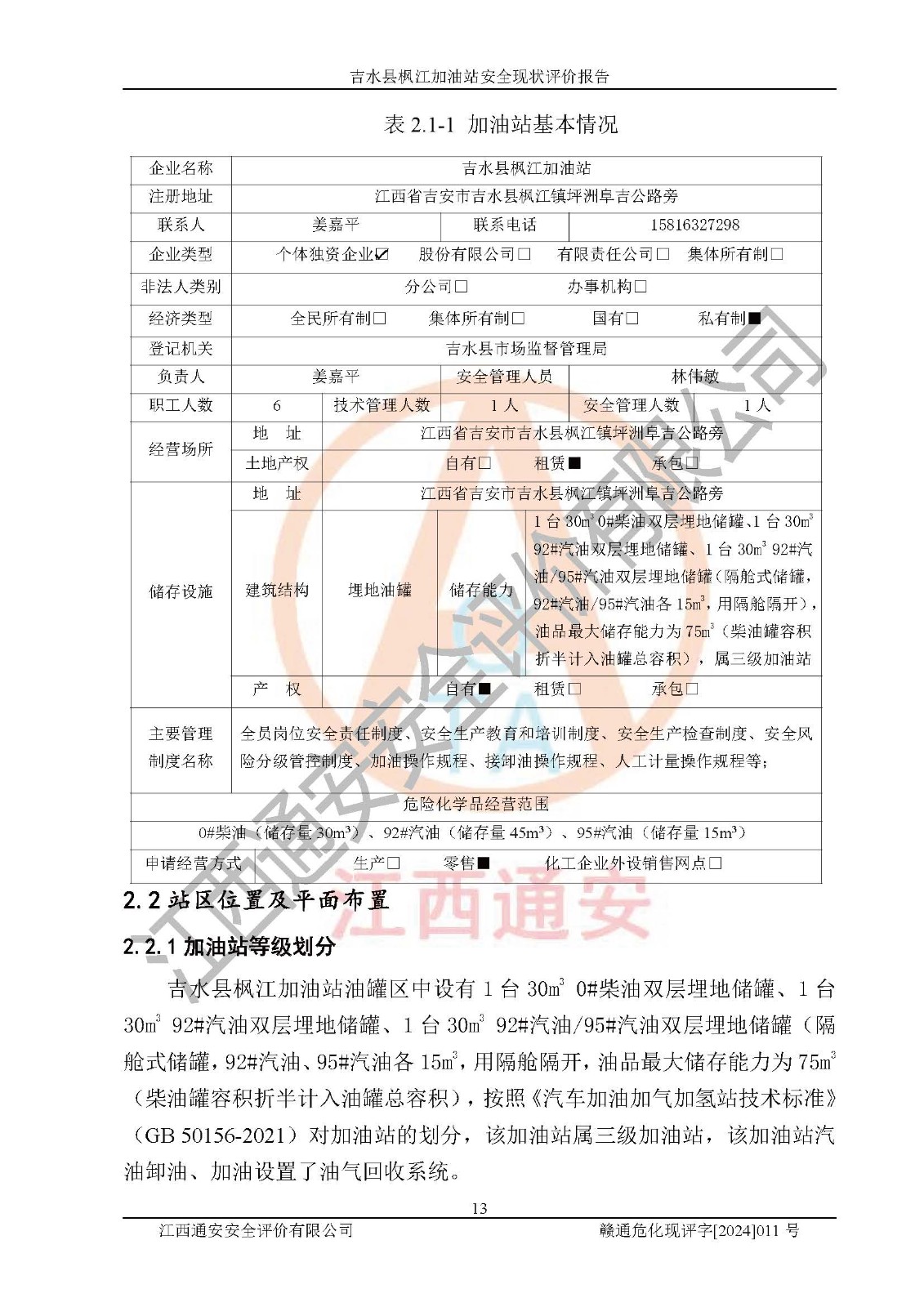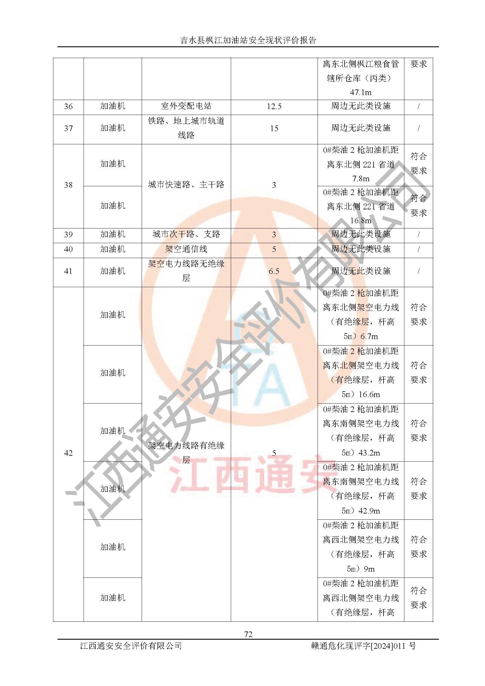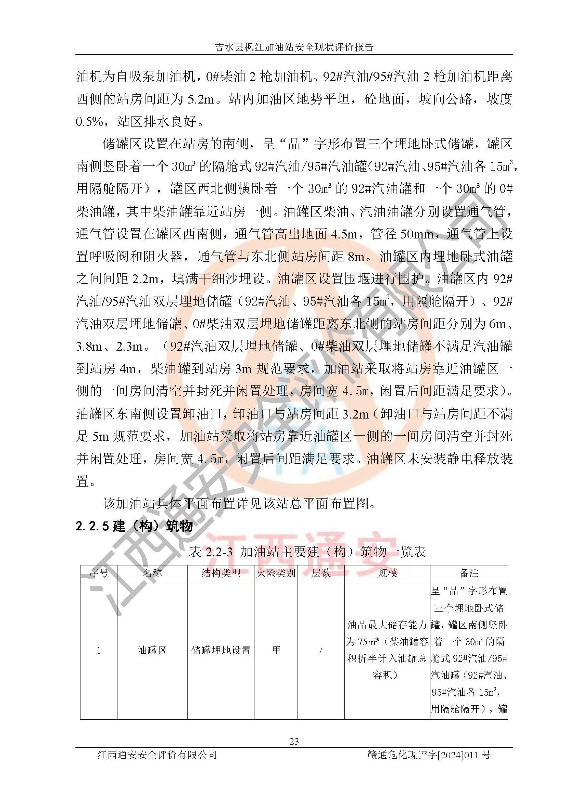 評價報告名稱 | 吉水縣楓江加油站安全現(xiàn)狀評價報告 | |||