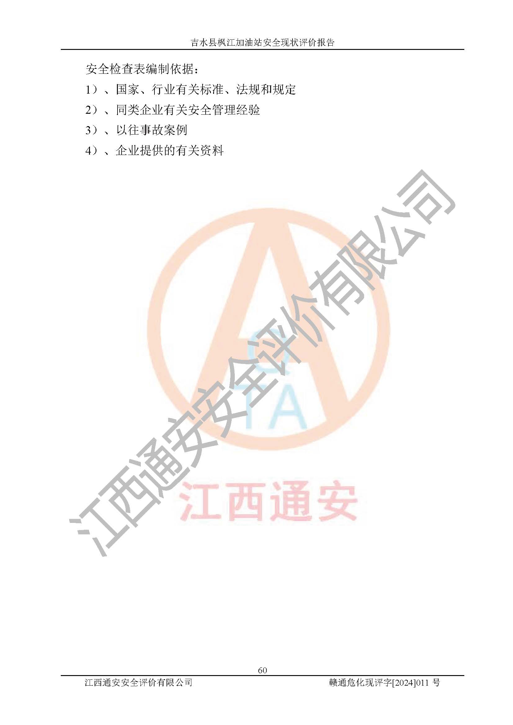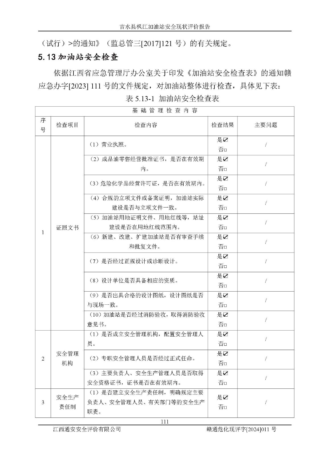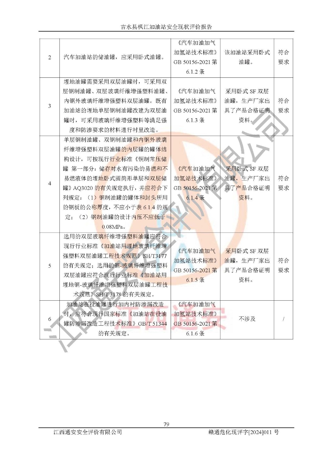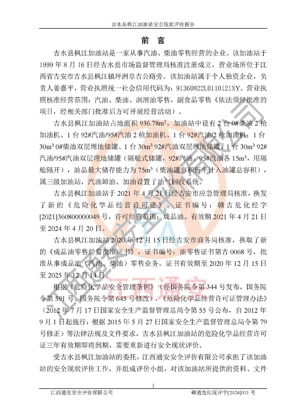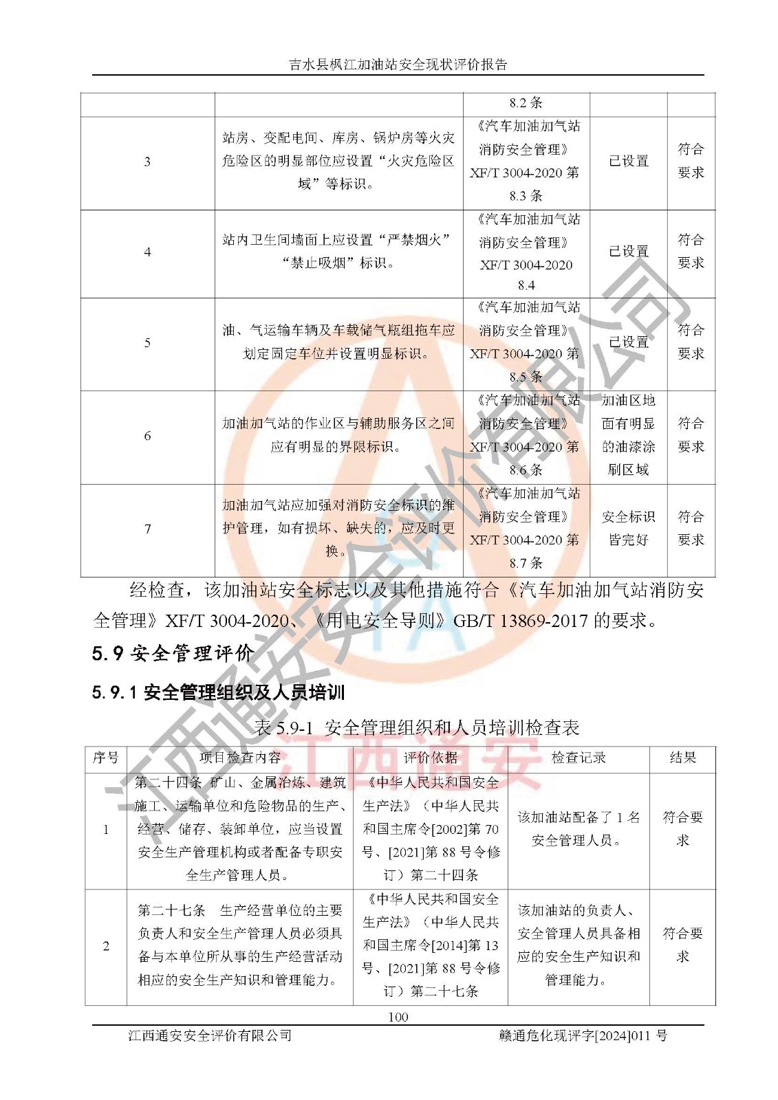 評價報告名稱 | 吉水縣楓江加油站安全現(xiàn)狀評價報告 | |||
