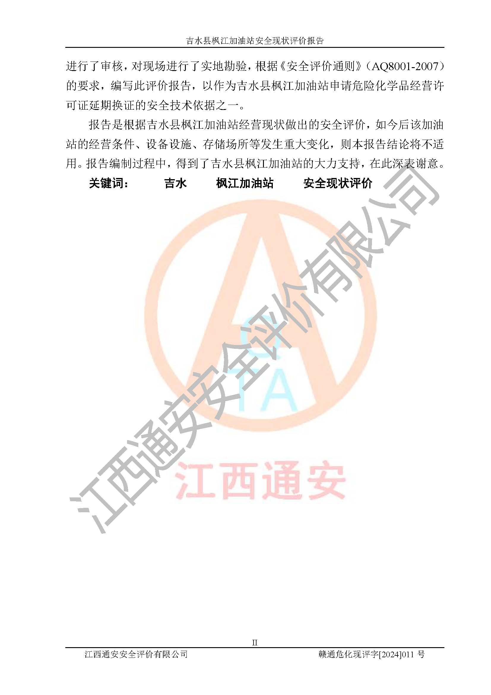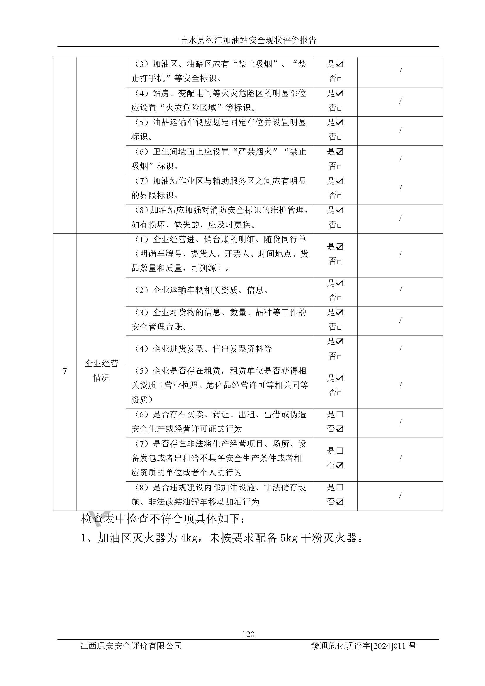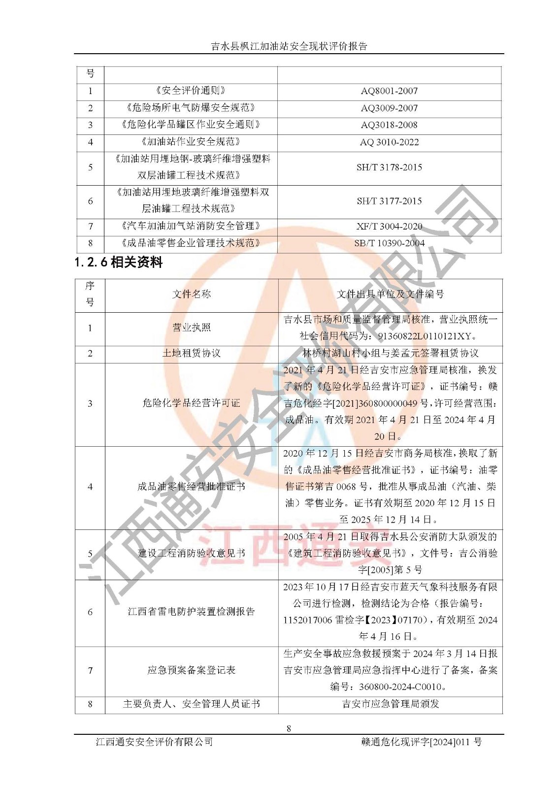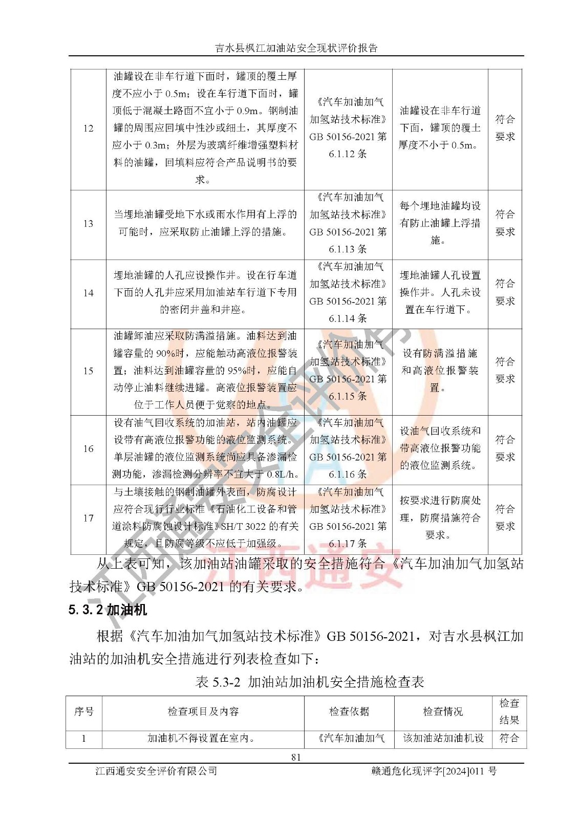 評價報告名稱 | 吉水縣楓江加油站安全現(xiàn)狀評價報告 | |||
