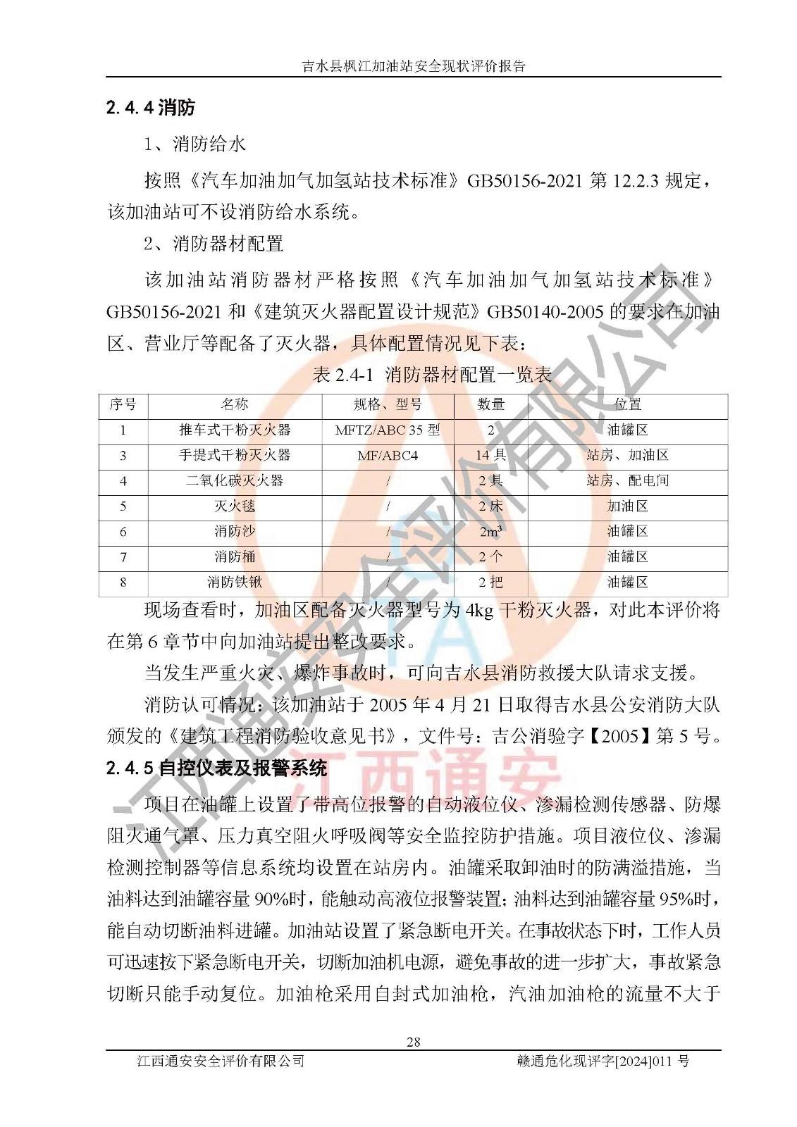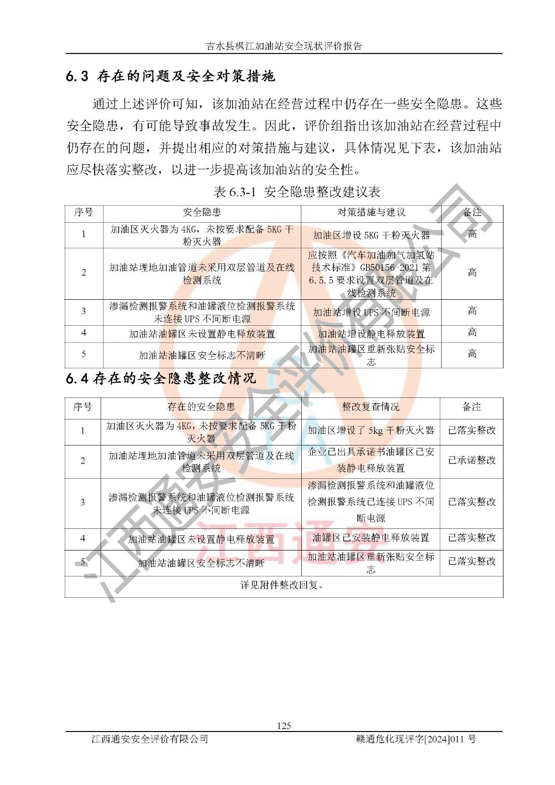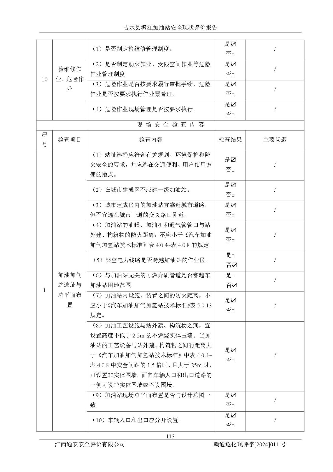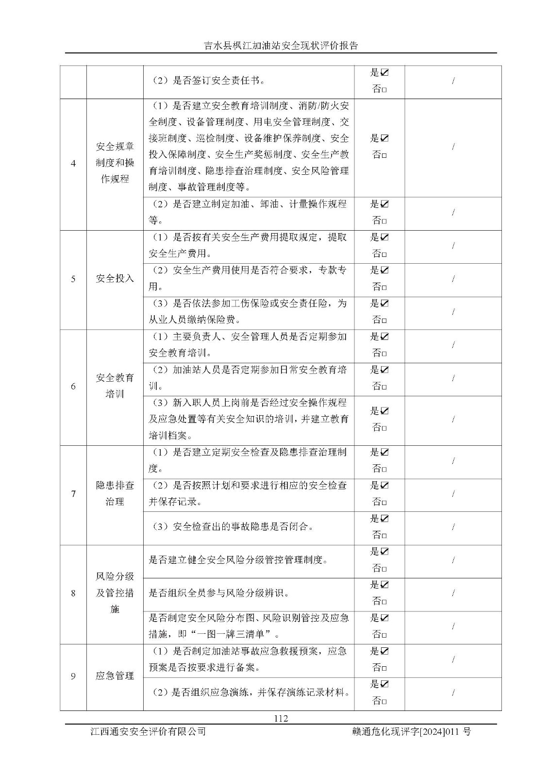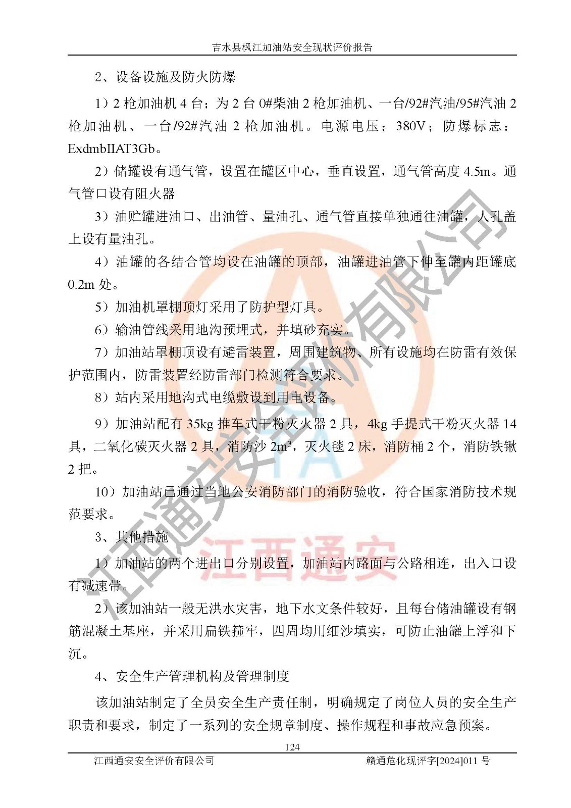 評價報告名稱 | 吉水縣楓江加油站安全現(xiàn)狀評價報告 | |||