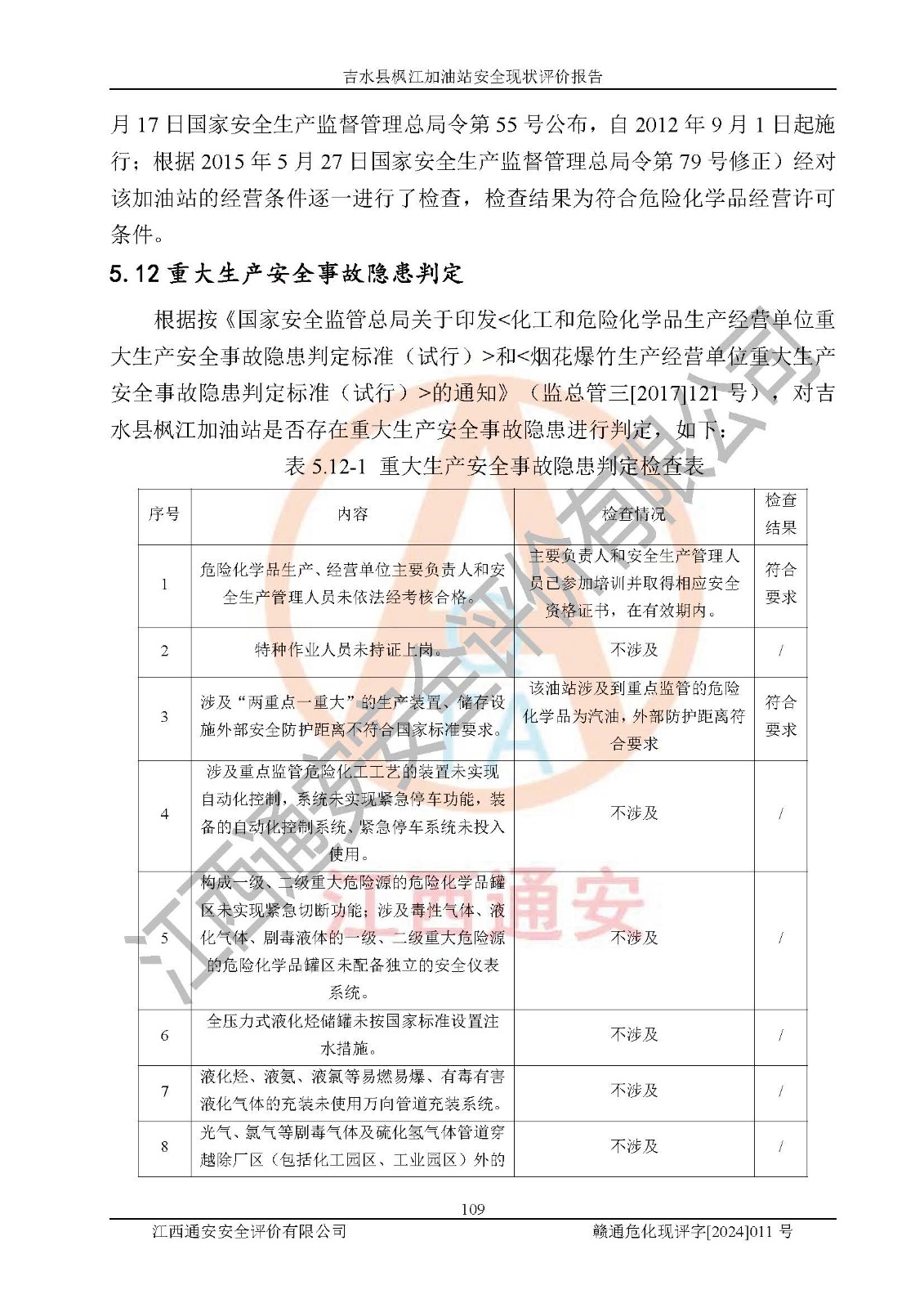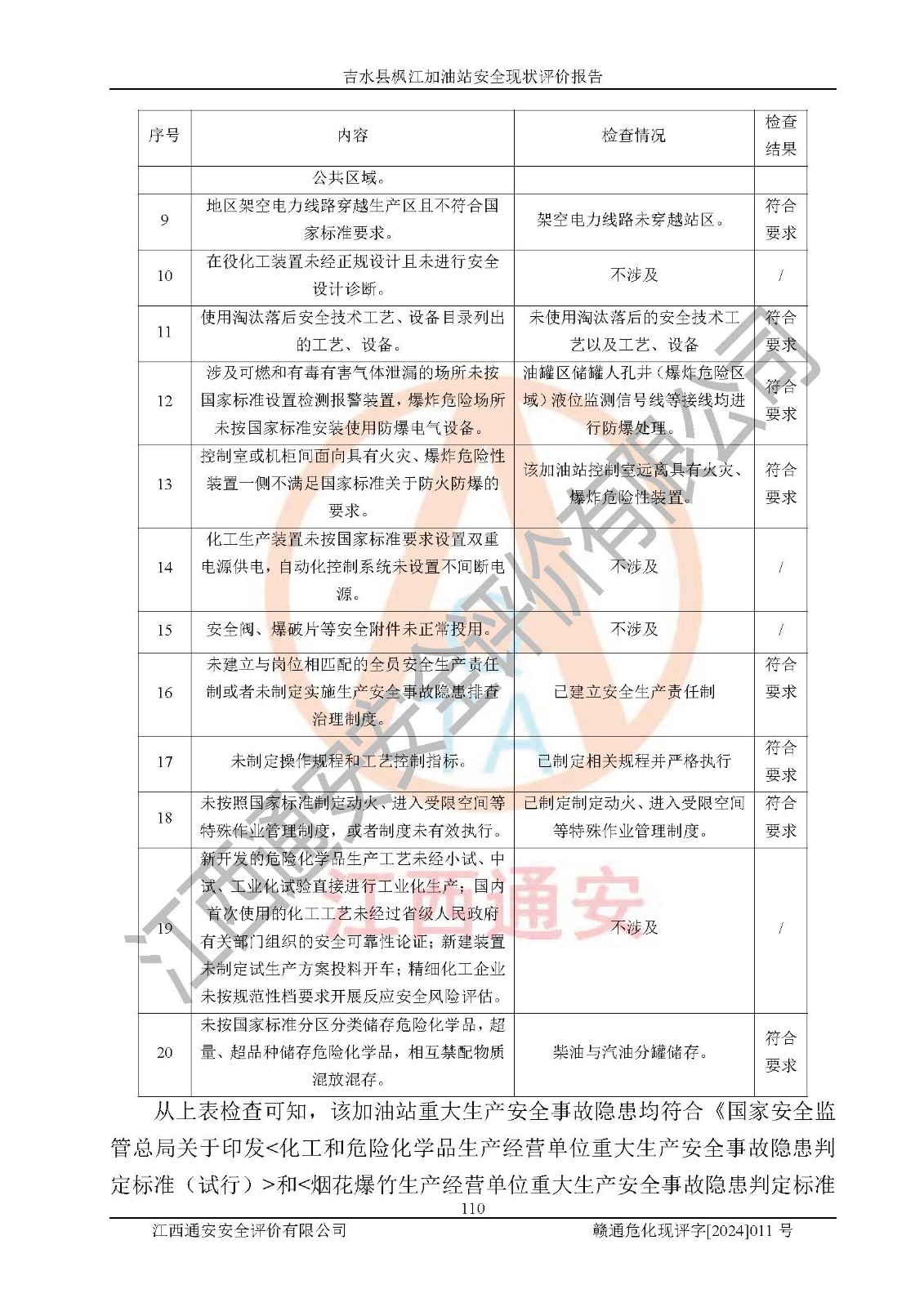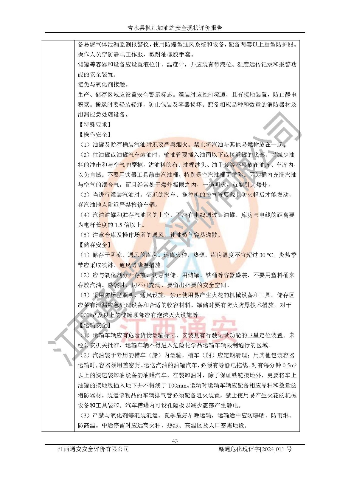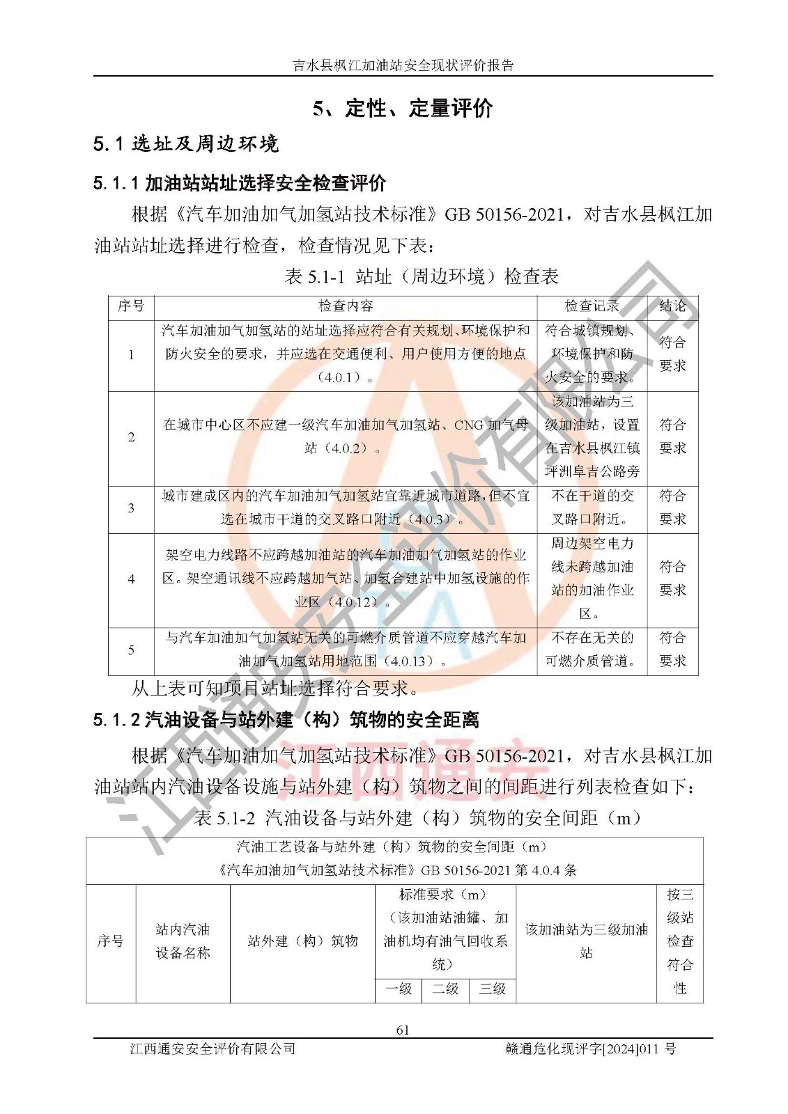 評價報告名稱 | 吉水縣楓江加油站安全現(xiàn)狀評價報告 | |||