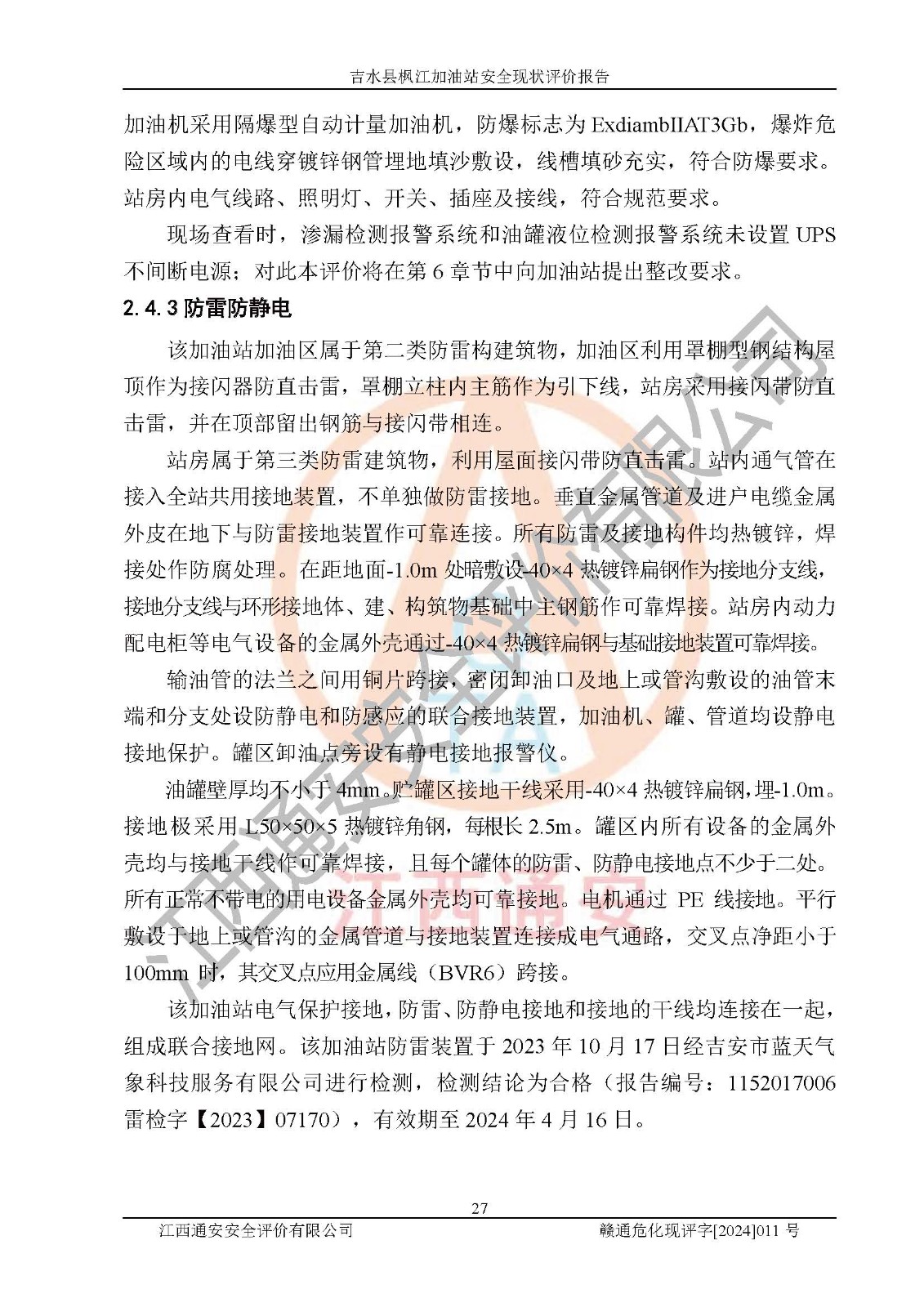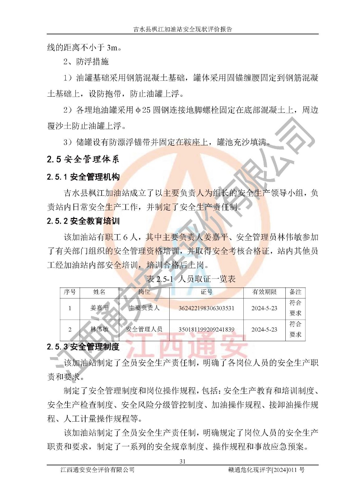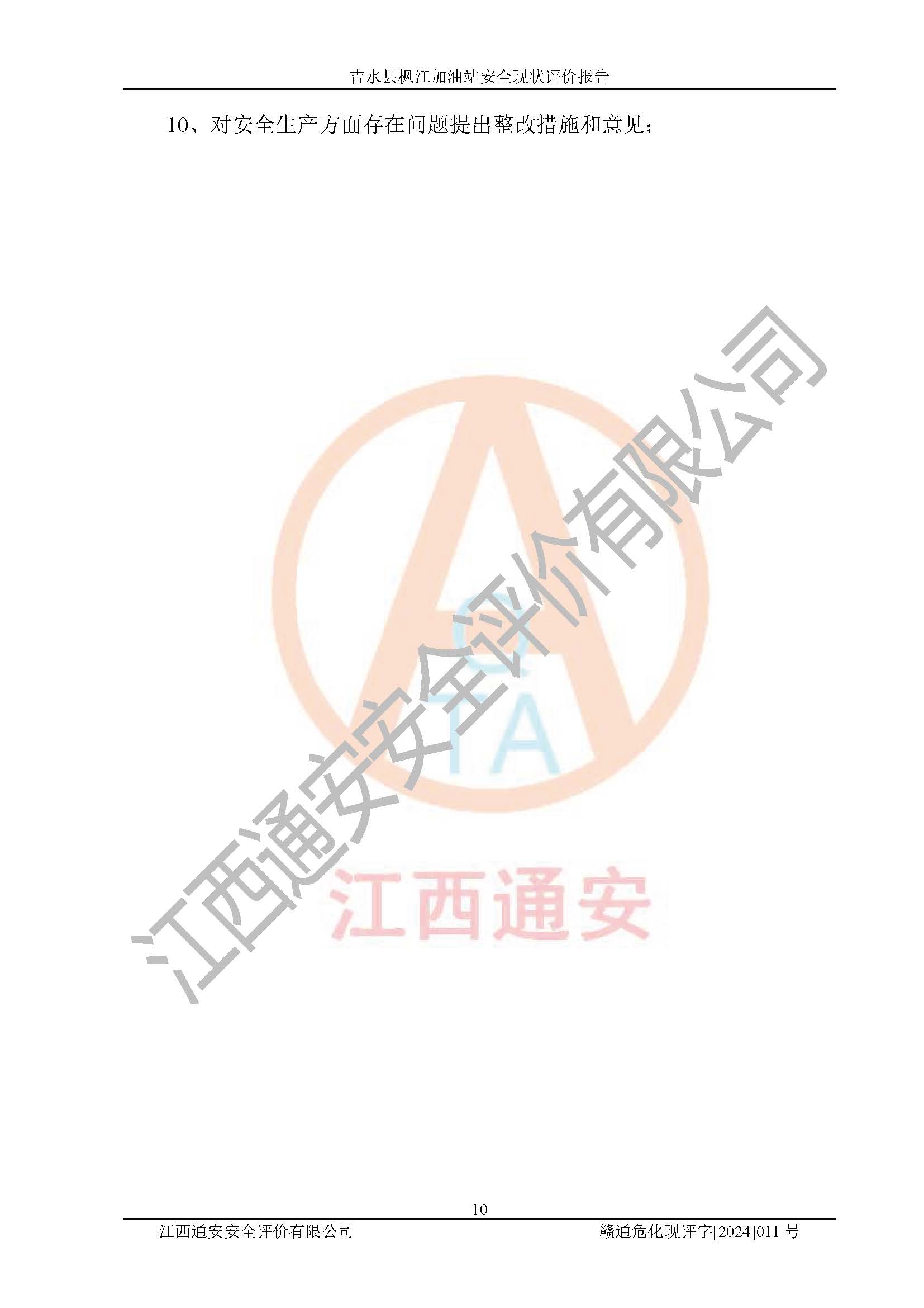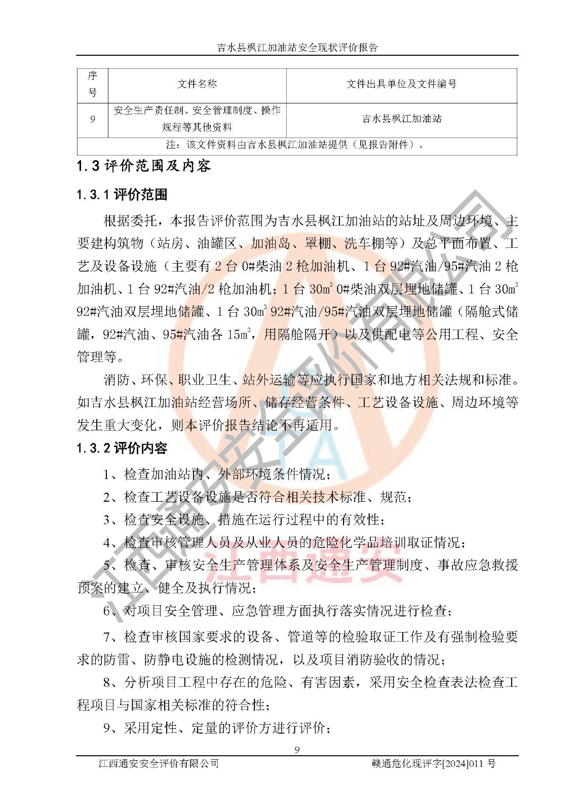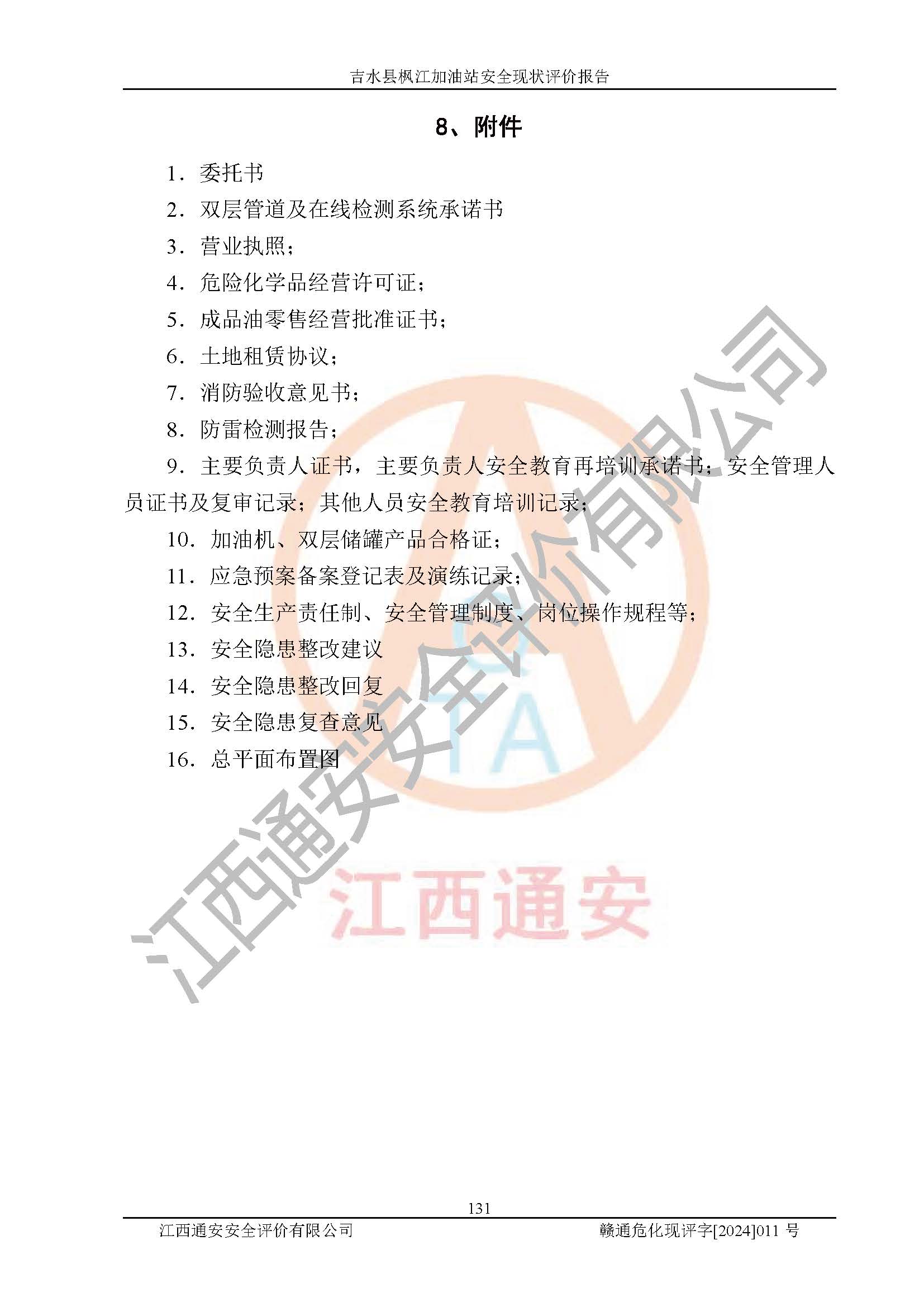 評價報告名稱 | 吉水縣楓江加油站安全現(xiàn)狀評價報告 | |||