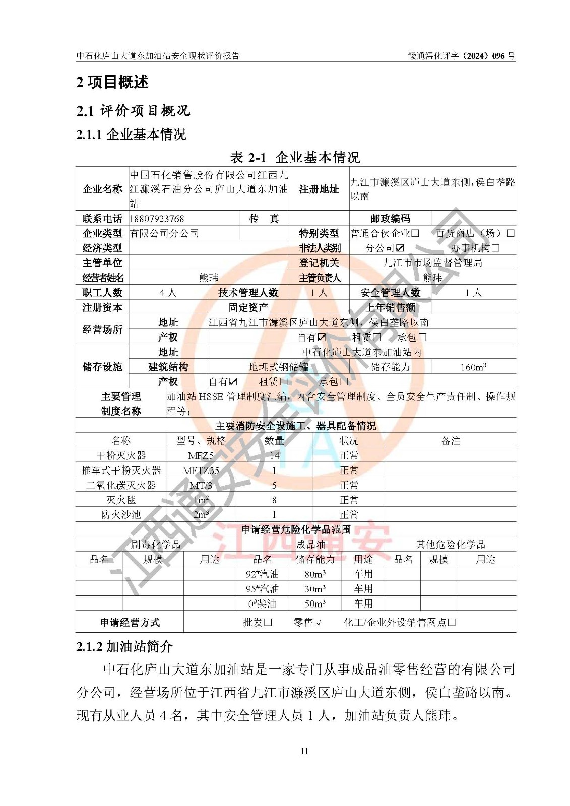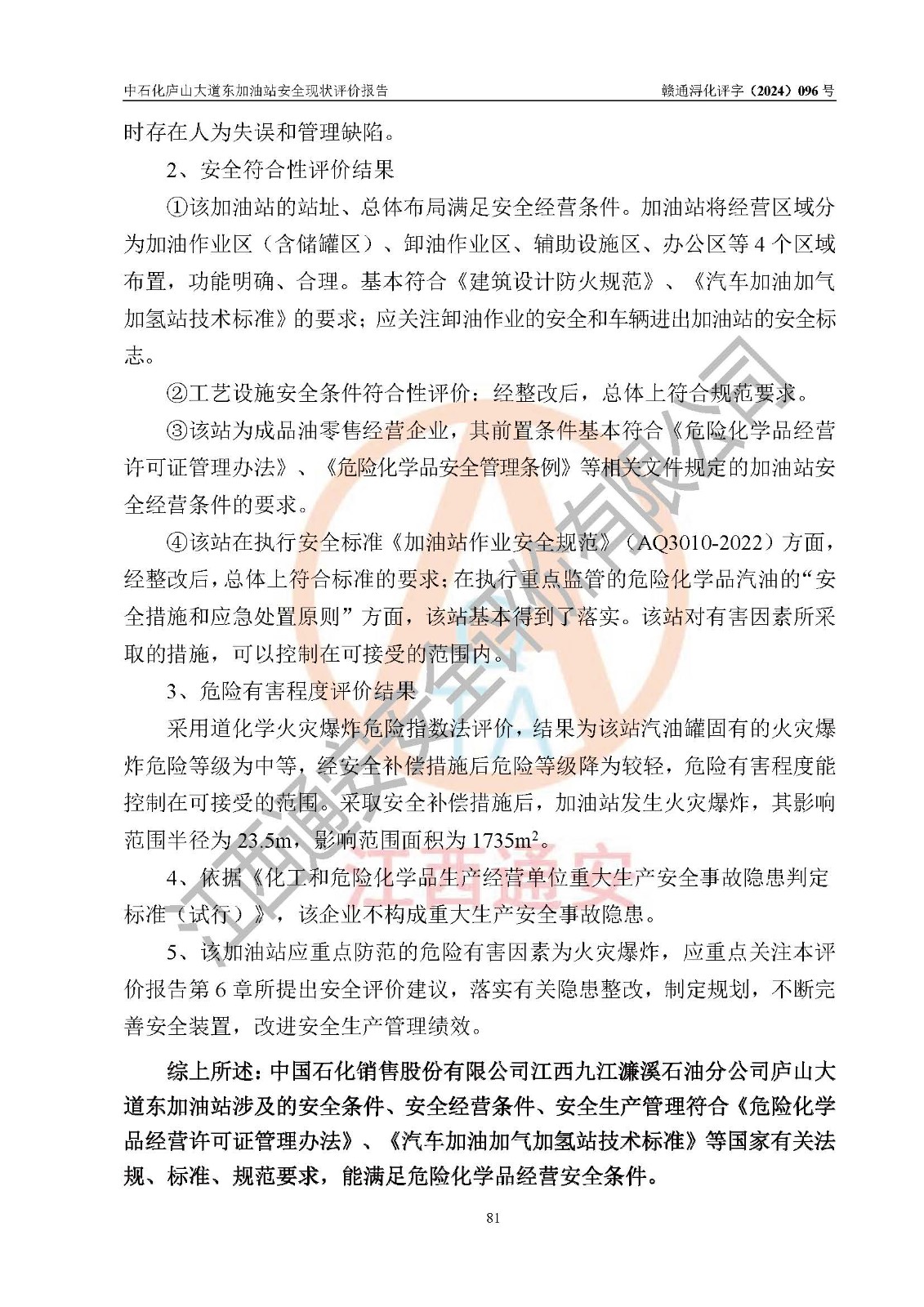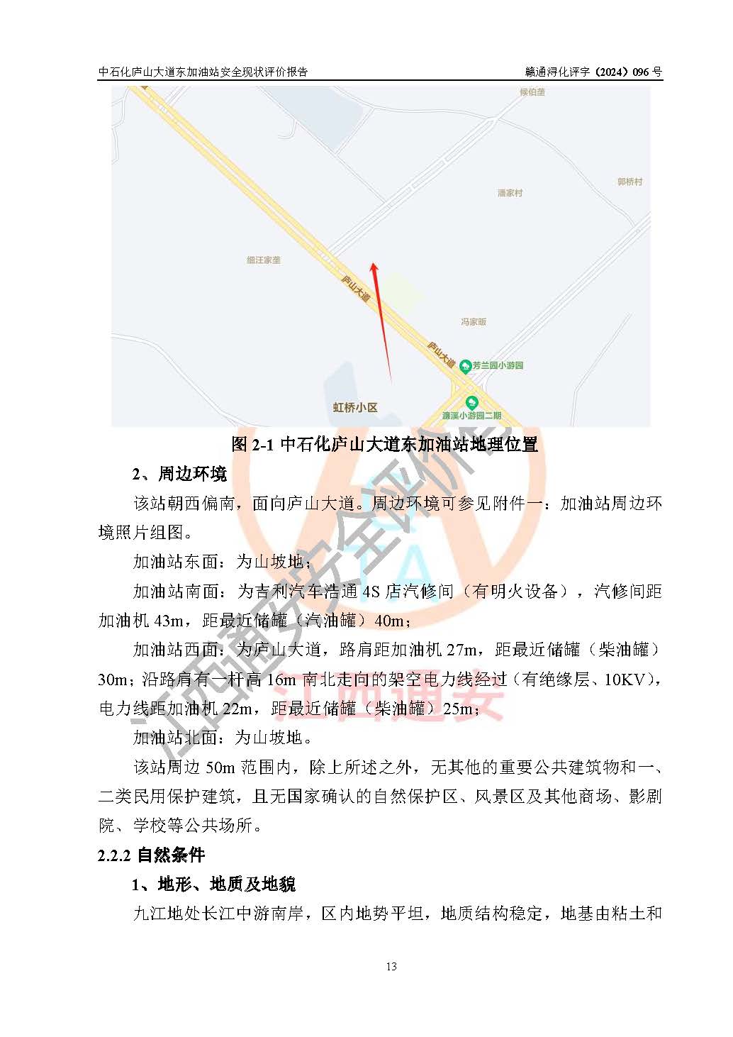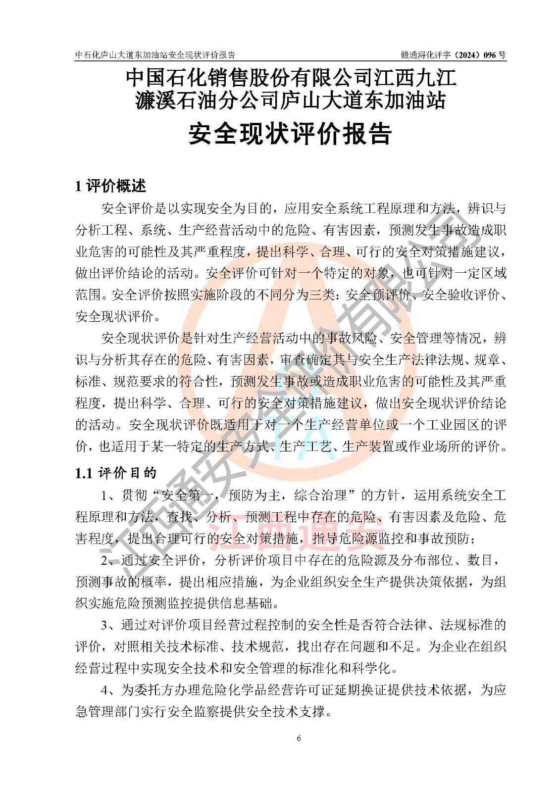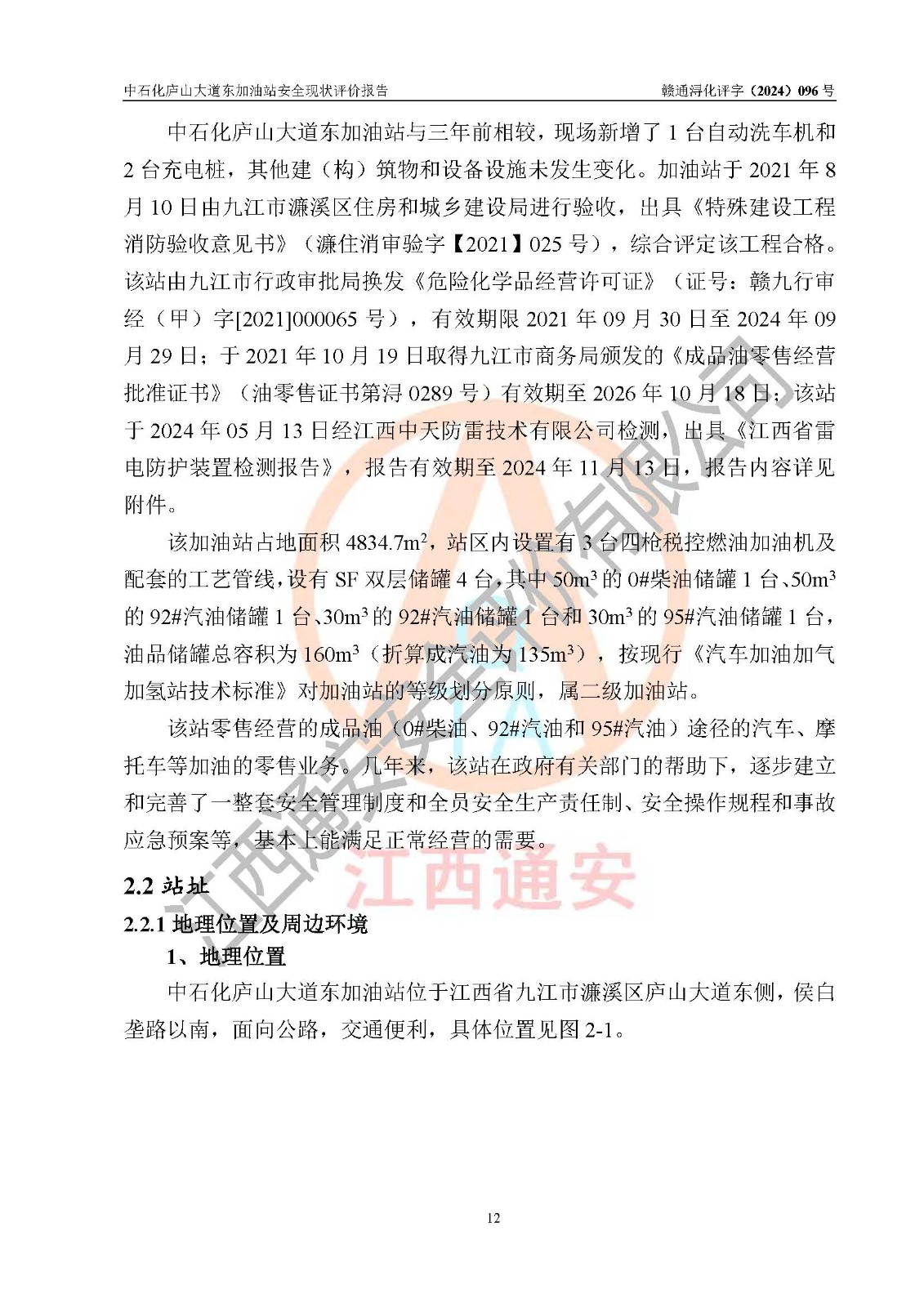 評價報告名稱 | 中國石化銷售股份有限公司江西九江濂溪石油分公司廬山大道東加油站安全現(xiàn)狀評價報告 | |||