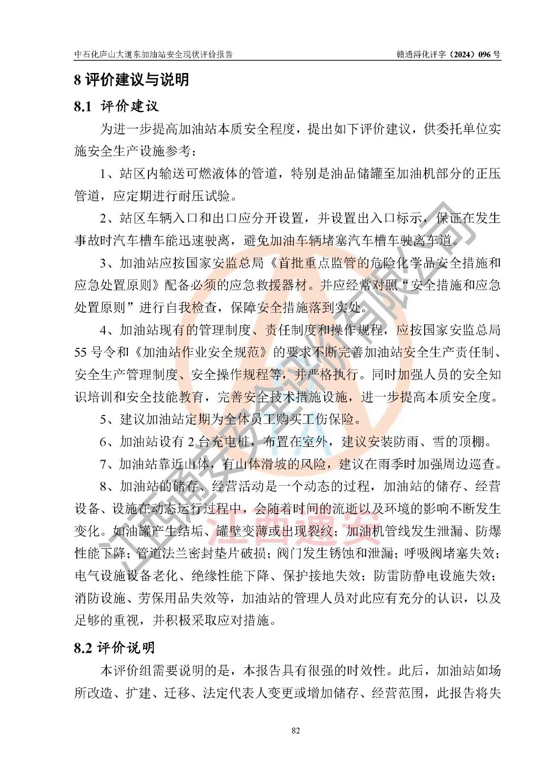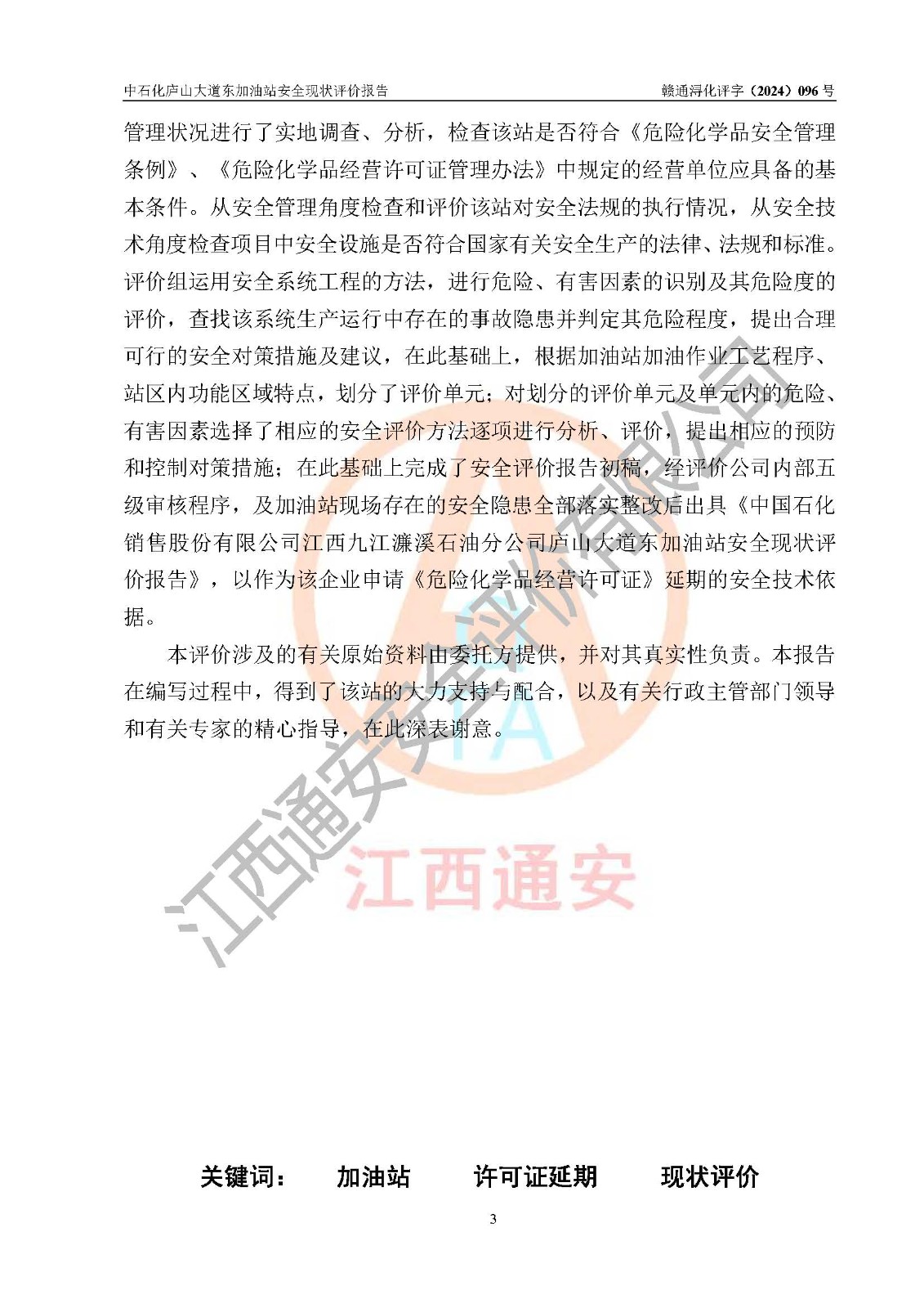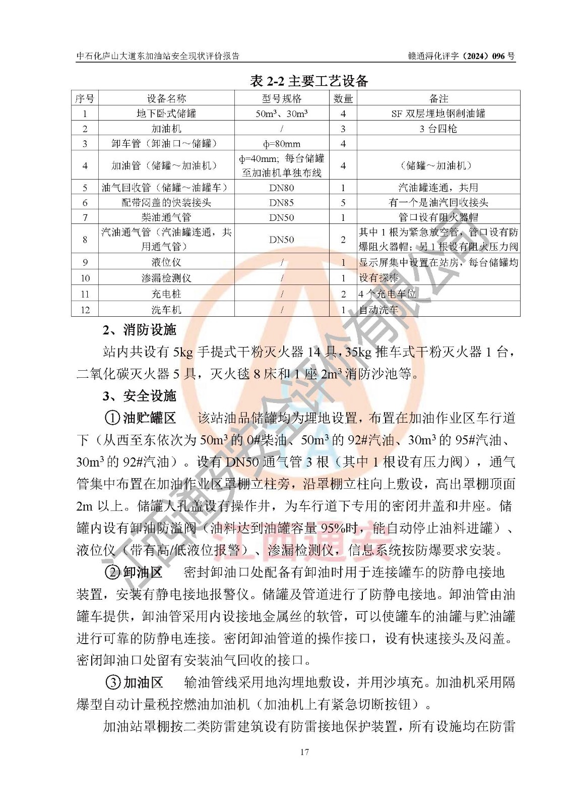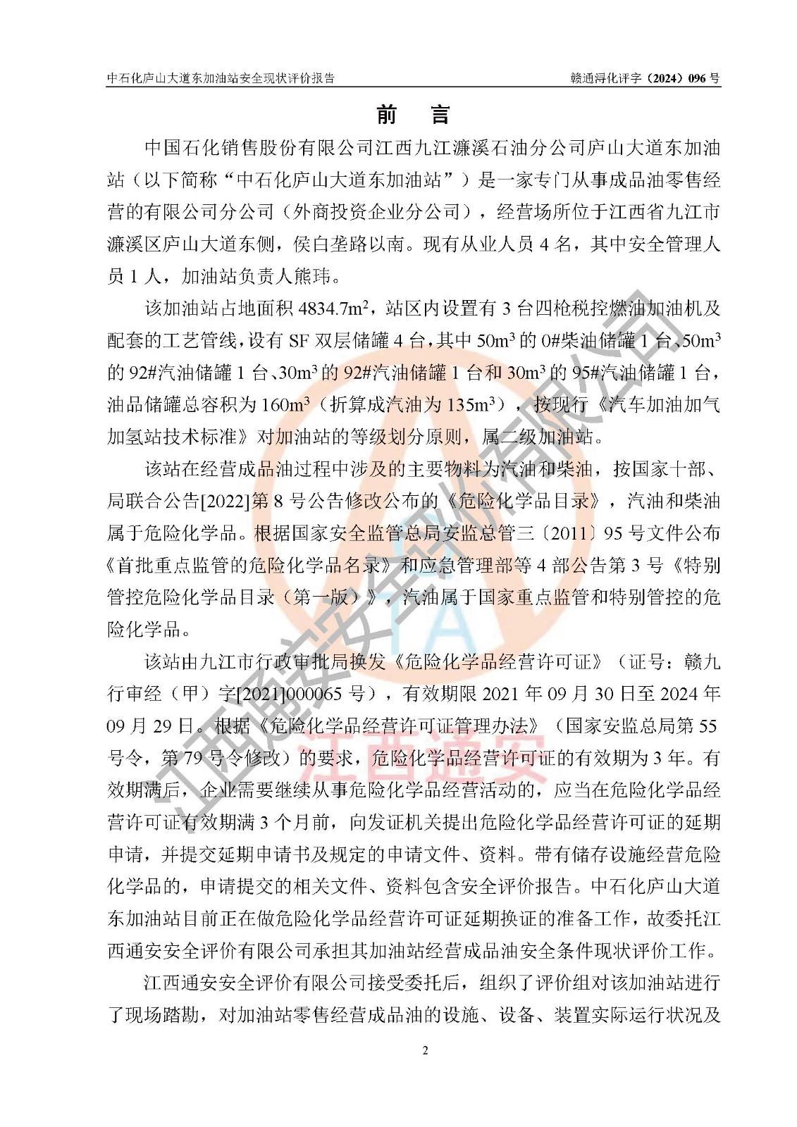 評價報告名稱 | 中國石化銷售股份有限公司江西九江濂溪石油分公司廬山大道東加油站安全現(xiàn)狀評價報告 | |||