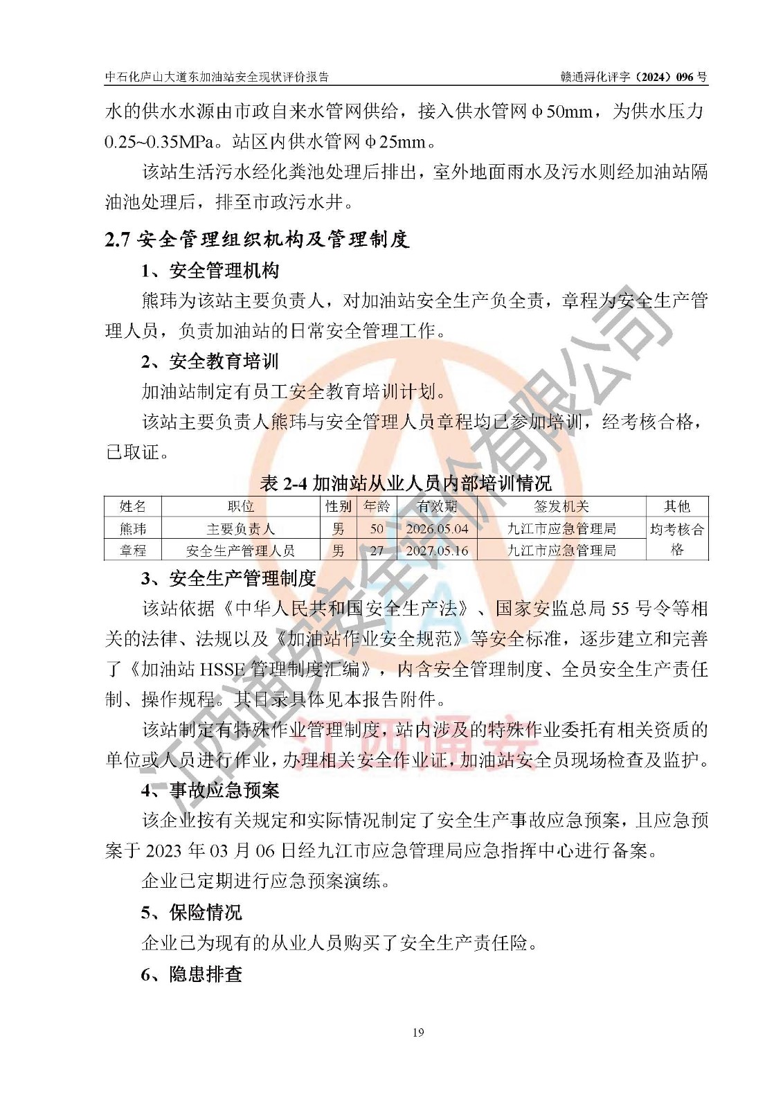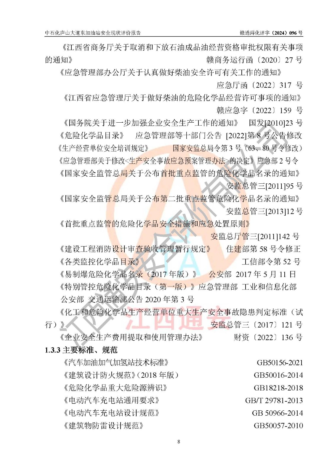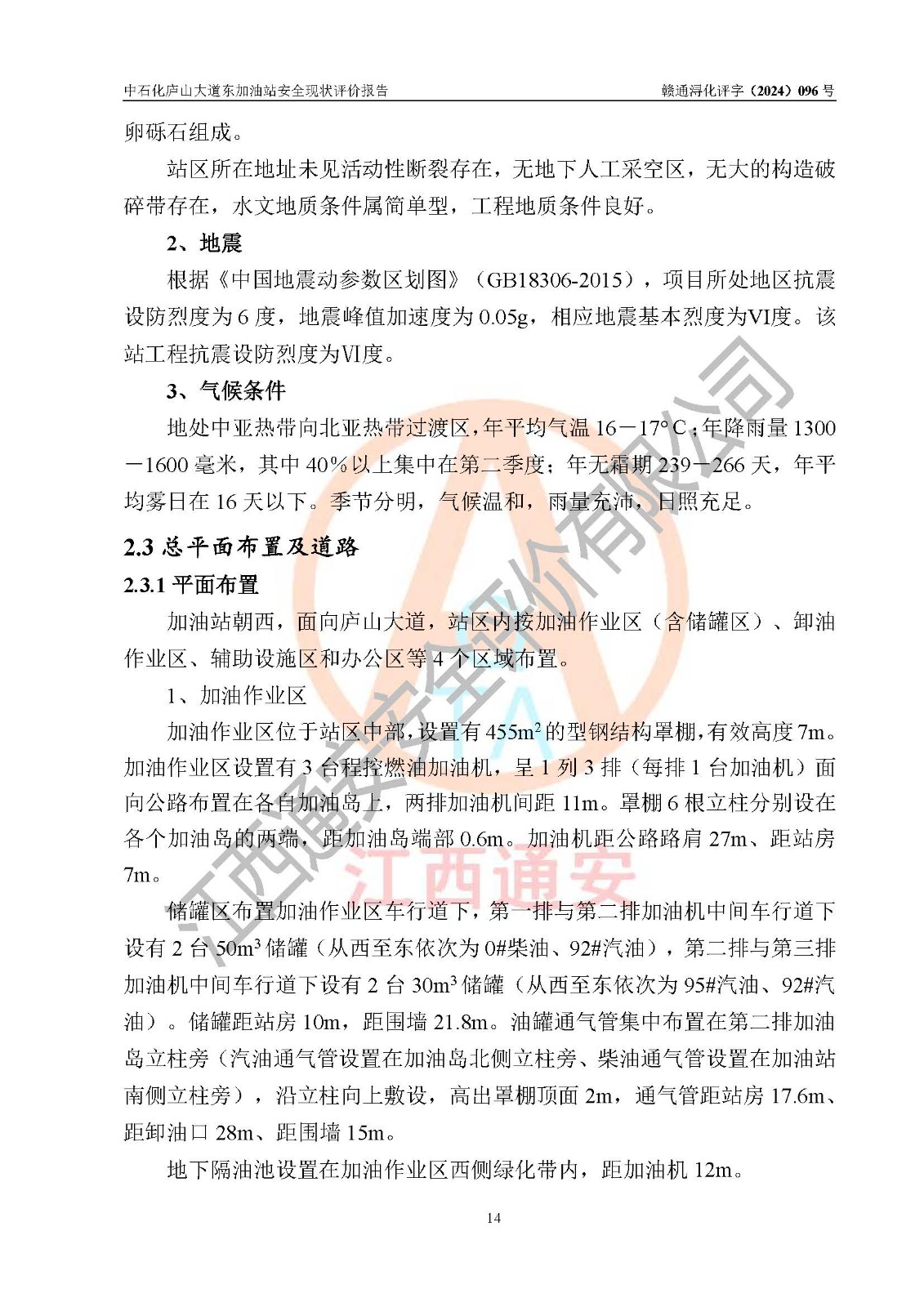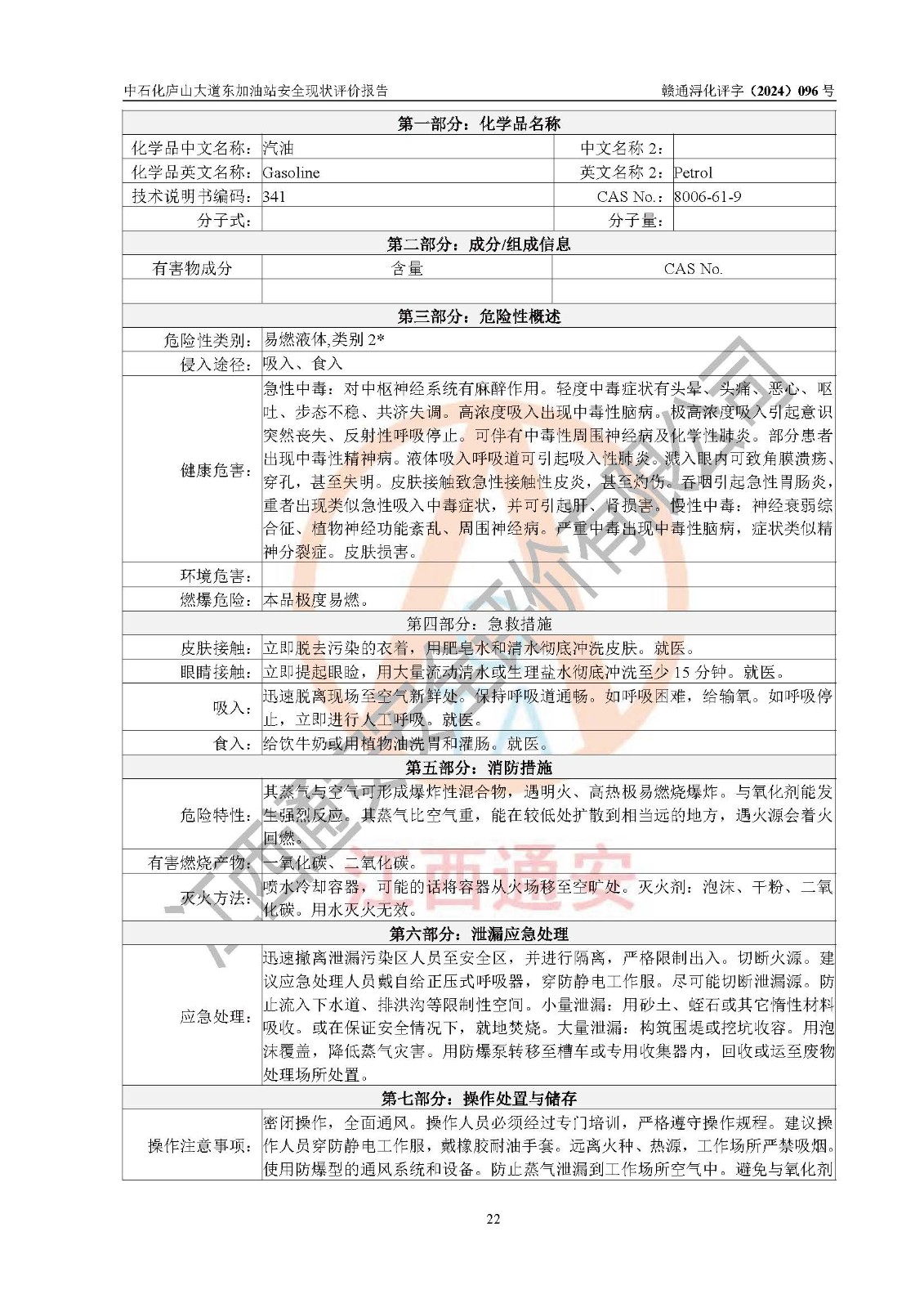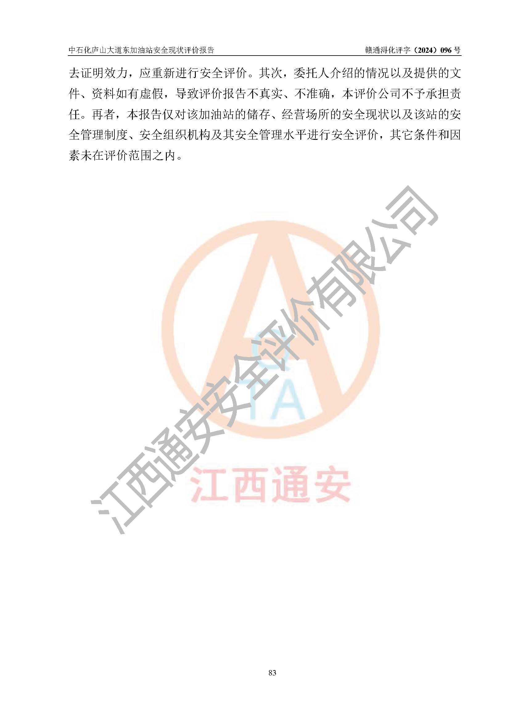 評價報告名稱 | 中國石化銷售股份有限公司江西九江濂溪石油分公司廬山大道東加油站安全現(xiàn)狀評價報告 | |||