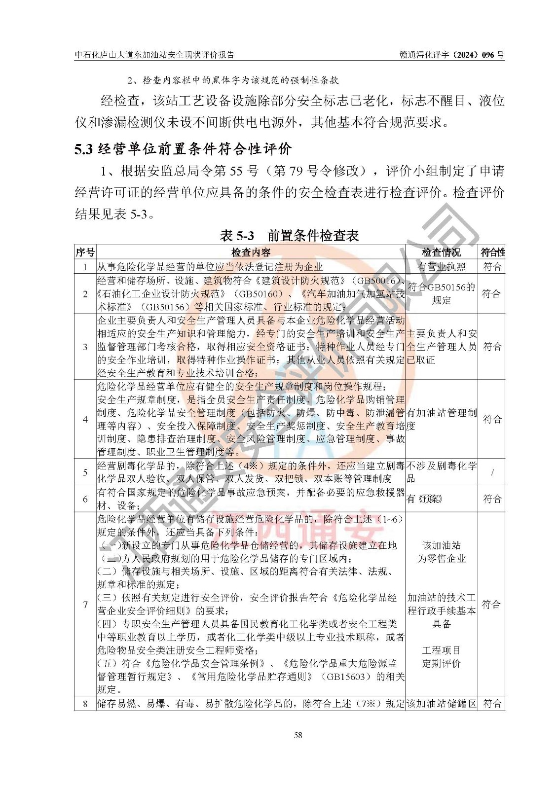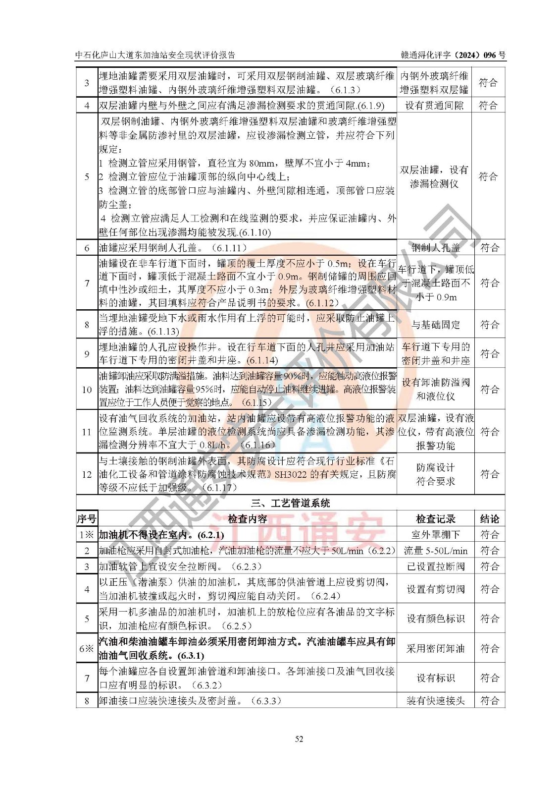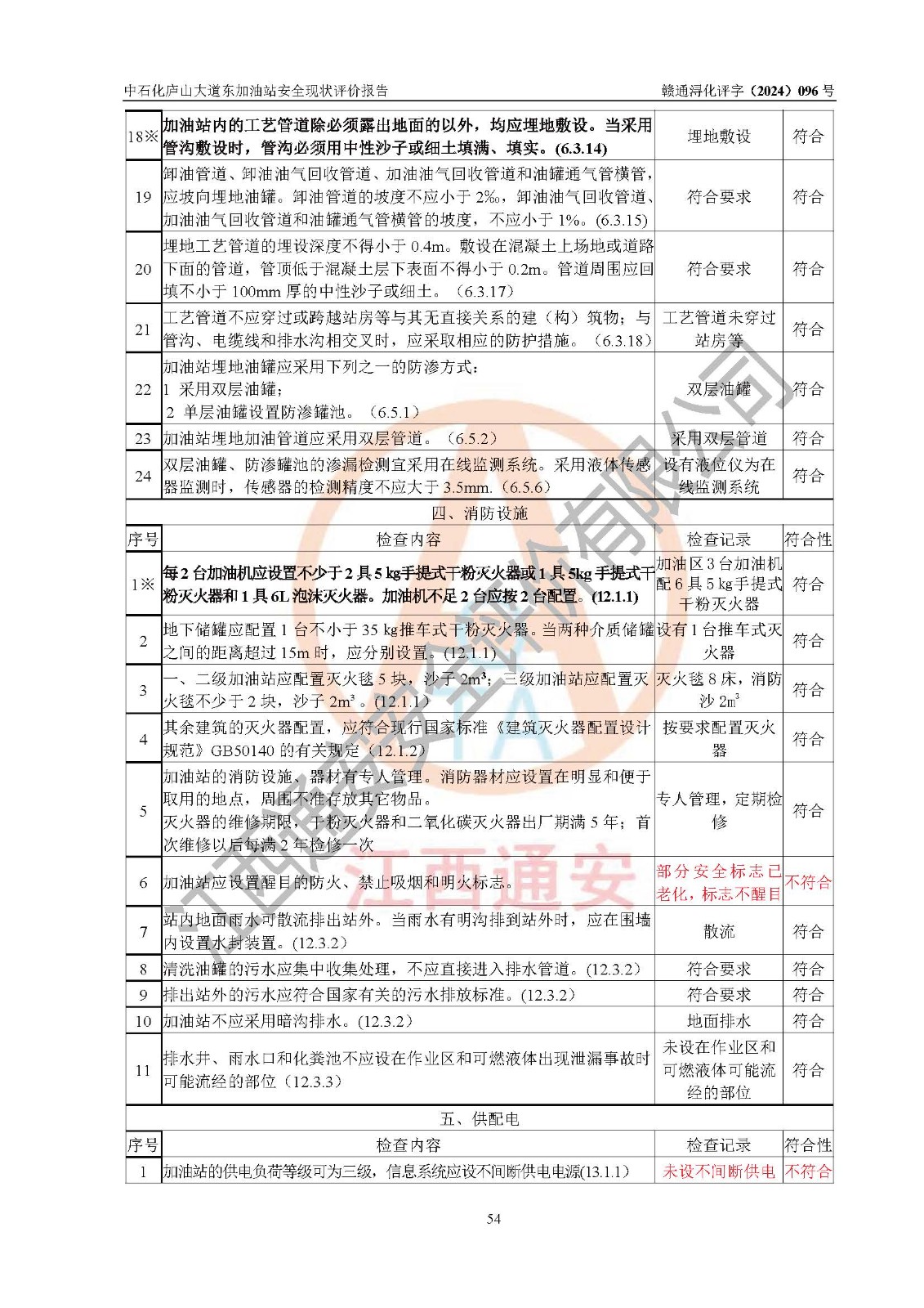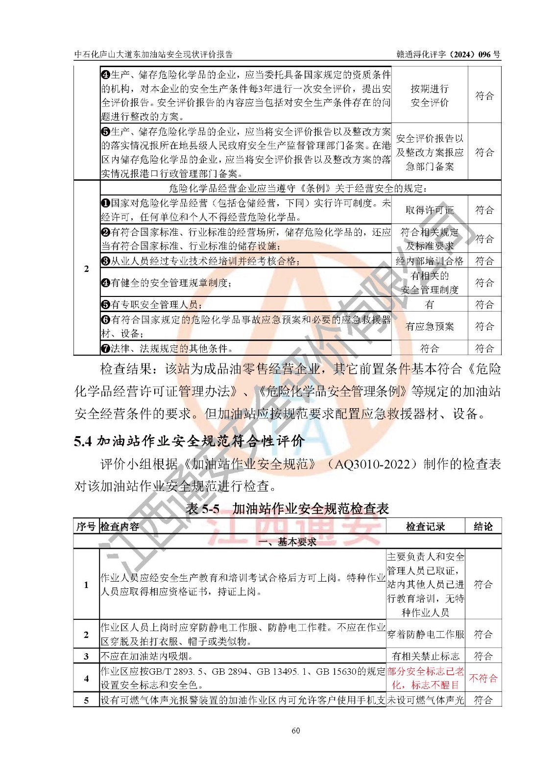 評價結(jié)論 | 中國石化銷售股份有限公司江西九江濂溪石油分公司廬山大道東加油站涉及的安全條件、安全經(jīng)營條件、安全生產(chǎn)管理符合《危險化學(xué)品經(jīng)營許可證管理辦法》、《汽車加油加氣加氫站技術(shù)標準》等**有關(guān)法規(guī)、標準、規(guī)范要求,能滿足危險化學(xué)品經(jīng)營安全條件。 | |||