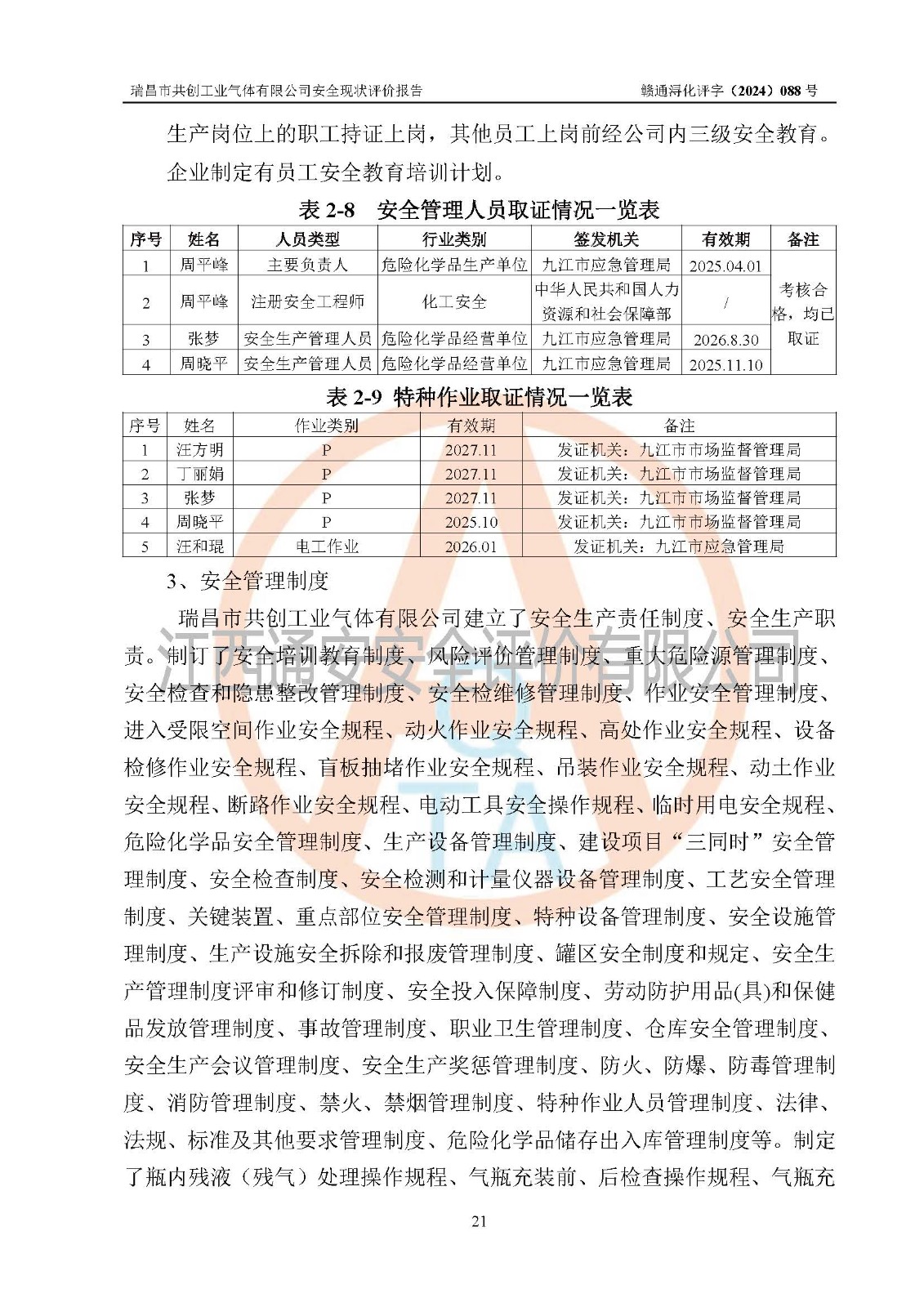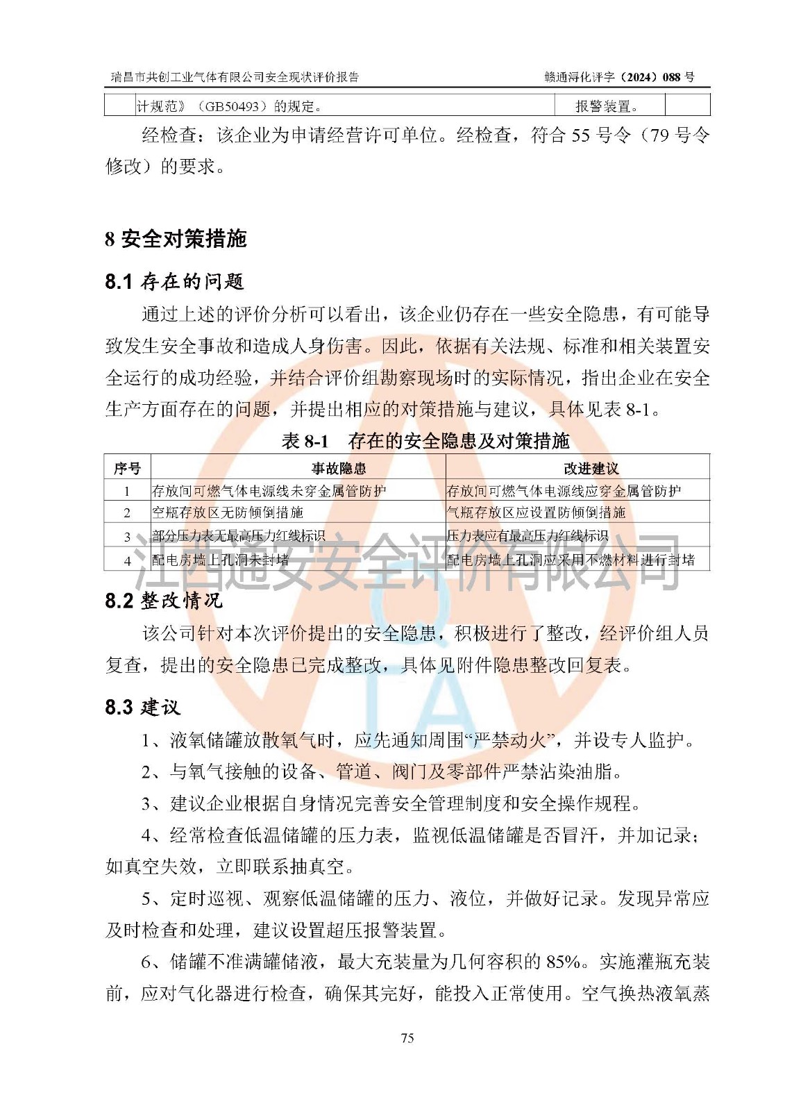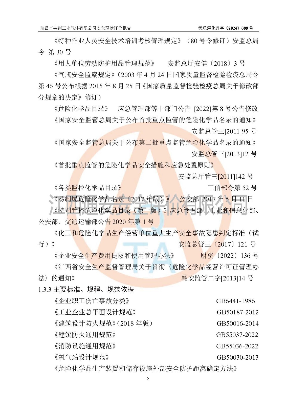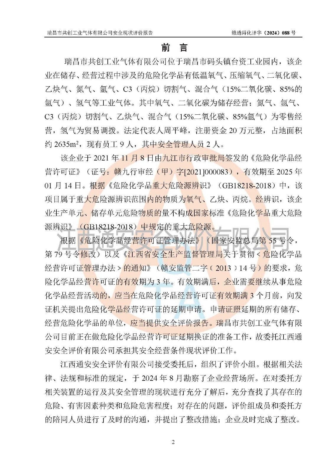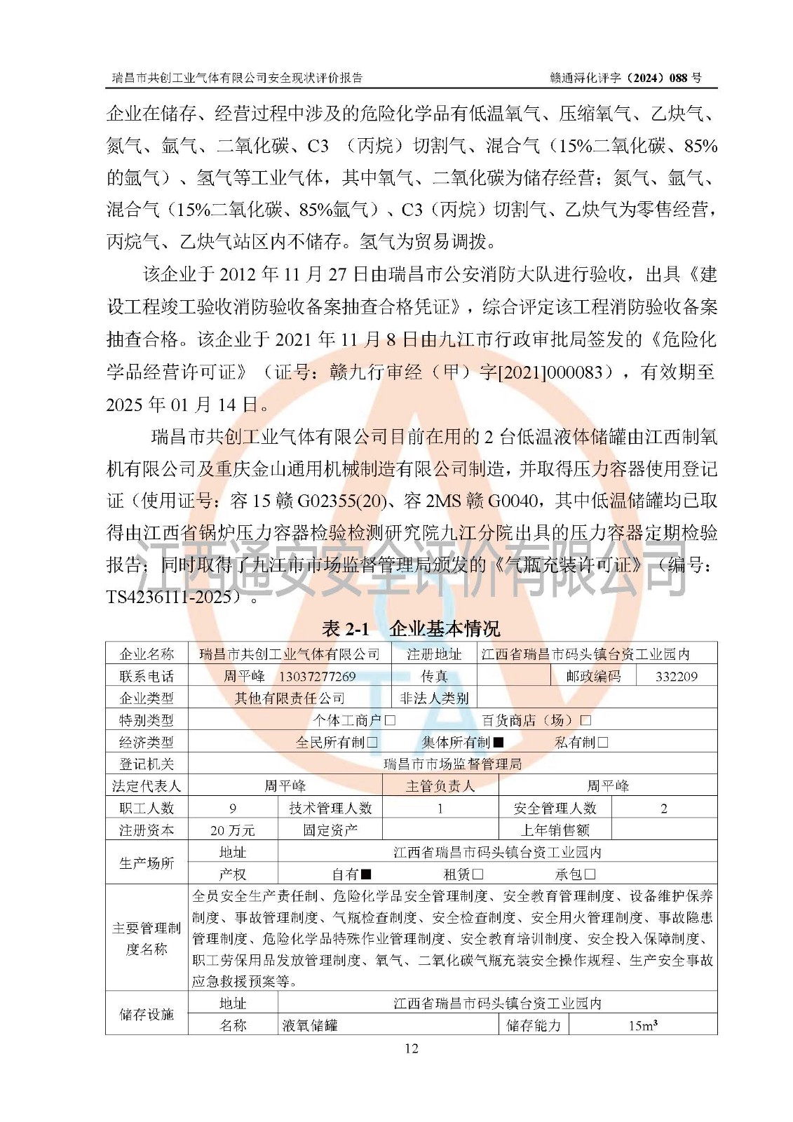 評(píng)價(jià)報(bào)告名稱 | 瑞昌市共創(chuàng)工業(yè)氣體有限公司安全現(xiàn)狀評(píng)價(jià)報(bào)告 | ||||||
