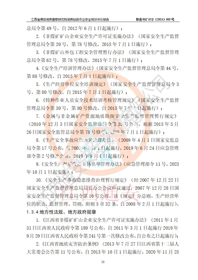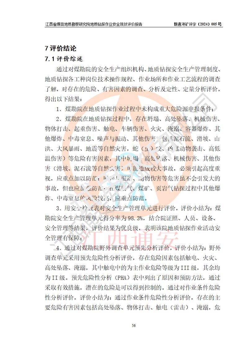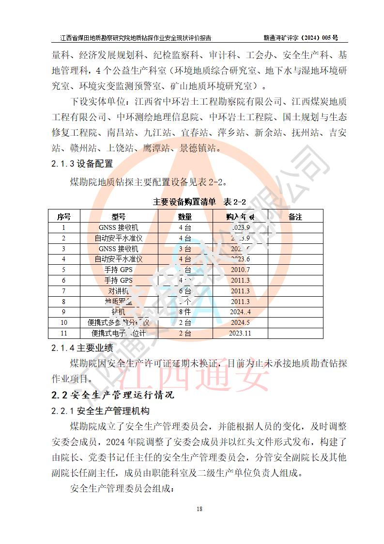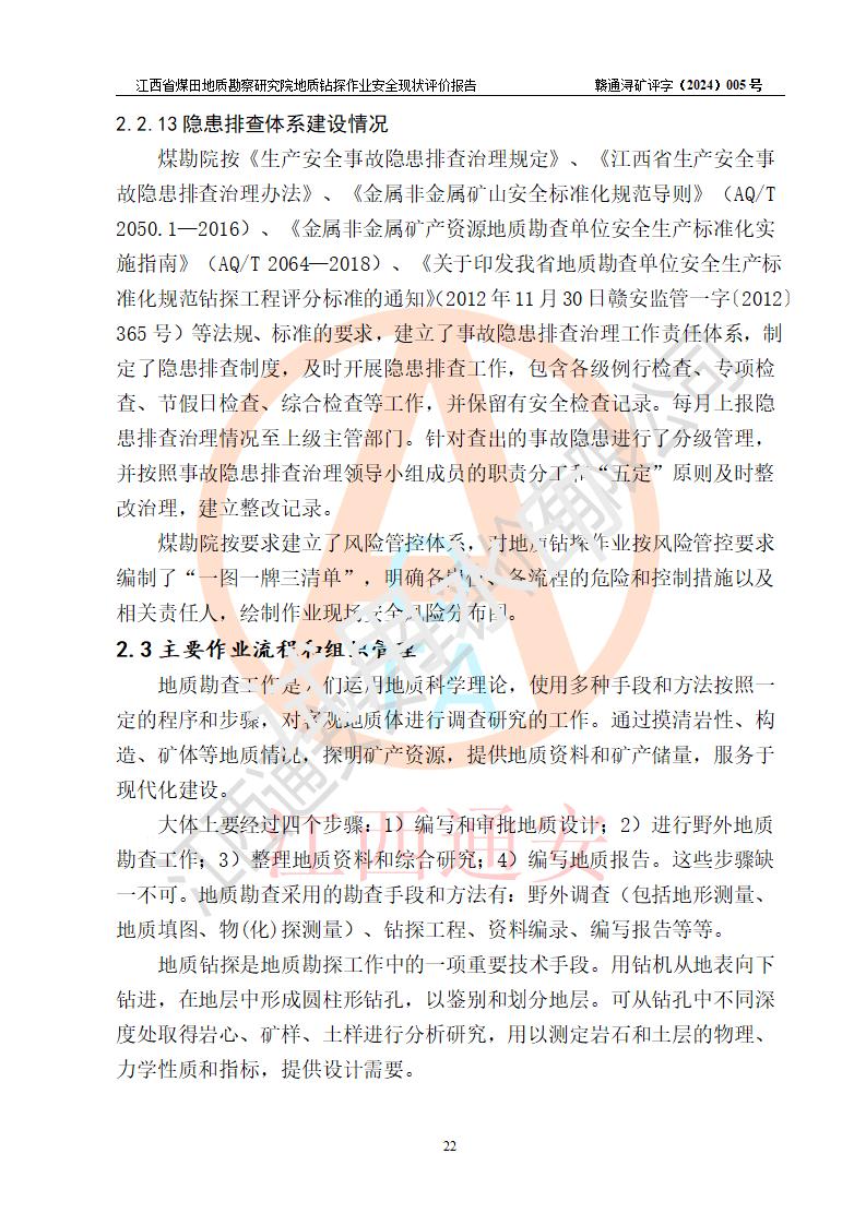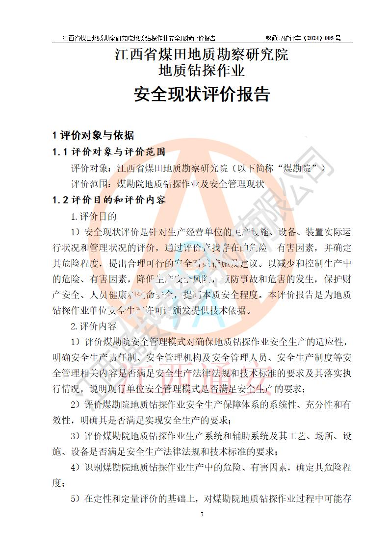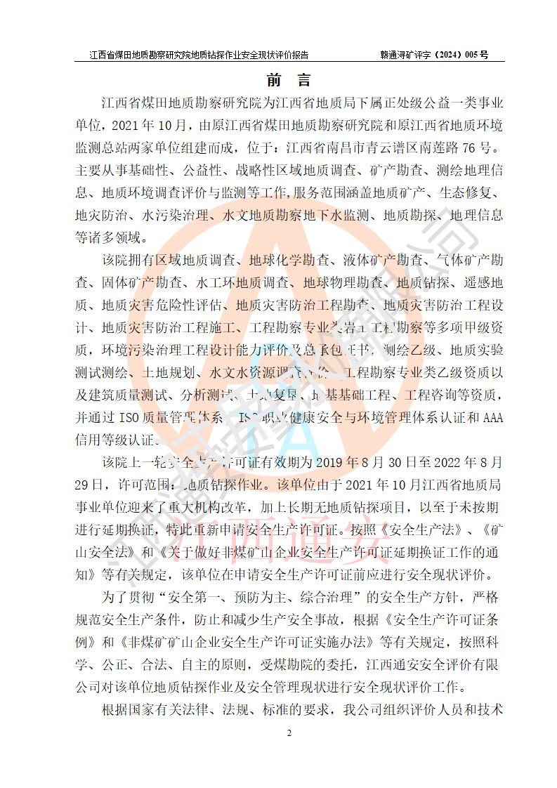 報(bào)告名稱 | 江西省煤田地質(zhì)勘察研究院地質(zhì)鉆探作業(yè)安全現(xiàn)狀評價(jià)報(bào)告 | |||||
