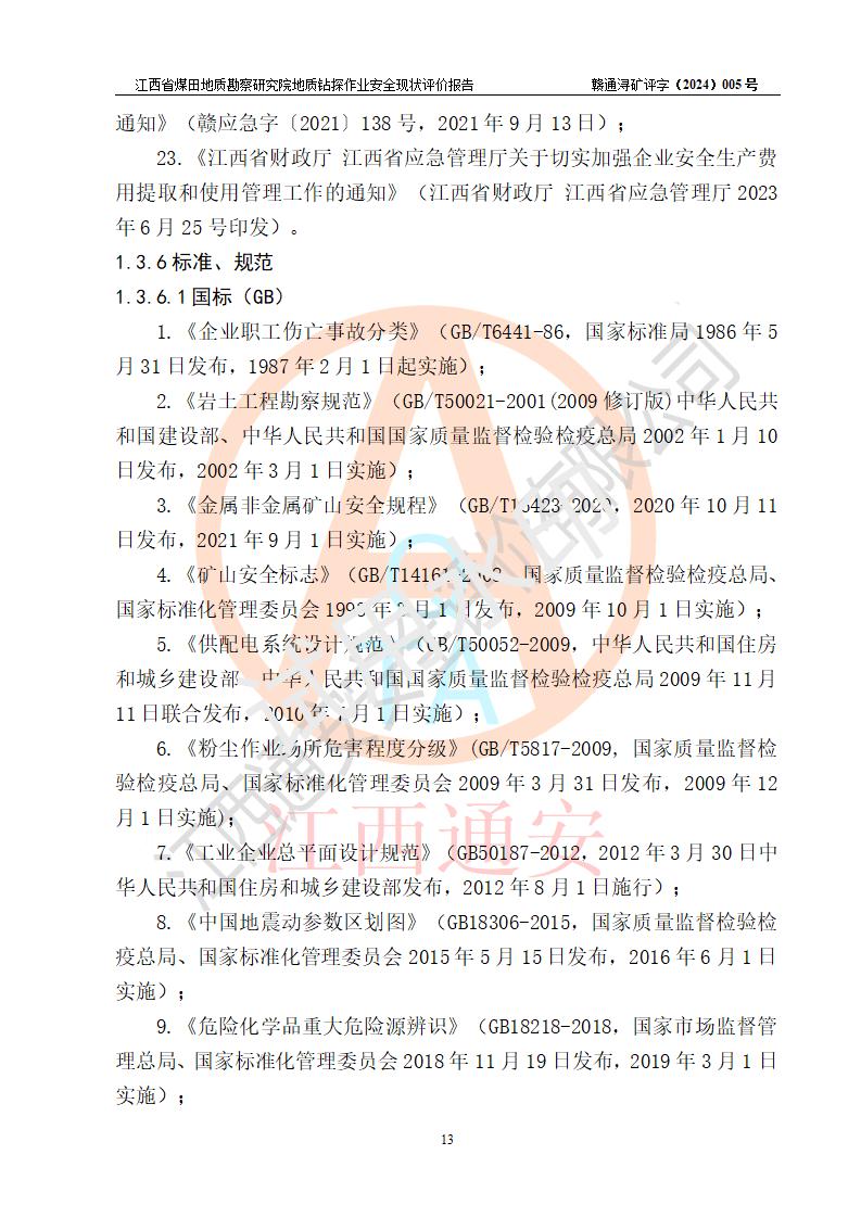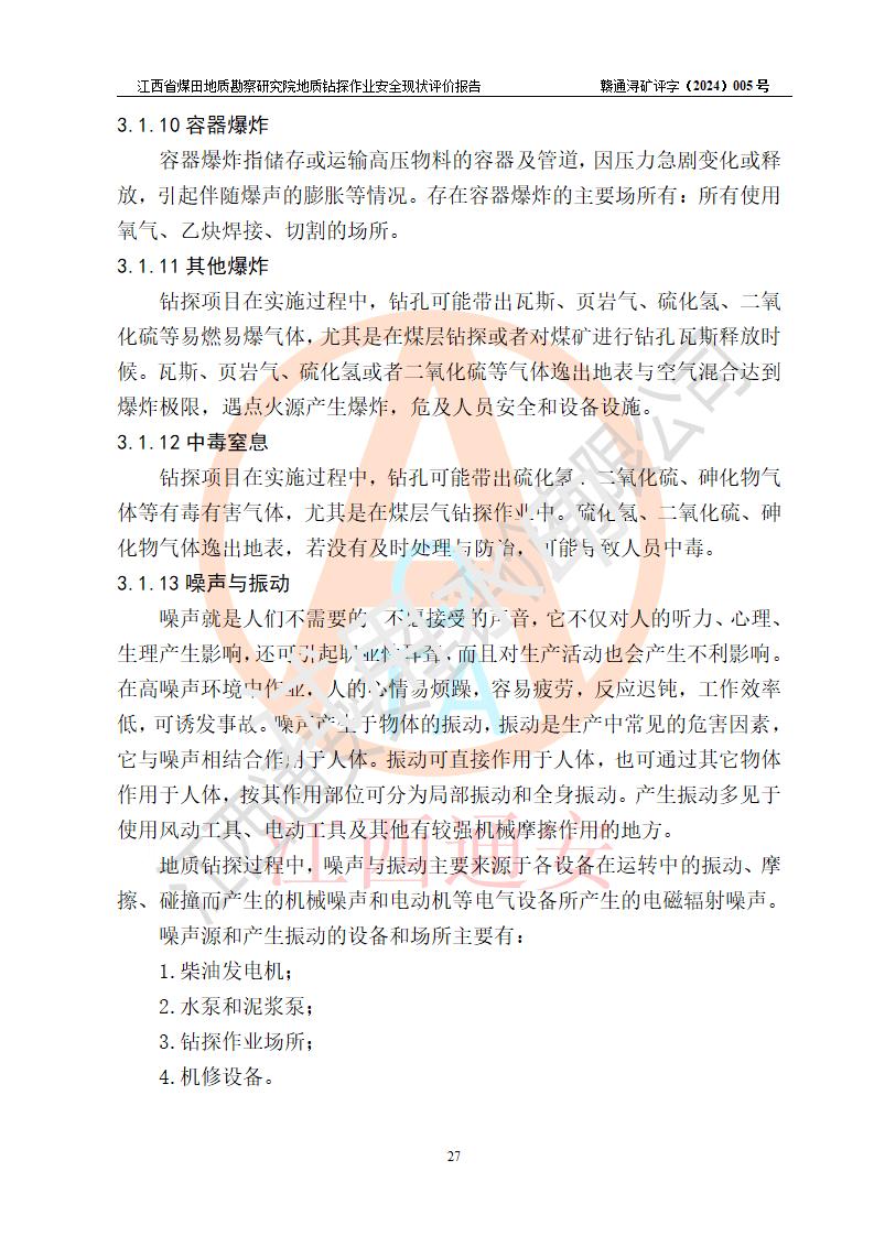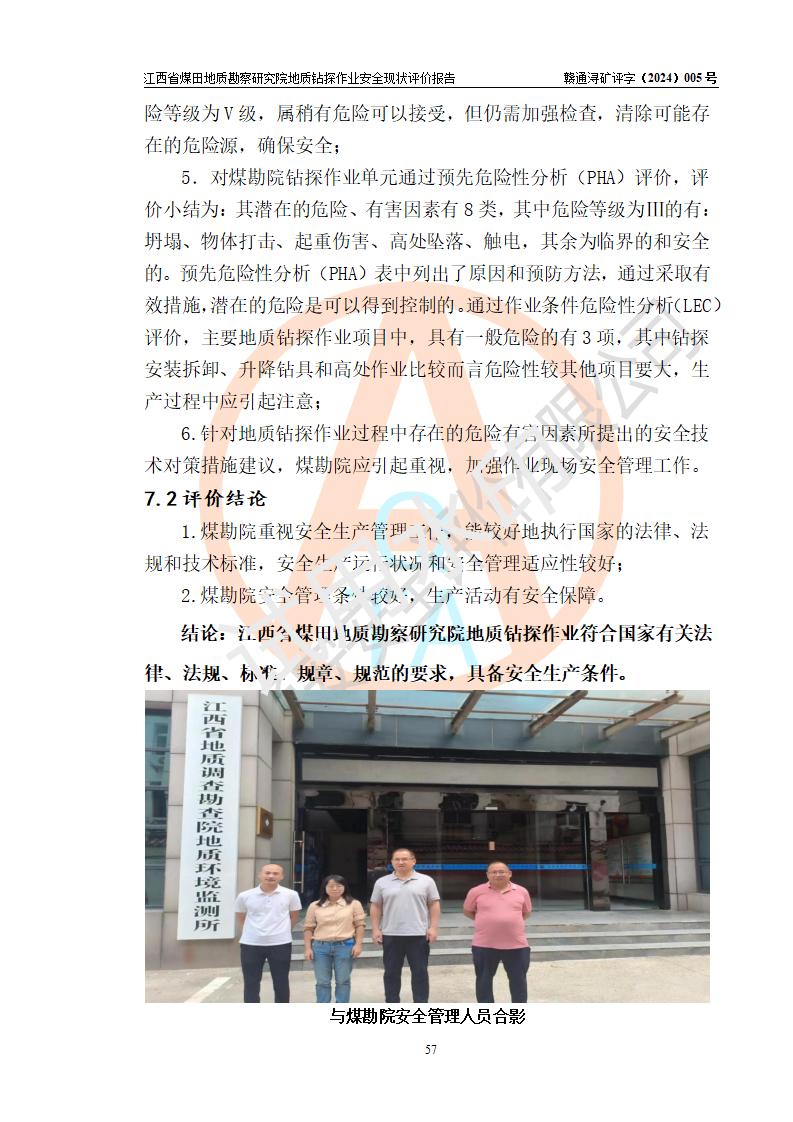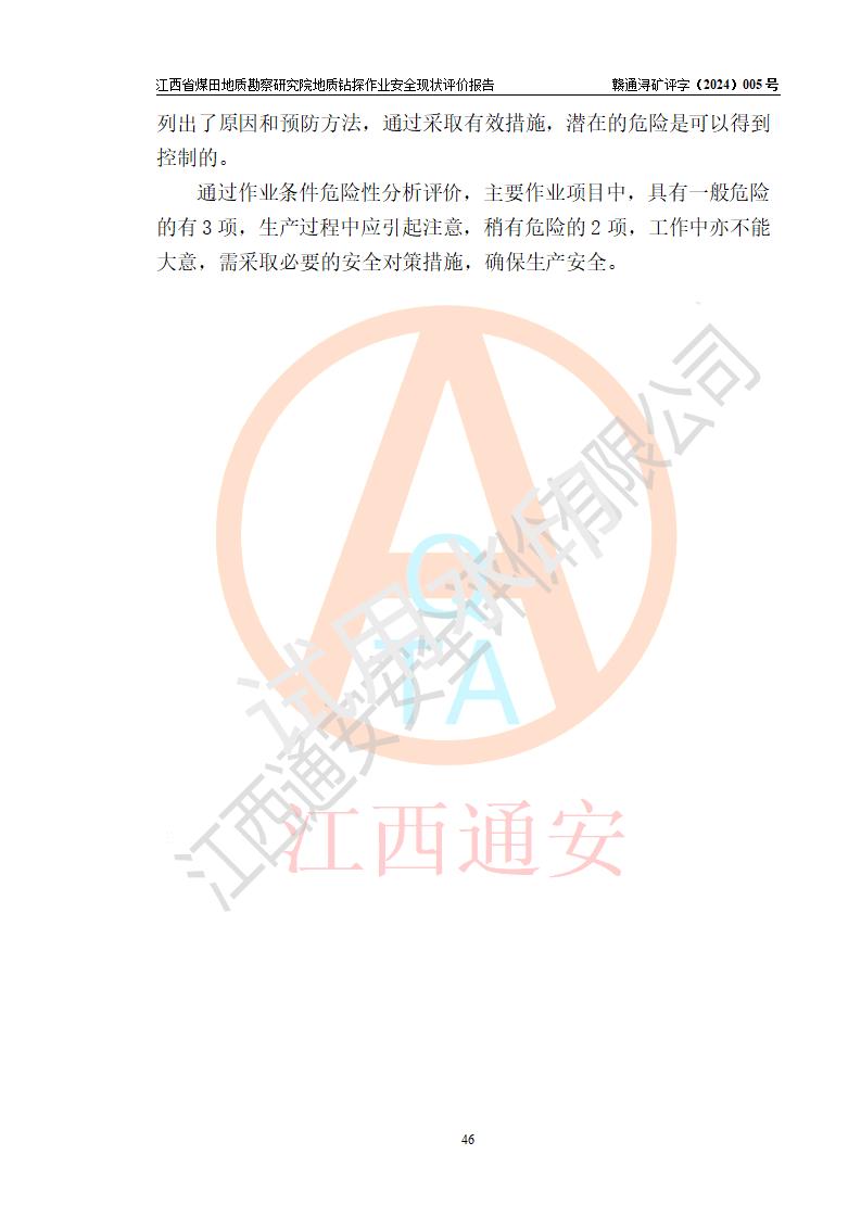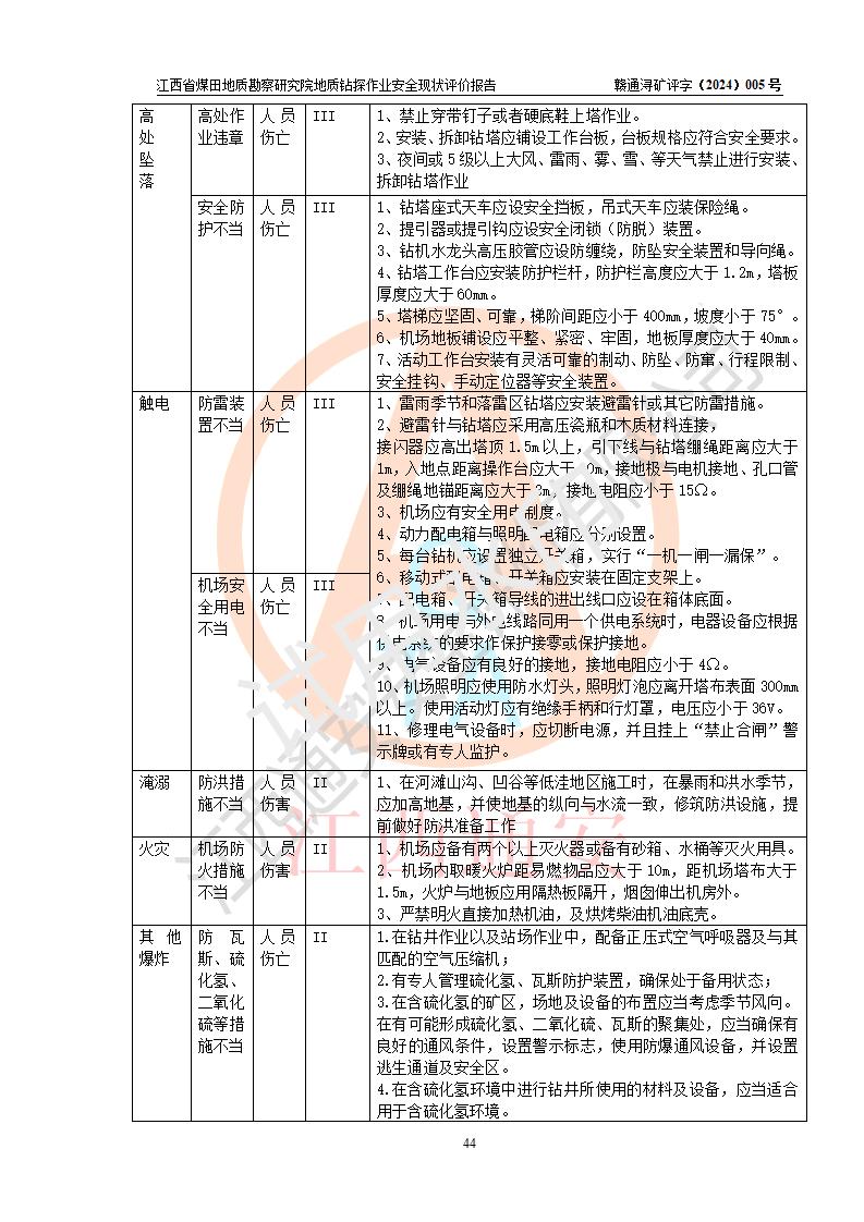 報(bào)告名稱 | 江西省煤田地質(zhì)勘察研究院地質(zhì)鉆探作業(yè)安全現(xiàn)狀評價(jià)報(bào)告 | |||||