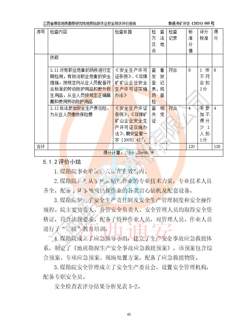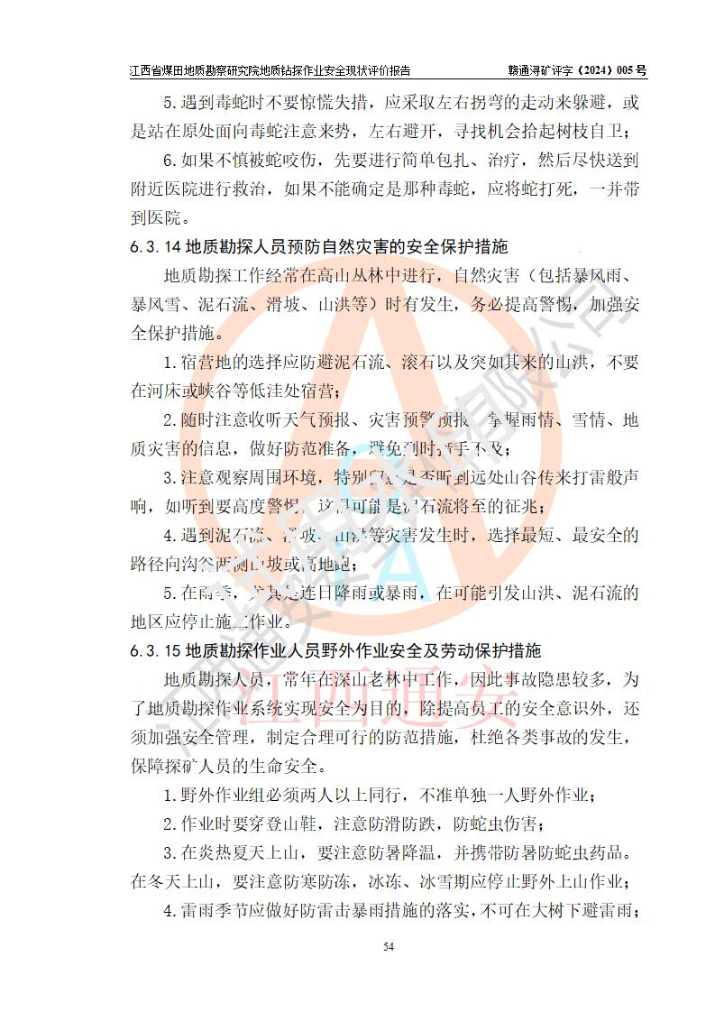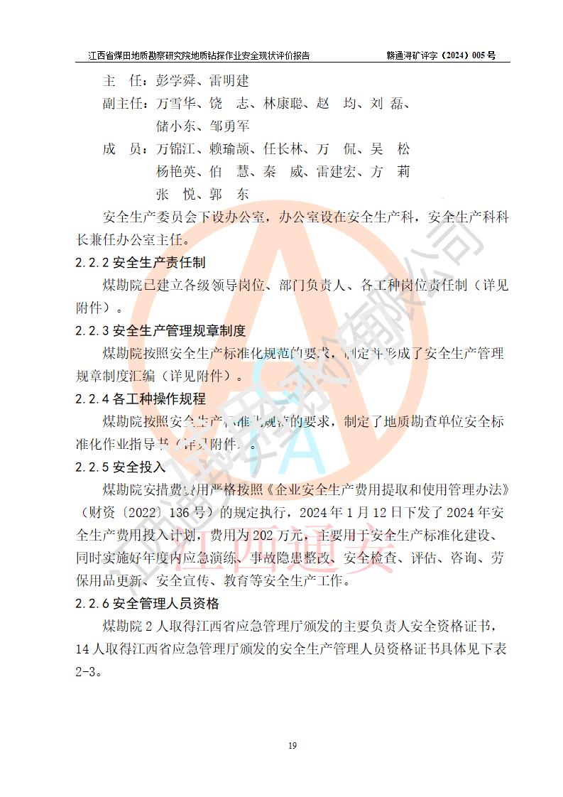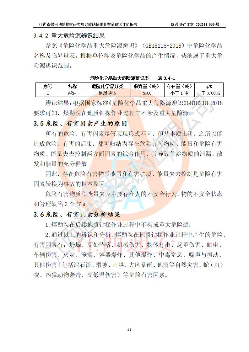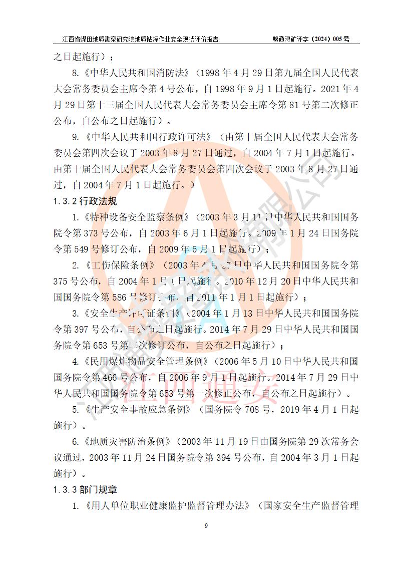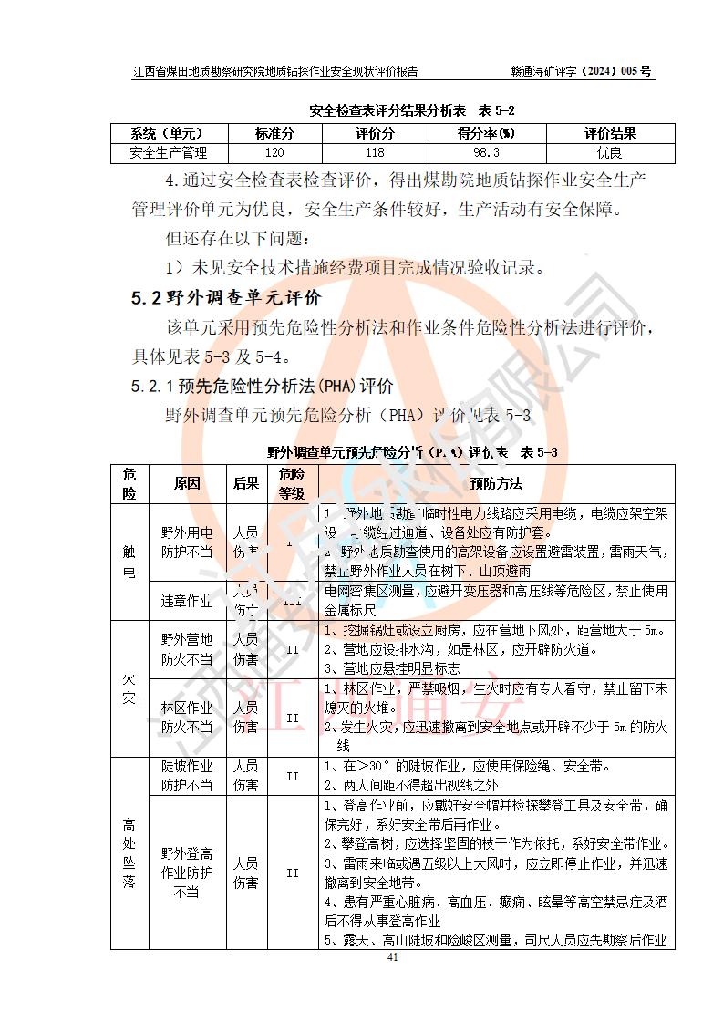 報(bào)告名稱 | 江西省煤田地質(zhì)勘察研究院地質(zhì)鉆探作業(yè)安全現(xiàn)狀評價(jià)報(bào)告 | |||||