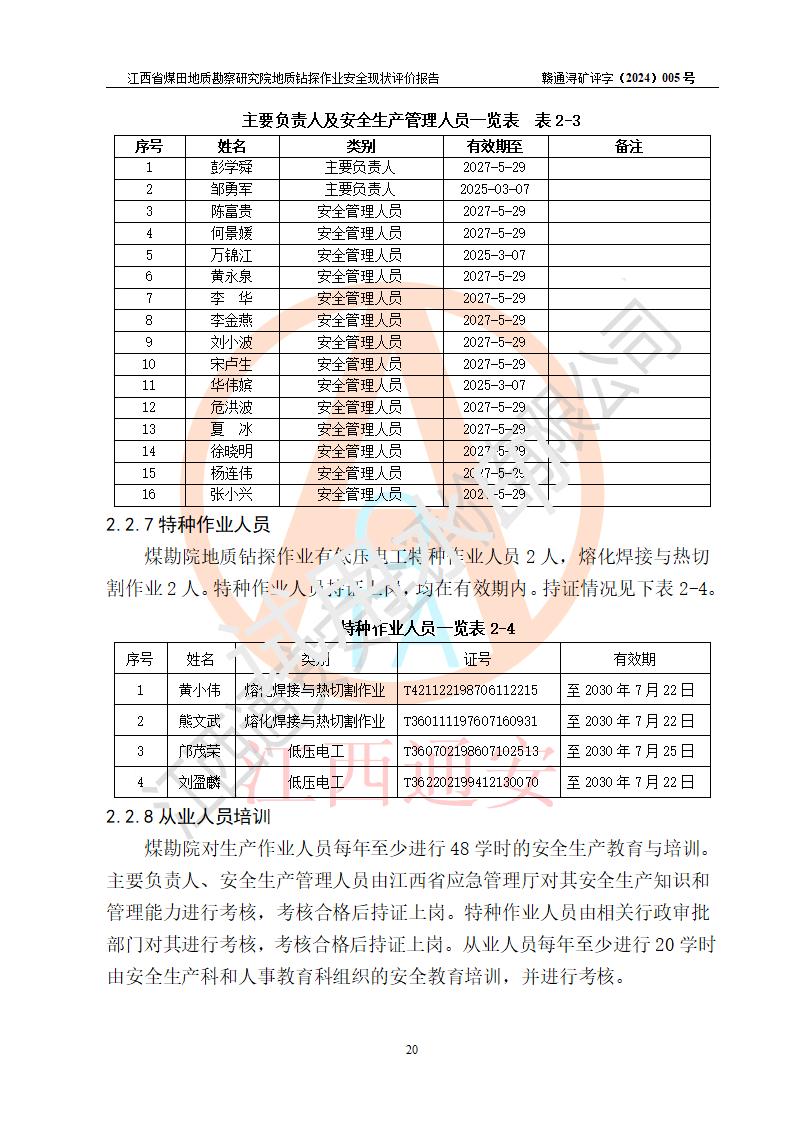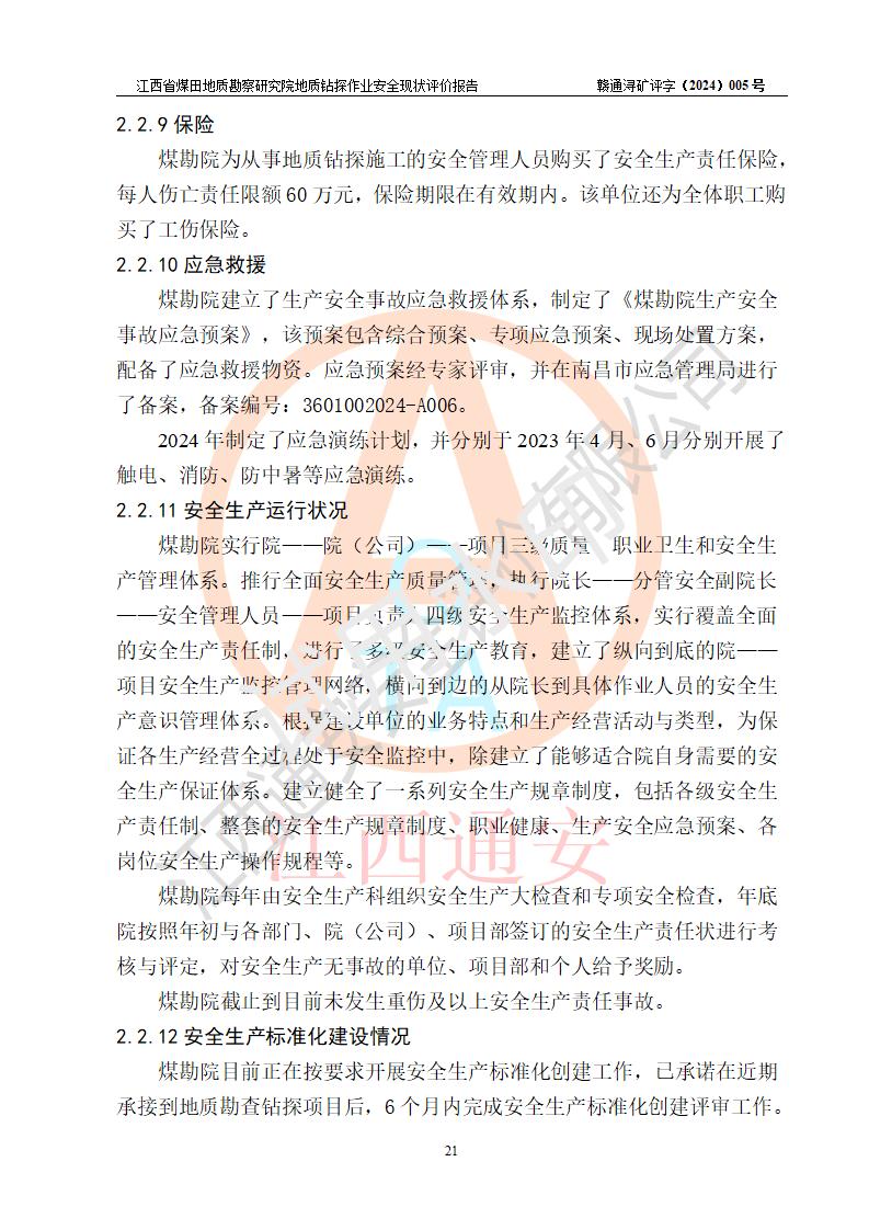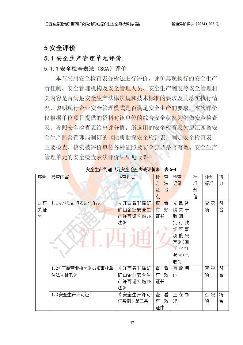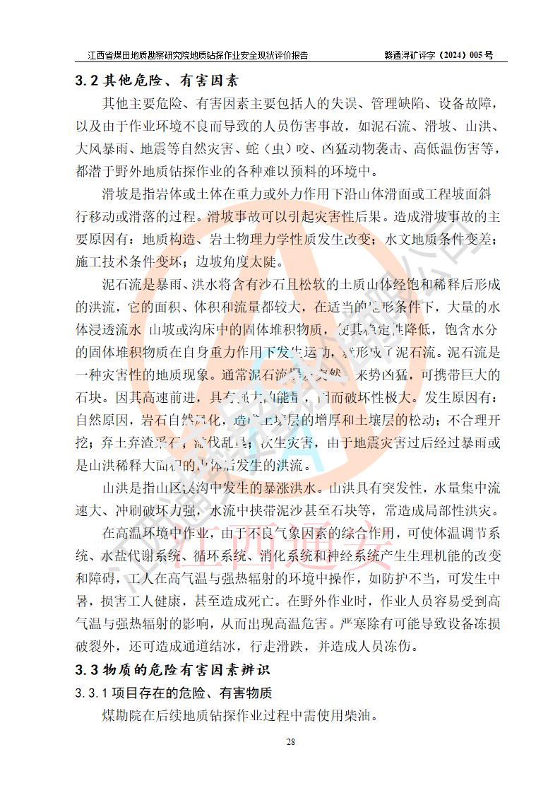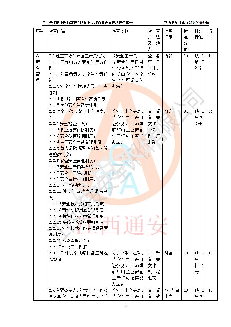 報(bào)告名稱 | 江西省煤田地質(zhì)勘察研究院地質(zhì)鉆探作業(yè)安全現(xiàn)狀評價(jià)報(bào)告 | |||||